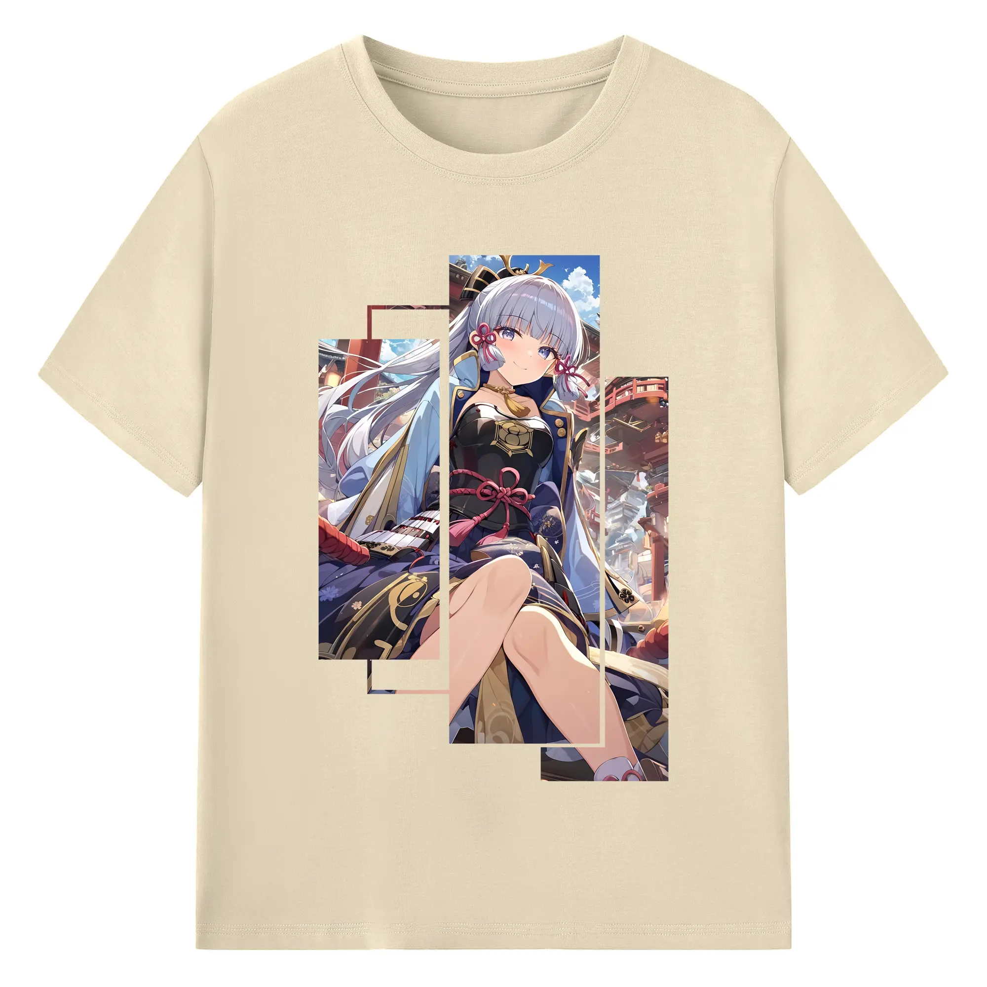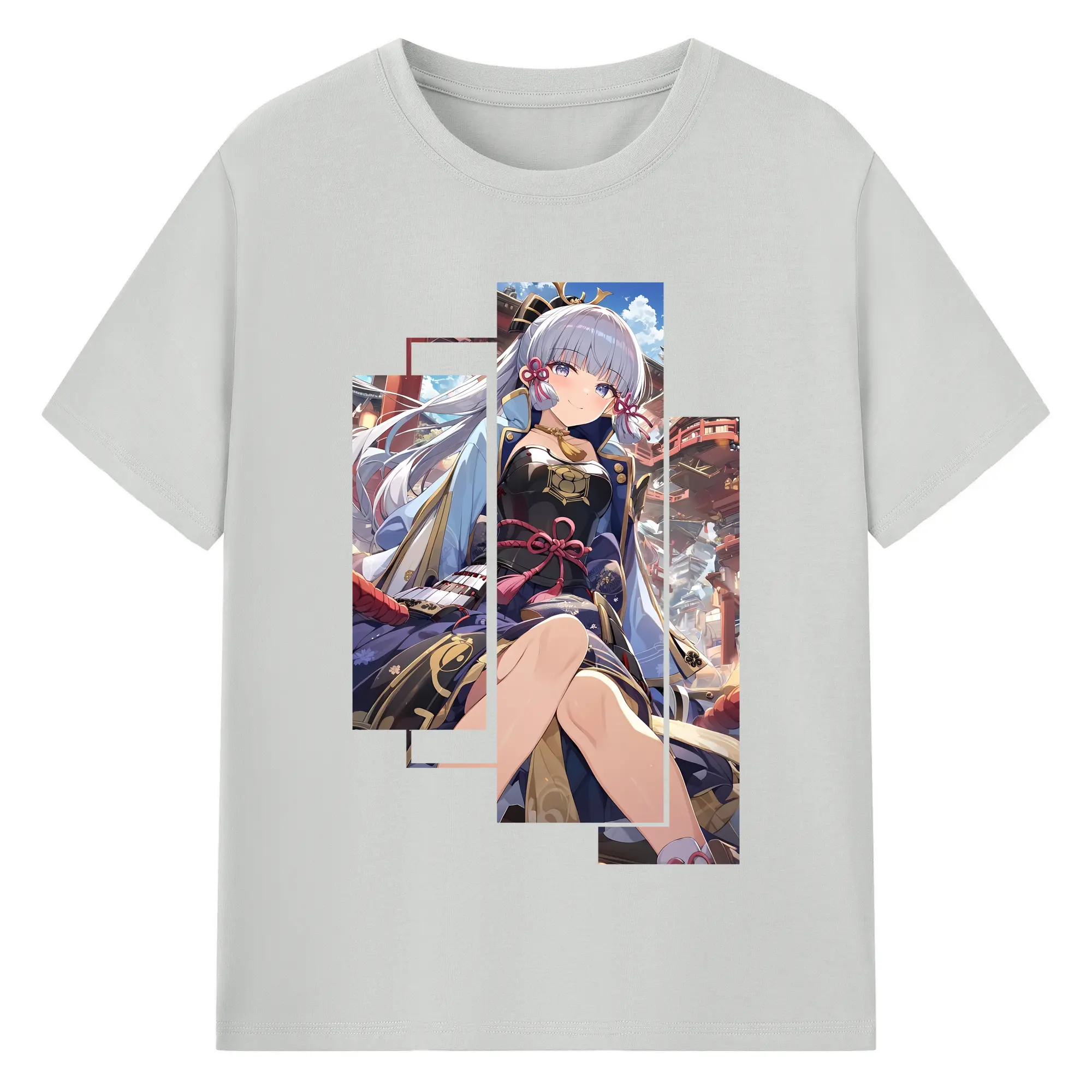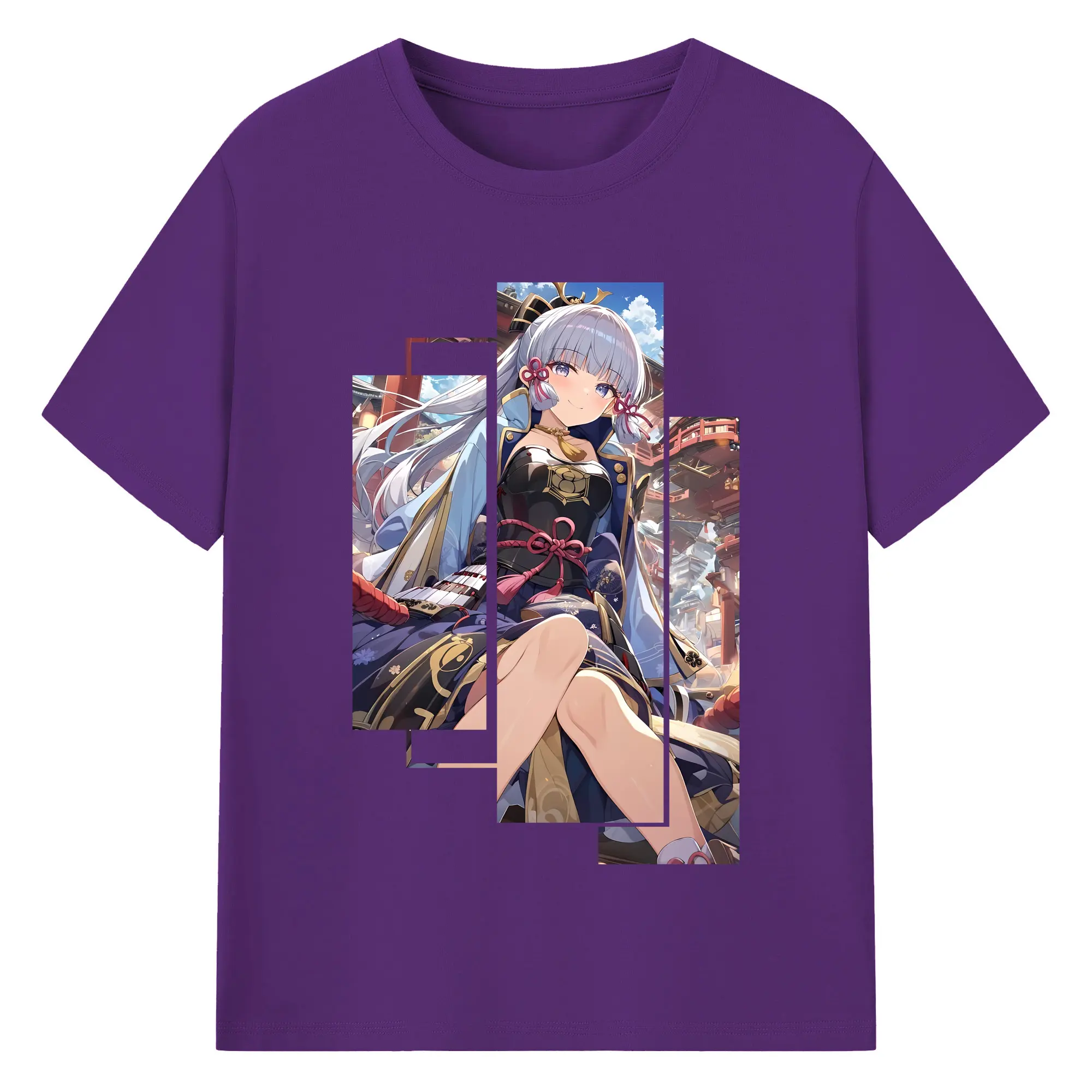 原 神 グッズ 神里綾華 - 綿100% 半袖Tシャツ ・ バックプリント ・ 快適 通気性 ・ 日常使い 散歩 スポーツ用