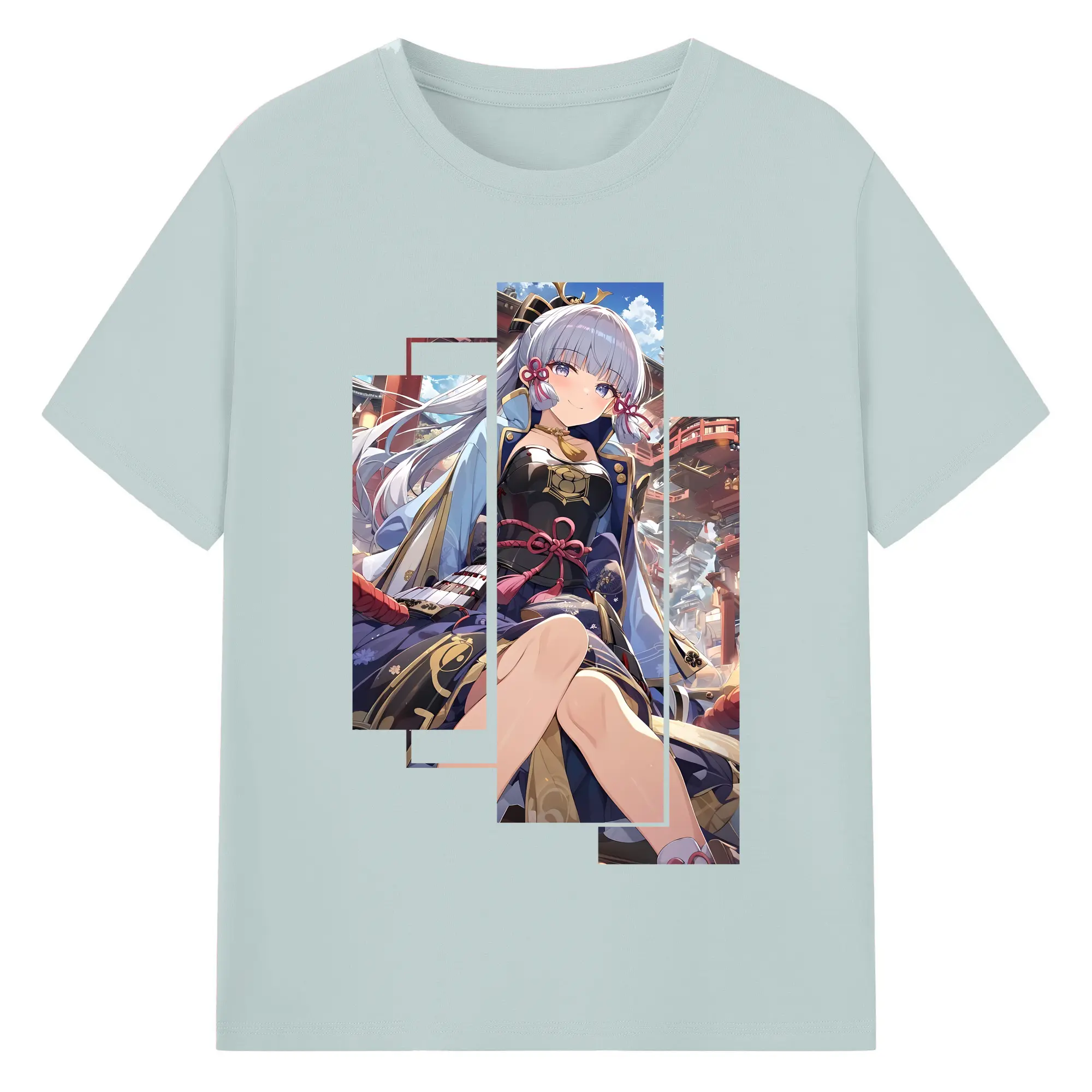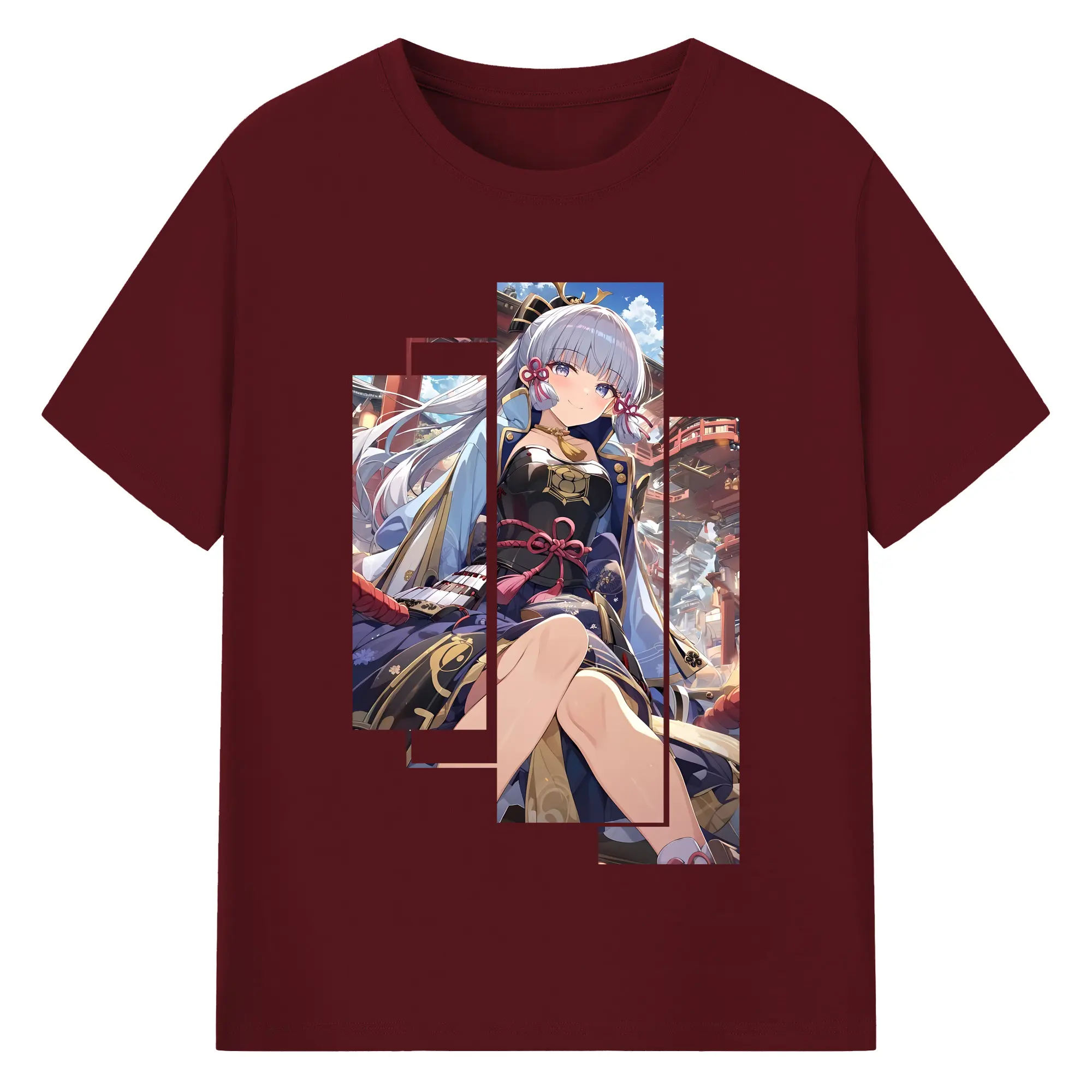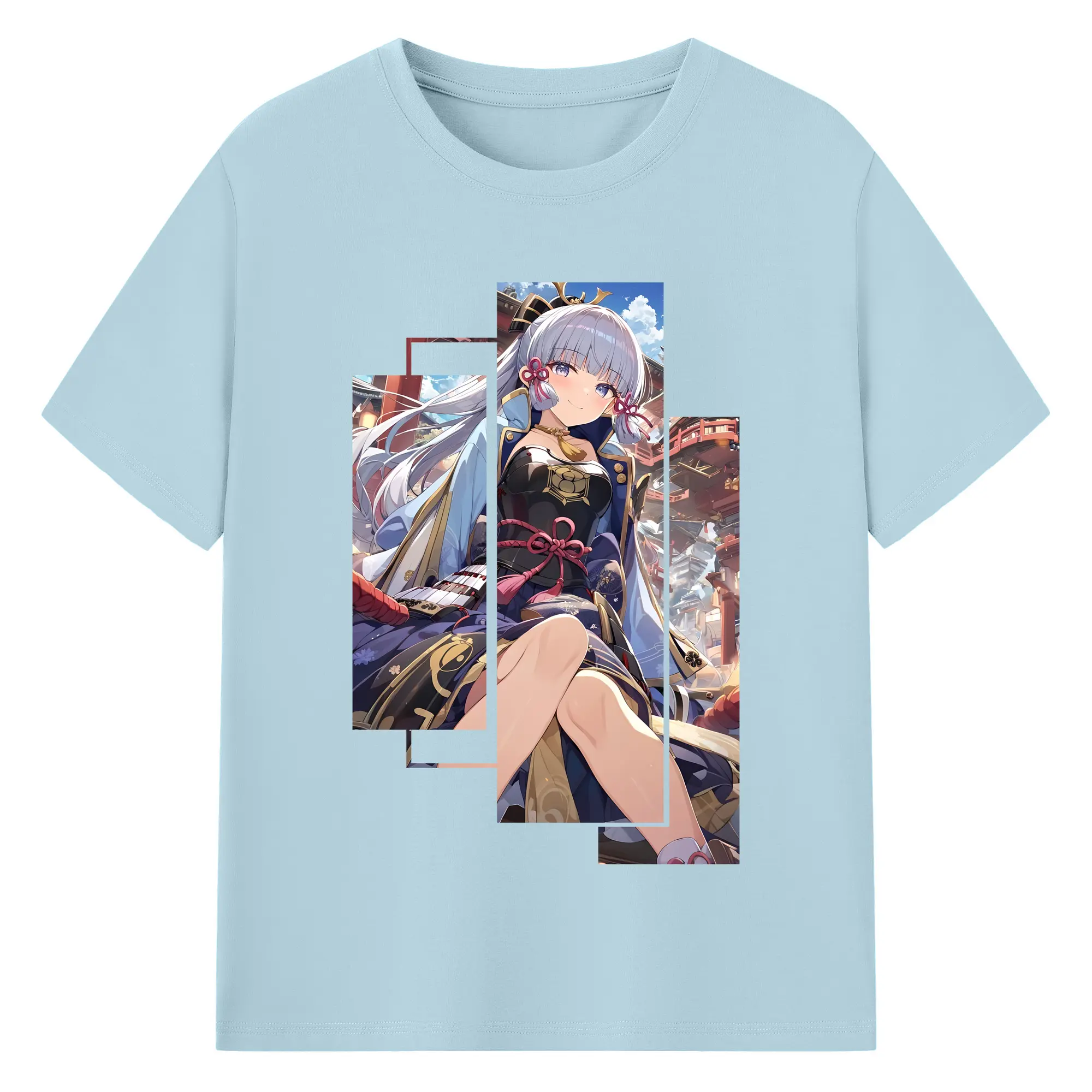 原 神 グッズ 神里綾華 - 綿100% 半袖Tシャツ ・ バックプリント ・ 快適 通気性 ・ 日常使い 散歩 スポーツ用