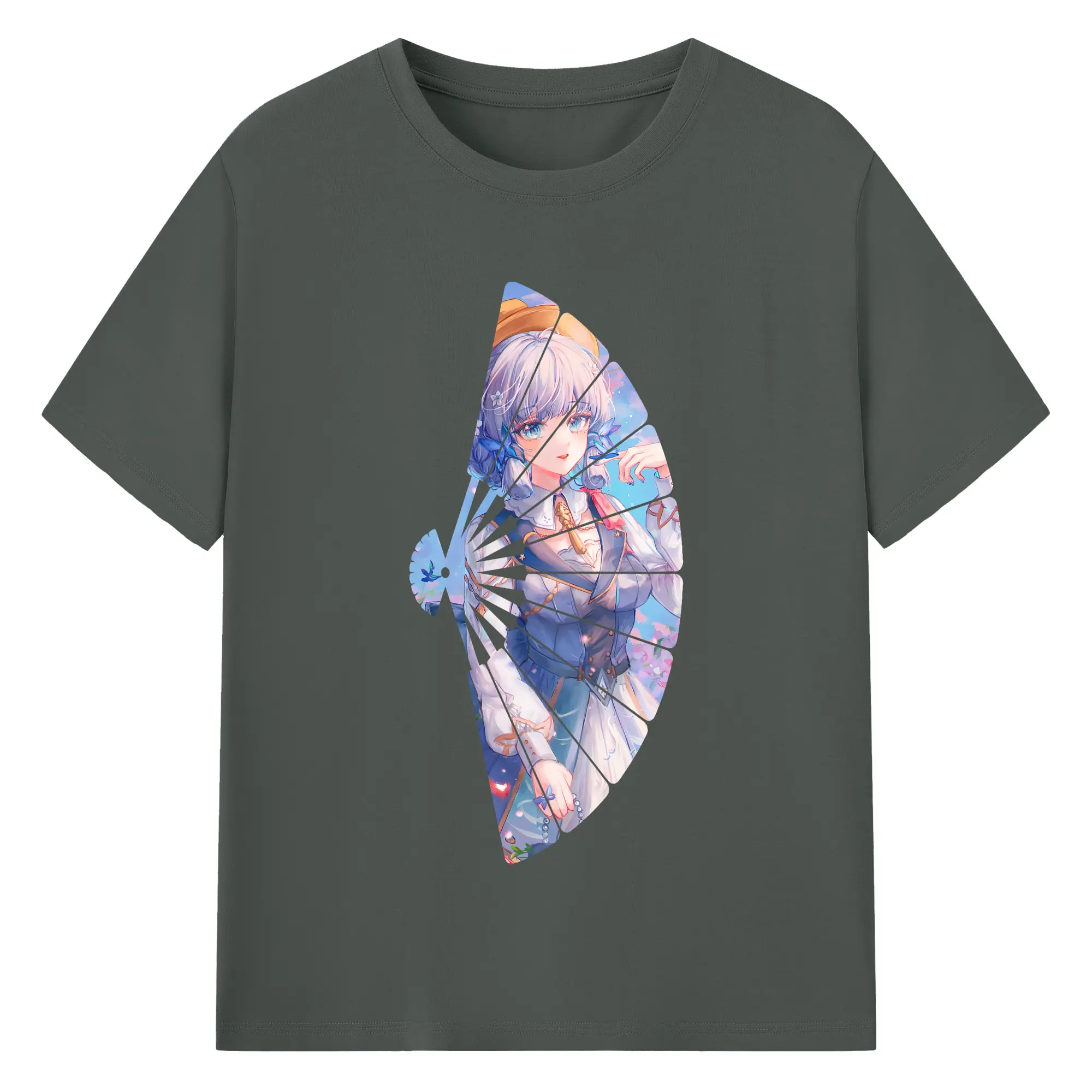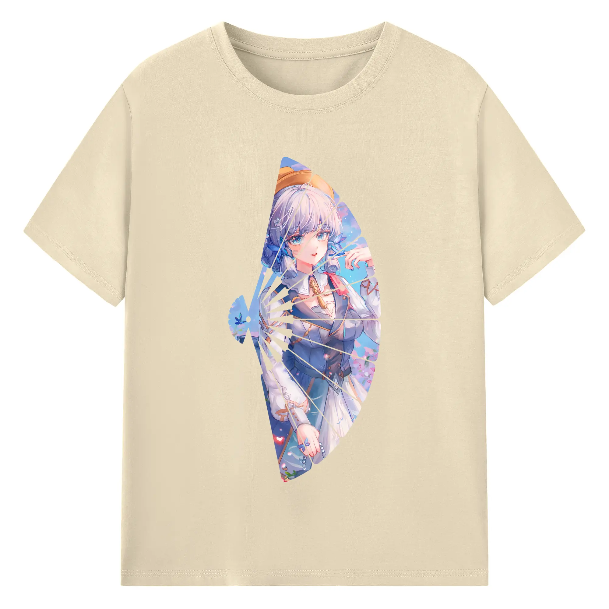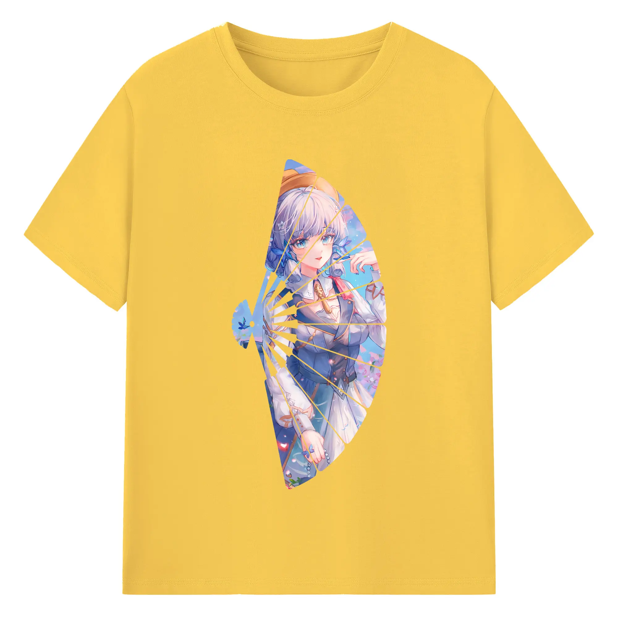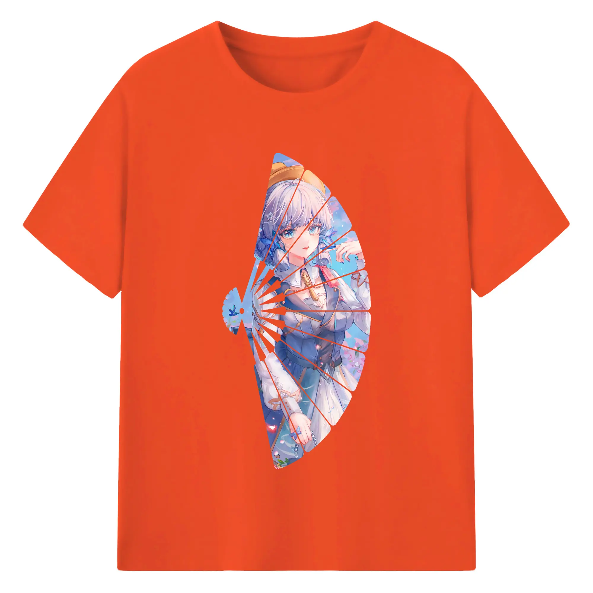 原 神 グッズ 神里綾華 - 綿100% 半袖Tシャツ ・ バックプリント ・ 快適 通気性 ・ 日常使い 散歩 スポーツ用