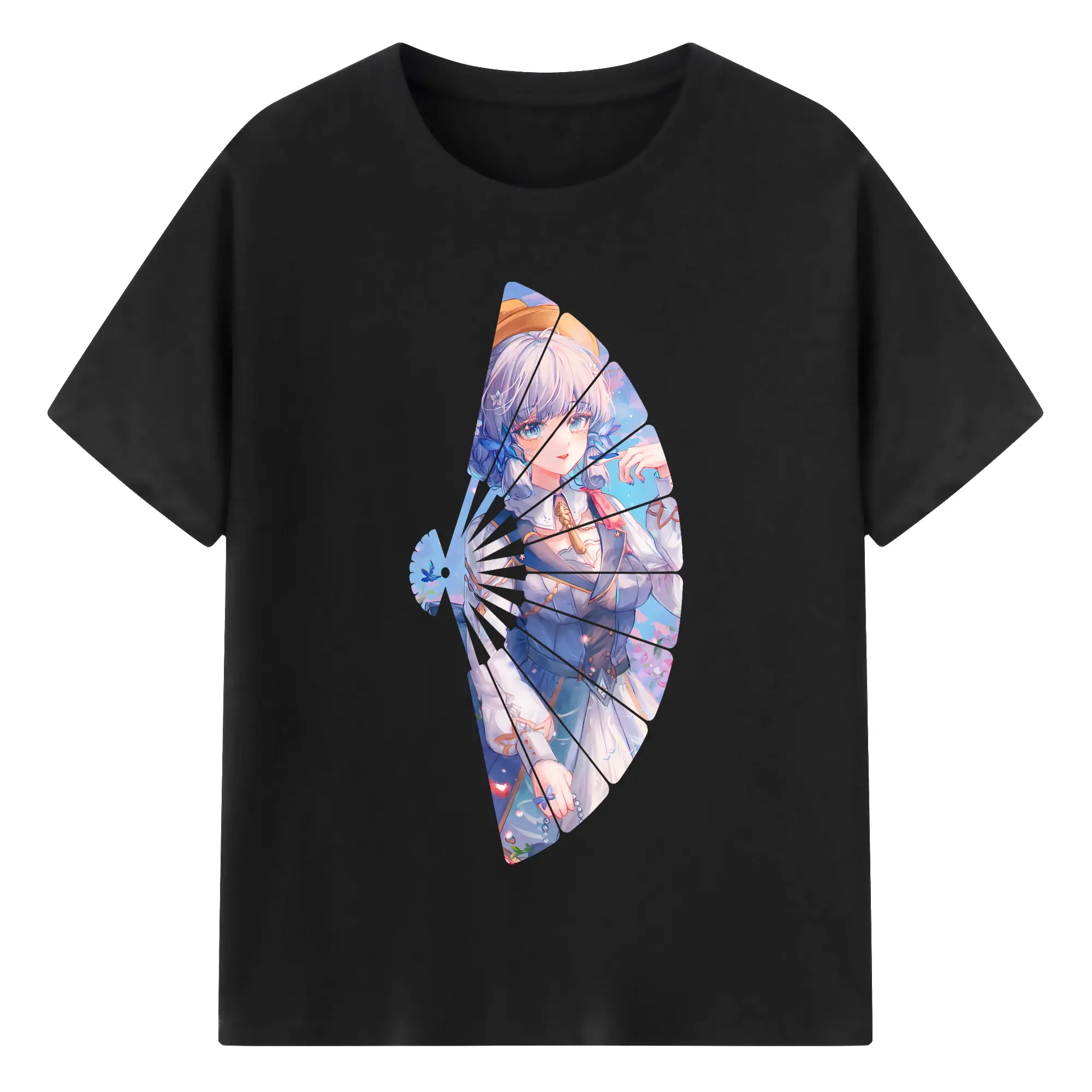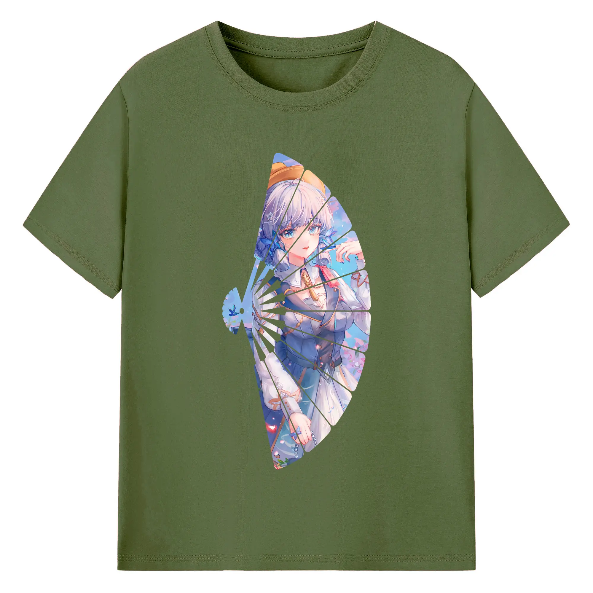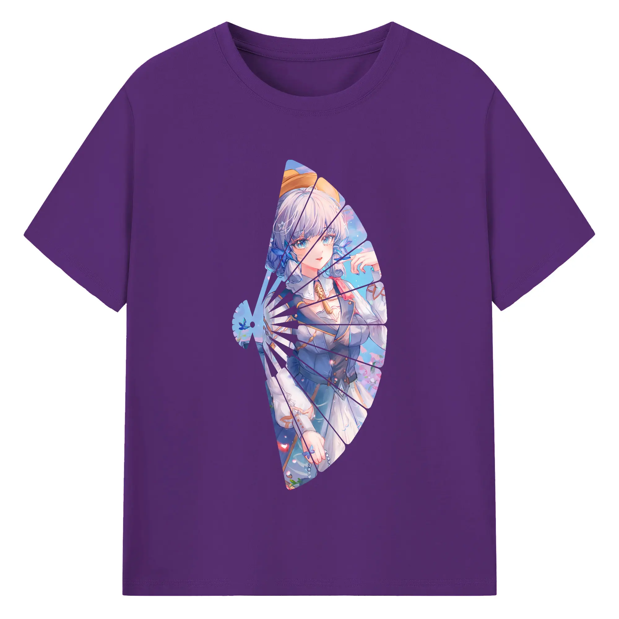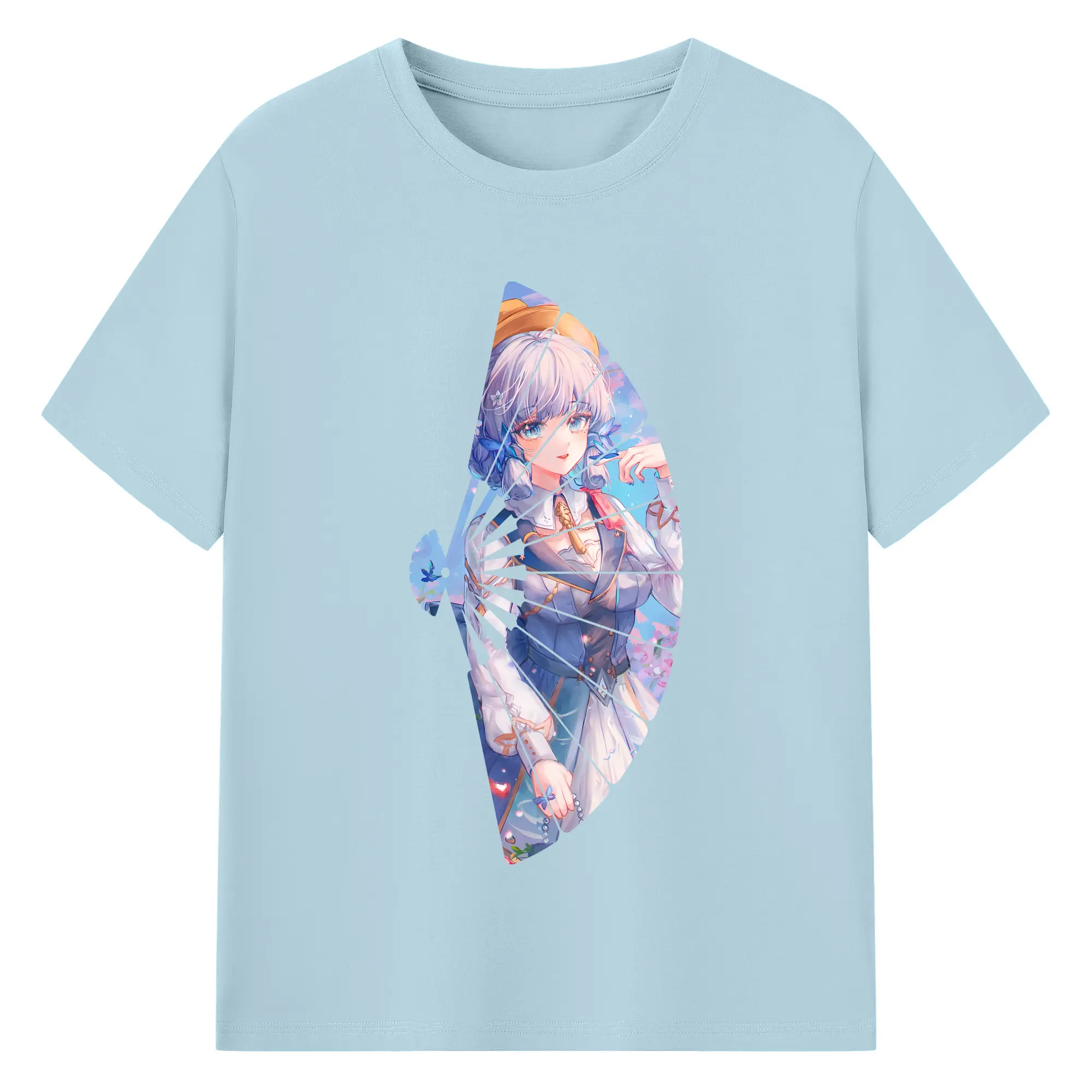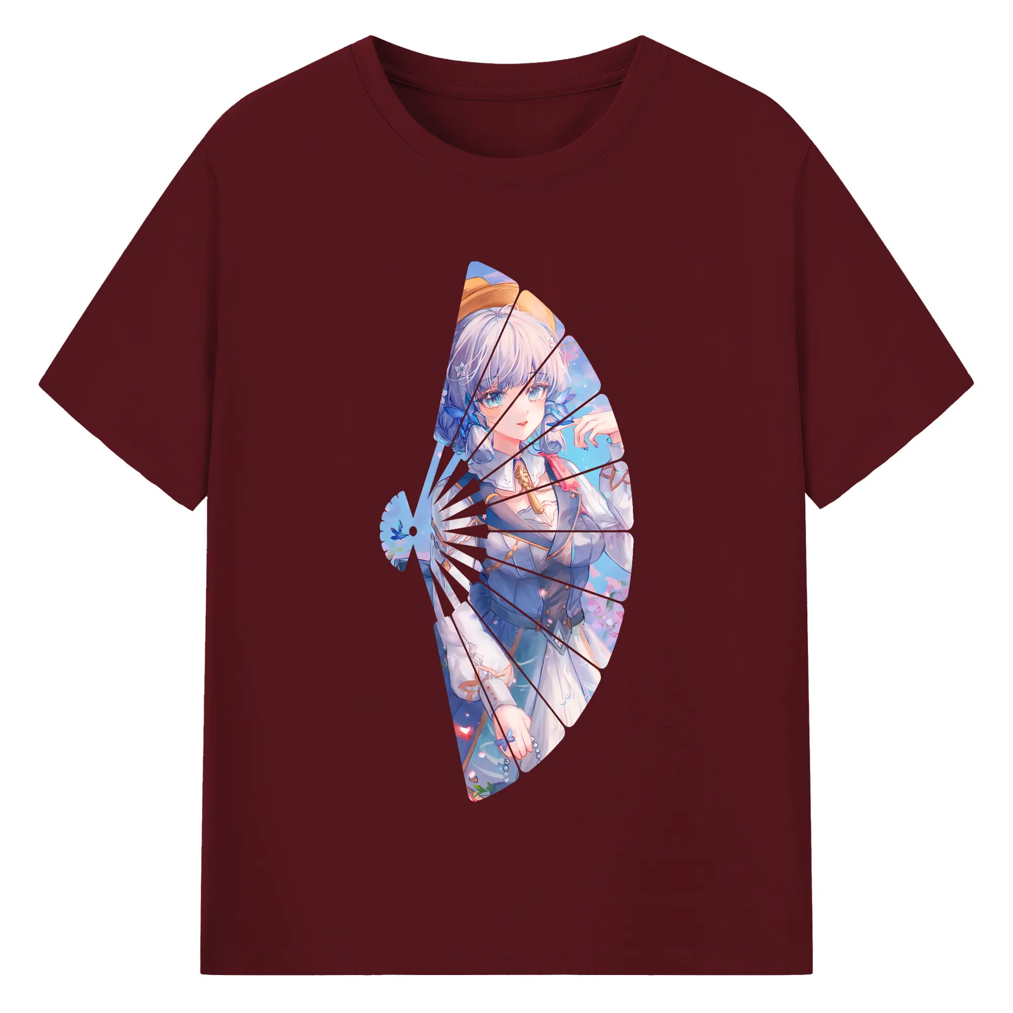 原 神 グッズ 神里綾華 - 綿100% 半袖Tシャツ ・ バックプリント ・ 快適 通気性 ・ 日常使い 散歩 スポーツ用