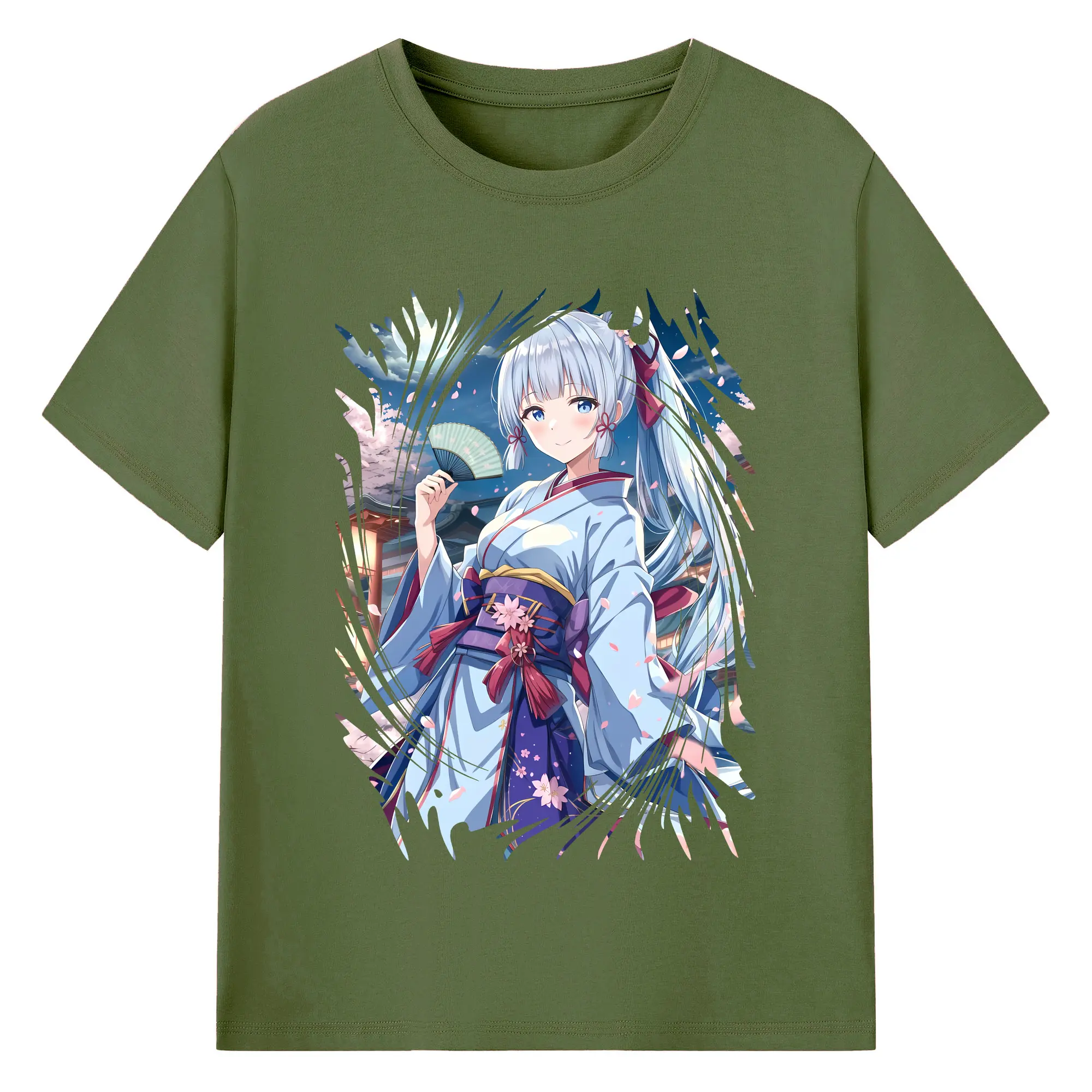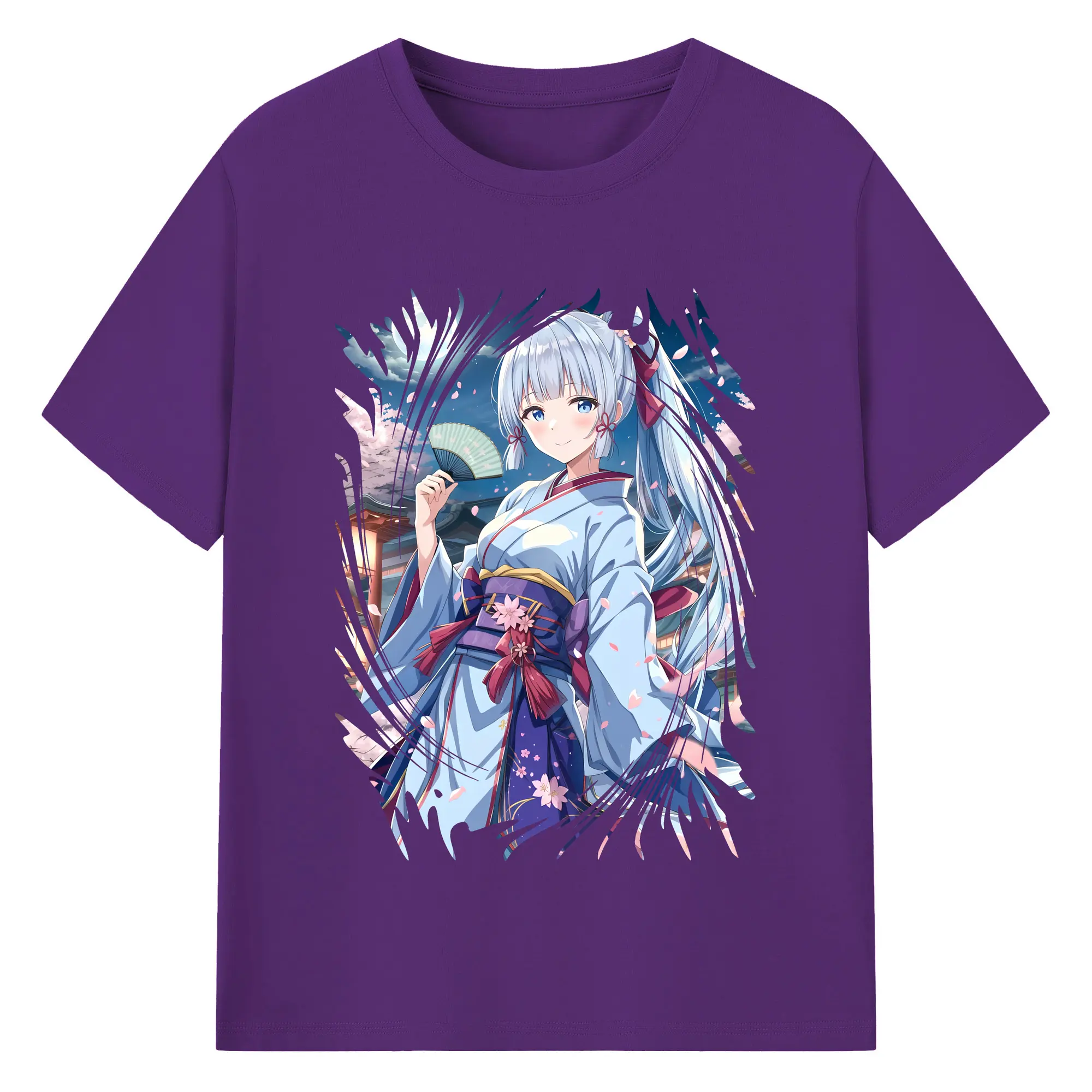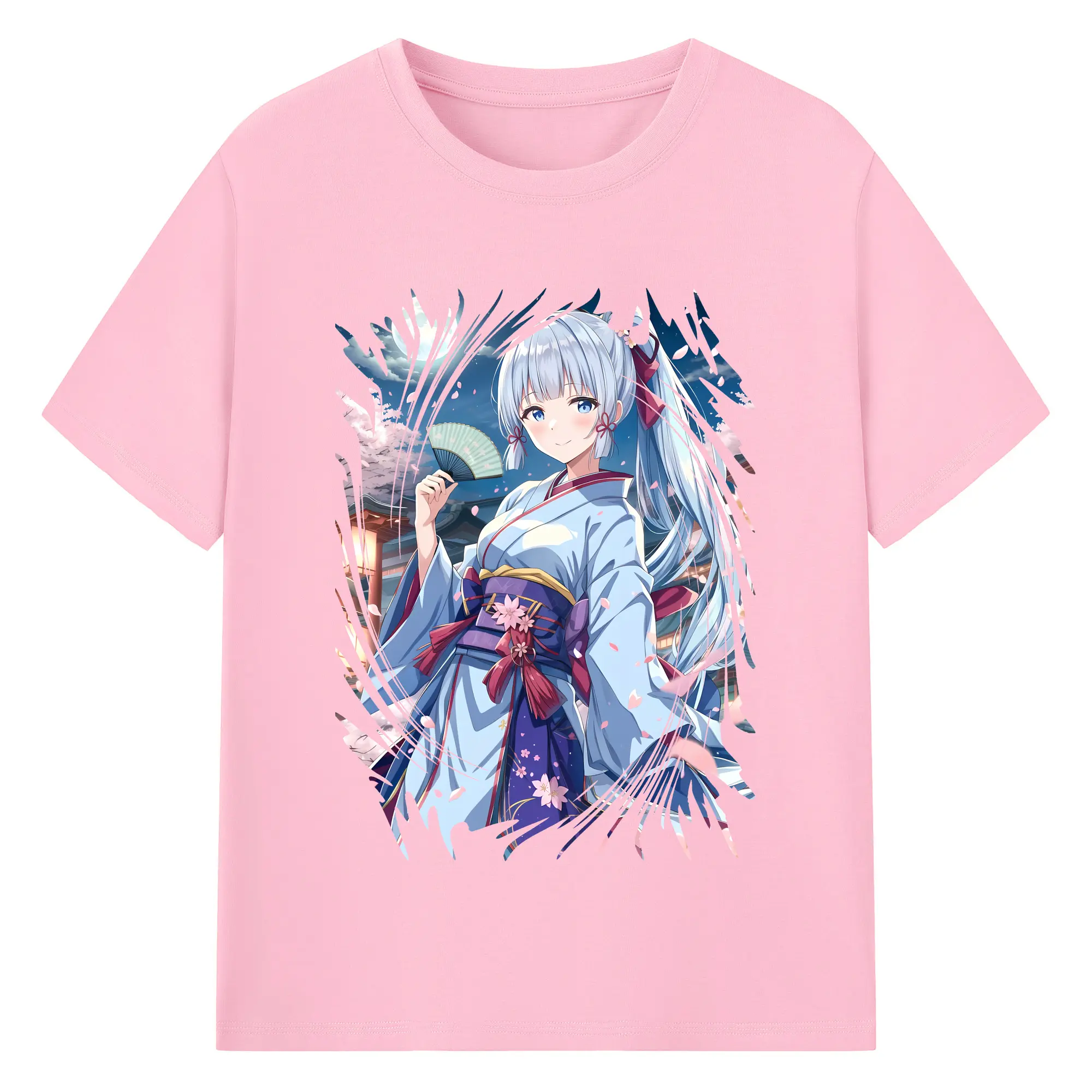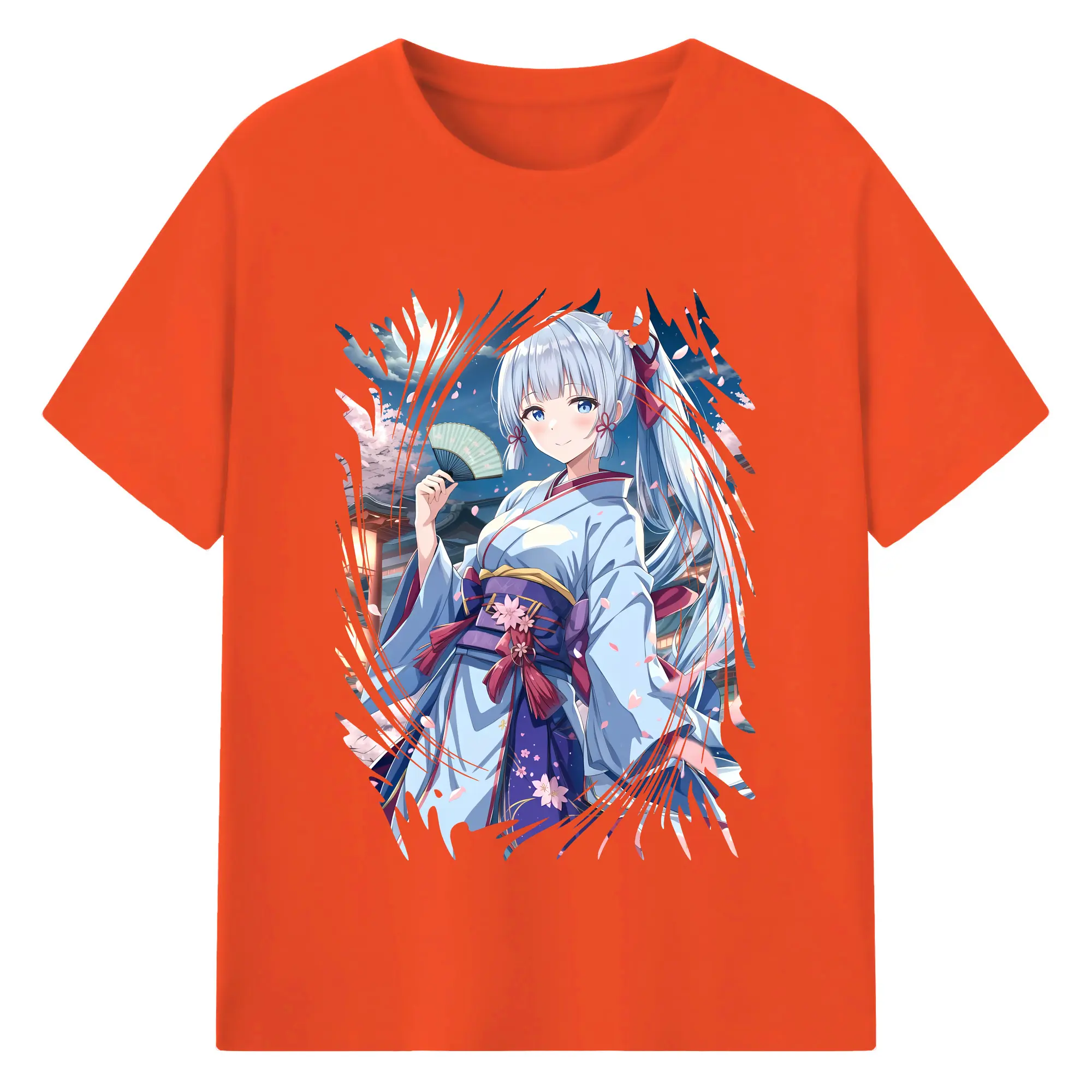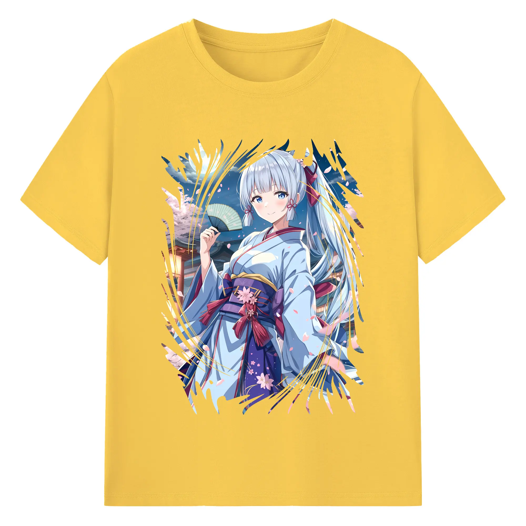 原 神 グッズ 神里綾華 - 綿100% 半袖Tシャツ ・ バックプリント ・ 快適 通気性 ・ 日常使い 散歩 スポーツ用