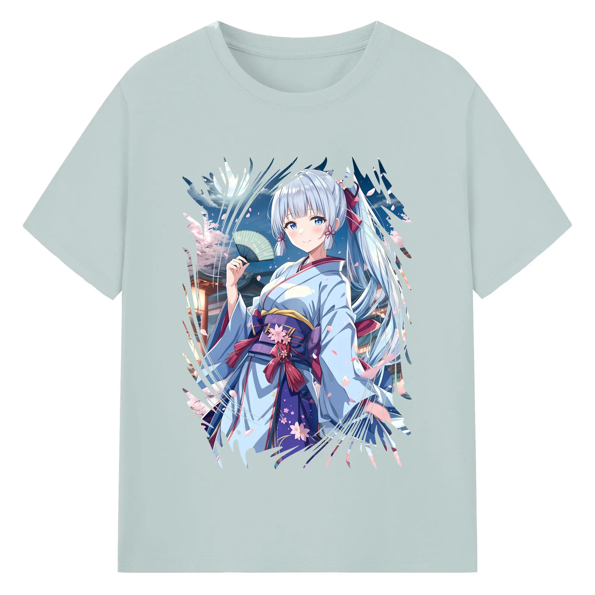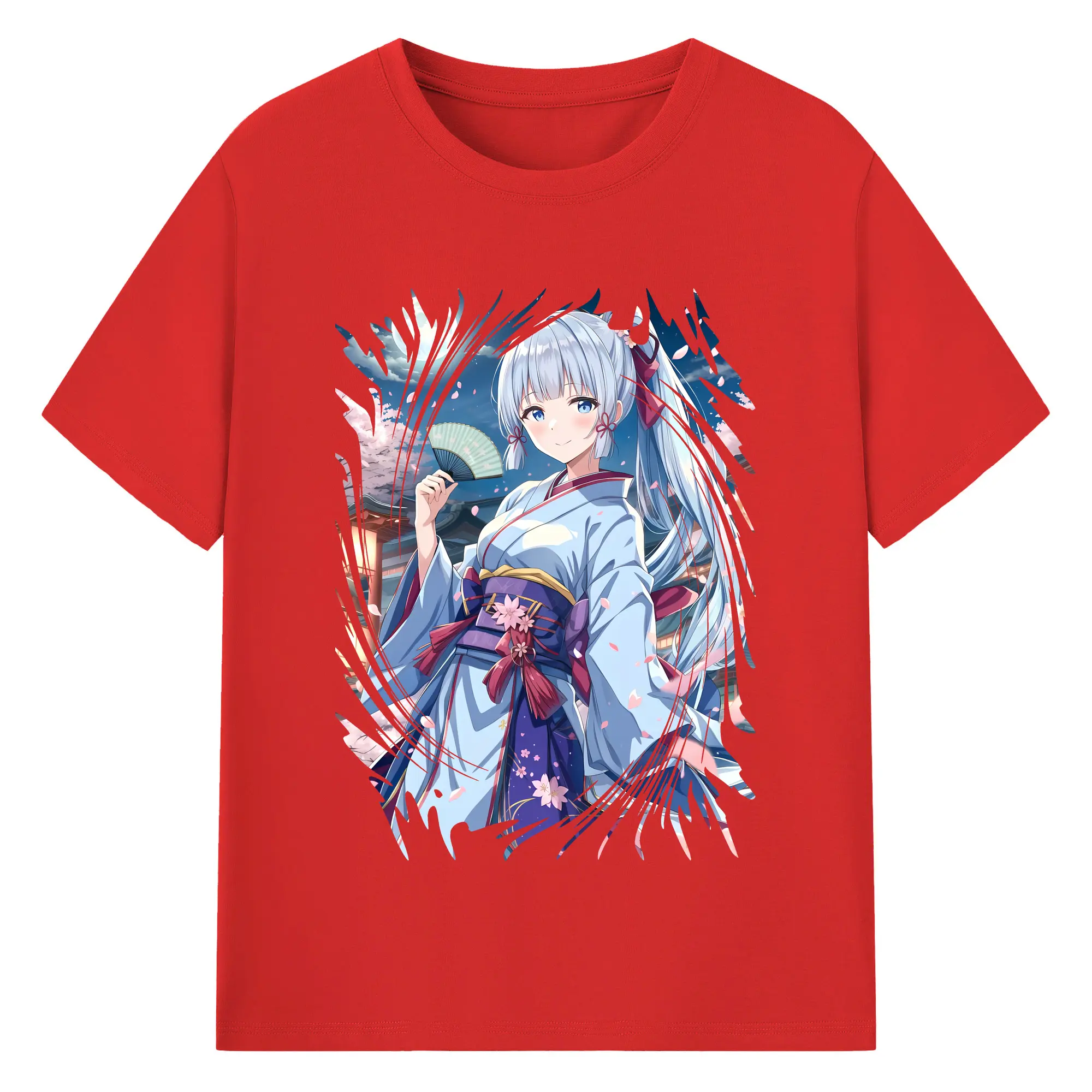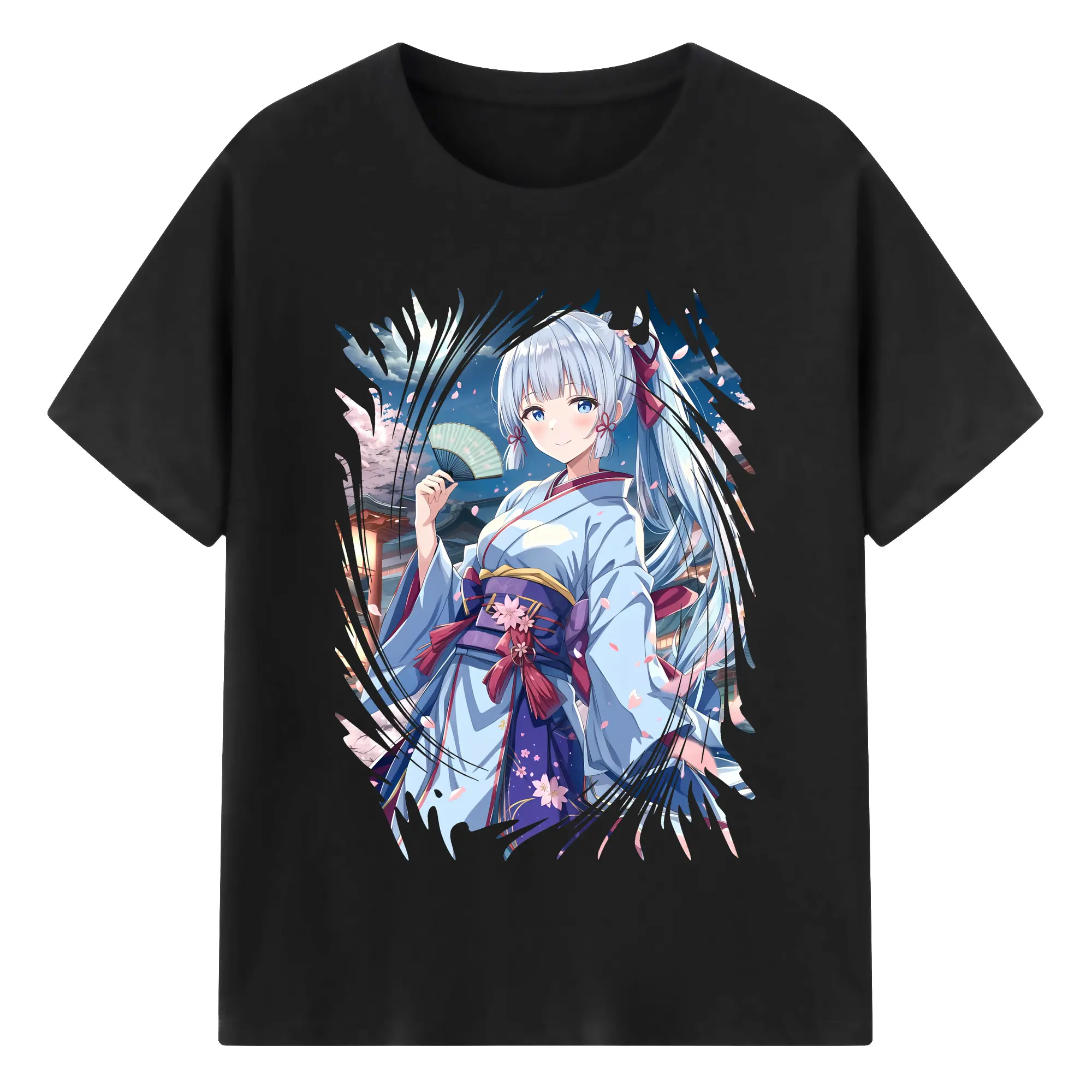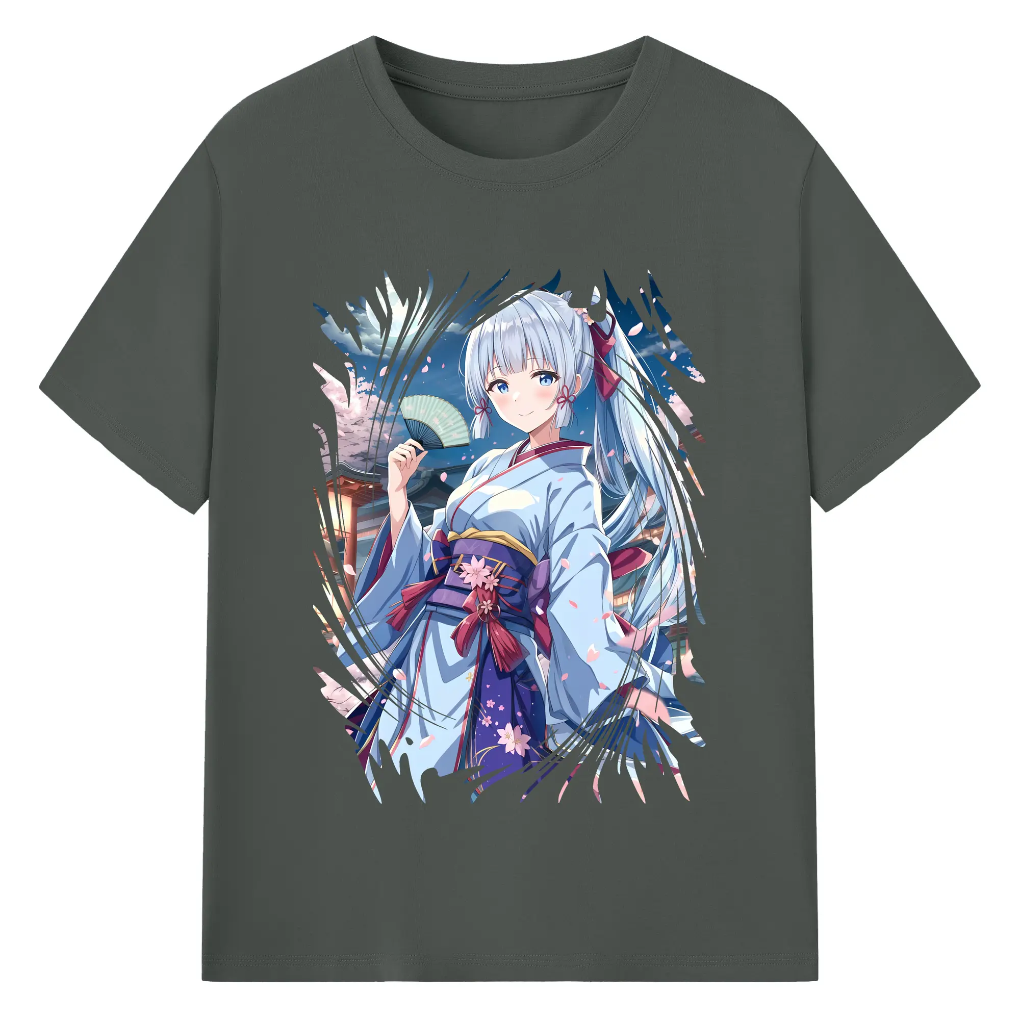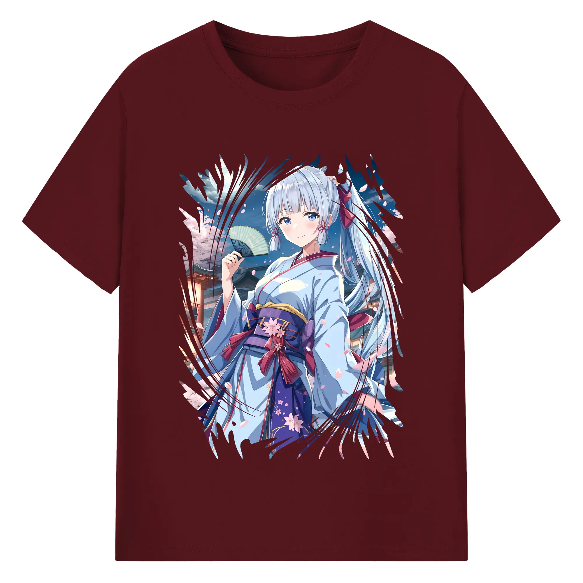 原 神 グッズ 神里綾華 - 綿100% 半袖Tシャツ ・ バックプリント ・ 快適 通気性 ・ 日常使い 散歩 スポーツ用