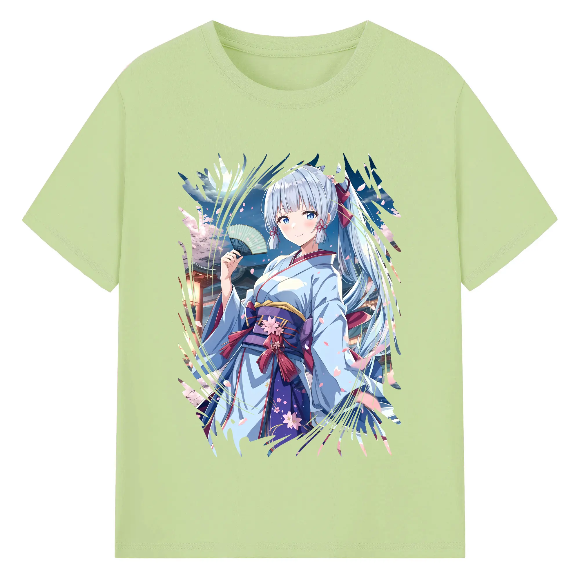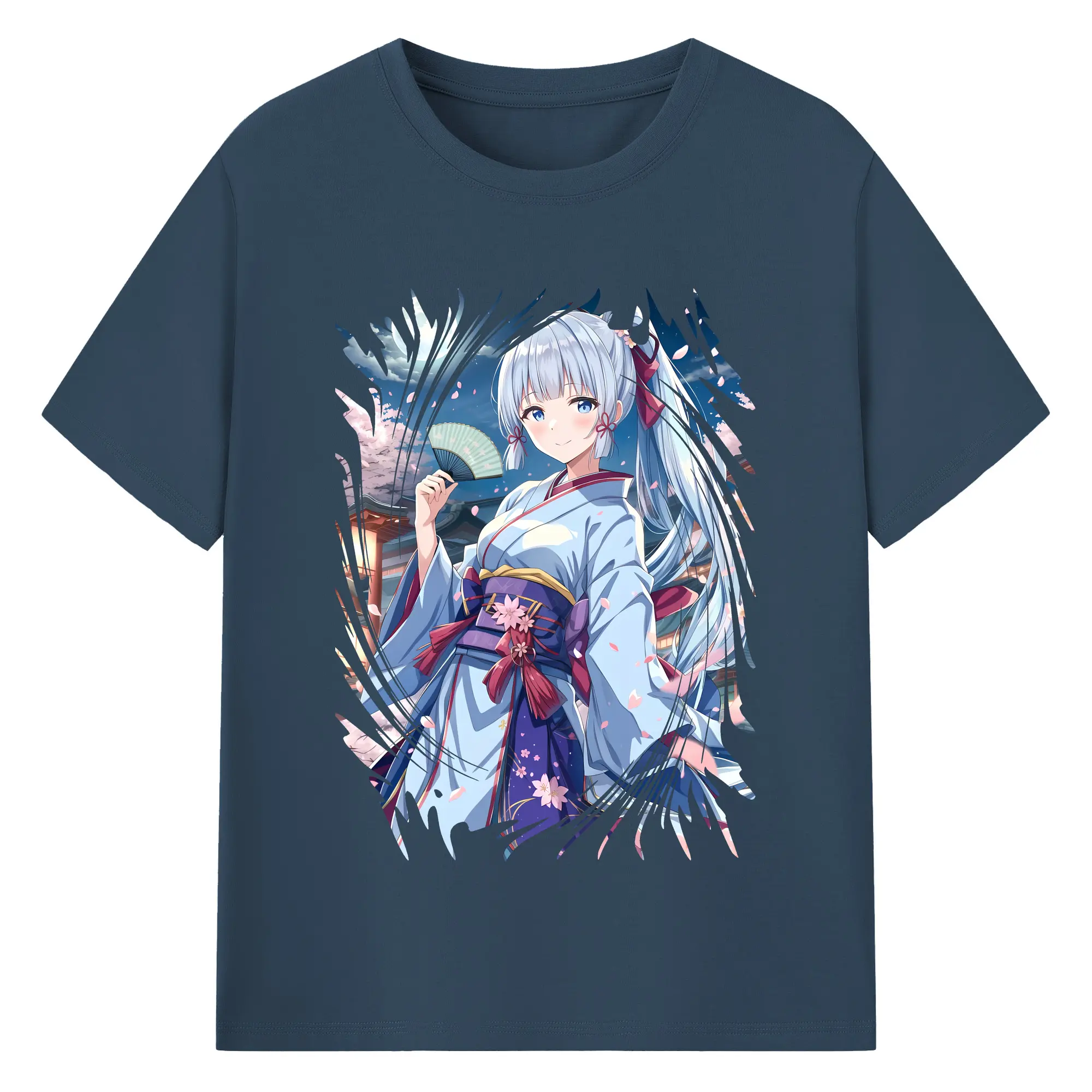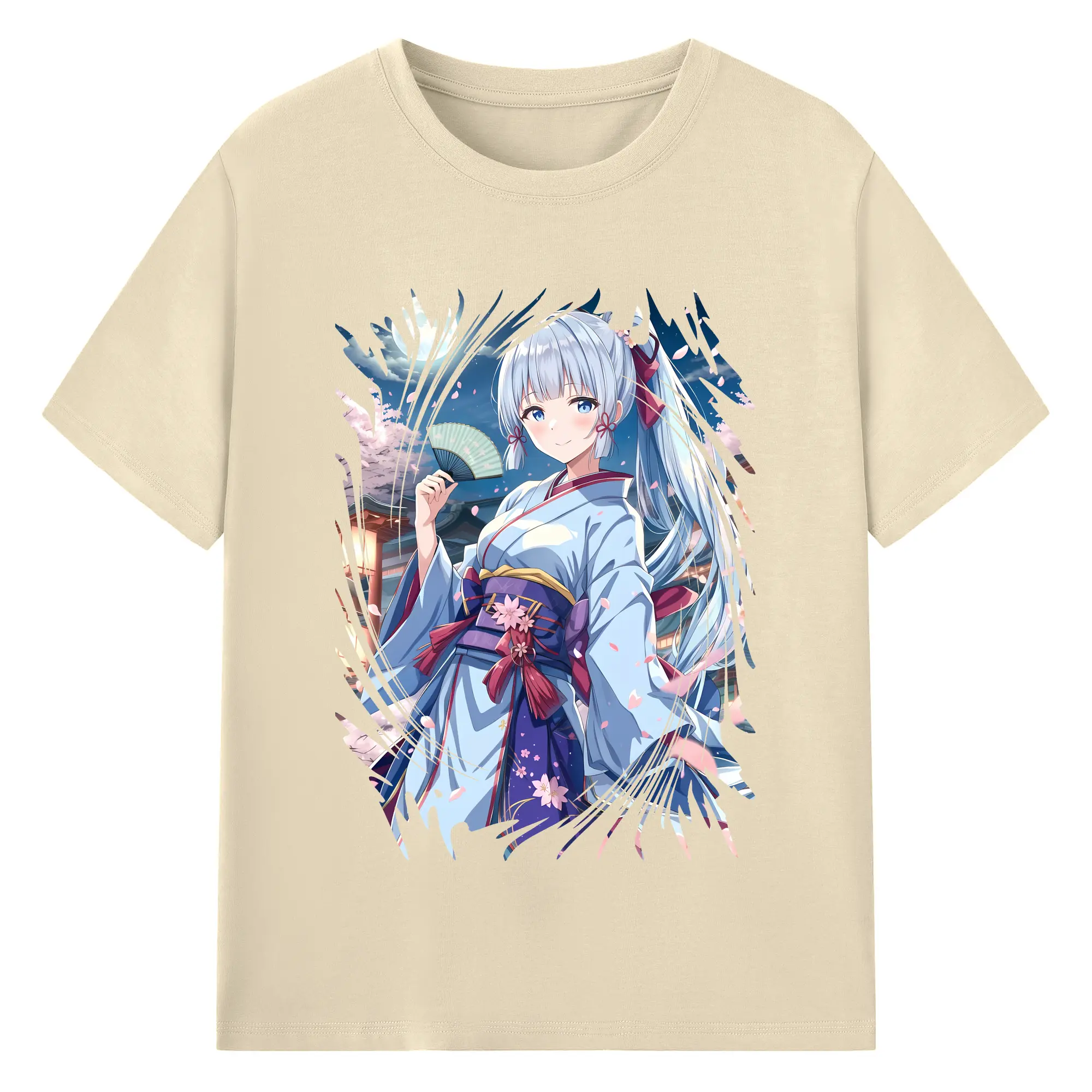 原 神 グッズ 神里綾華 - 綿100% ヴィンテージ風 半袖Tシャツ ・ フロントプリント ・ 柔らか肌触り ・ 通気性 快適 ・ スポーツ カジュアル 外出用