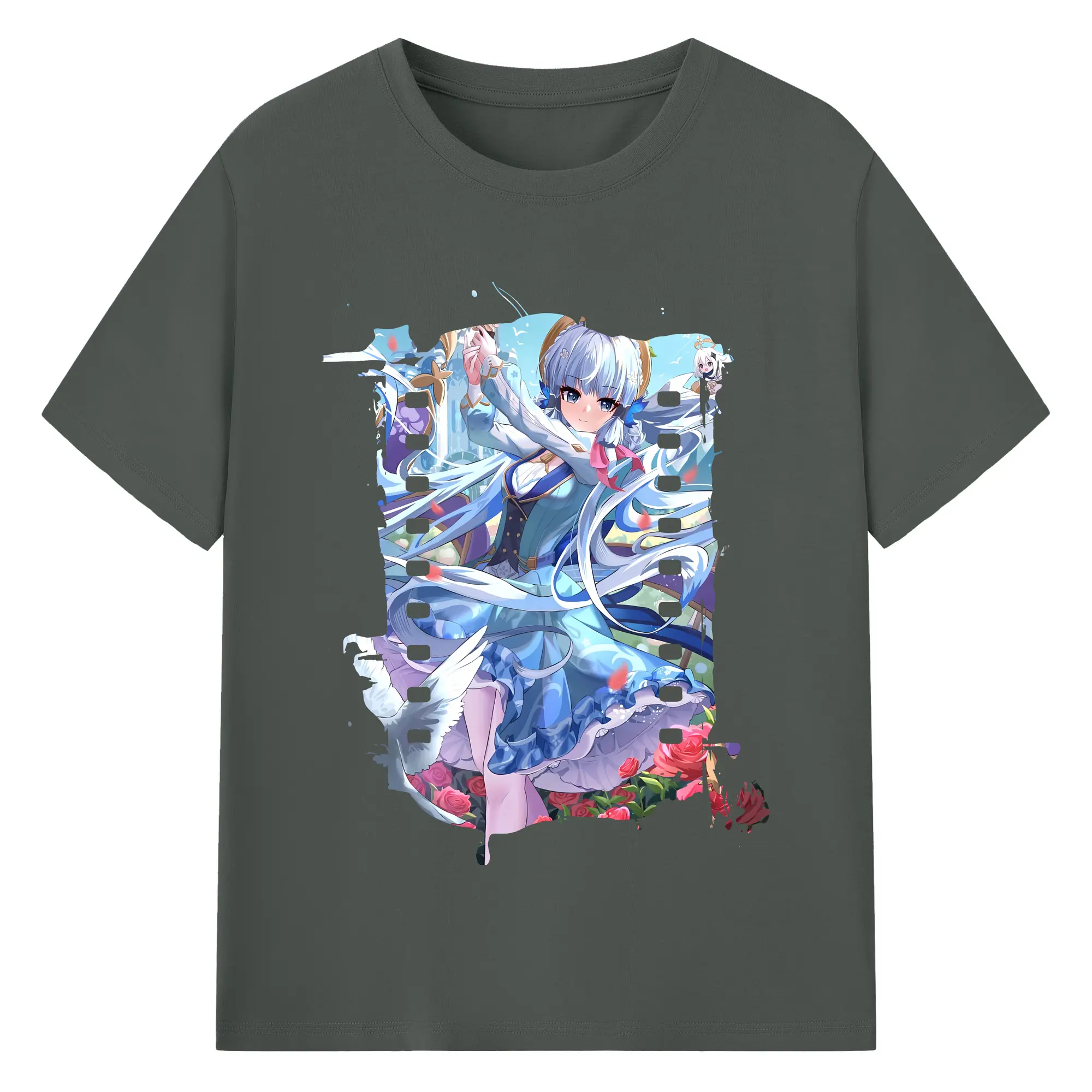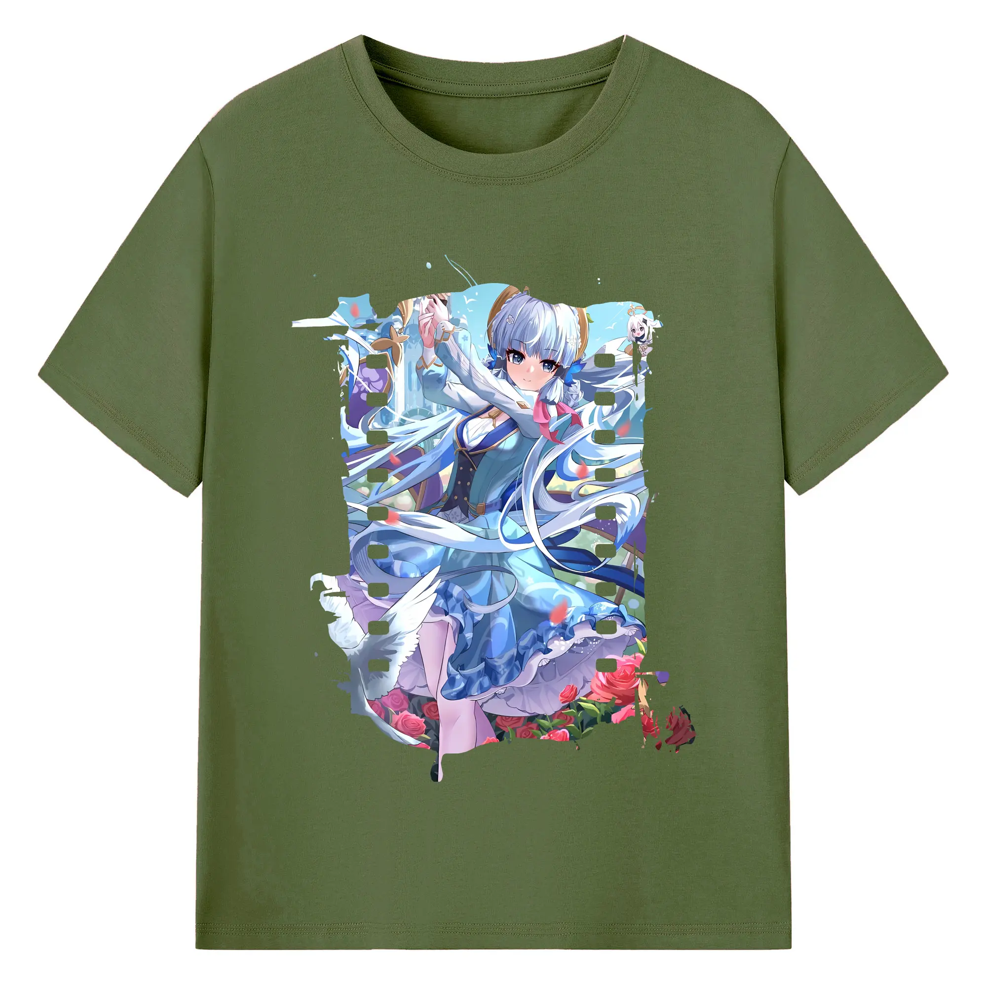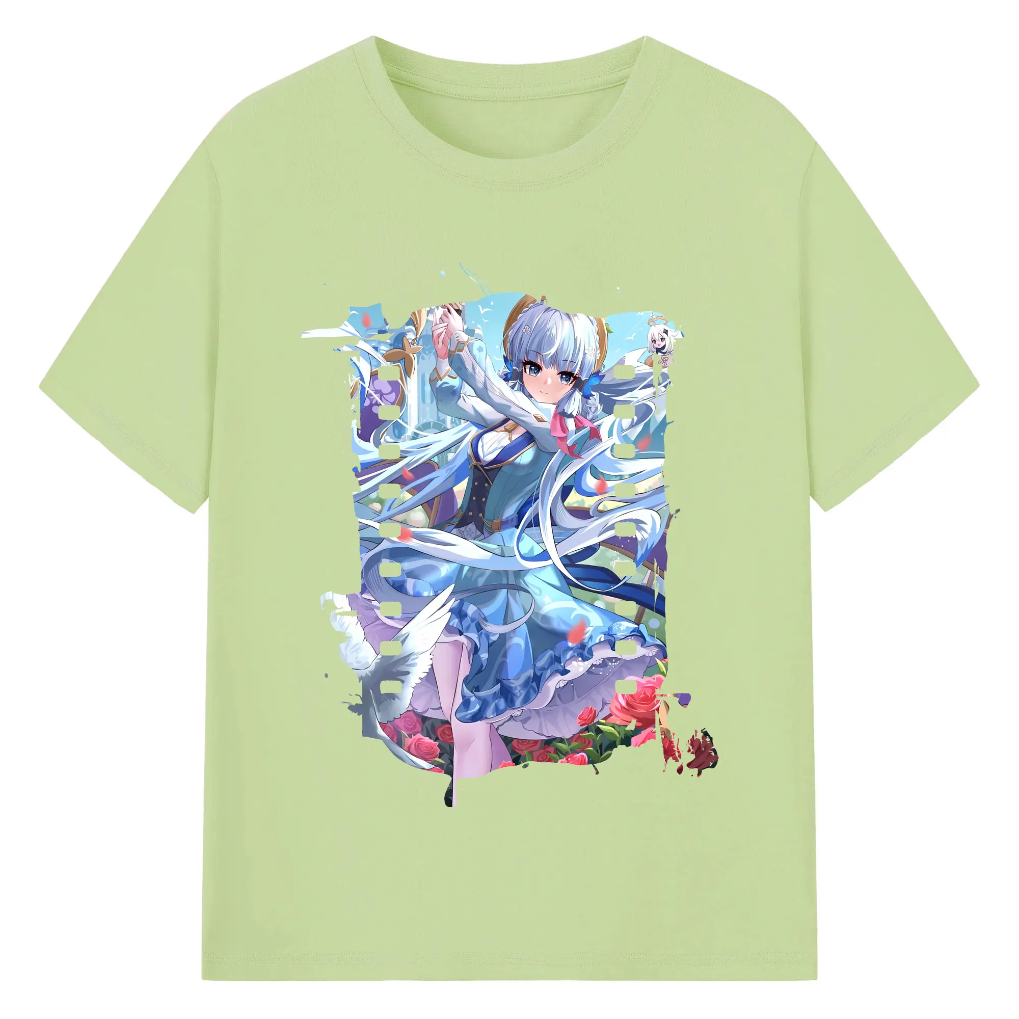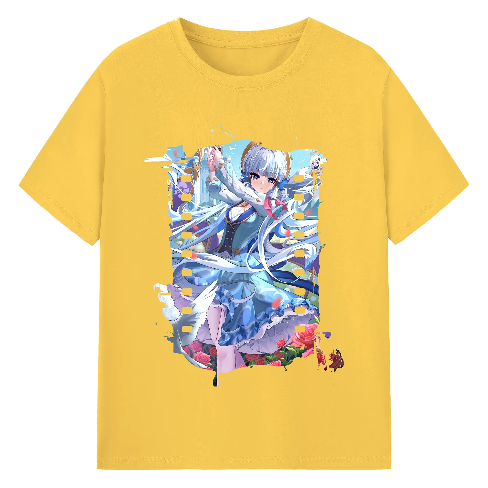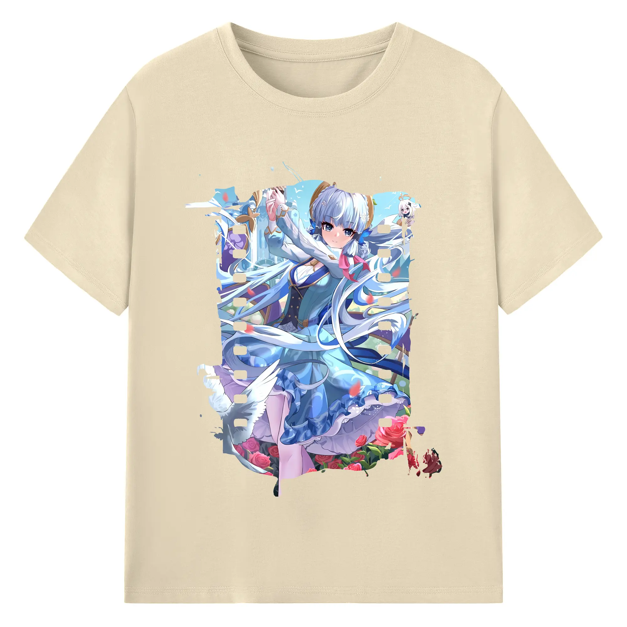 原 神 グッズ 神里綾華 - 綿100% ヴィンテージ風 半袖Tシャツ ・ フロントプリント ・ 柔らか肌触り ・ 通気性 快適 ・ スポーツ カジュアル 外出用