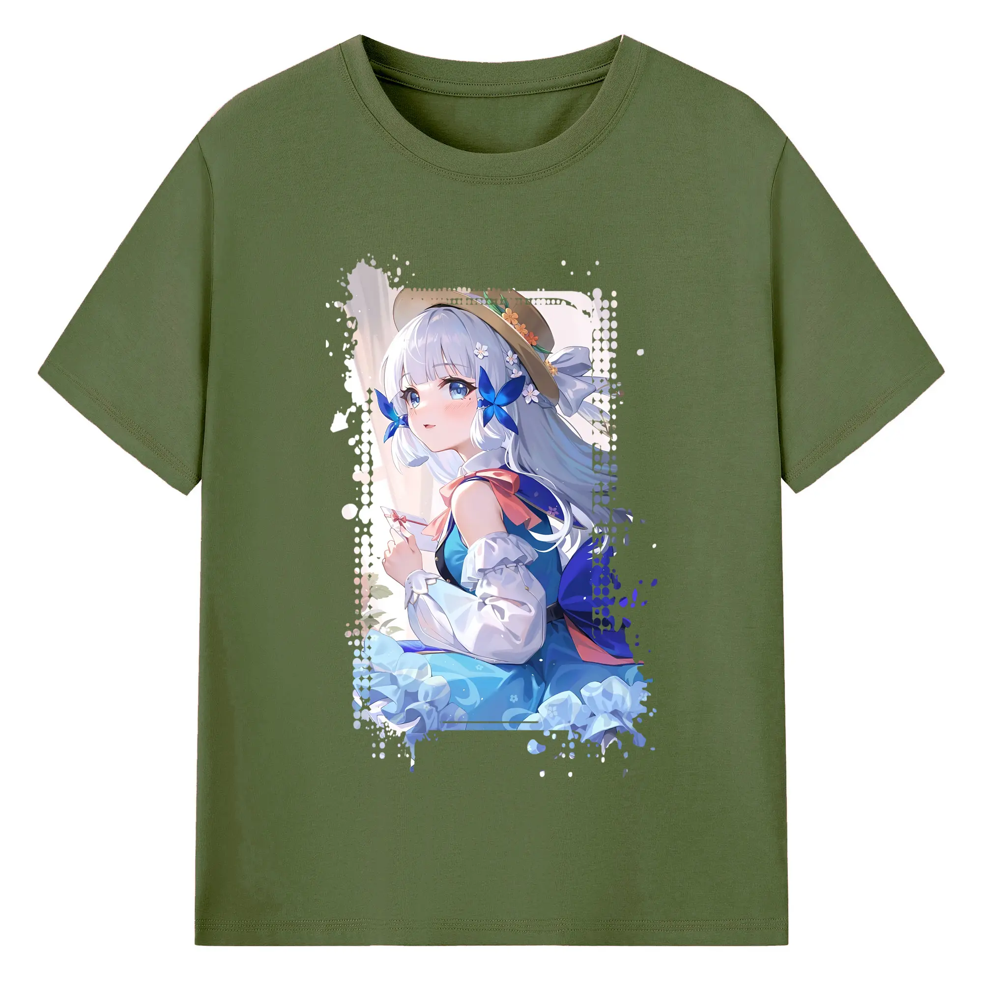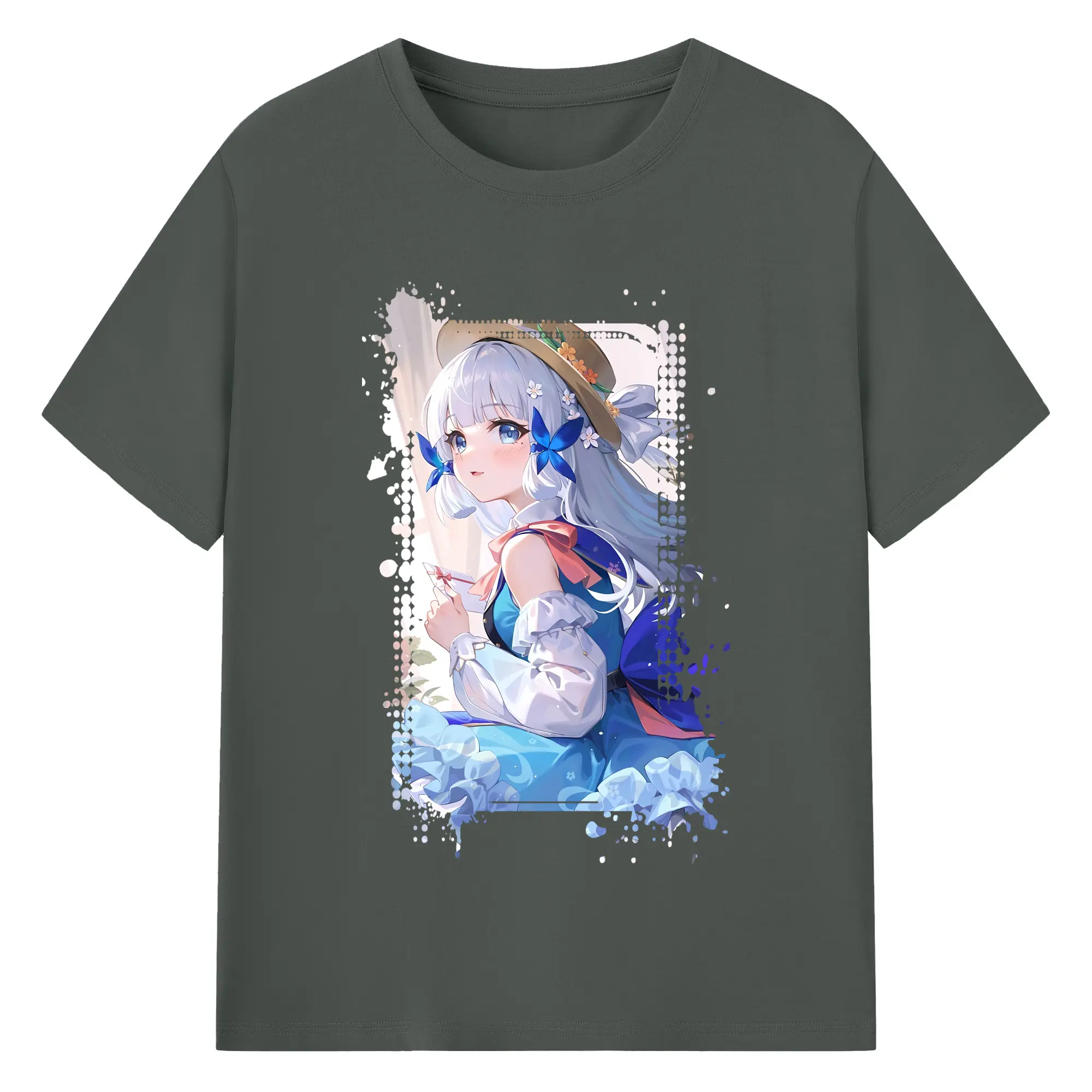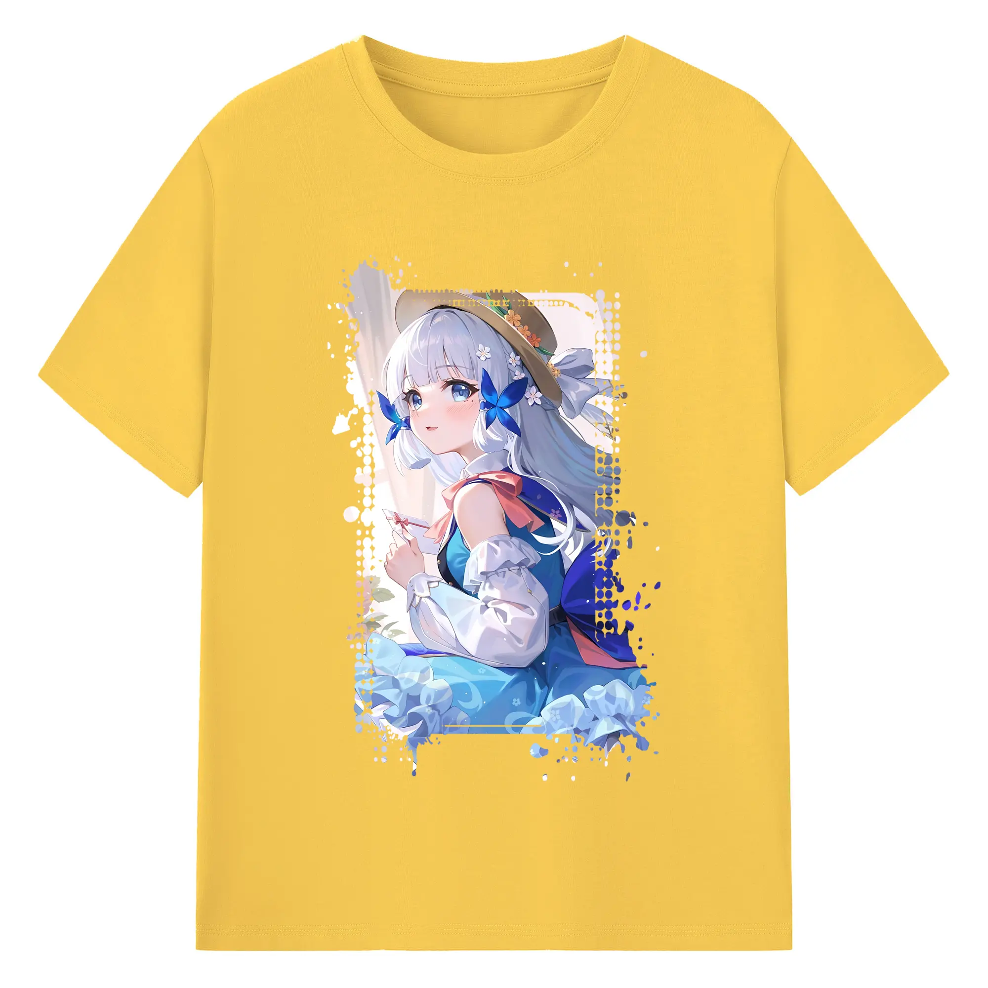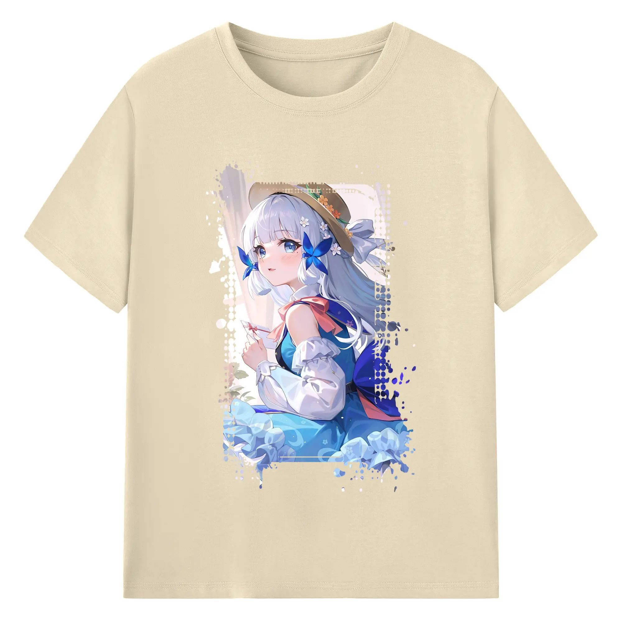 原 神 グッズ 神里綾華 - 綿100% ヴィンテージ風 半袖Tシャツ ・ フロントプリント ・ 柔らか肌触り ・ 通気性 快適 ・ スポーツ カジュアル 外出用