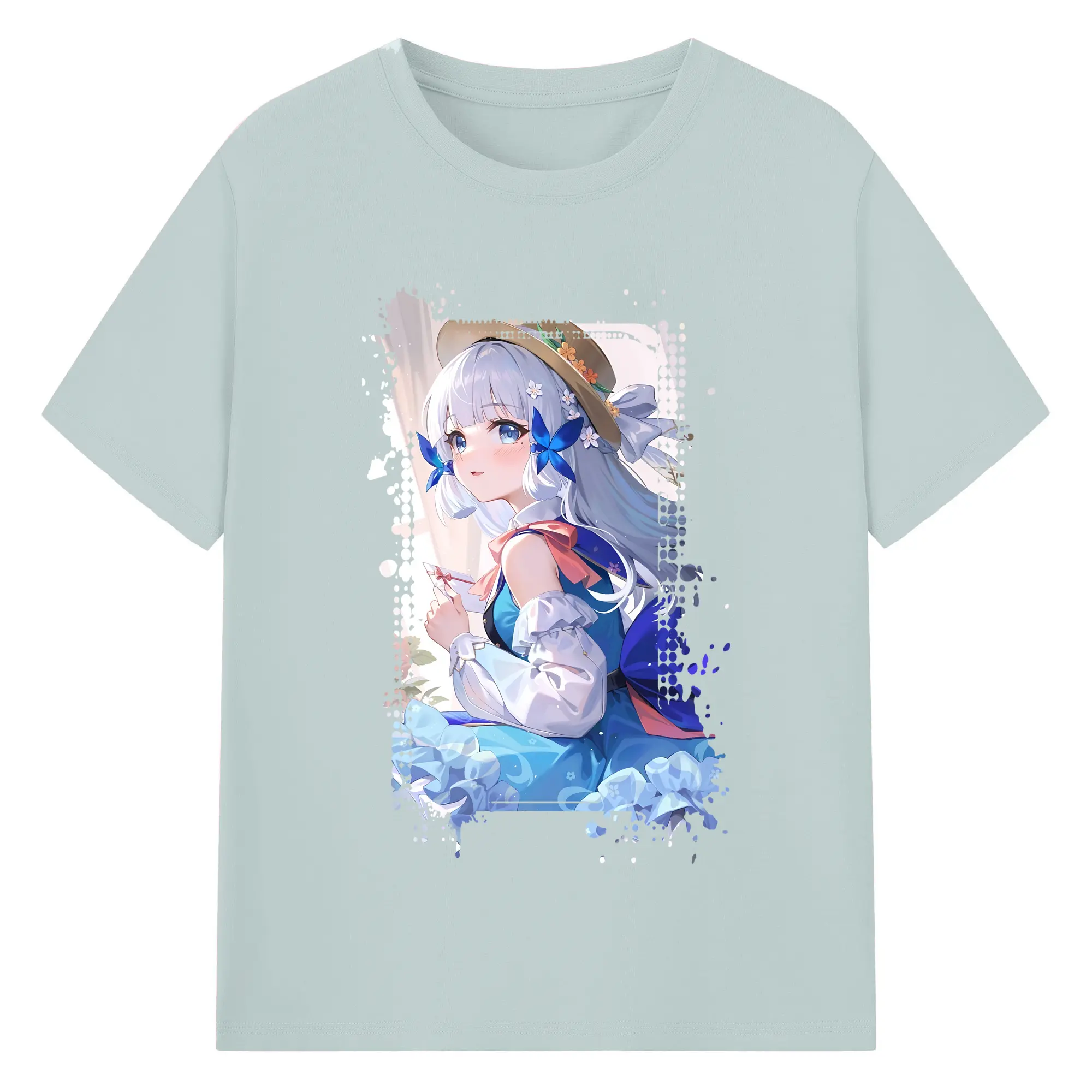 原 神 グッズ 神里綾華 - 綿100% 半袖Tシャツ ・ バックプリント ・ 快適 通気性 ・ 日常使い 散歩 スポーツ用