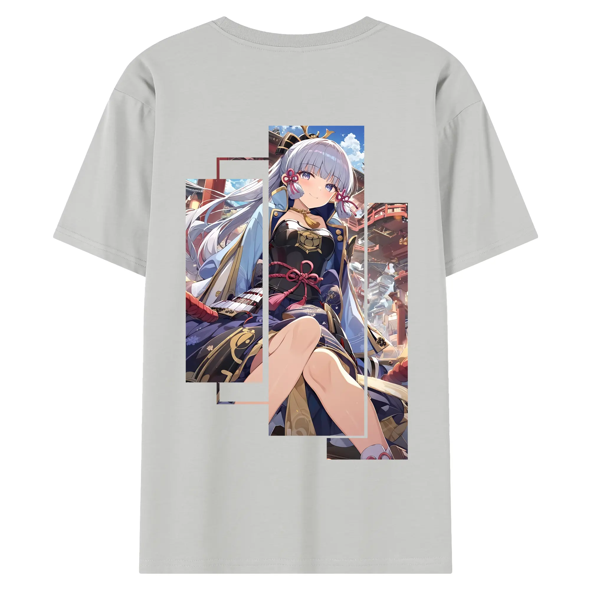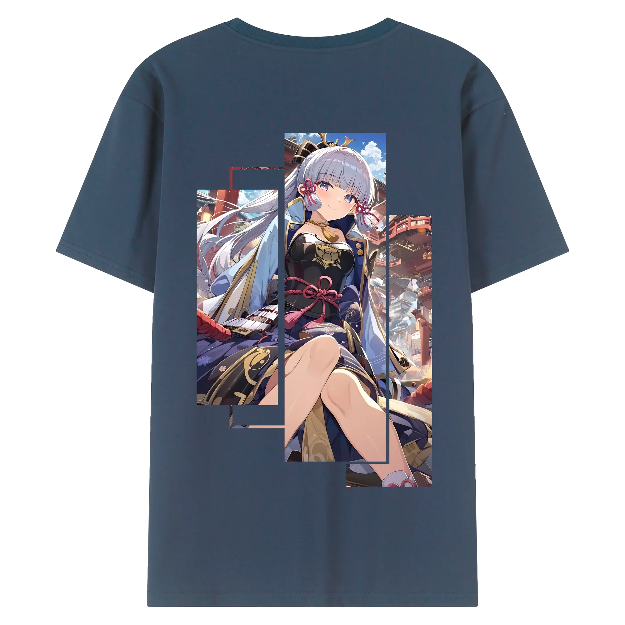 原 神 グッズ 神里綾華 - 綿100% ヴィンテージ風 半袖Tシャツ ・ 背面プリント ・ 柔らか肌触り ・ 通気性 快適 ・ スポーツ カジュアル 外出用