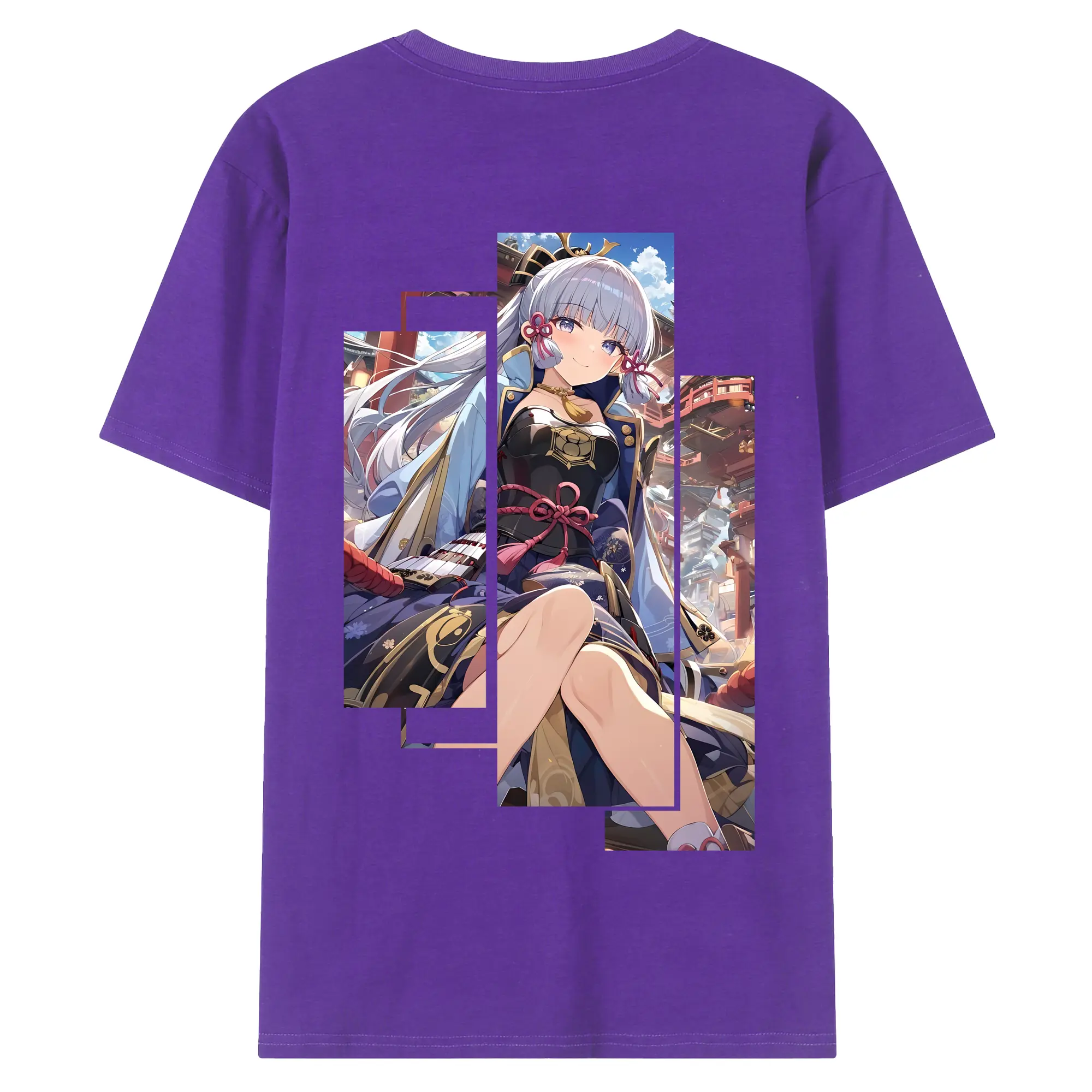 原 神 グッズ 神里綾華 - 綿100% 半袖Tシャツ ・ フロントプリント ・ 快適 通気性 ・ 日常使い 散歩 スポーツ用