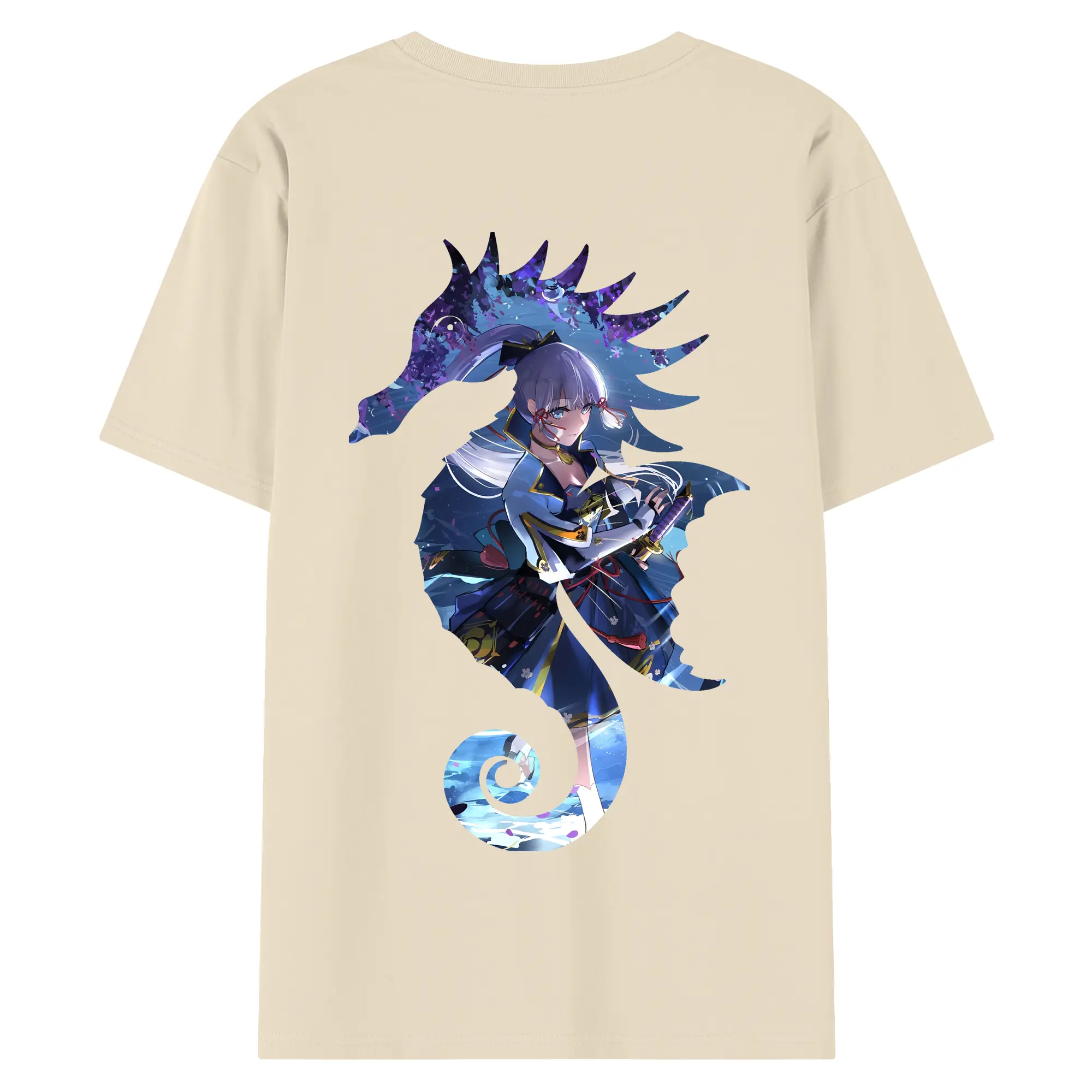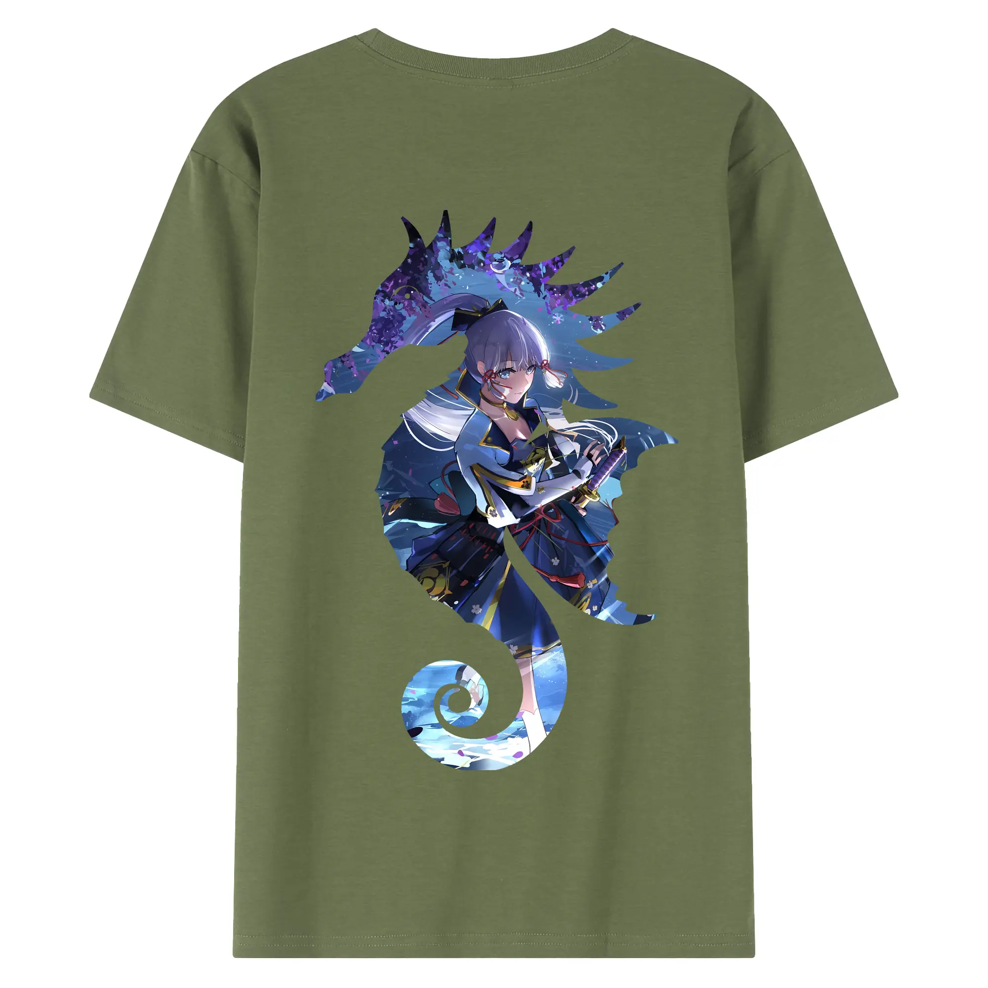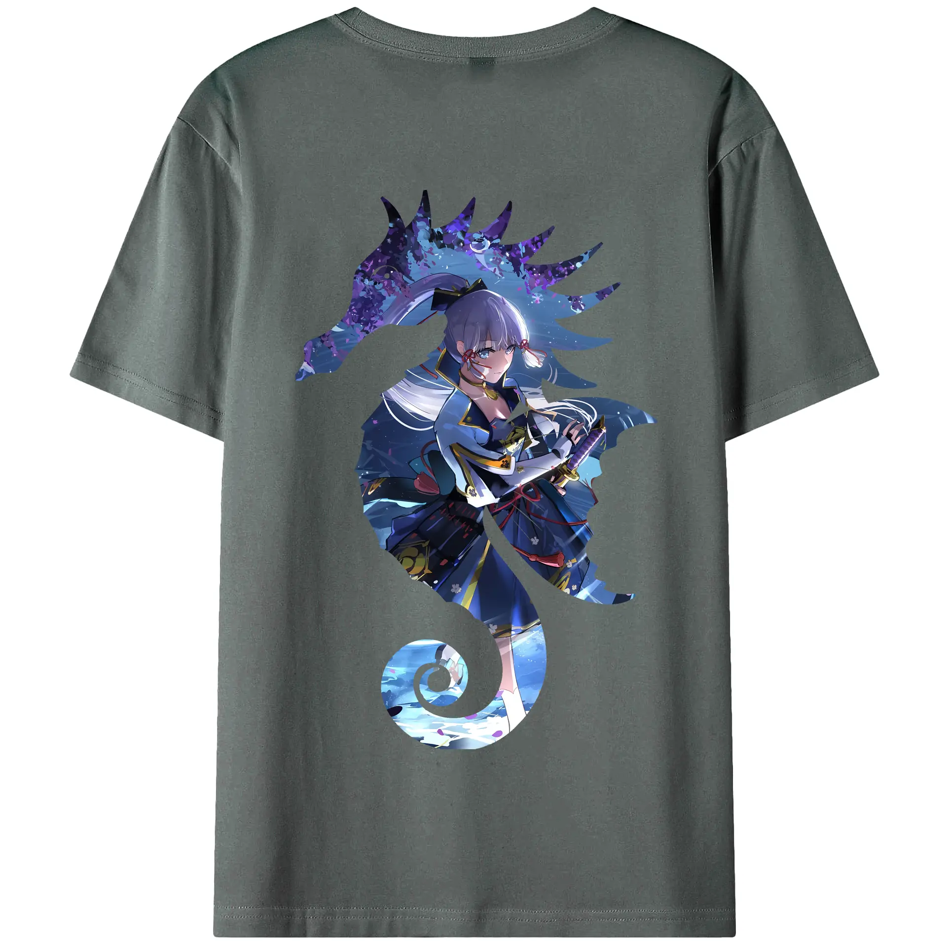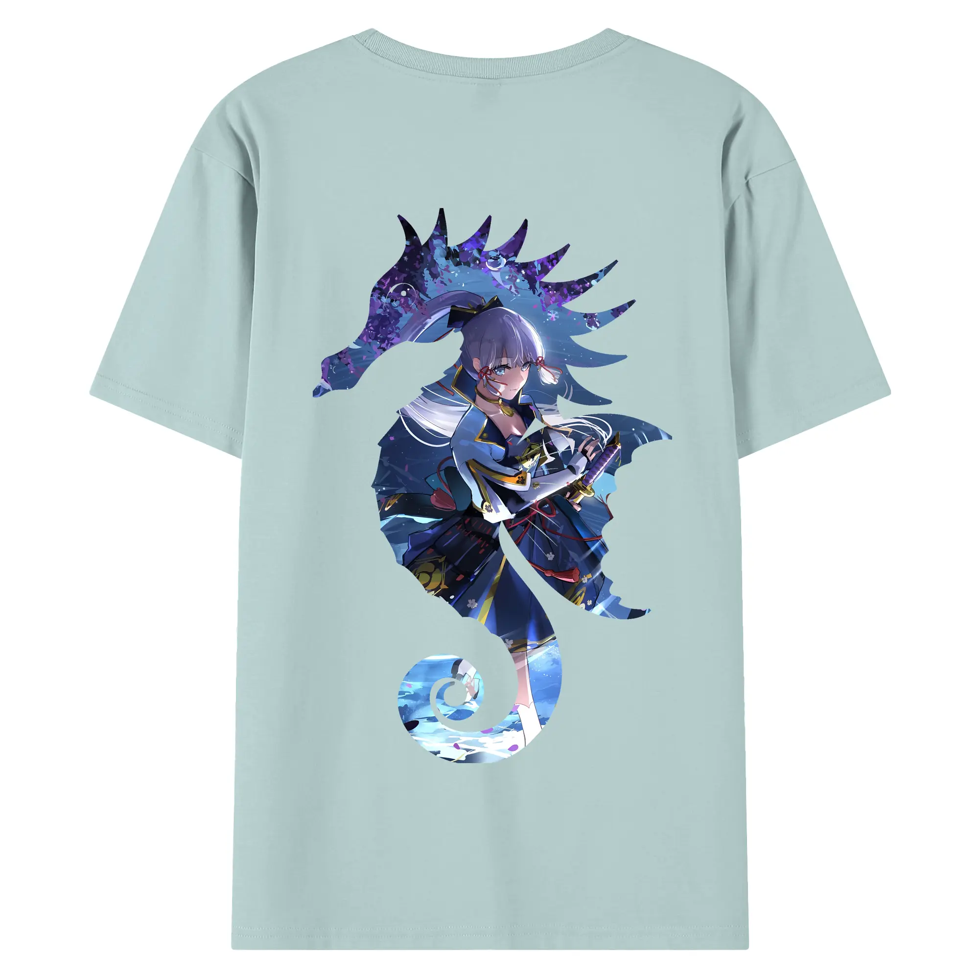 原 神 グッズ 神里綾華 - 綿100% 半袖Tシャツ ・ フロントプリント ・ 快適 通気性 ・ 日常使い 散歩 スポーツ用