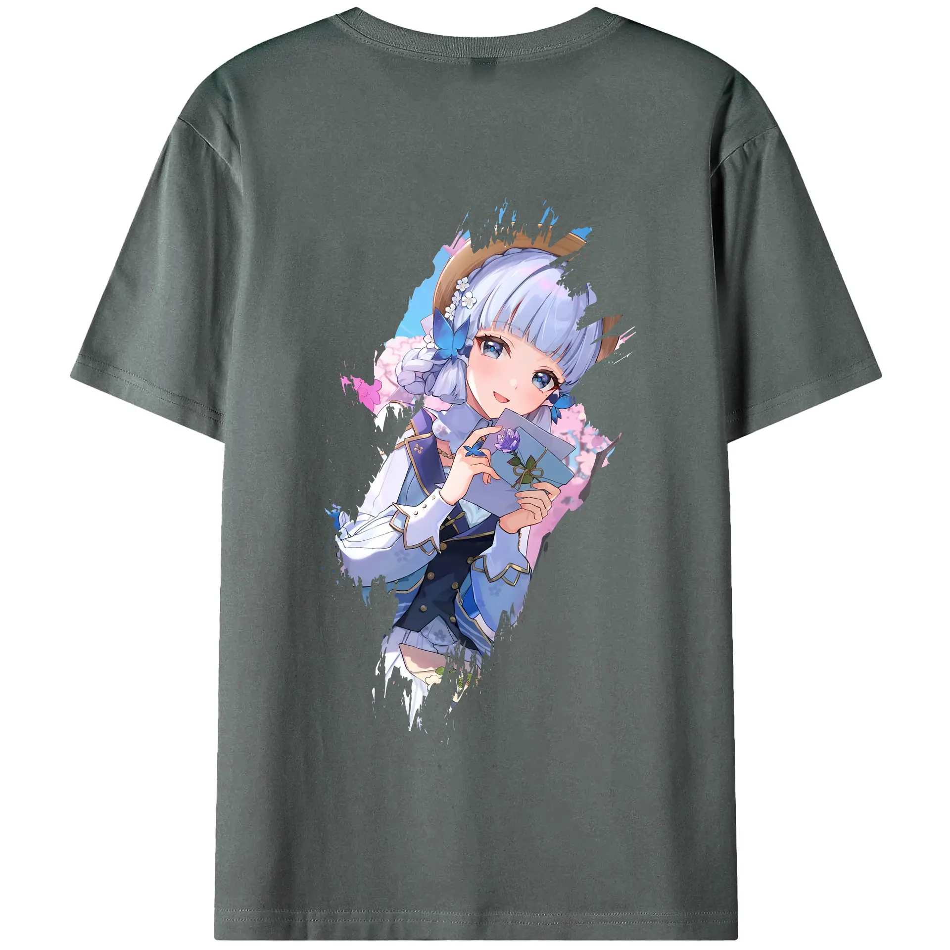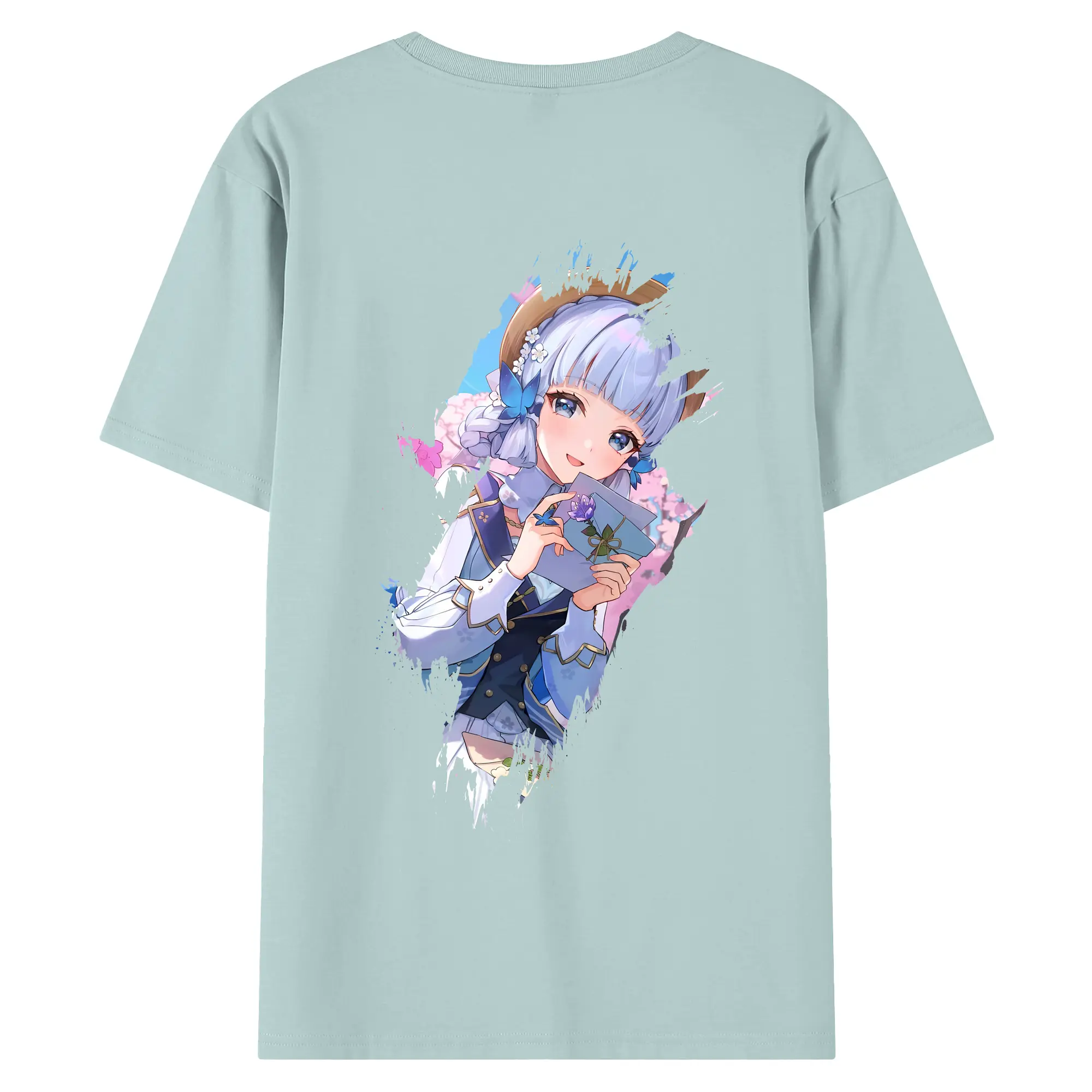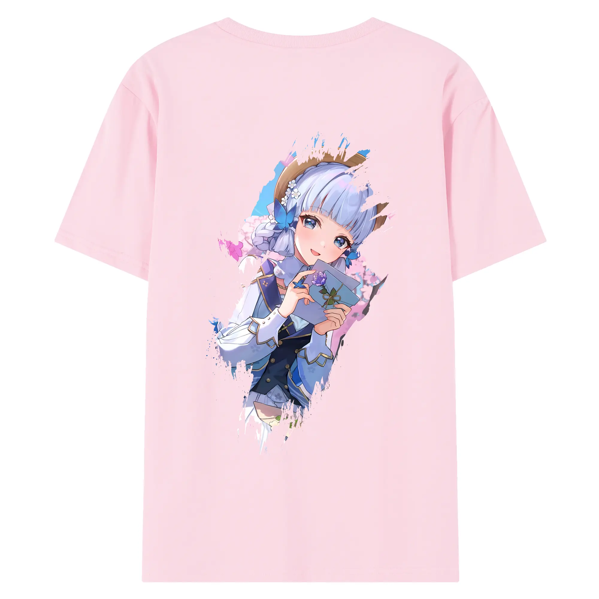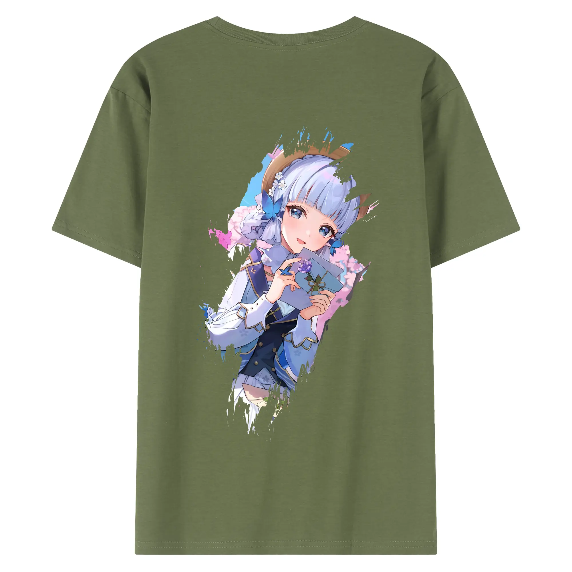 原 神 グッズ 神里綾華 - 綿100% 半袖Tシャツ ・ フロントプリント ・ 快適 通気性 ・ 日常使い 散歩 スポーツ用