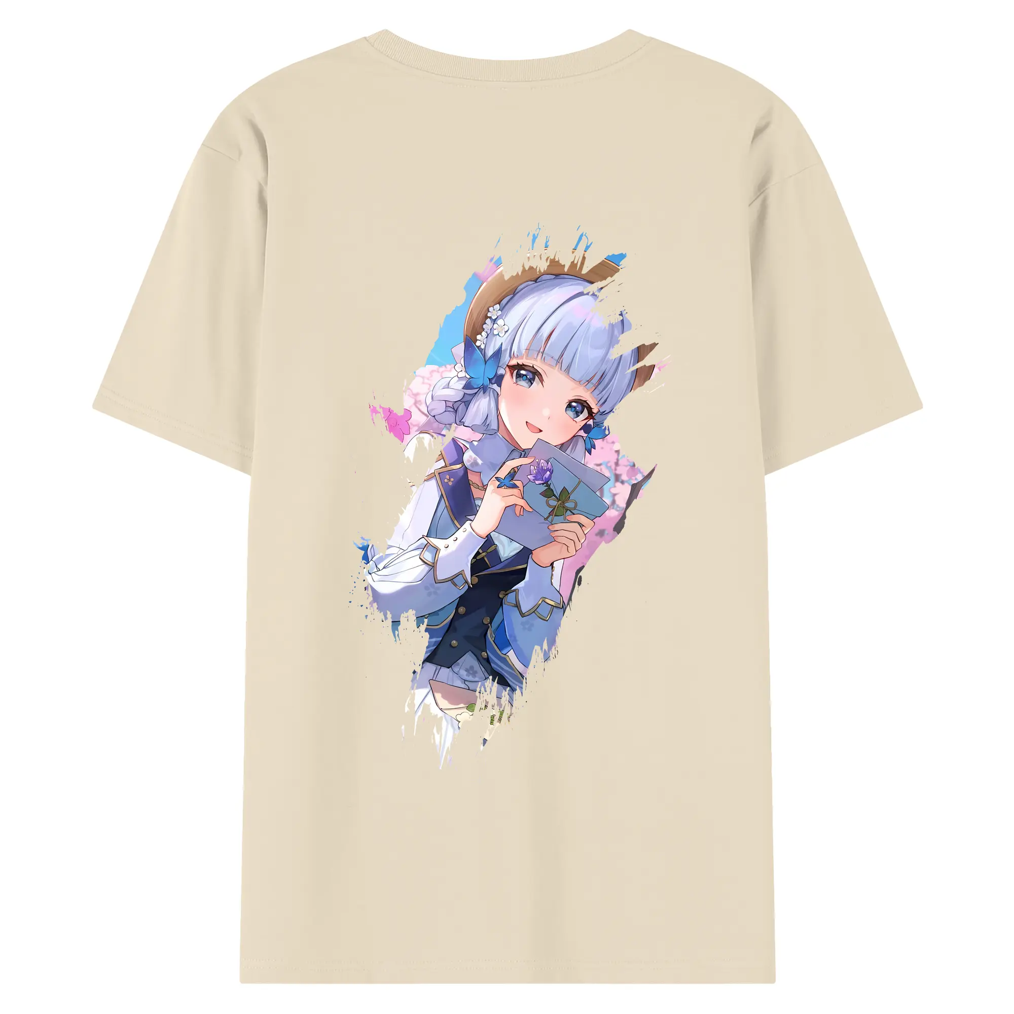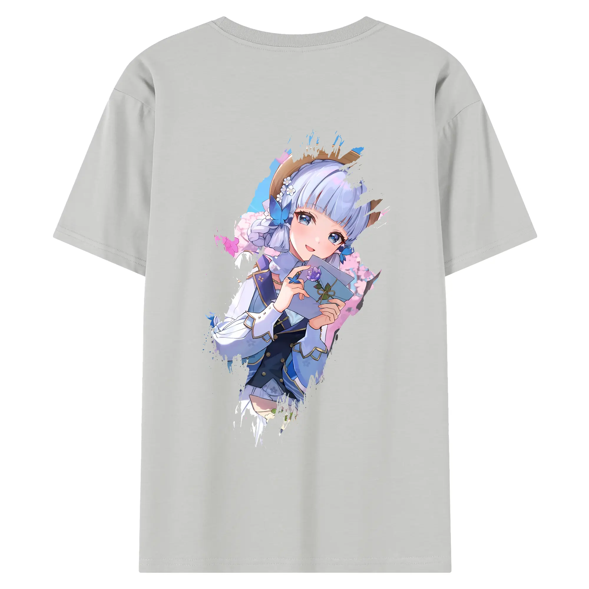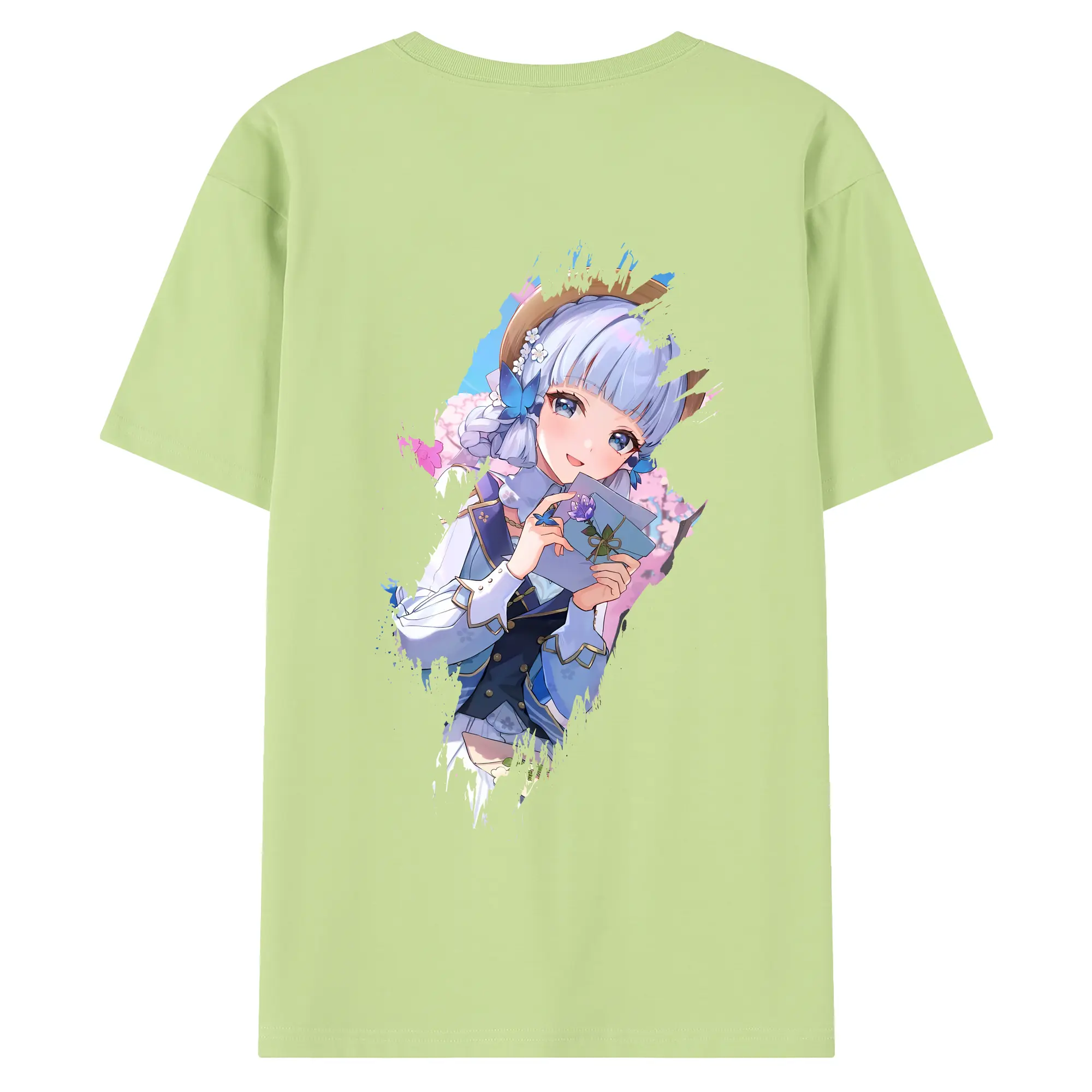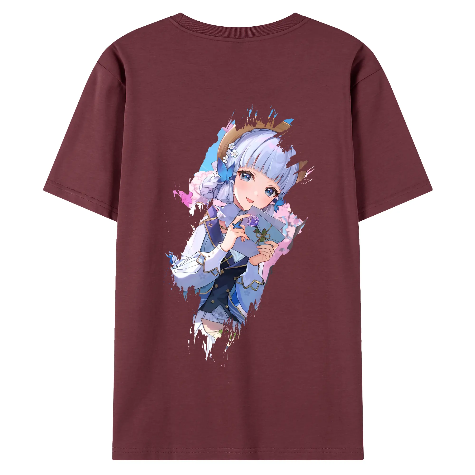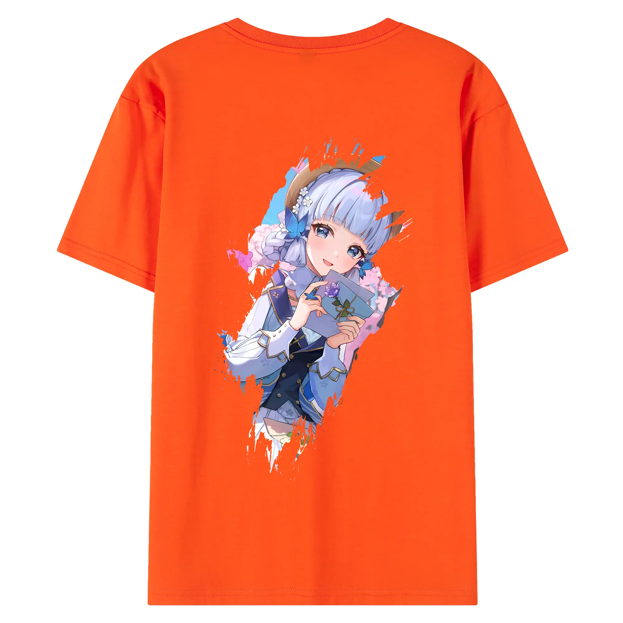 原 神 グッズ 神里綾華 - 綿100% ヴィンテージ風 半袖Tシャツ ・ 背面プリント ・ 柔らか肌触り ・ 通気性 快適 ・ スポーツ カジュアル 外出用