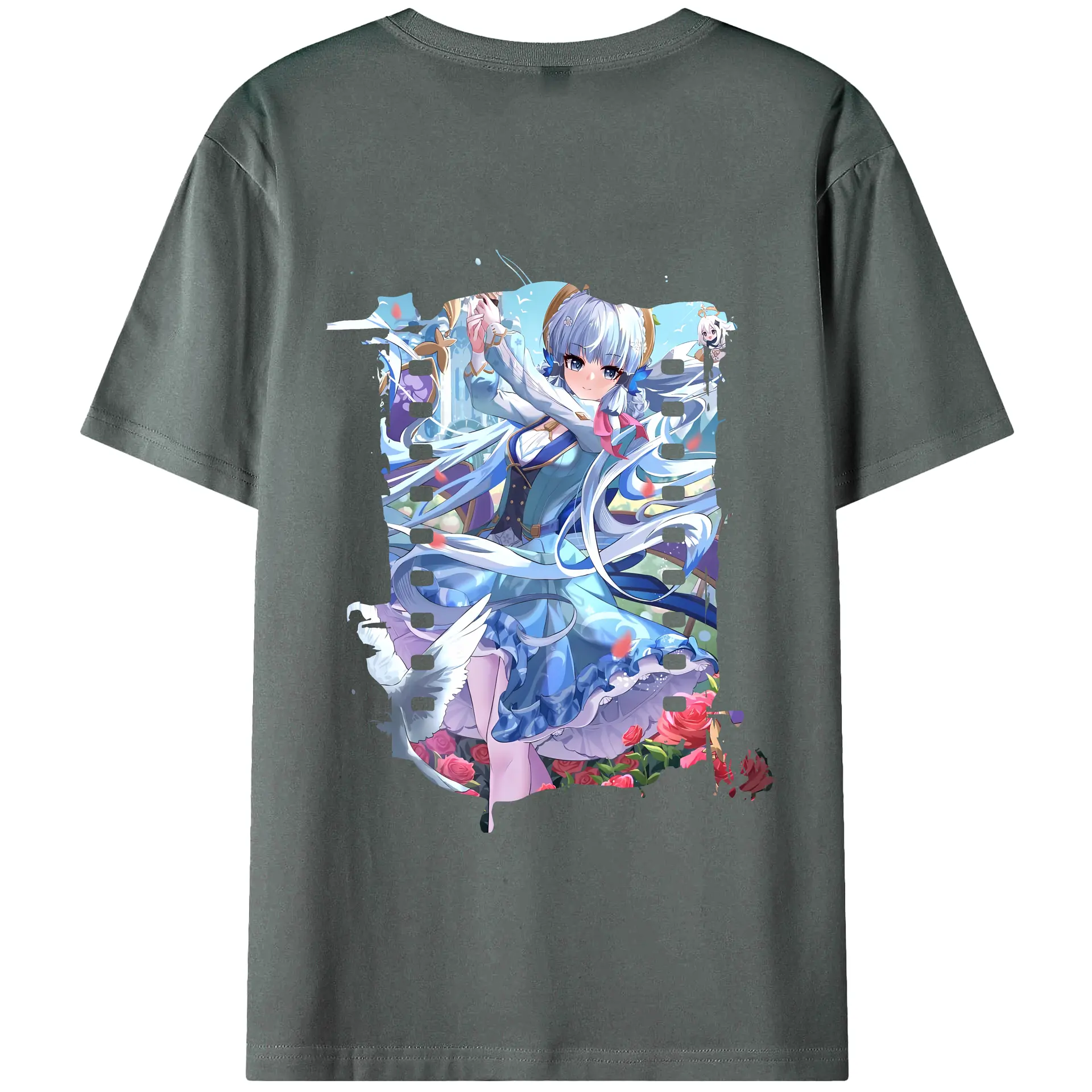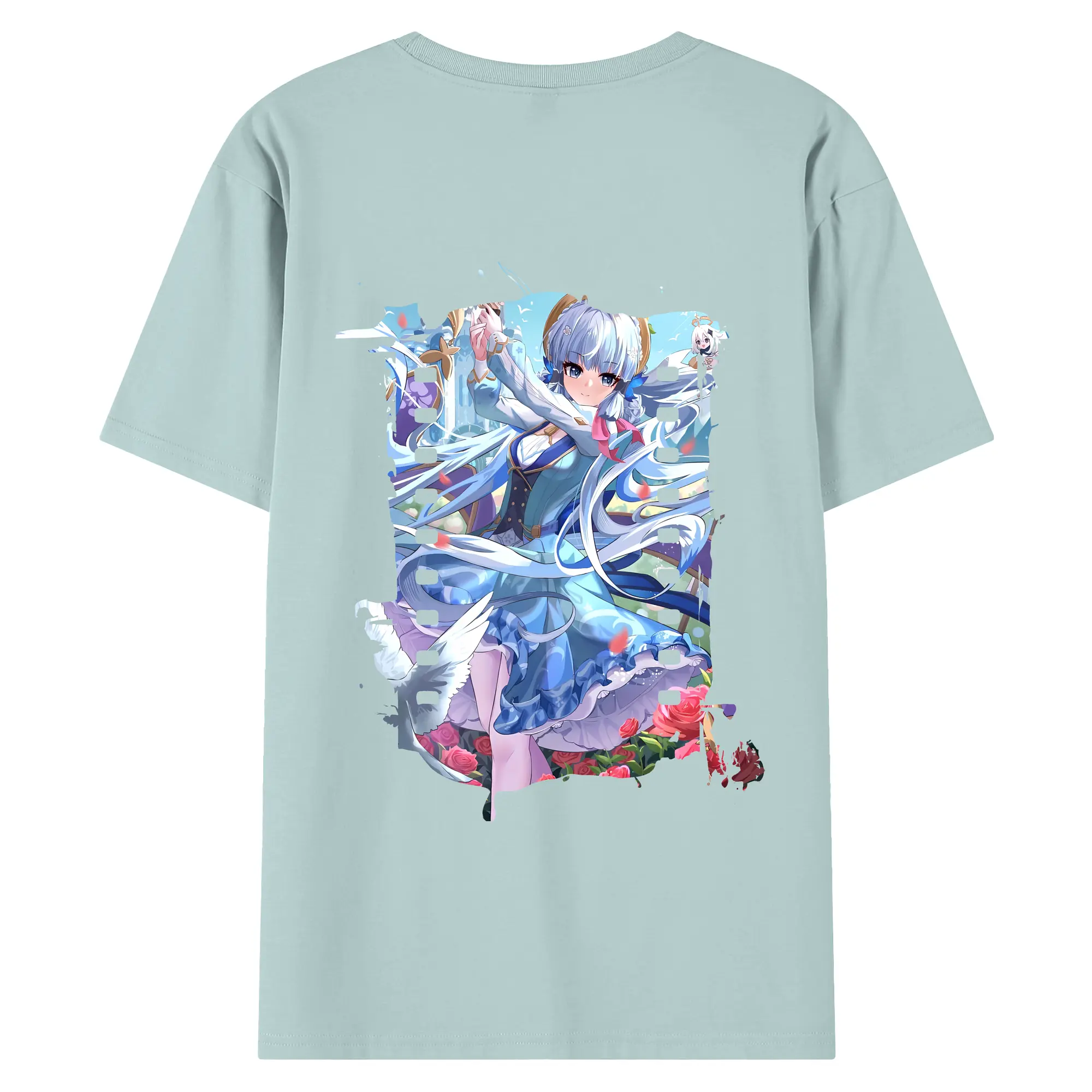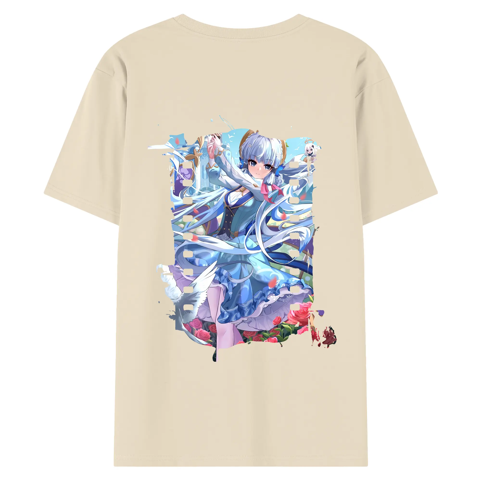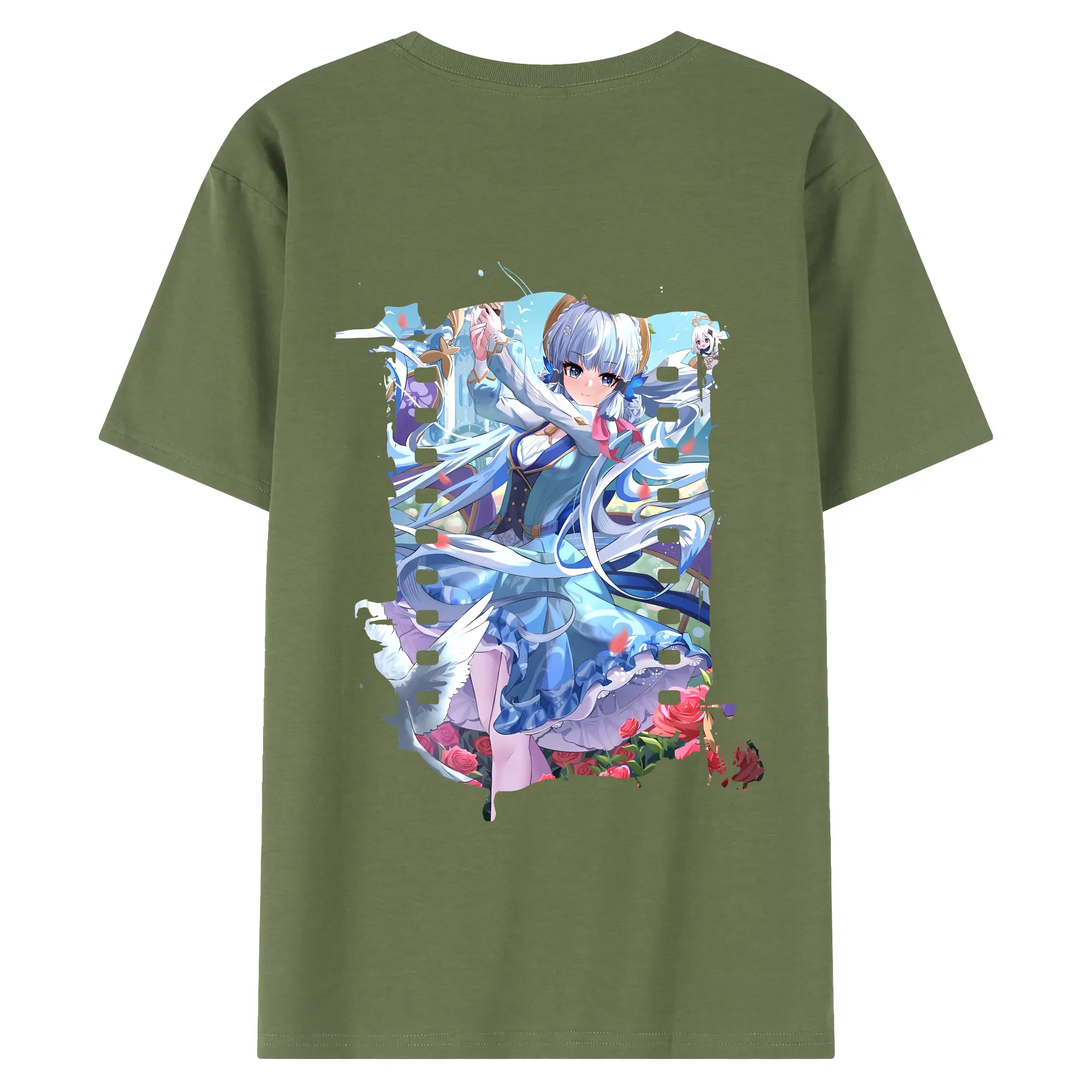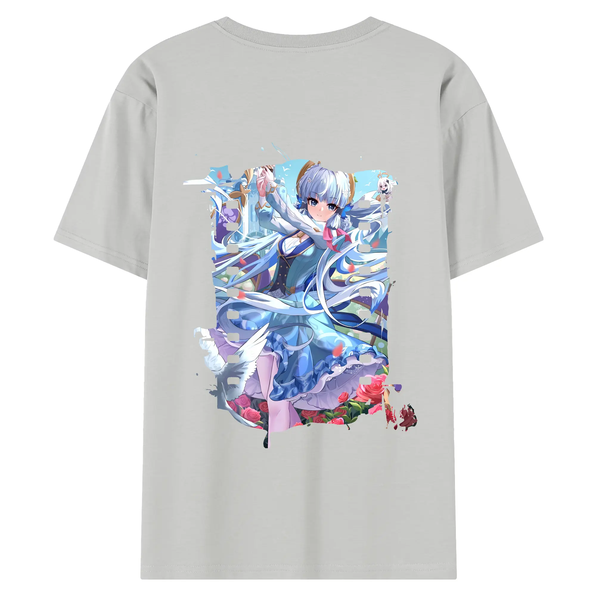 原 神 グッズ 神里綾華 - 綿100% ヴィンテージ風 半袖Tシャツ ・ 背面プリント ・ 柔らか肌触り ・ 通気性 快適 ・ スポーツ カジュアル 外出用