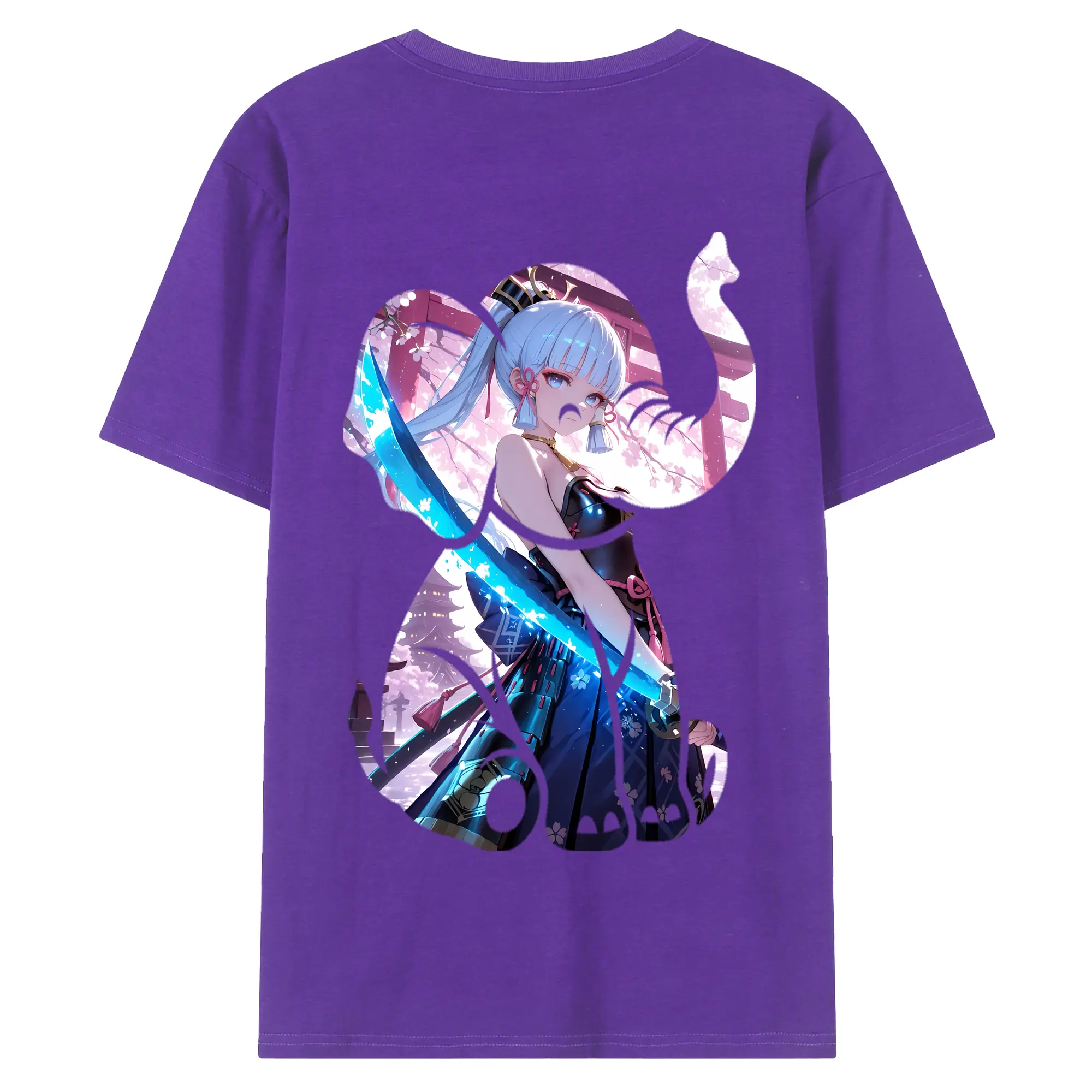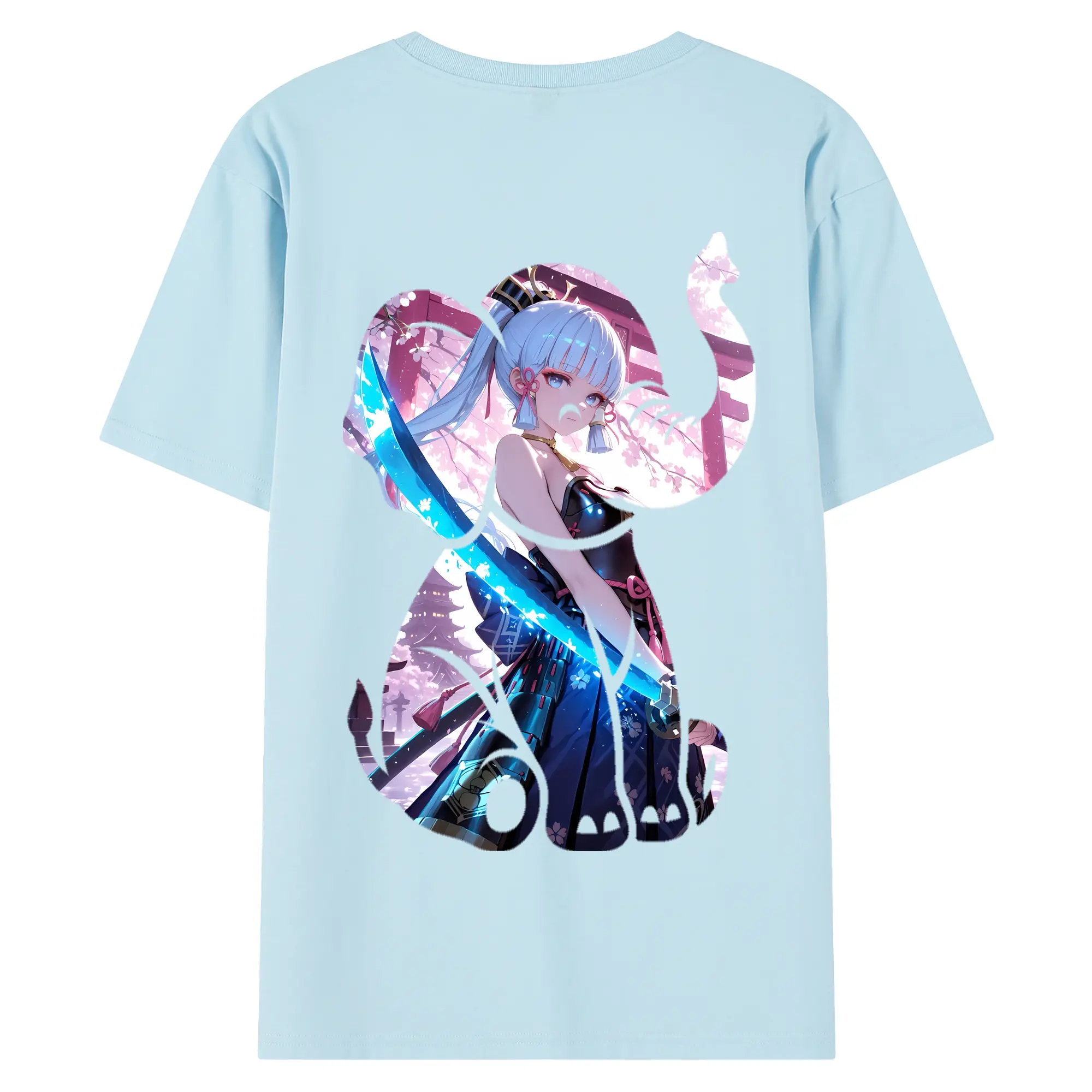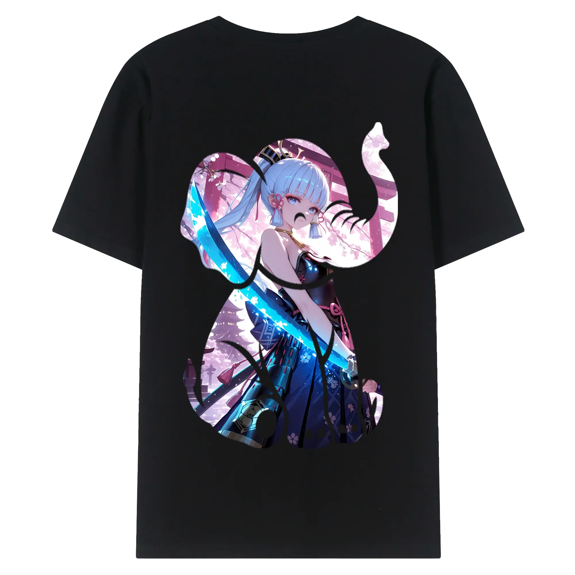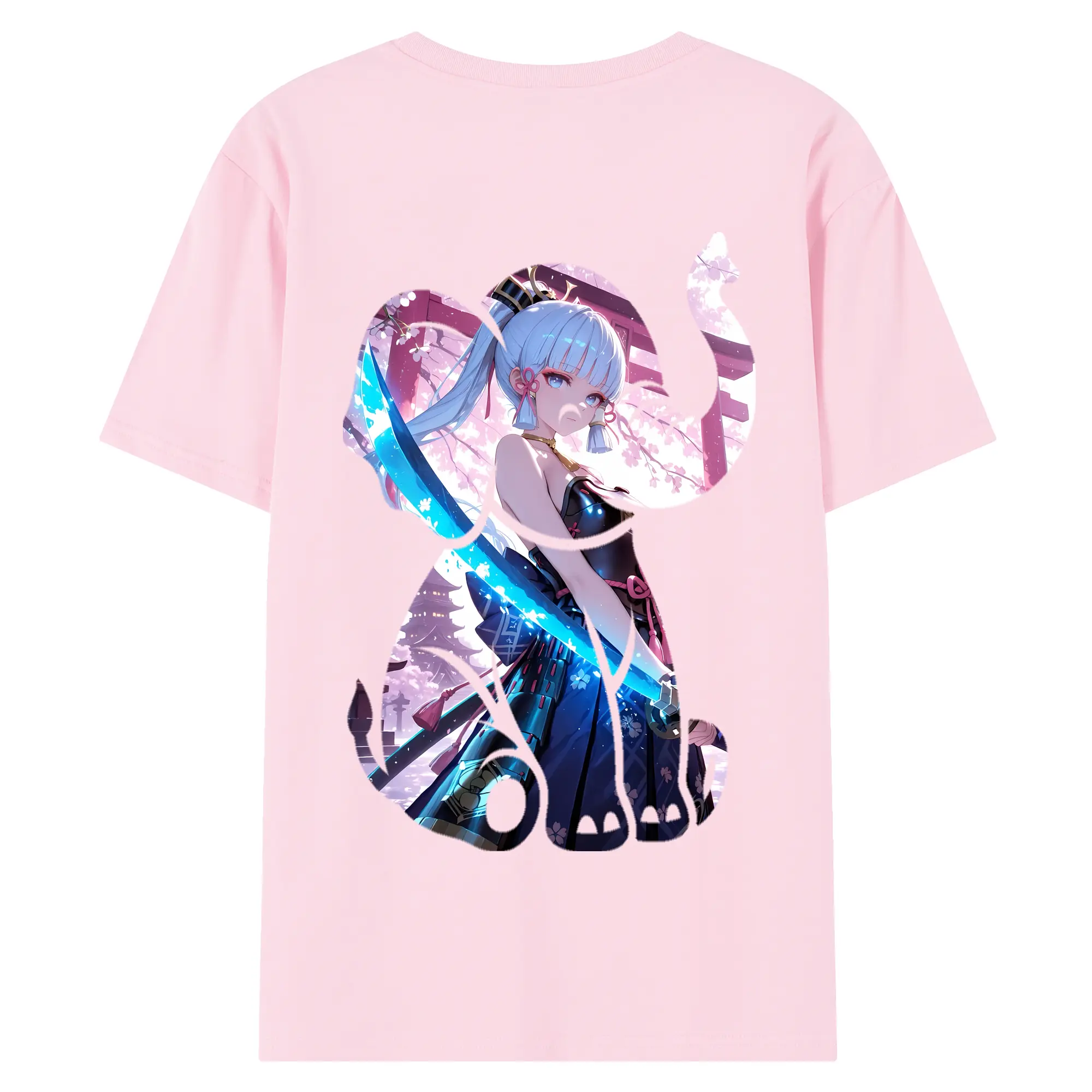 原 神 グッズ 神里綾華 - 綿100% 半袖Tシャツ ・ フロントプリント ・ 快適 通気性 ・ 日常使い 散歩 スポーツ用