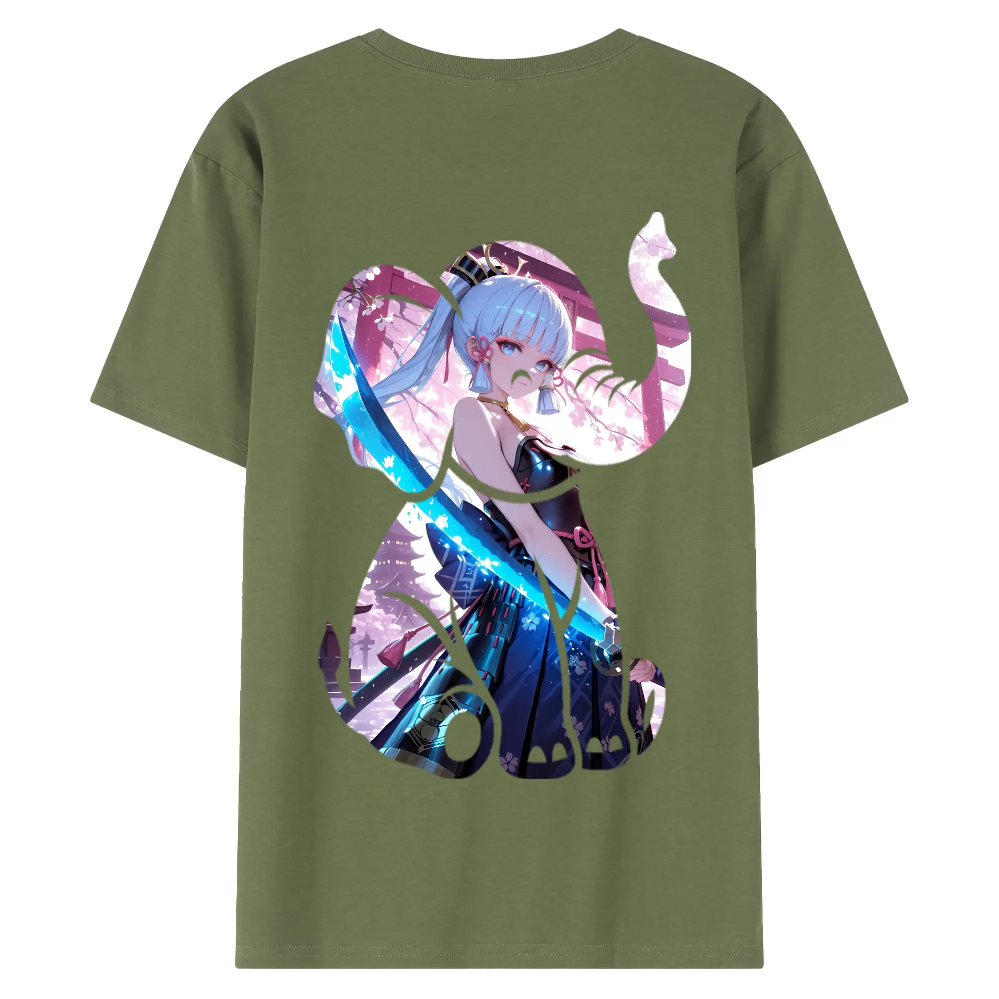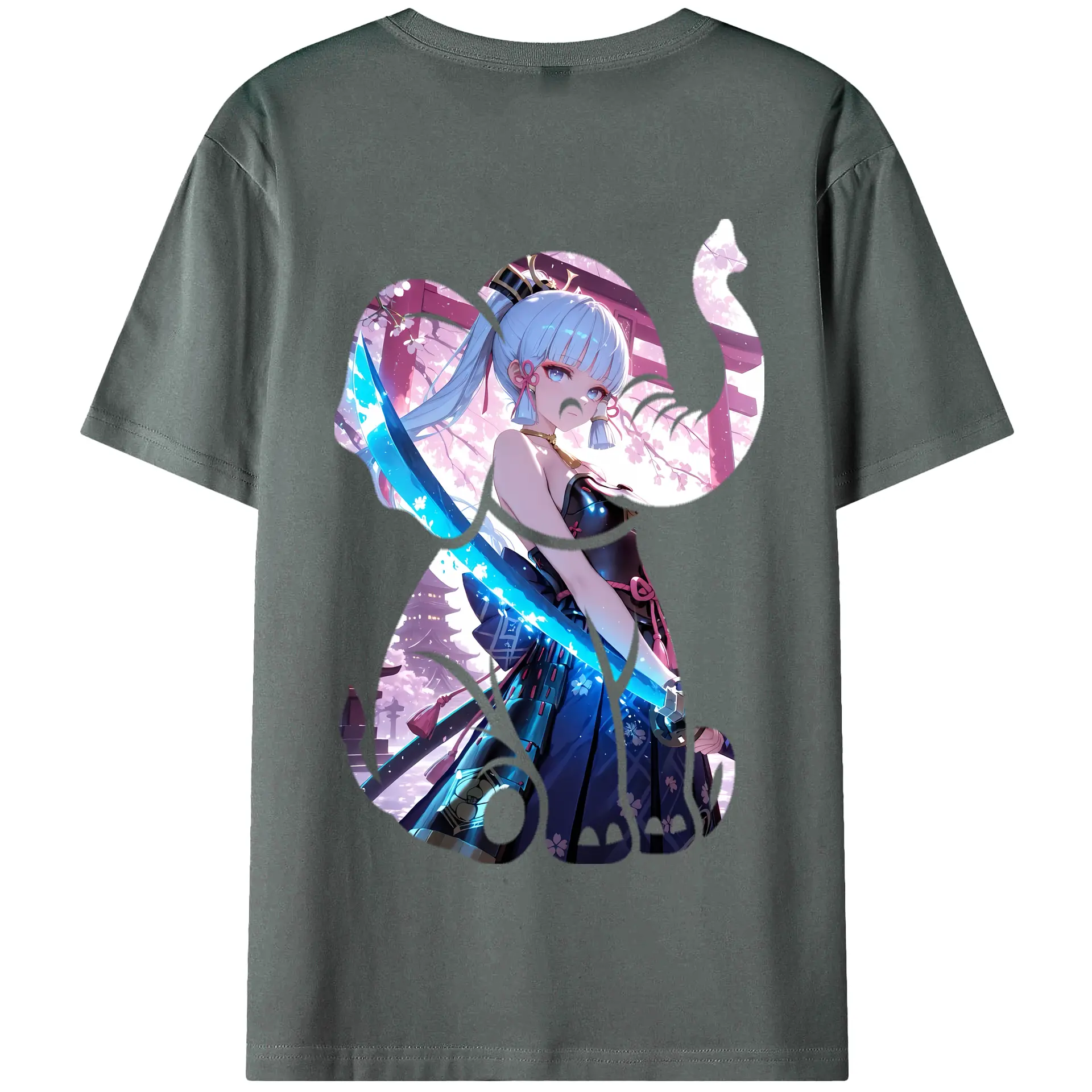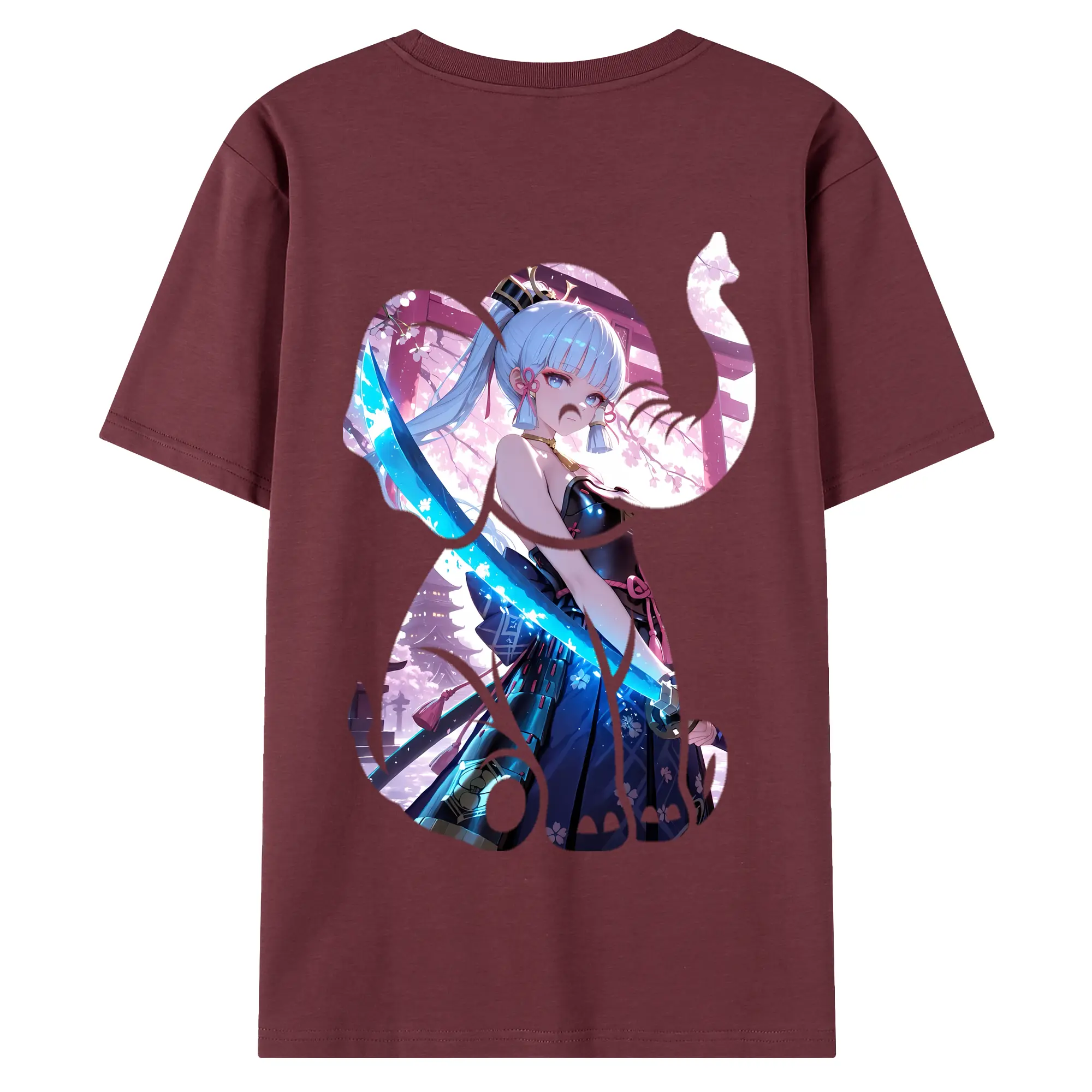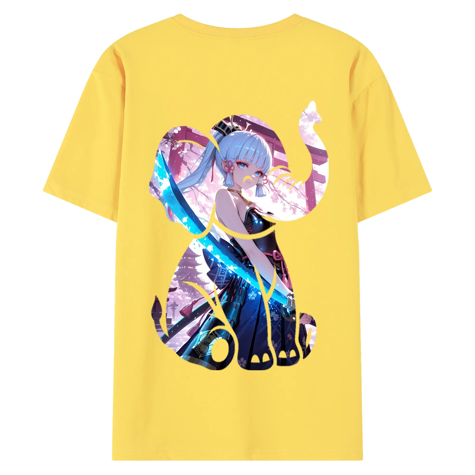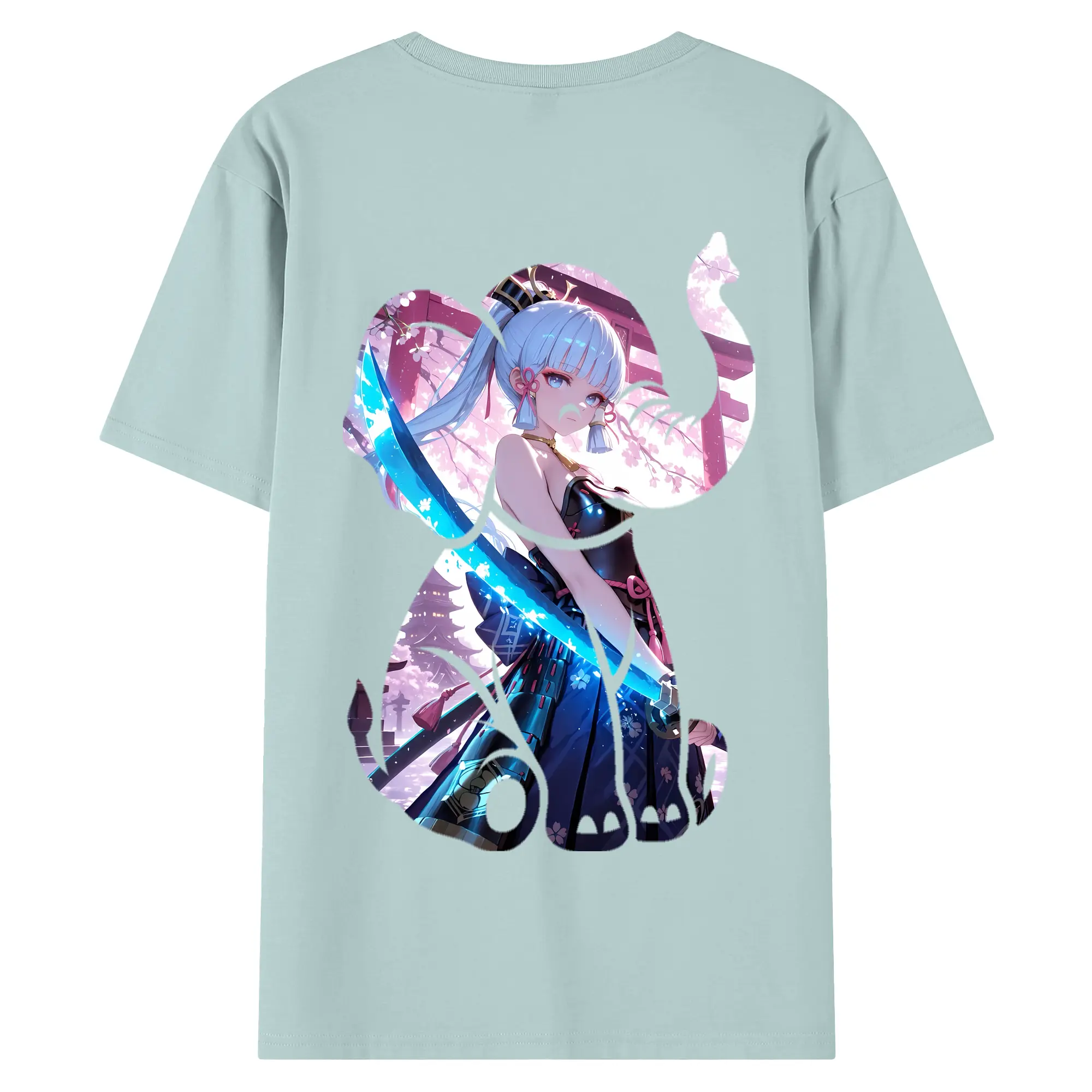 原 神 グッズ 神里綾華 - 綿100% 半袖Tシャツ ・ フロントプリント ・ 快適 通気性 ・ 日常使い 散歩 スポーツ用