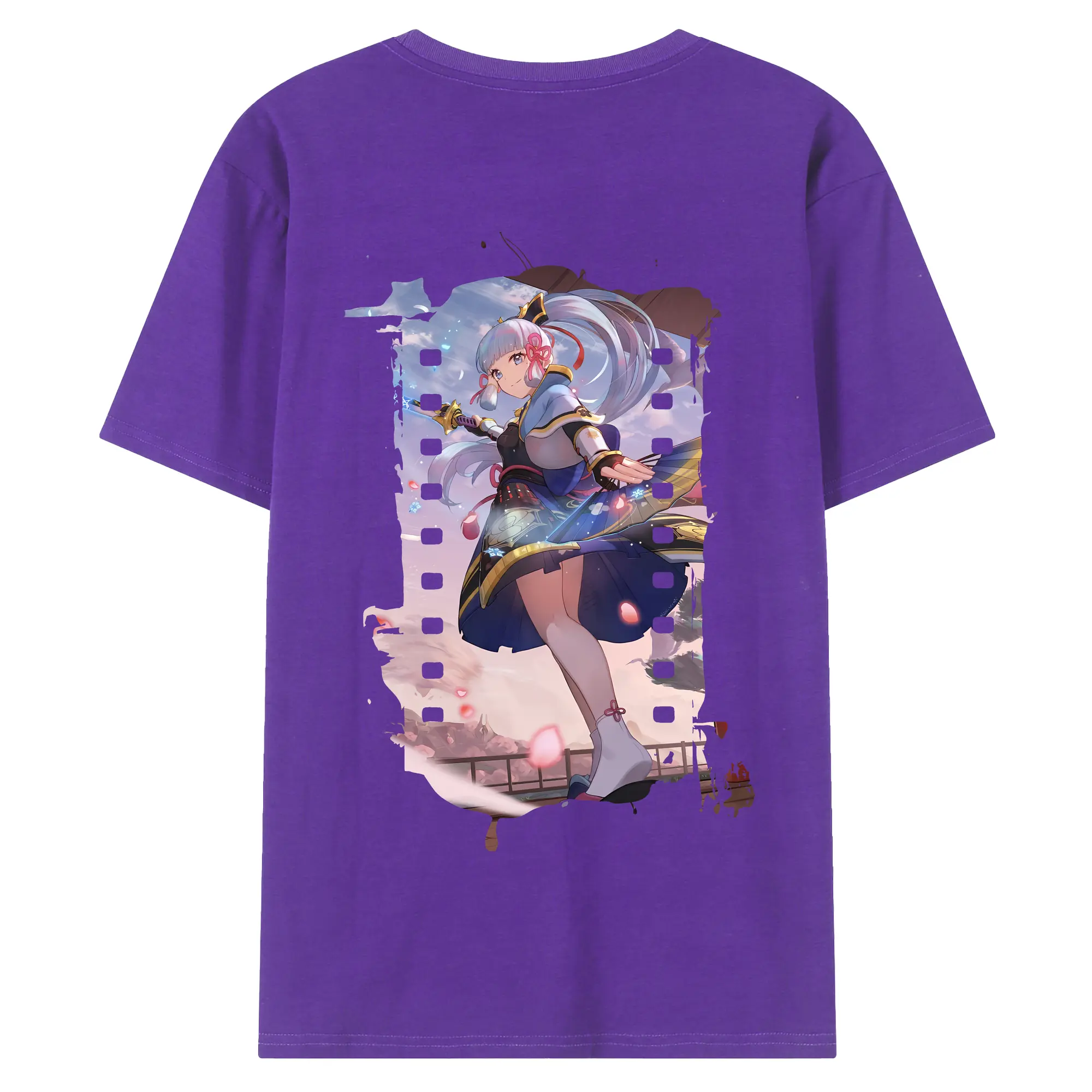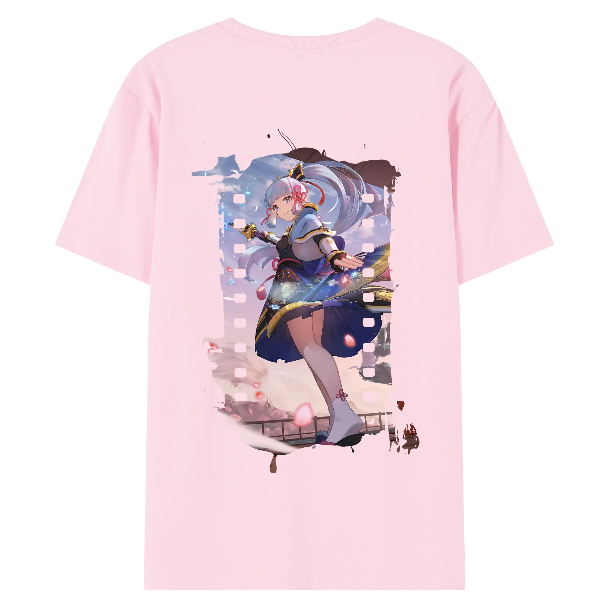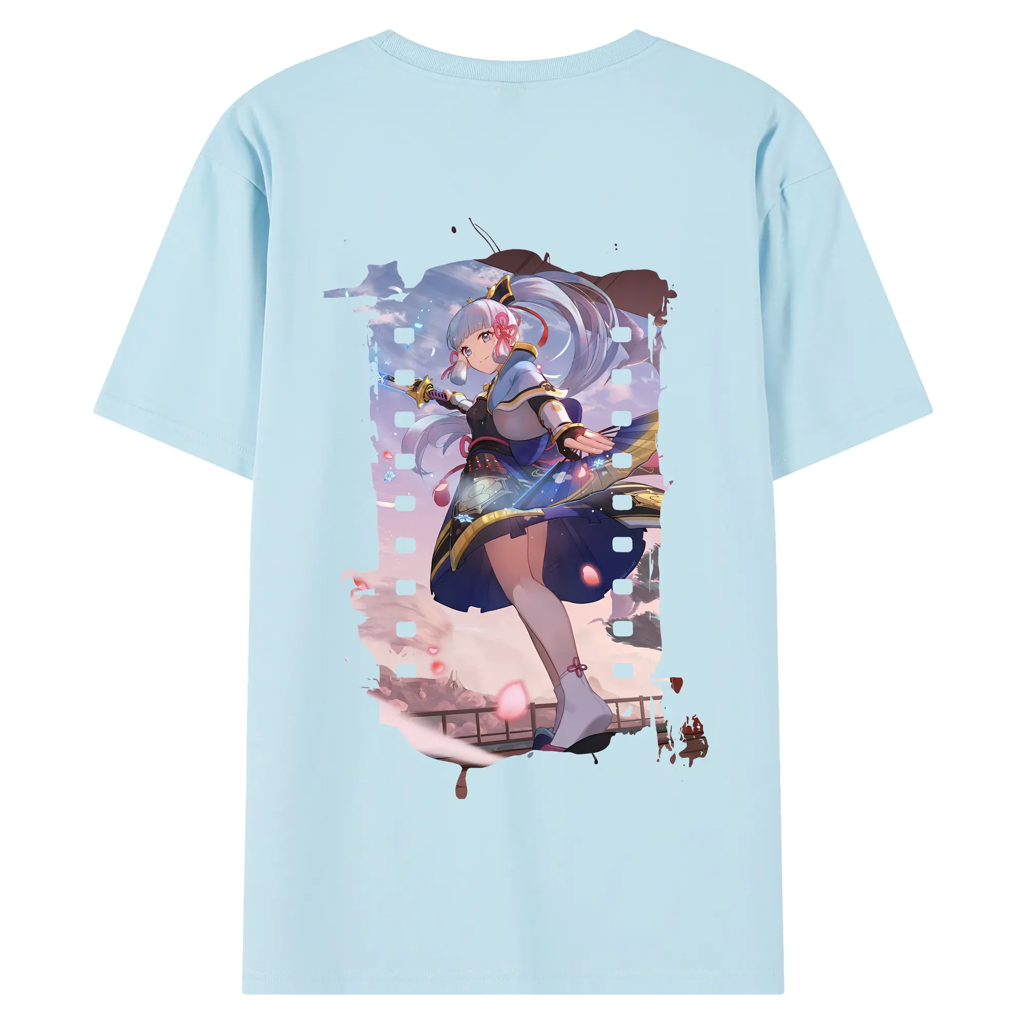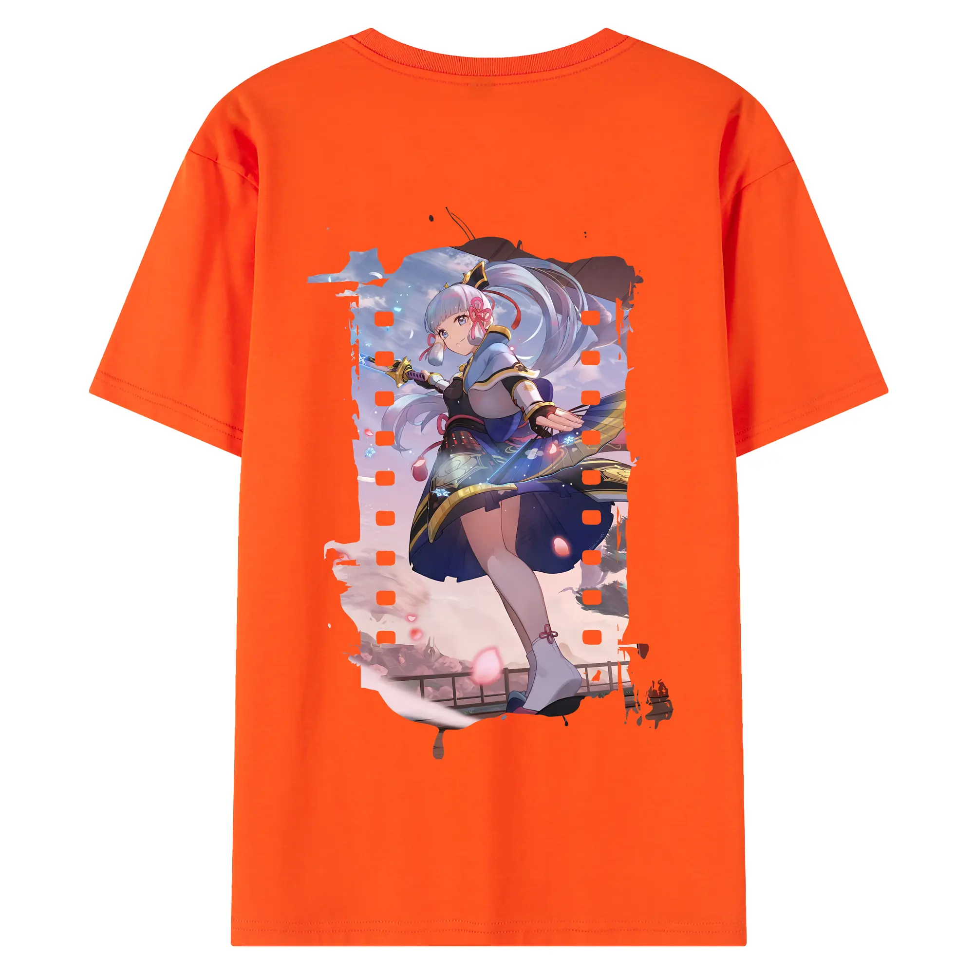 原 神 グッズ 神里綾華 - 綿100% 半袖Tシャツ ・ フロントプリント ・ 快適 通気性 ・ 日常使い 散歩 スポーツ用