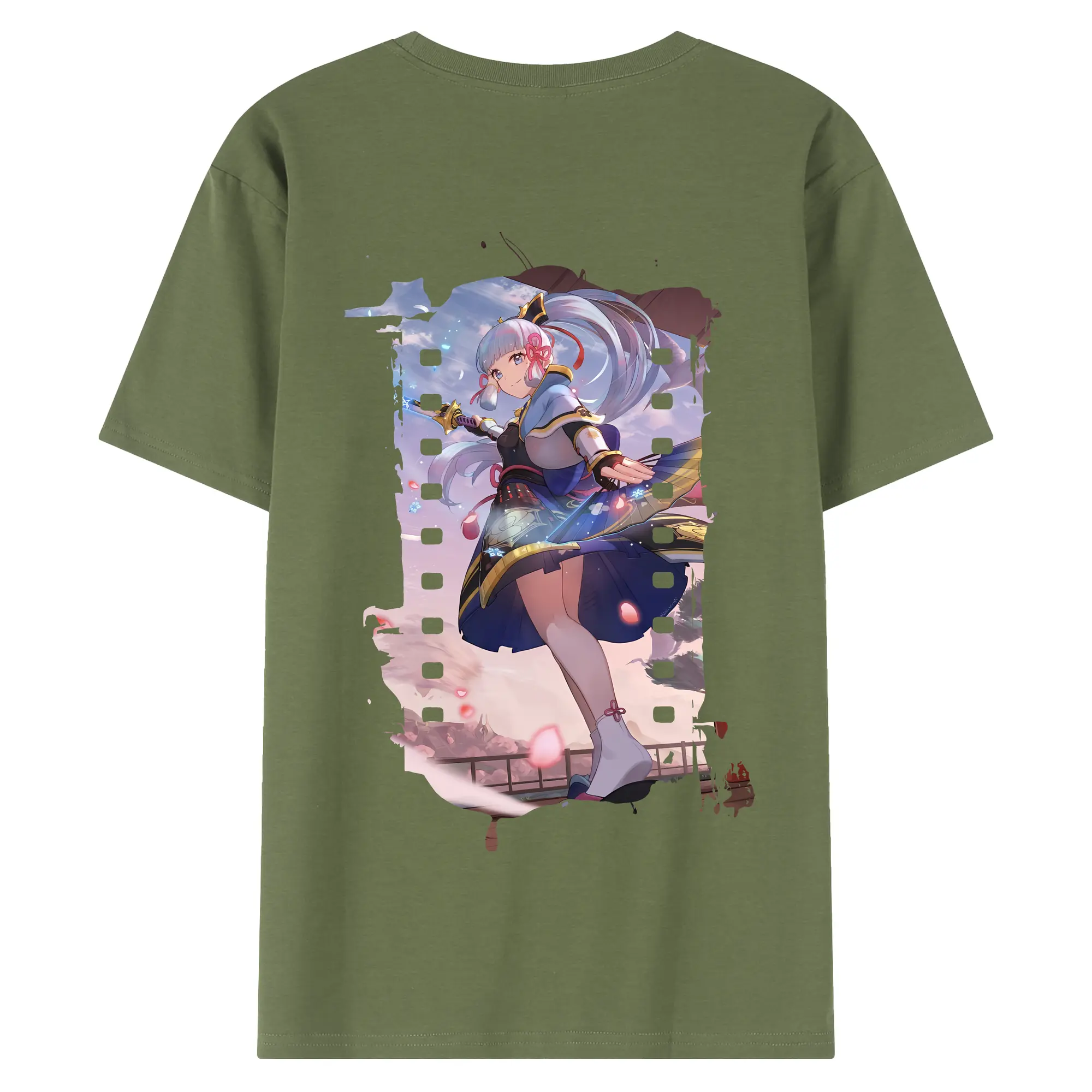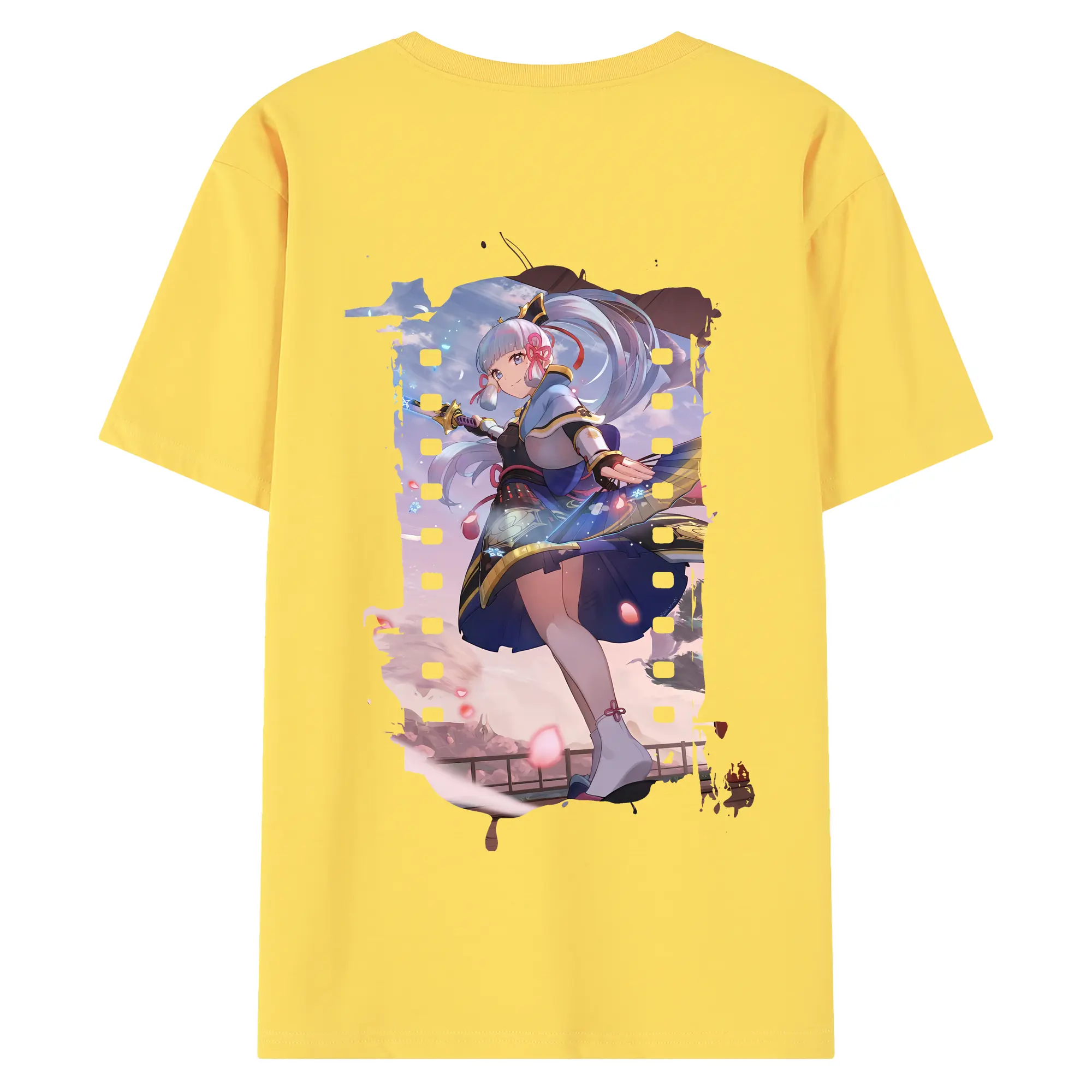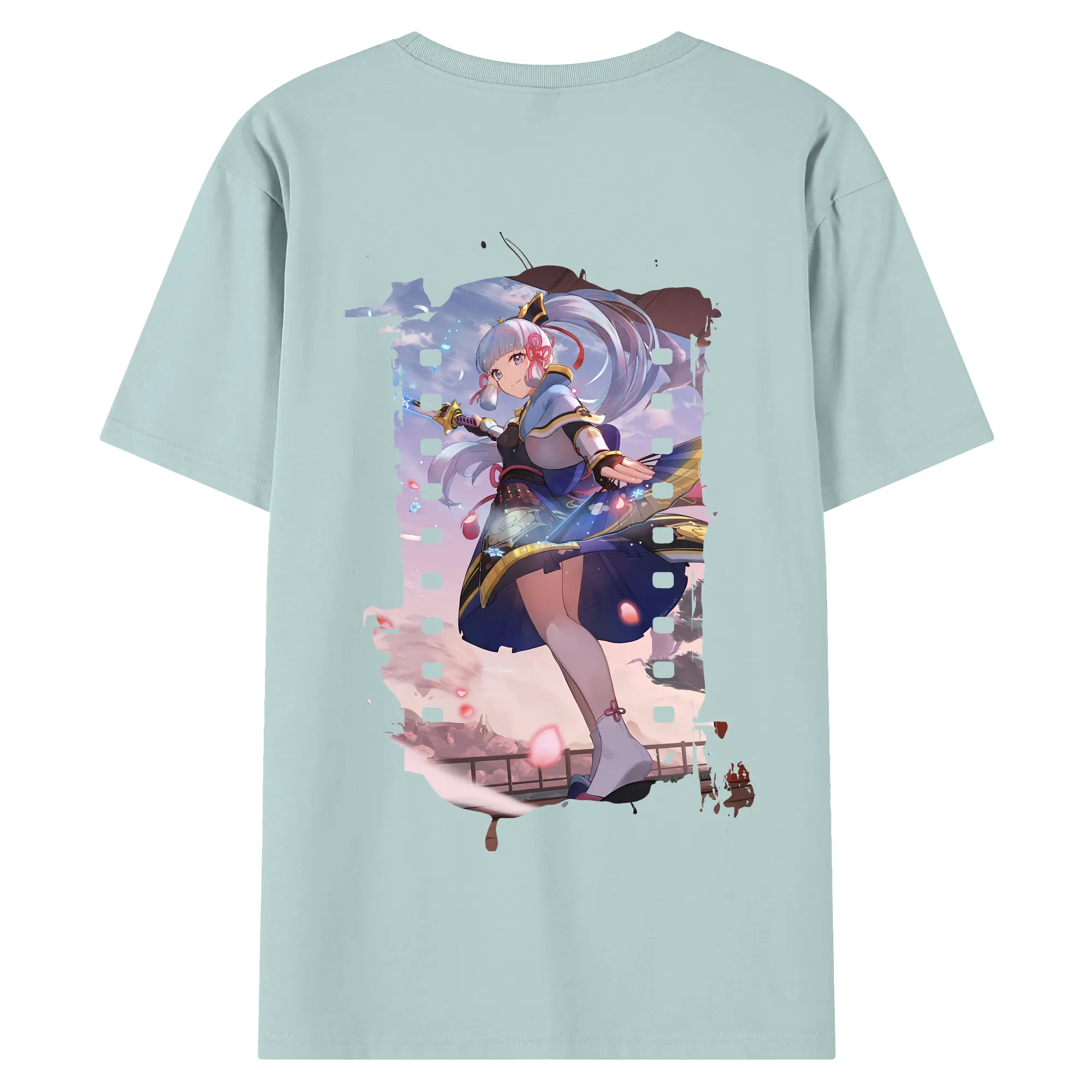 原 神 グッズ 神里綾華 - 綿100% 半袖Tシャツ ・ フロントプリント ・ 快適 通気性 ・ 日常使い 散歩 スポーツ用