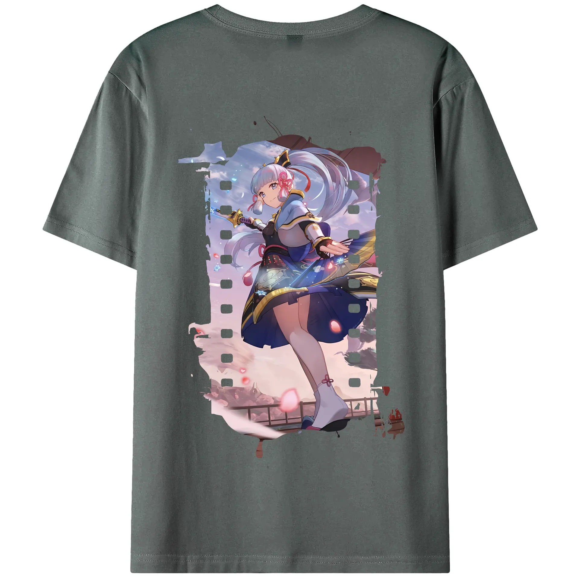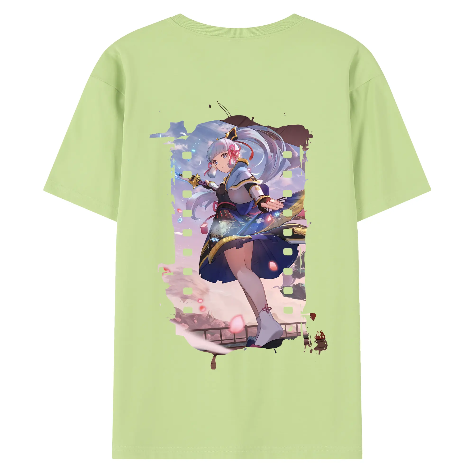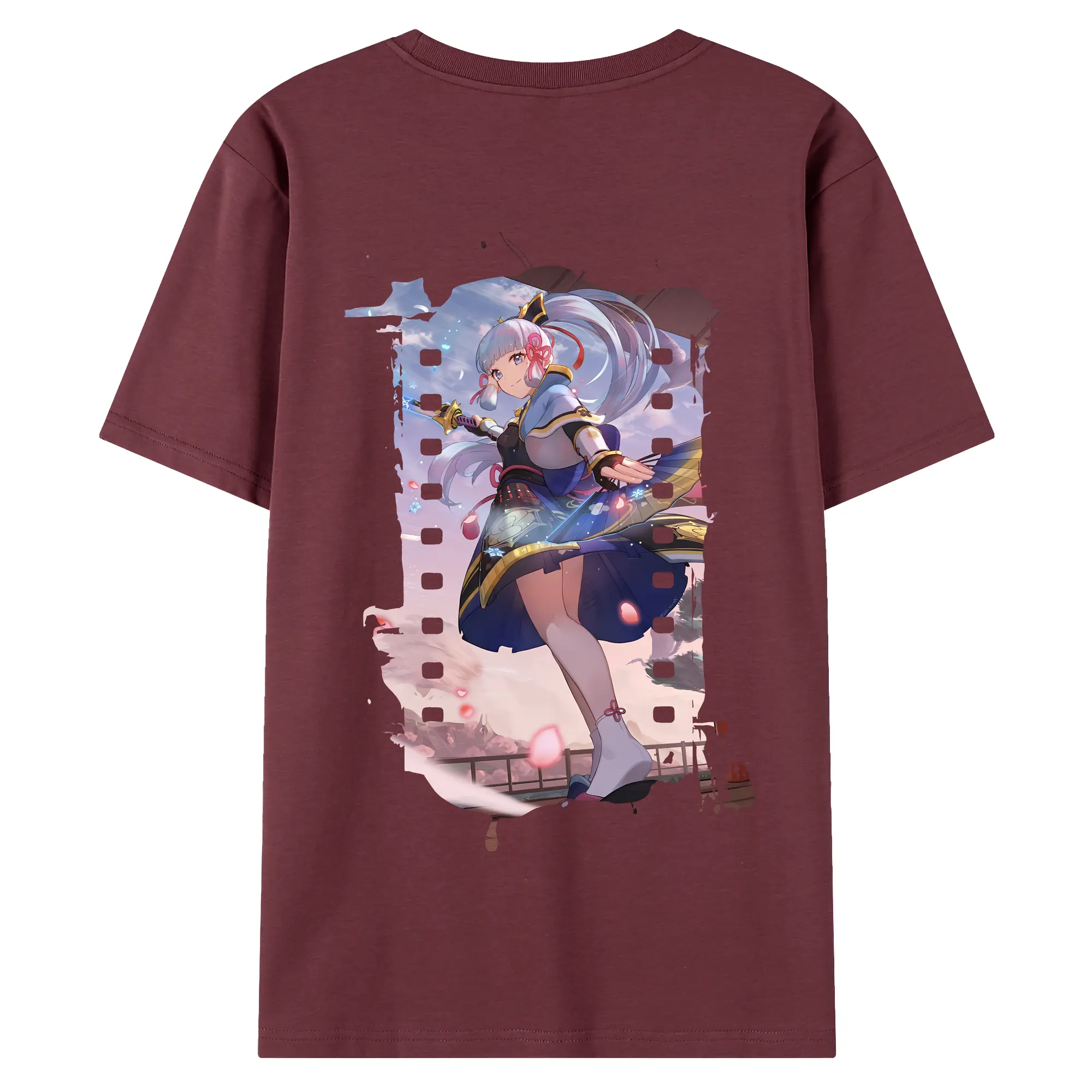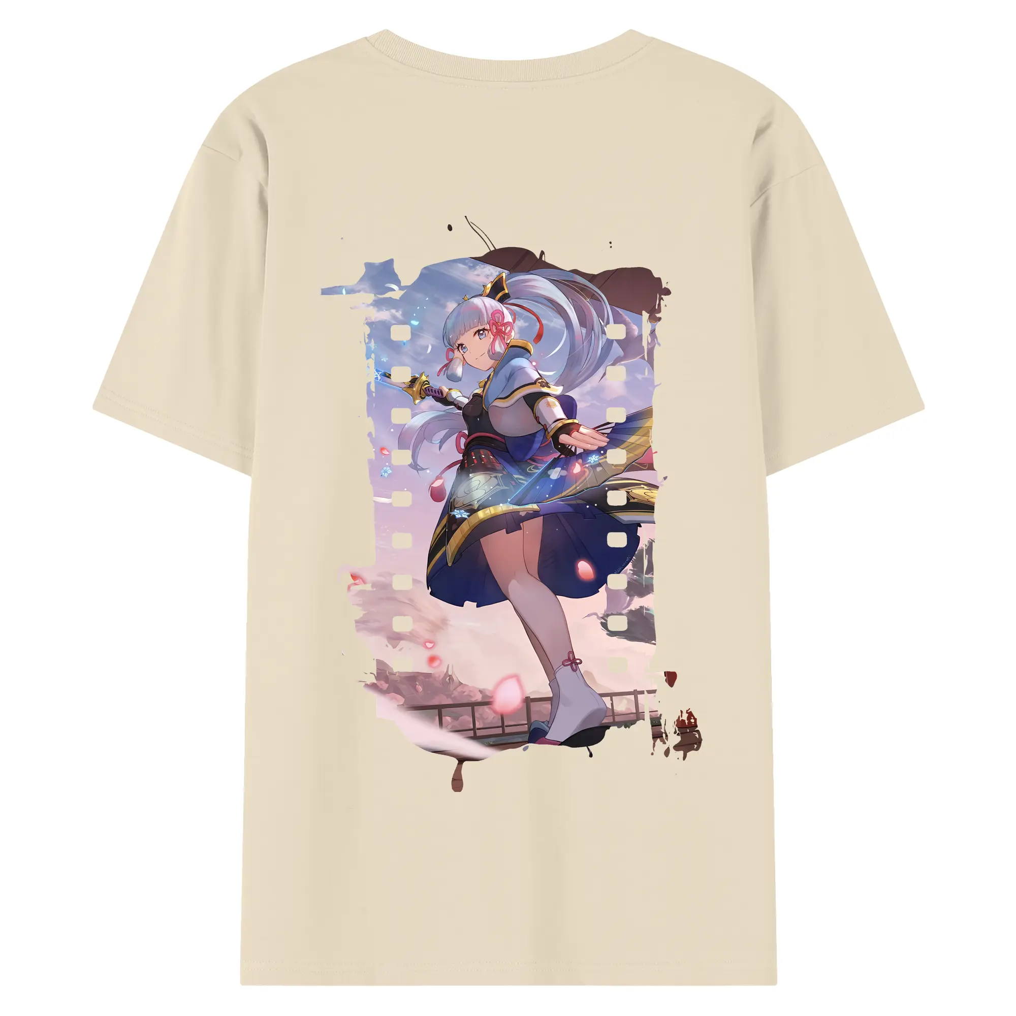 原 神 グッズ 神里綾華 - 綿100% 半袖Tシャツ ・ フロントプリント ・ 快適 通気性 ・ 日常使い 散歩 スポーツ用