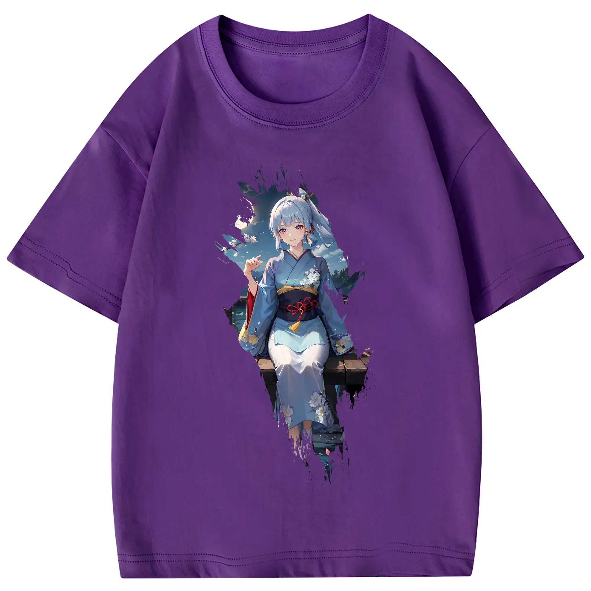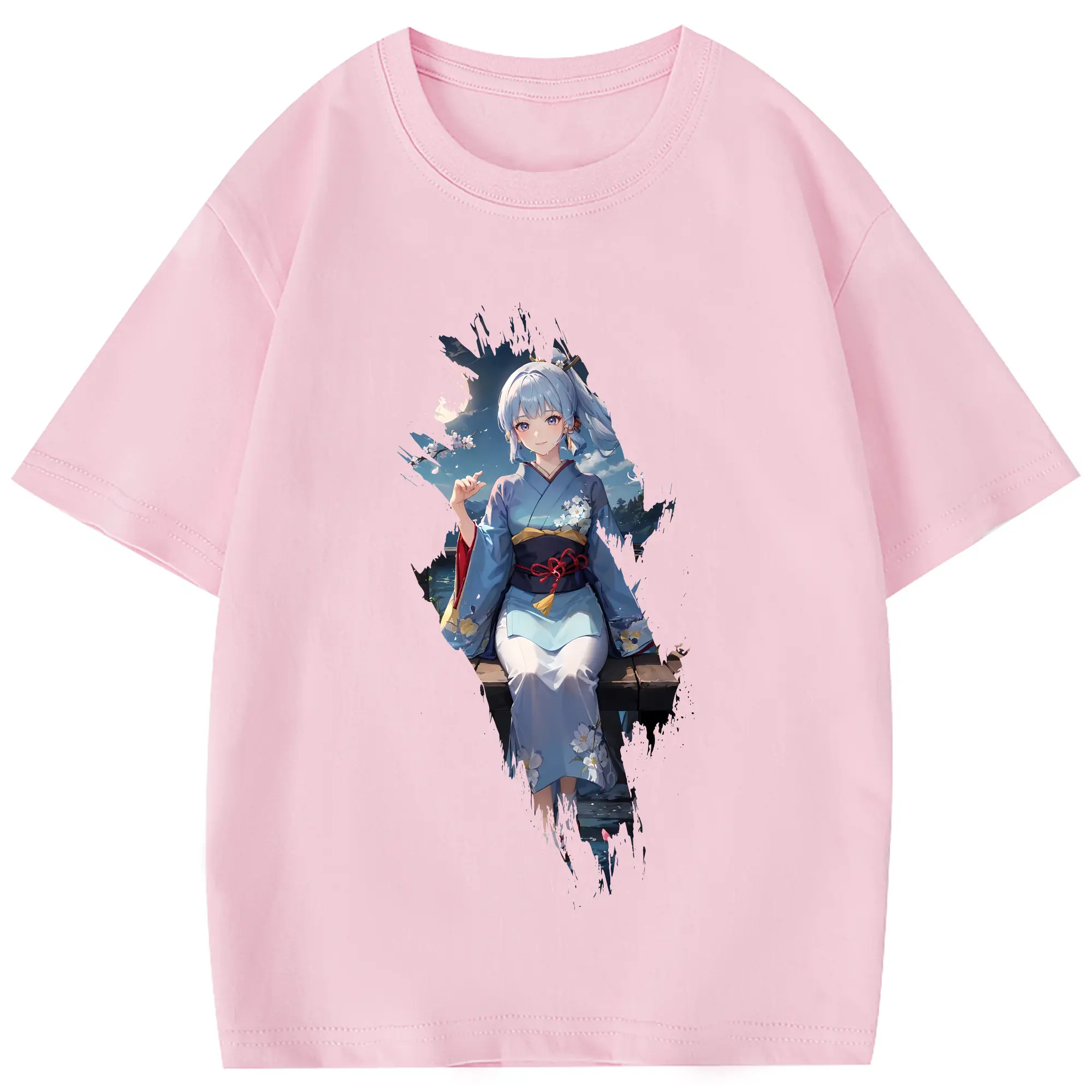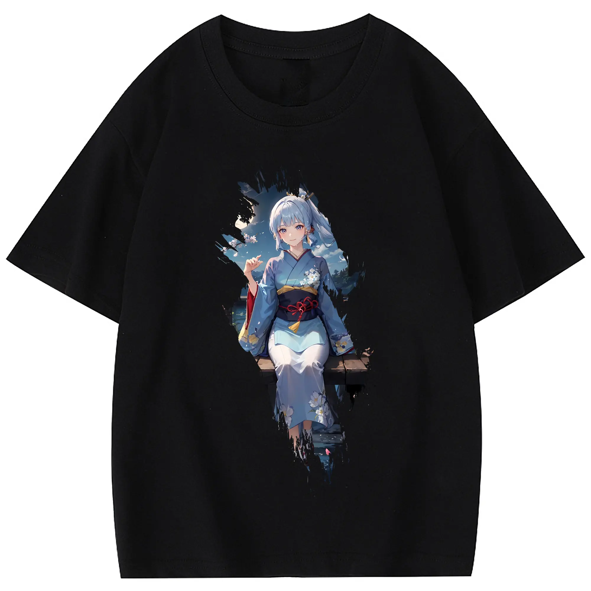 原 神 グッズ 神里綾華 - 綿100% 半袖Tシャツ ・ フロントプリント ・ 快適 通気性 ・ 日常使い 散歩 スポーツ用