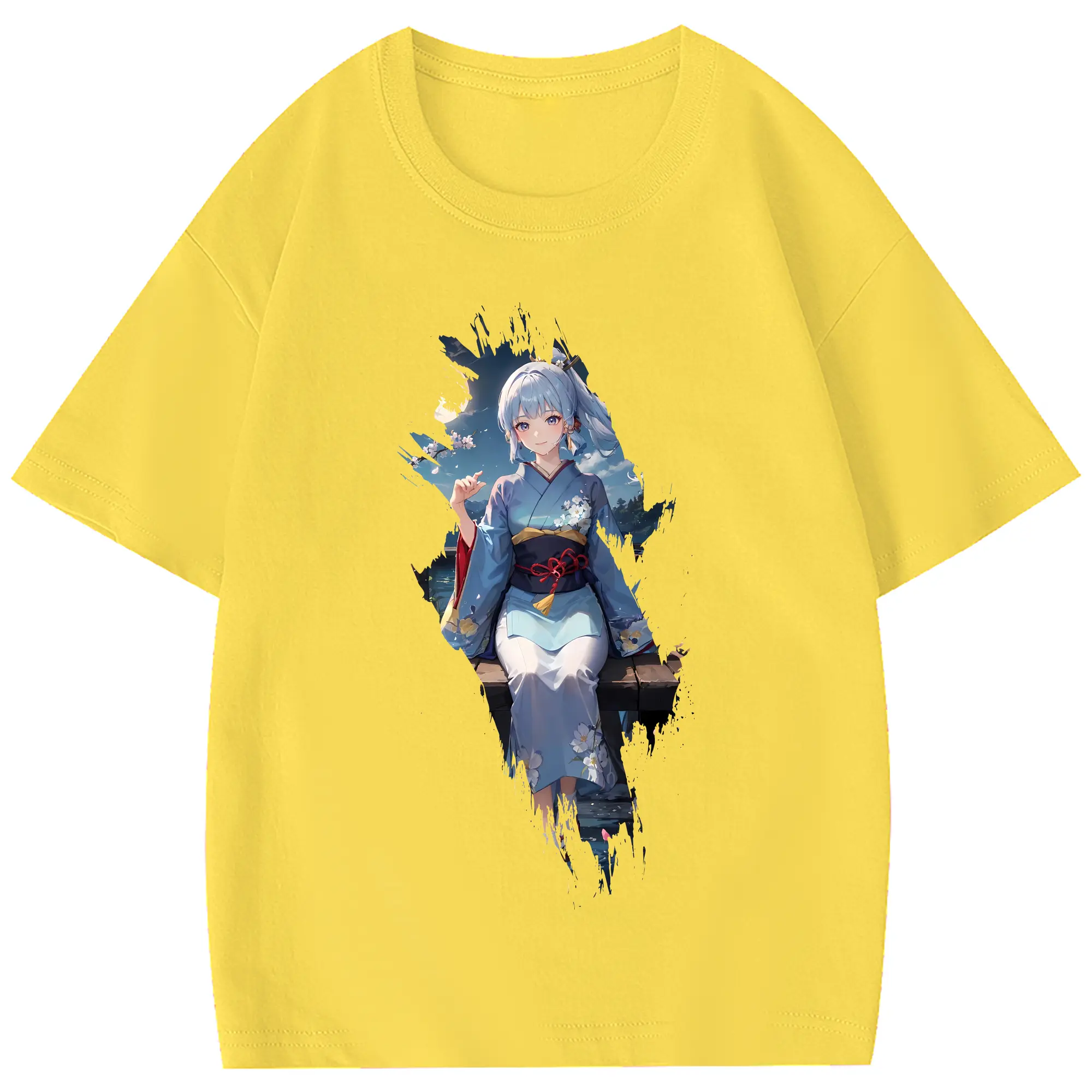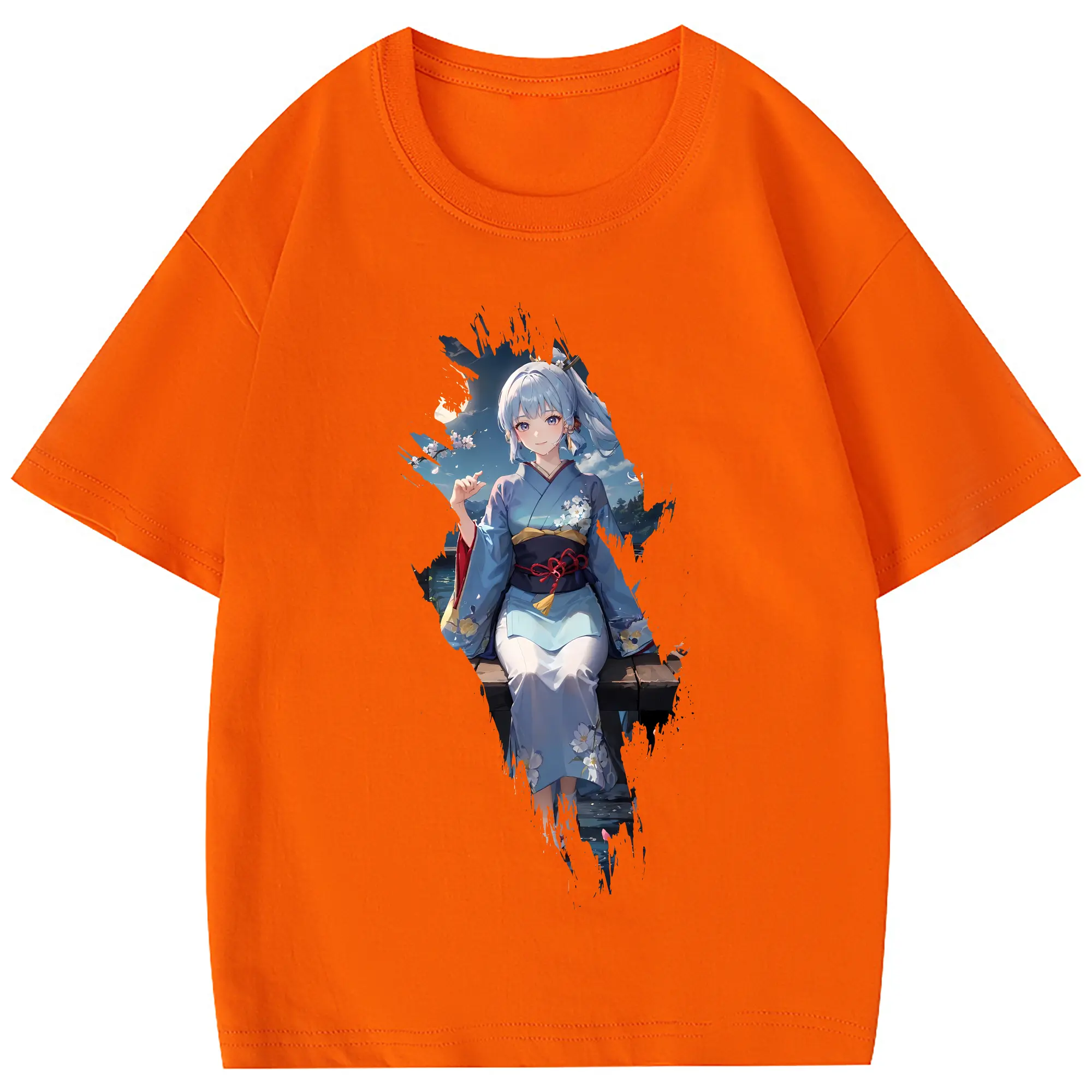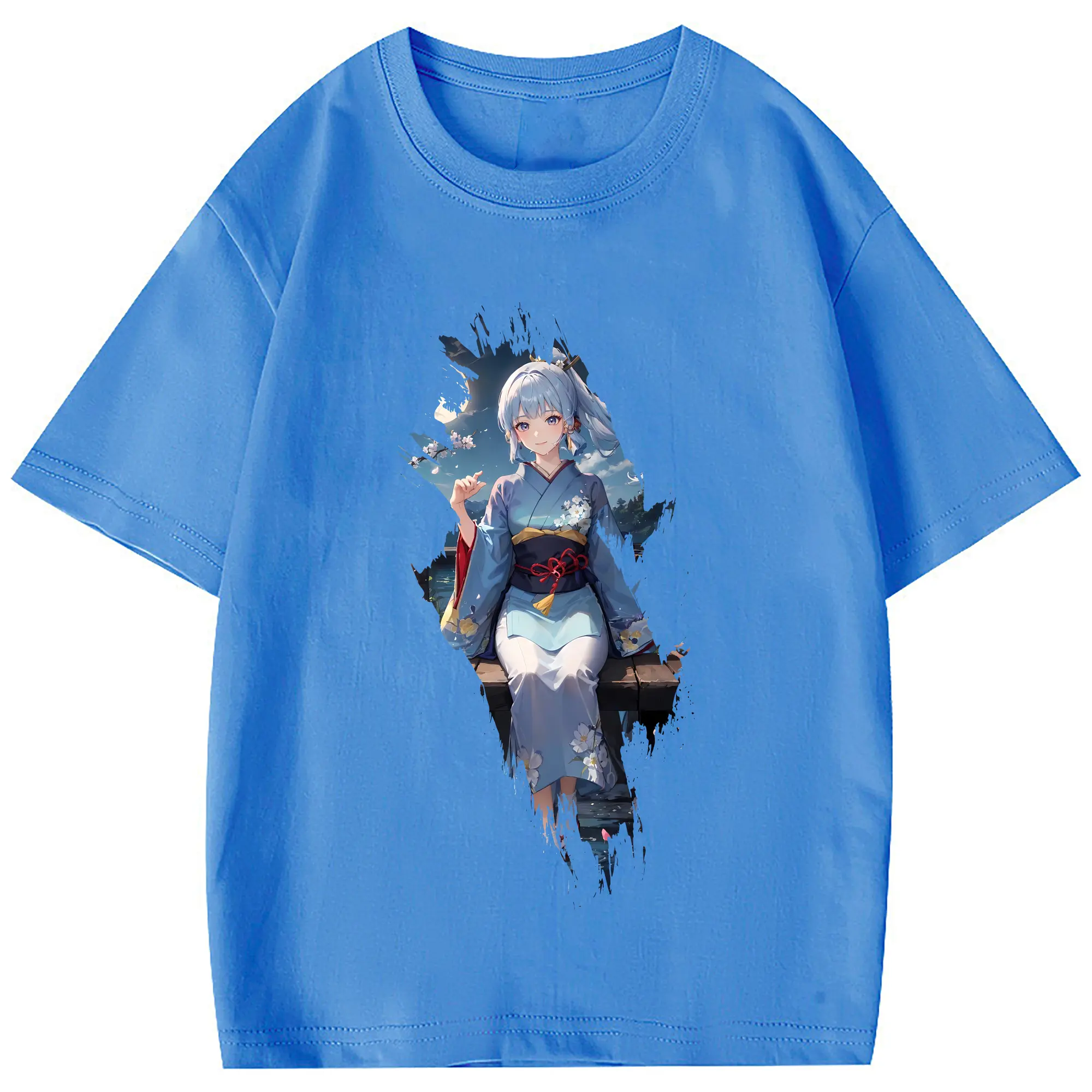 原 神 グッズ 神里綾華 - 綿100% 半袖Tシャツ ・ フロントプリント ・ 快適 通気性 ・ 日常使い 散歩 スポーツ用
