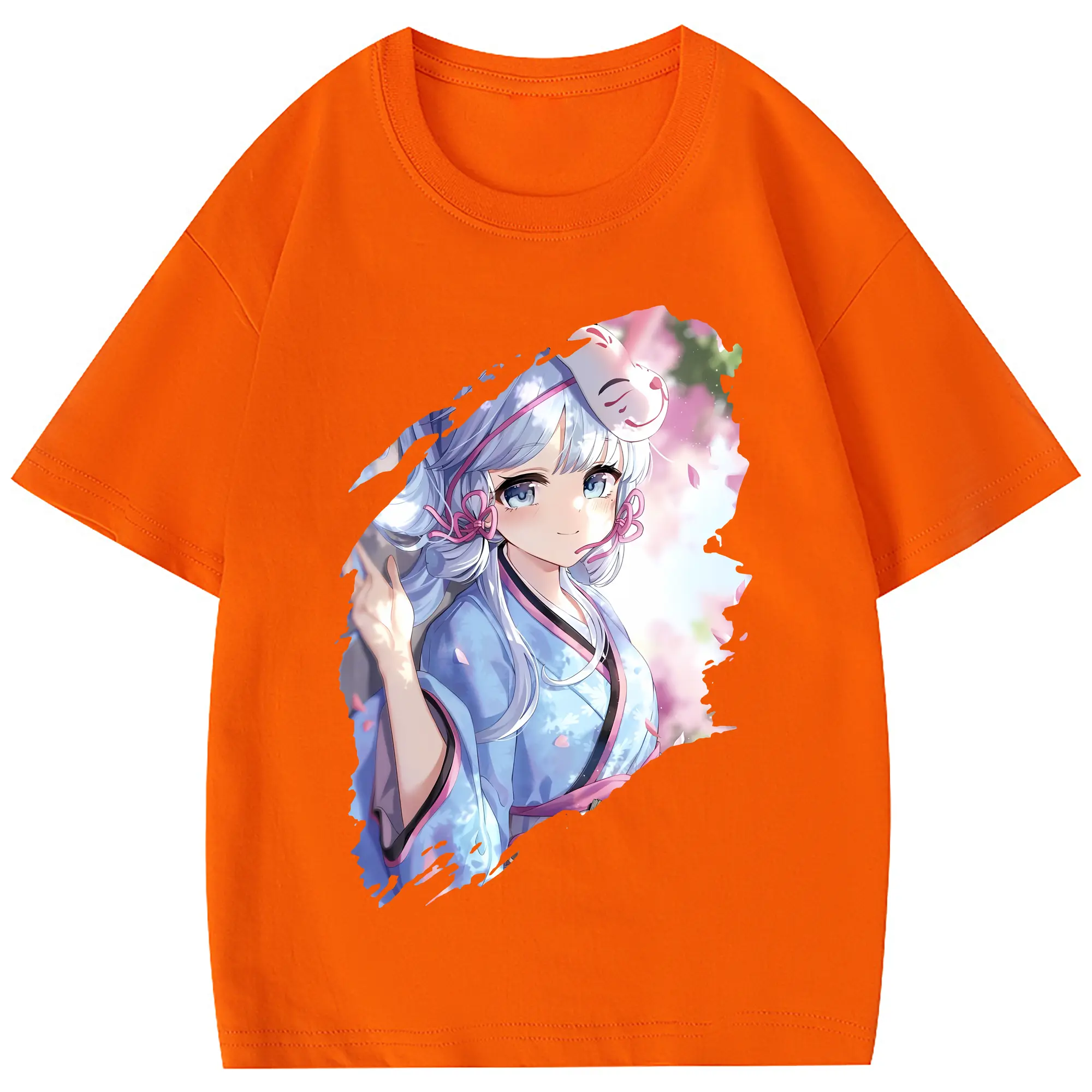 原 神 グッズ 神里綾華 - 綿100% 半袖Tシャツ ・ フロントプリント ・ 快適 通気性 ・ 日常使い 散歩 スポーツ用