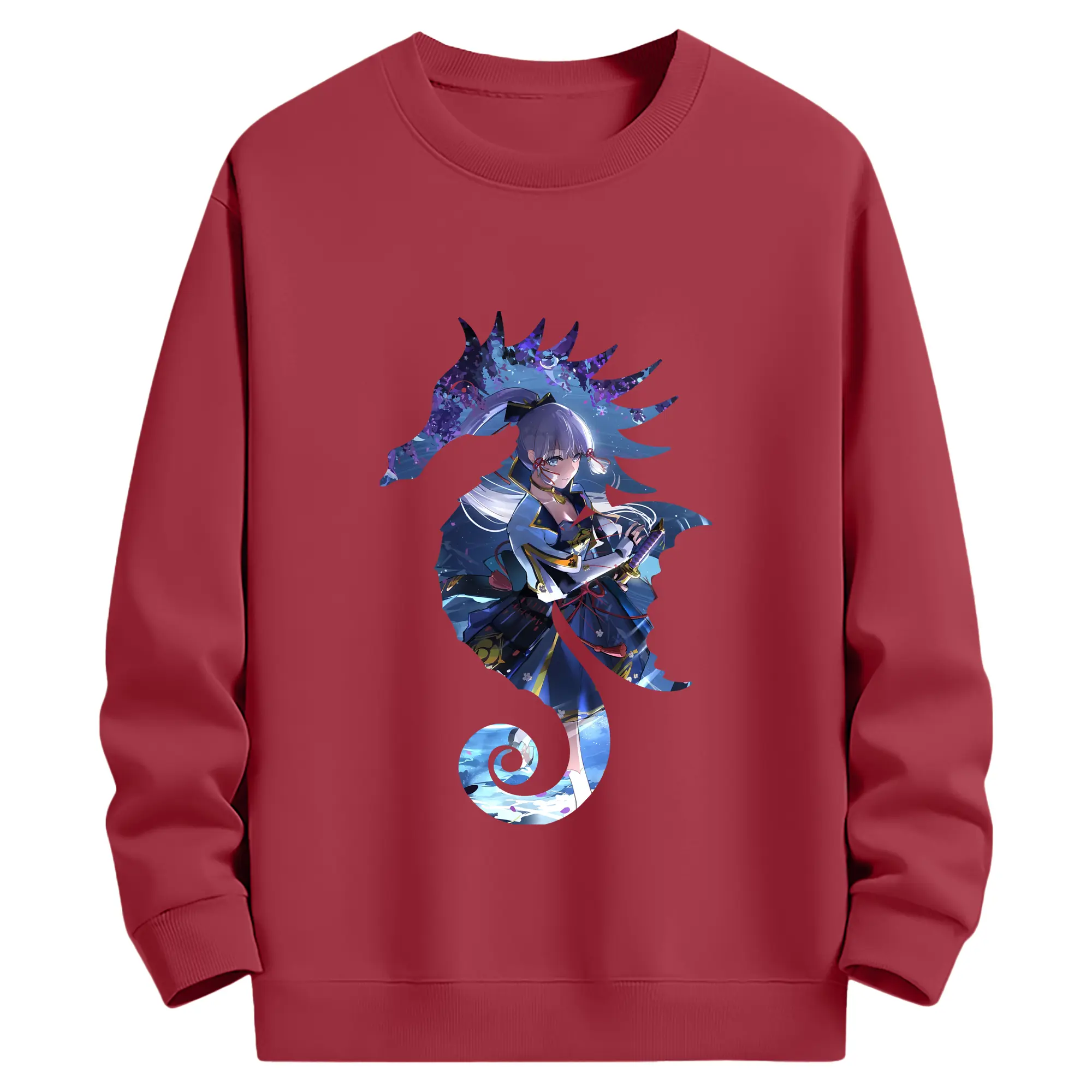 原 神 グッズ 神里綾華 - 薄手 クルーネック スウェット 裏毛260g · ポリエステル 春秋向け カジュアル 男女兼用 · トレーナー デイリー スポーツ 散歩に最適