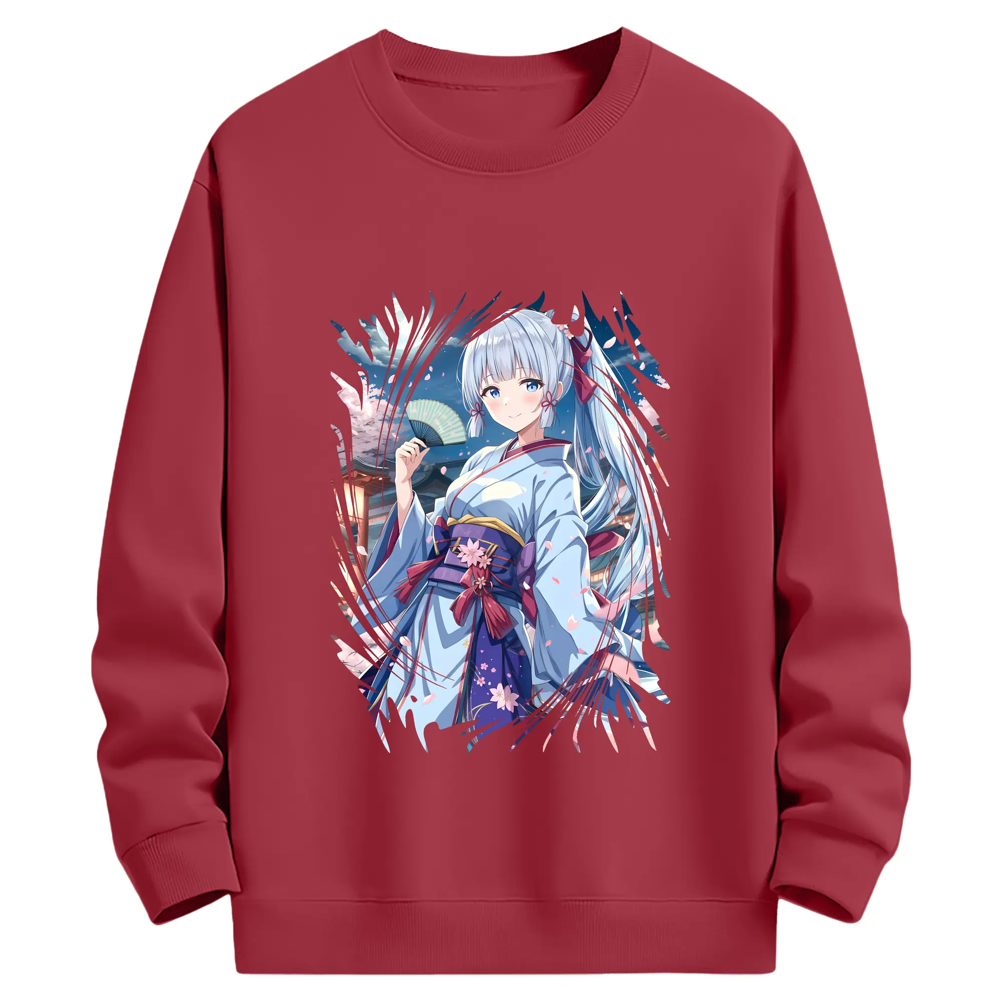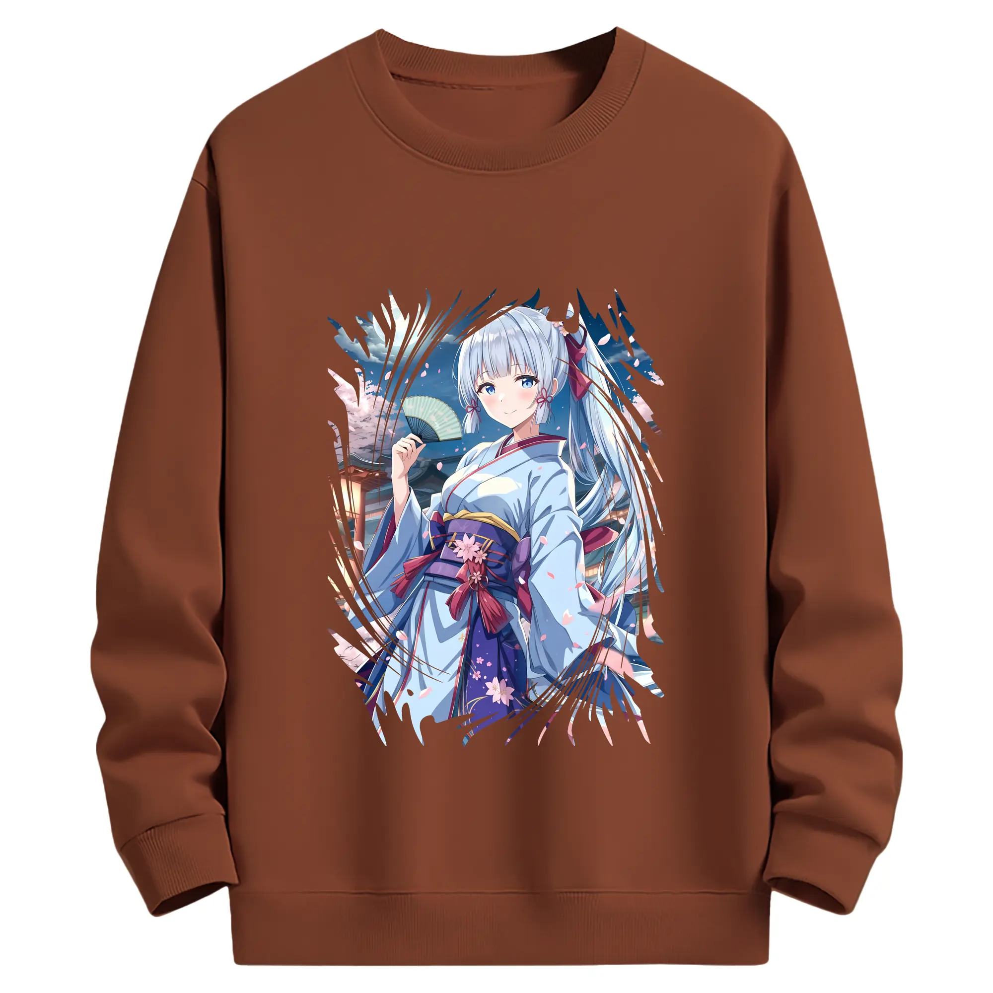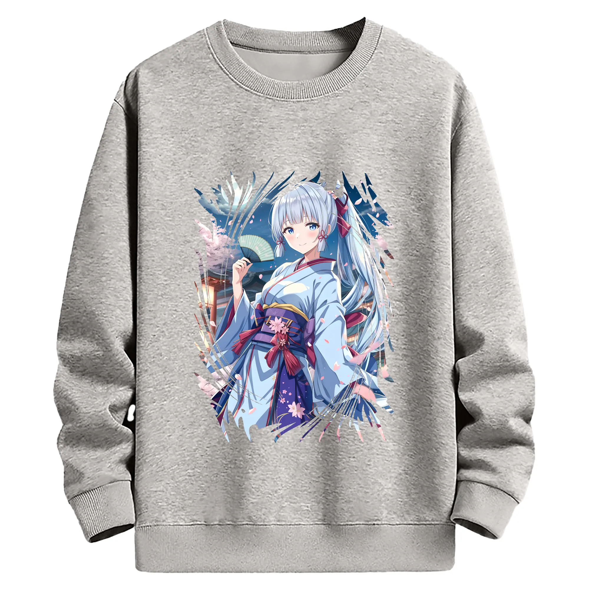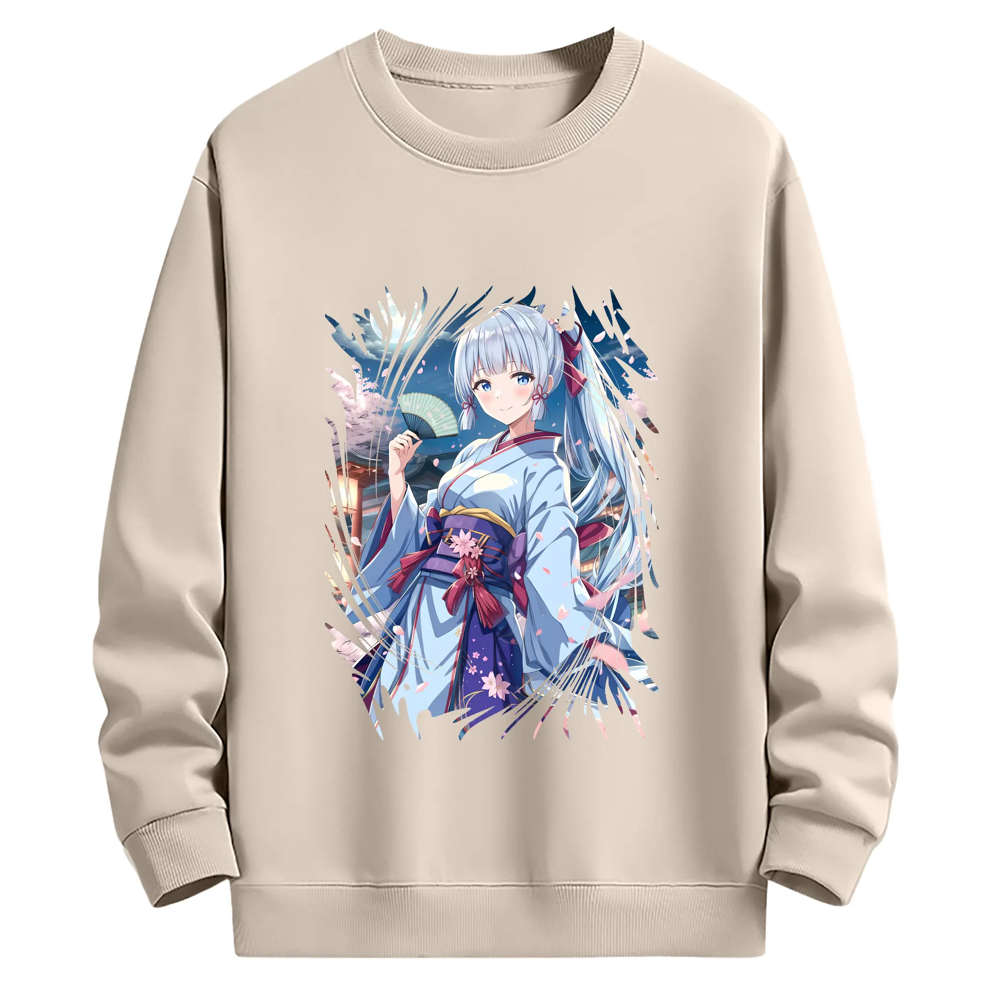 原 神 グッズ 神里綾華 - 薄手 クルーネック スウェット 裏毛260g · ポリエステル 春秋向け カジュアル 男女兼用 · トレーナー デイリー スポーツ 散歩に最適