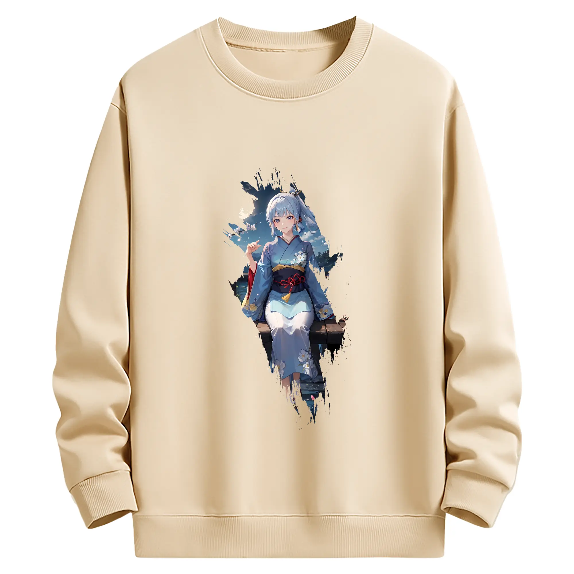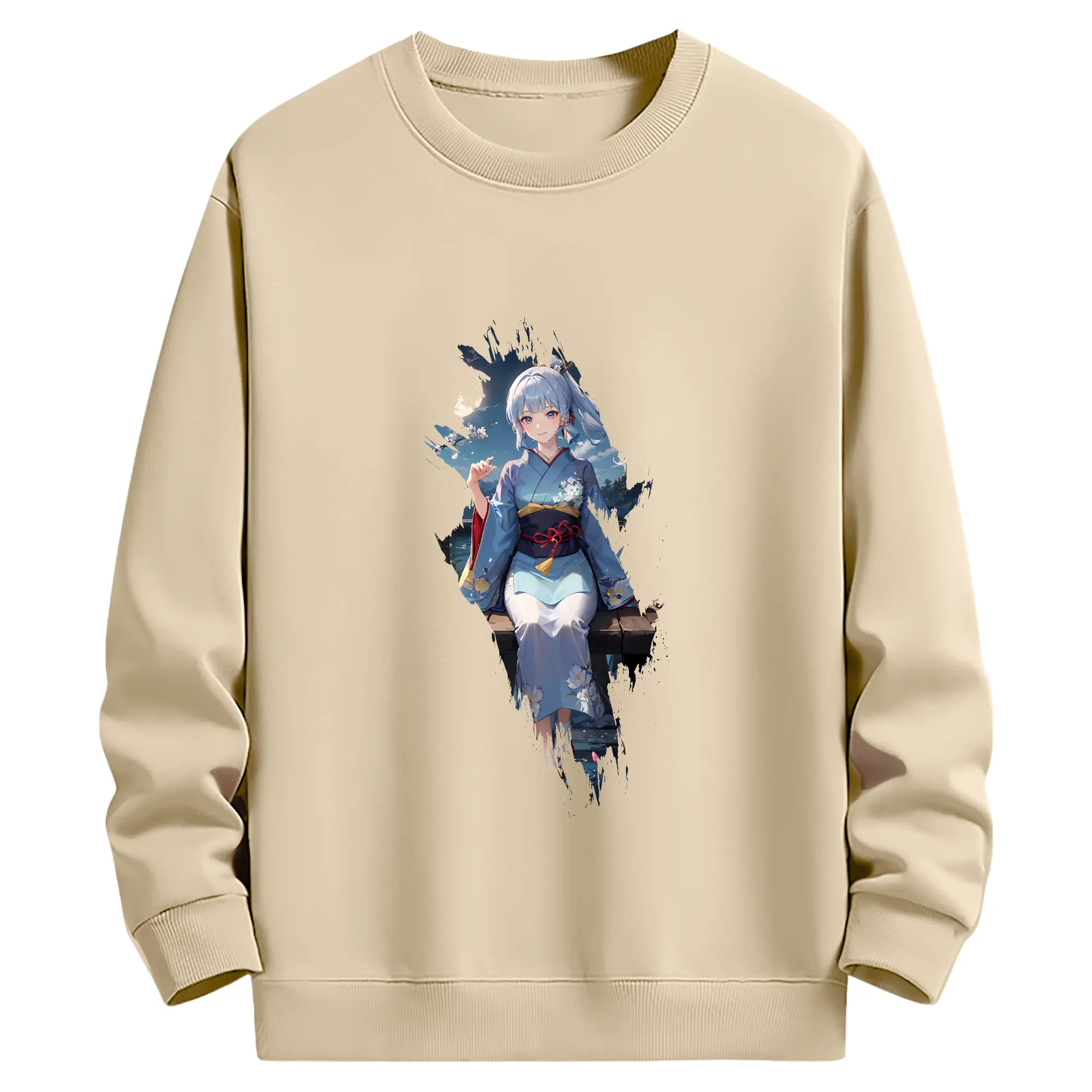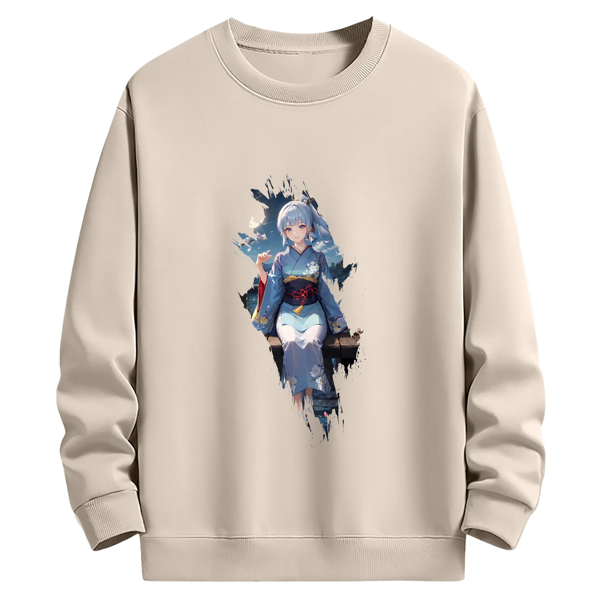 原 神 グッズ 神里綾華 - 薄手 クルーネック スウェット 裏毛260g · ポリエステル 春秋向け カジュアル 男女兼用 · トレーナー デイリー スポーツ 散歩に最適