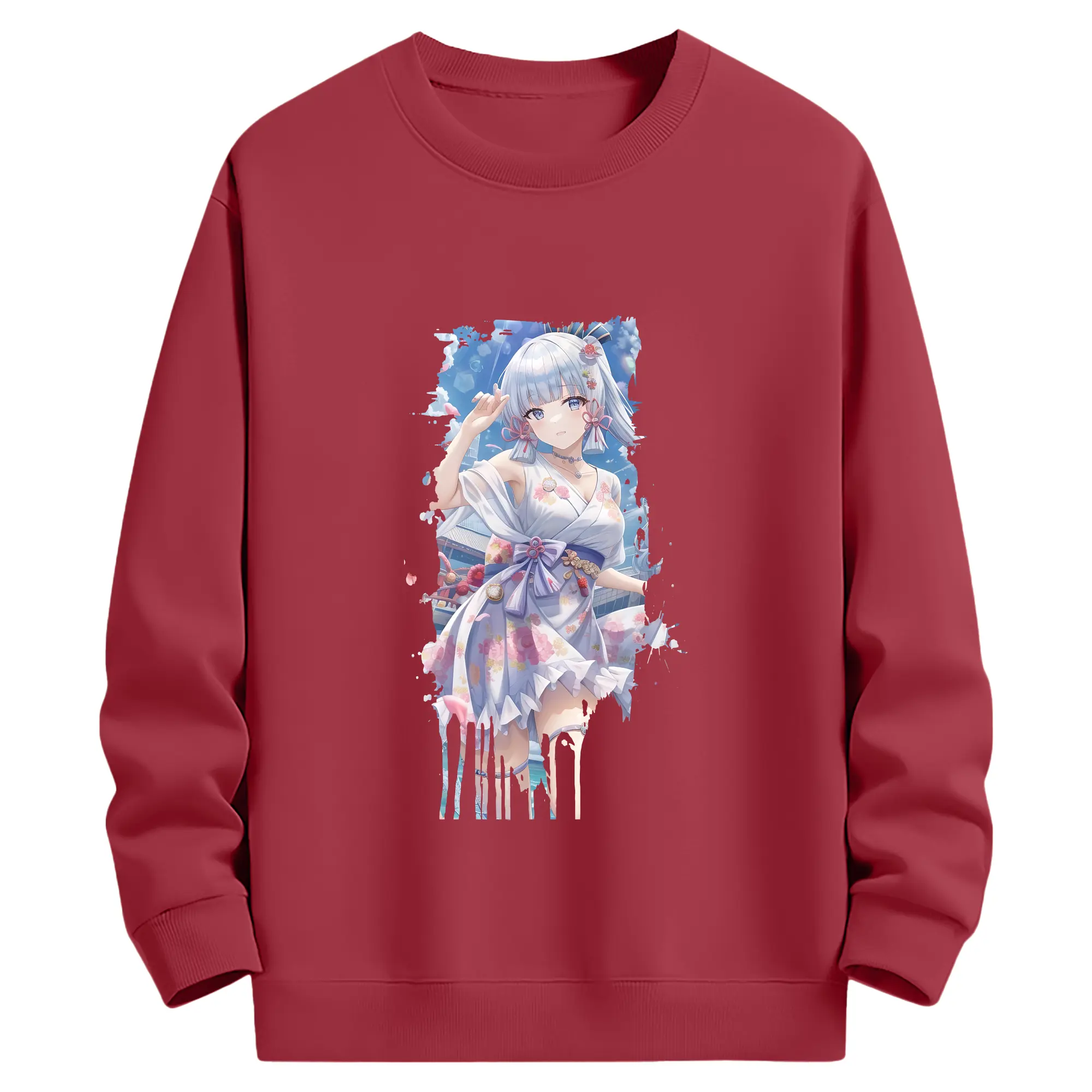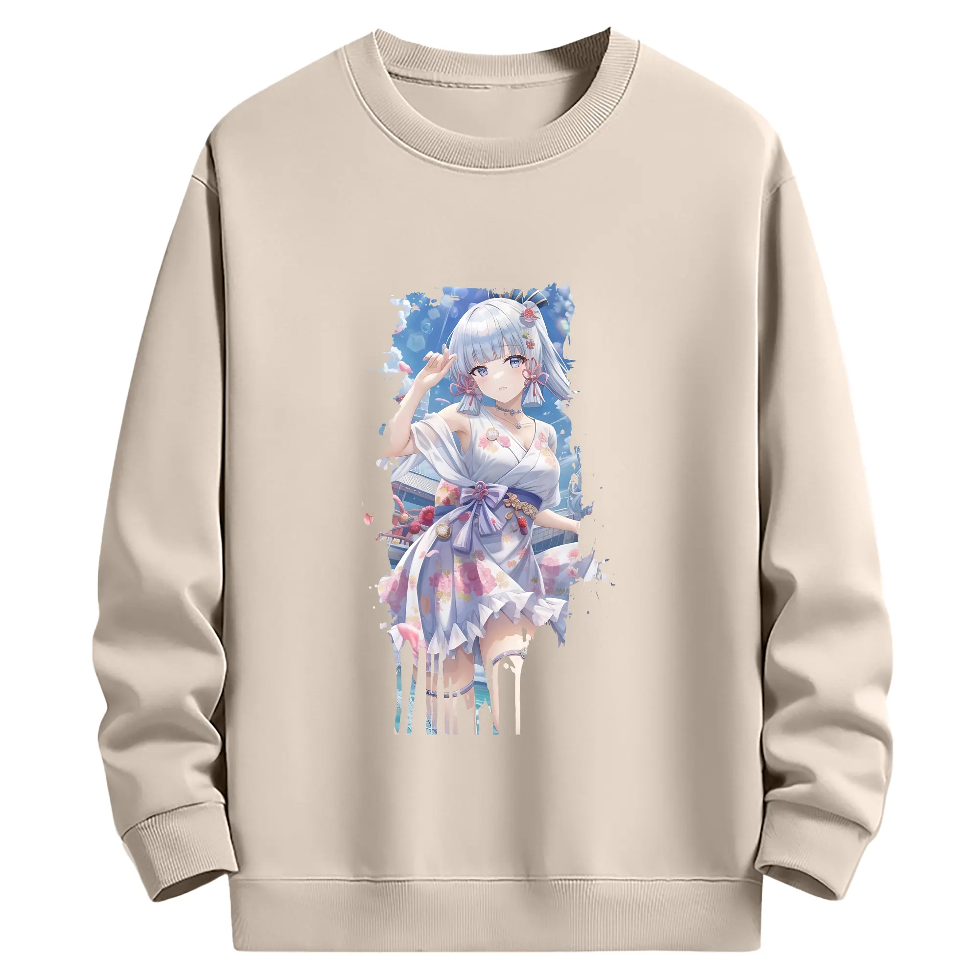 原 神 グッズ 神里綾華 - 薄手 クルーネック スウェット 裏毛260g · ポリエステル 春秋向け カジュアル 男女兼用 · トレーナー デイリー スポーツ 散歩に最適