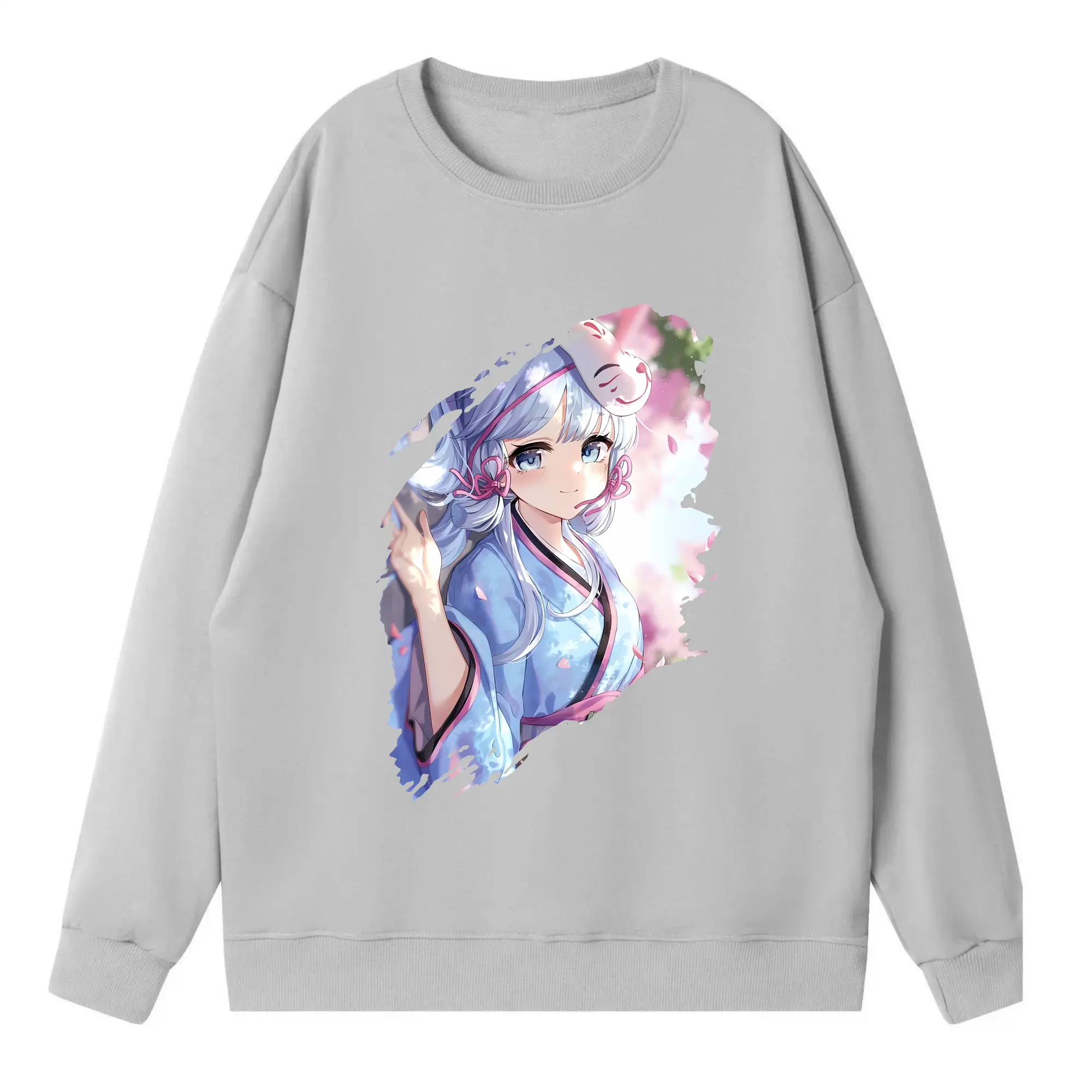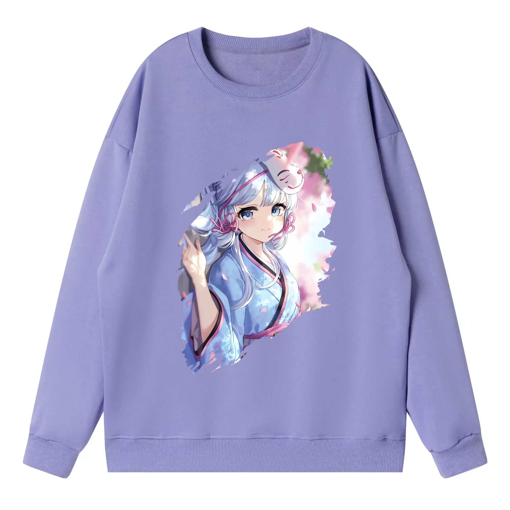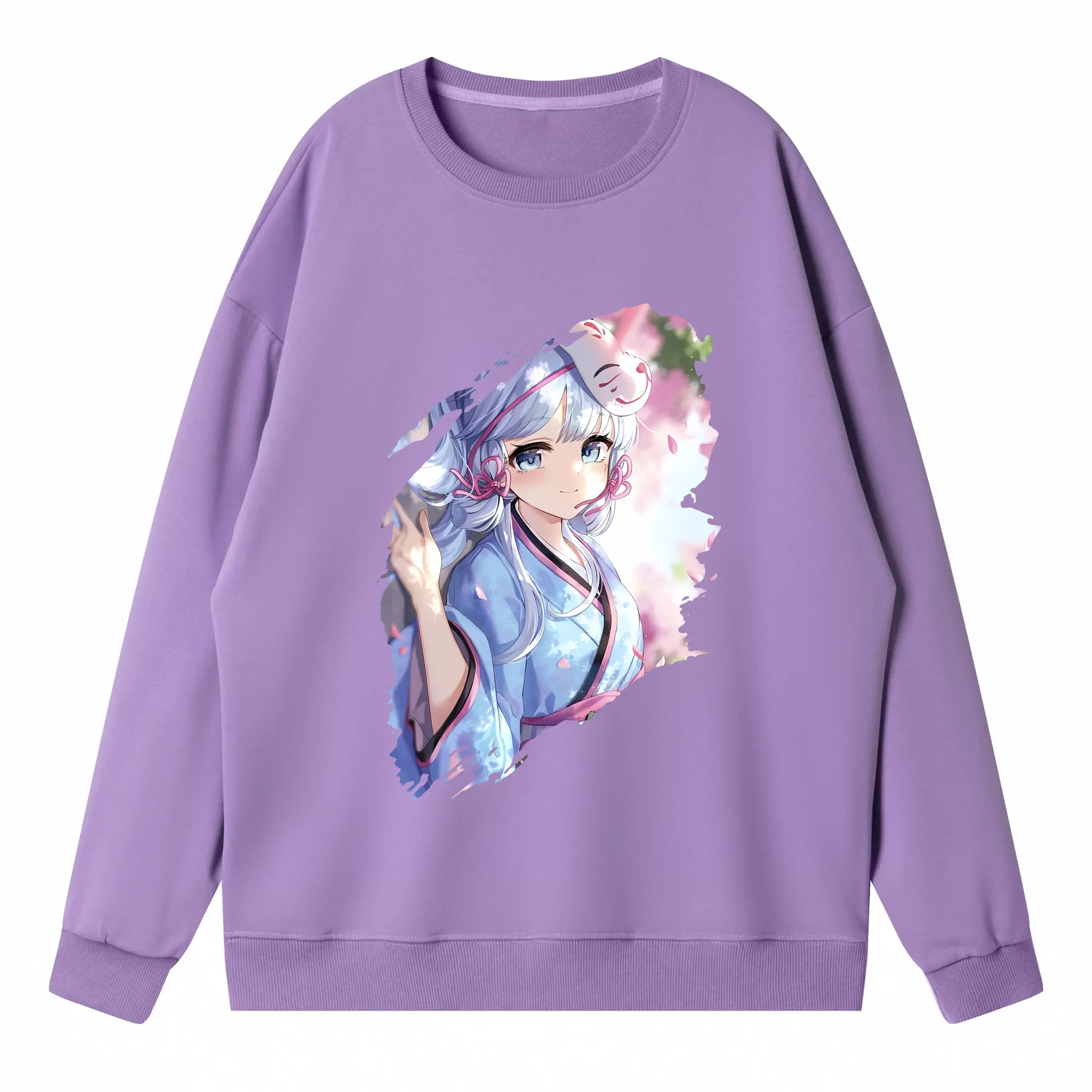 銀魂 グッズ 神楽 - 薄手 クルーネック スウェット 裏毛260g · ポリエステル 春秋向け カジュアル 男女兼用 · トレーナー デイリー スポーツ 散歩に最適