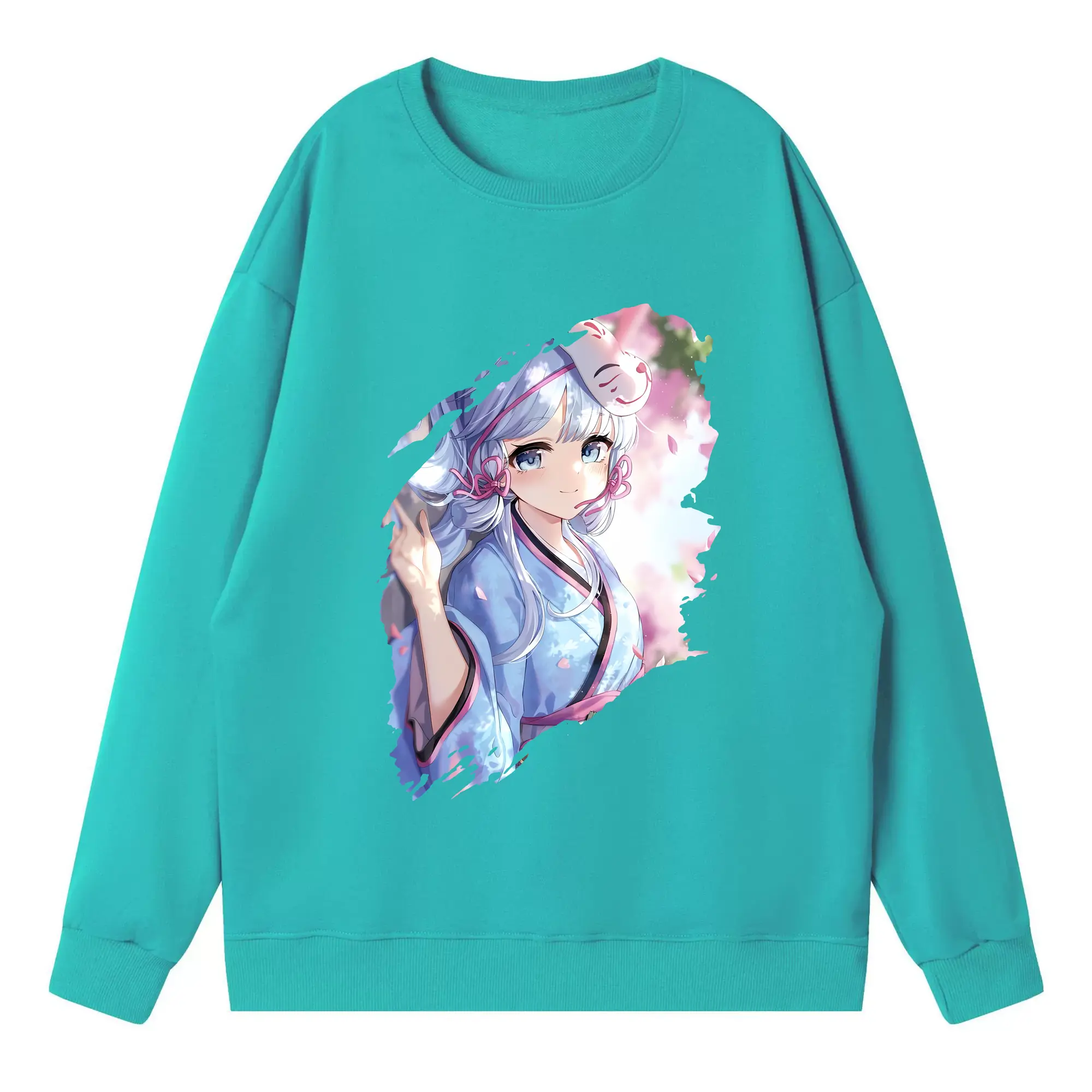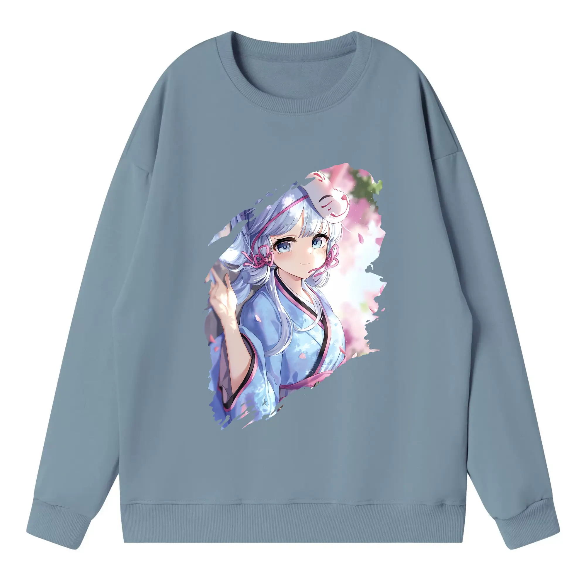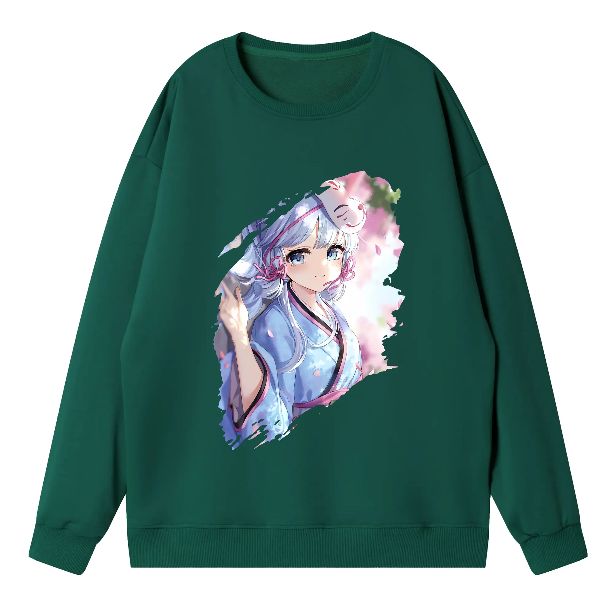銀魂 グッズ 神楽 - 薄手 クルーネック スウェット 裏毛260g · ポリエステル 春秋向け カジュアル 男女兼用 · トレーナー デイリー スポーツ 散歩に最適