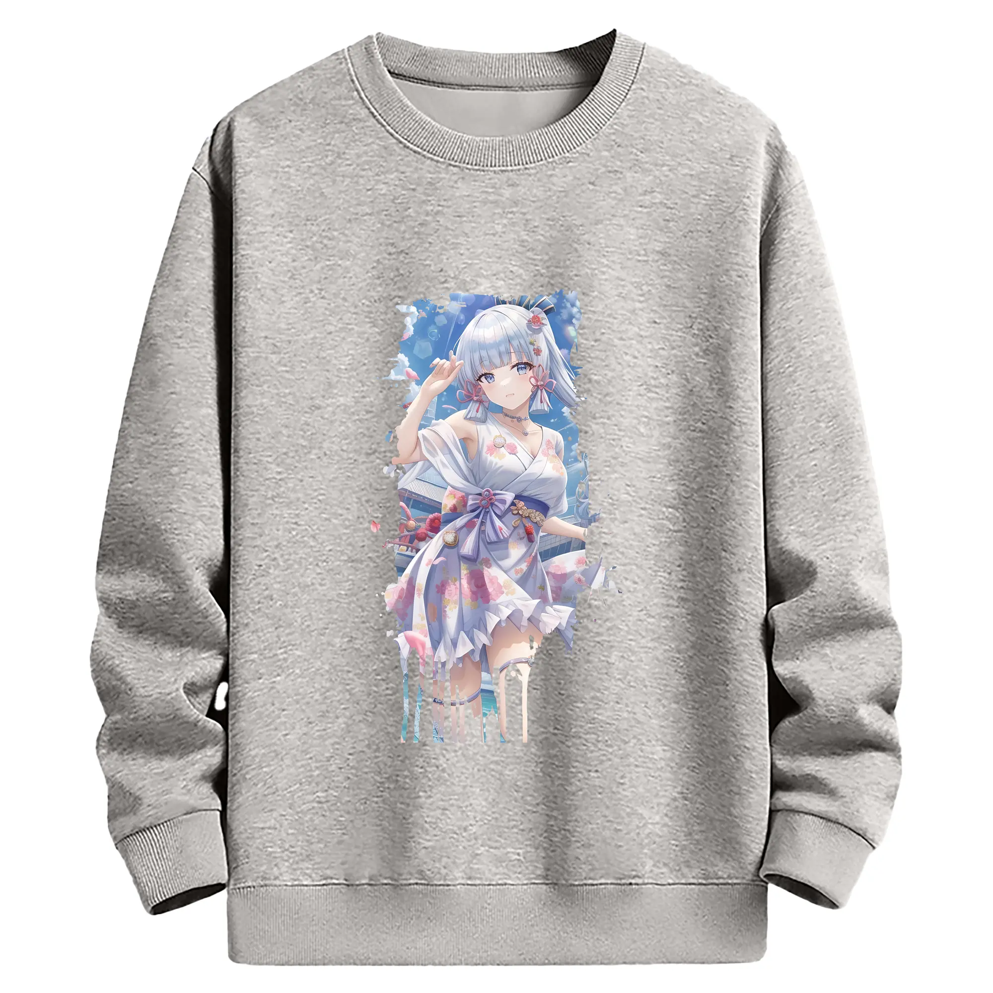原 神 グッズ 神里綾華 - 薄手 クルーネック スウェット 裏毛260g · ポリエステル 春秋向け カジュアル 男女兼用 · トレーナー デイリー スポーツ 散歩に最適