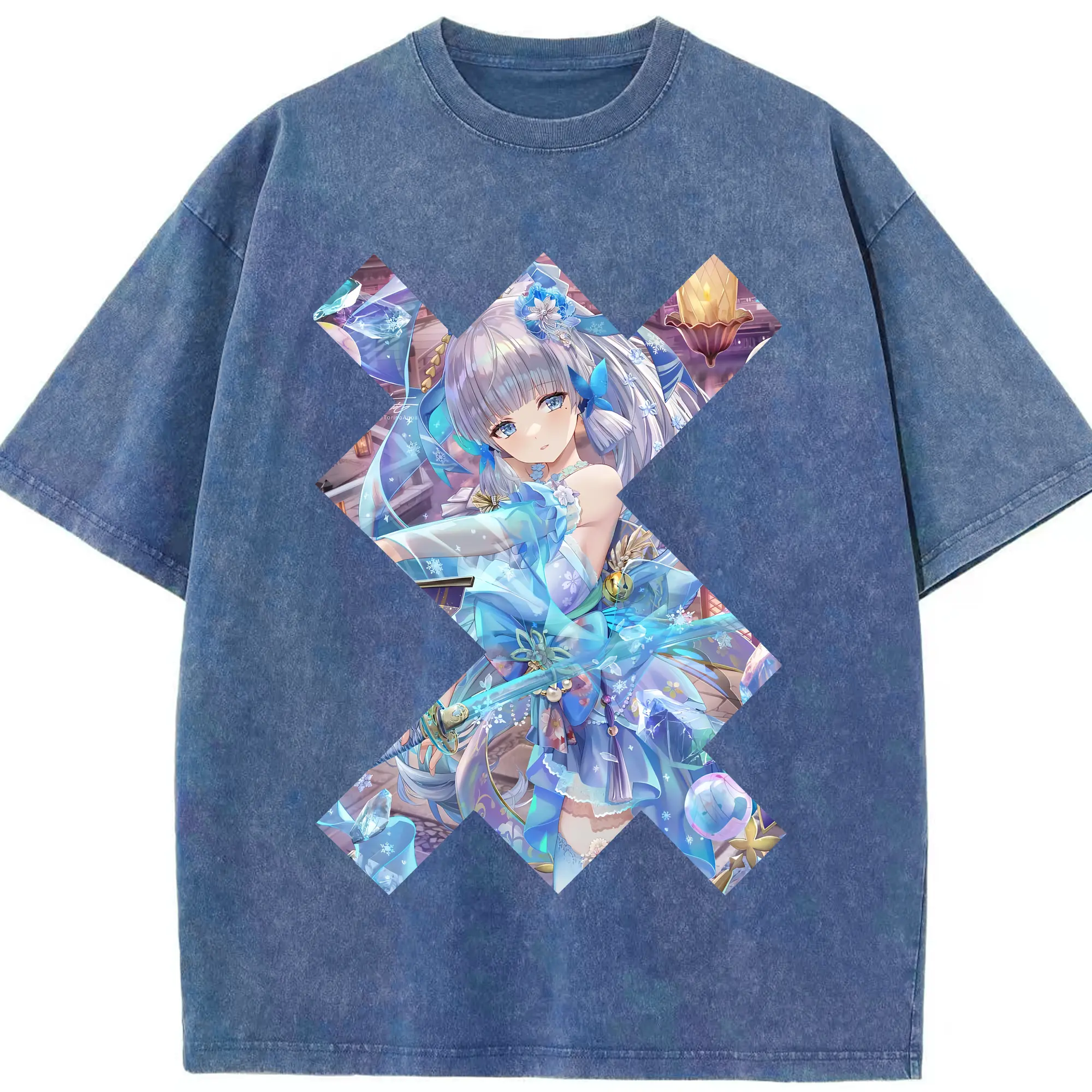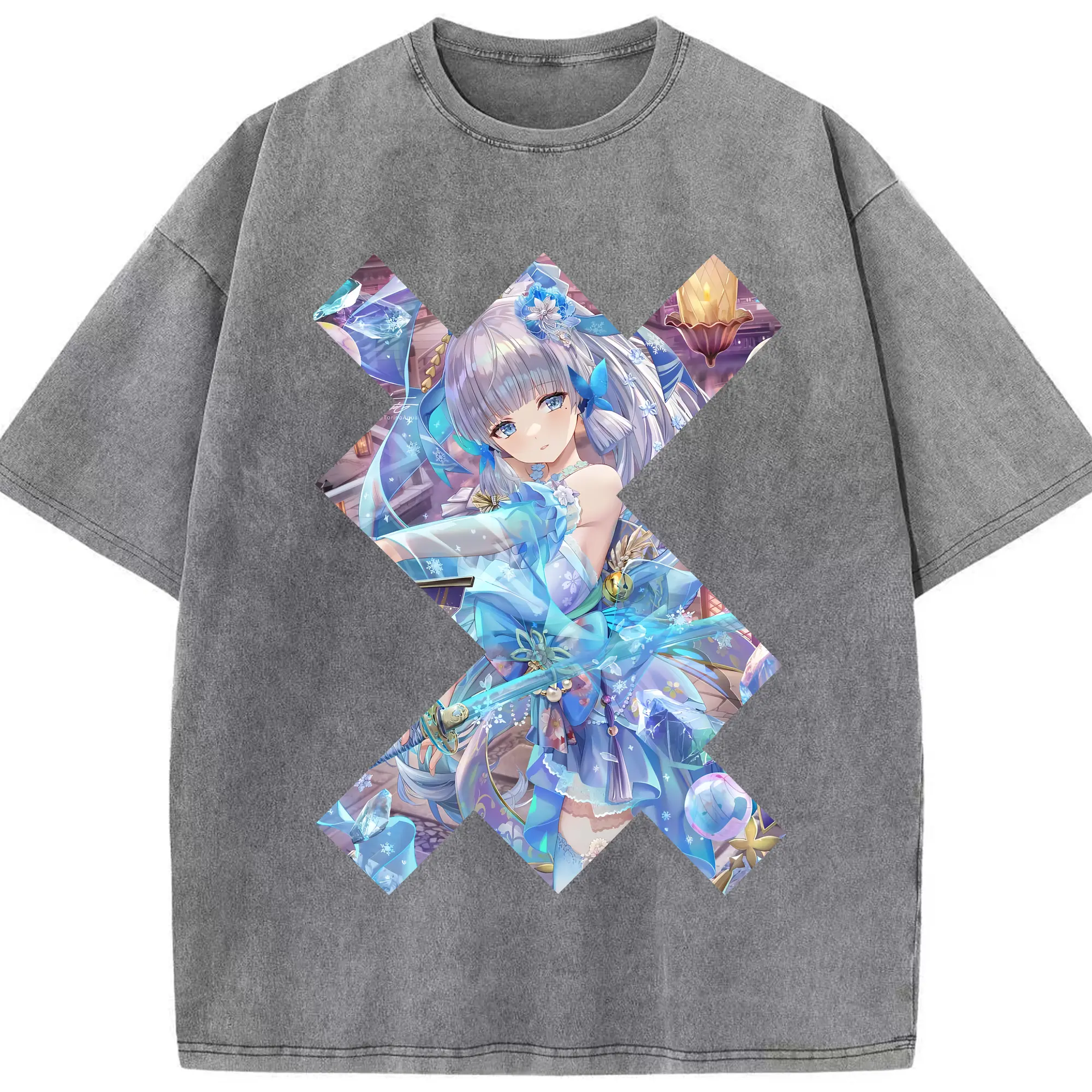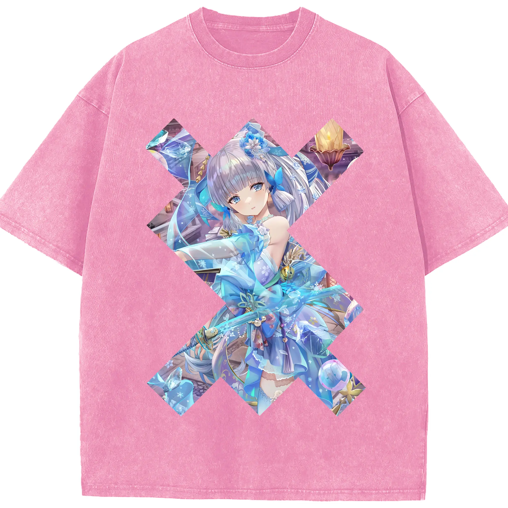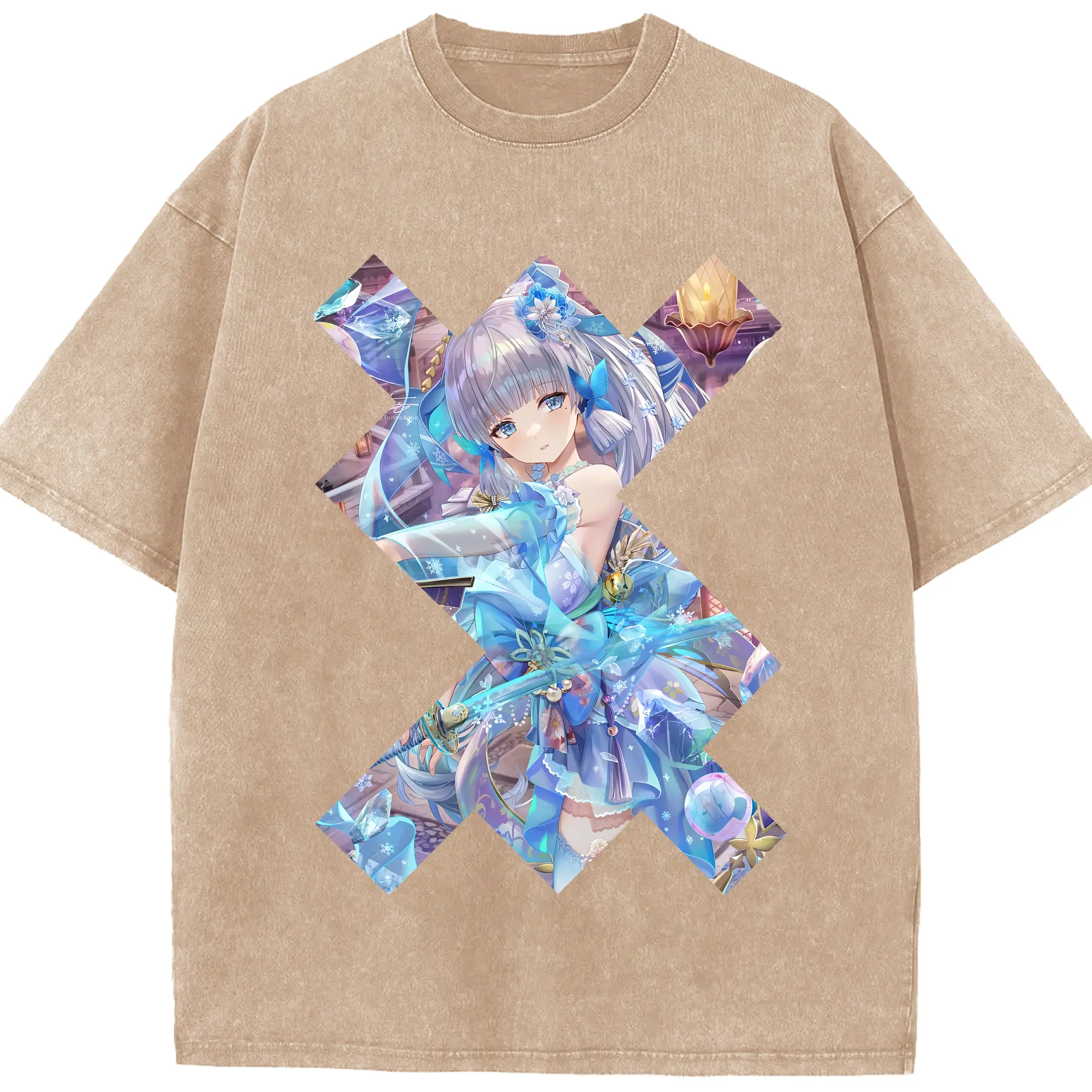 原 神 グッズ 神里綾華 - 綿100% ヴィンテージ風 半袖Tシャツ ・ 背面プリント ・ 柔らか肌触り ・ 通気性 快適 ・ スポーツ カジュアル 外出用