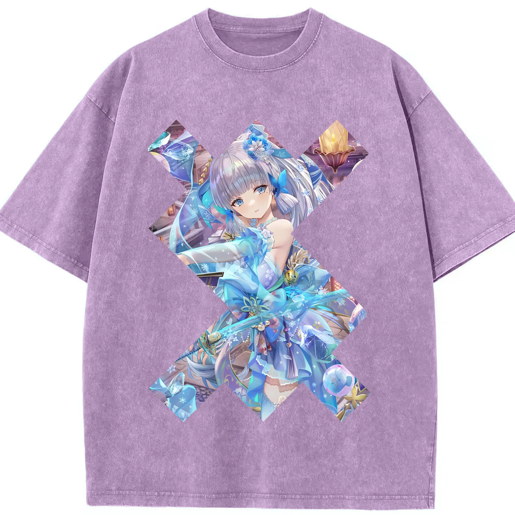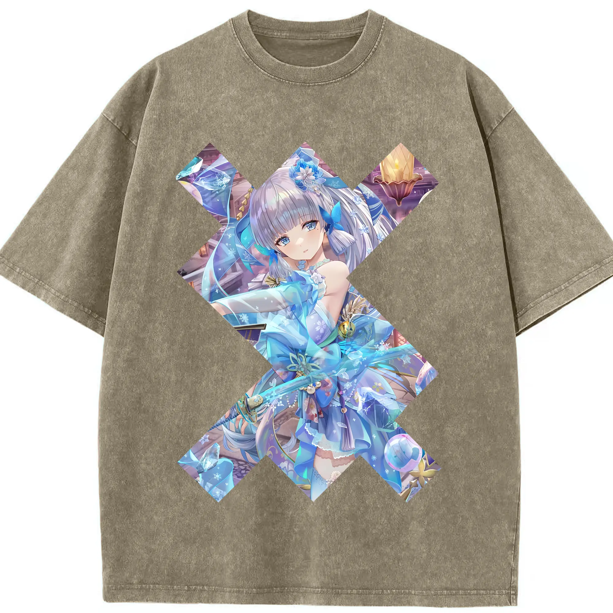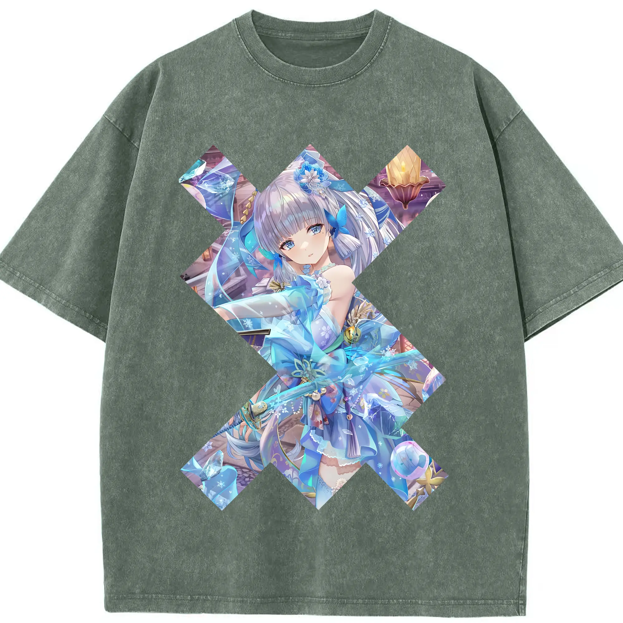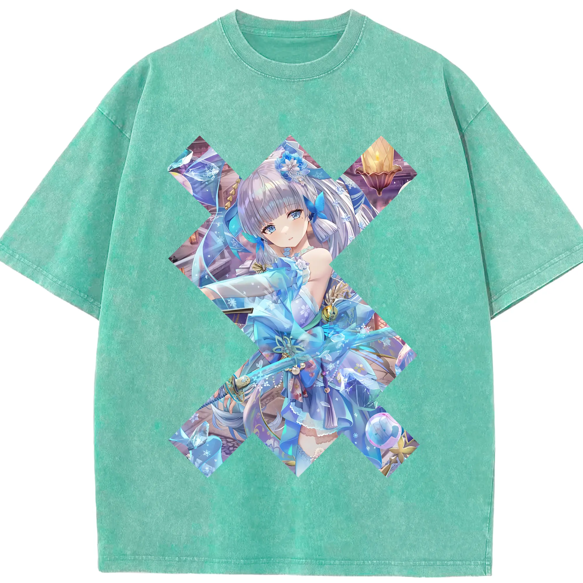 原 神 グッズ 神里綾華 - 綿100% ヴィンテージ風 半袖Tシャツ ・ 背面プリント ・ 柔らか肌触り ・ 通気性 快適 ・ スポーツ カジュアル 外出用