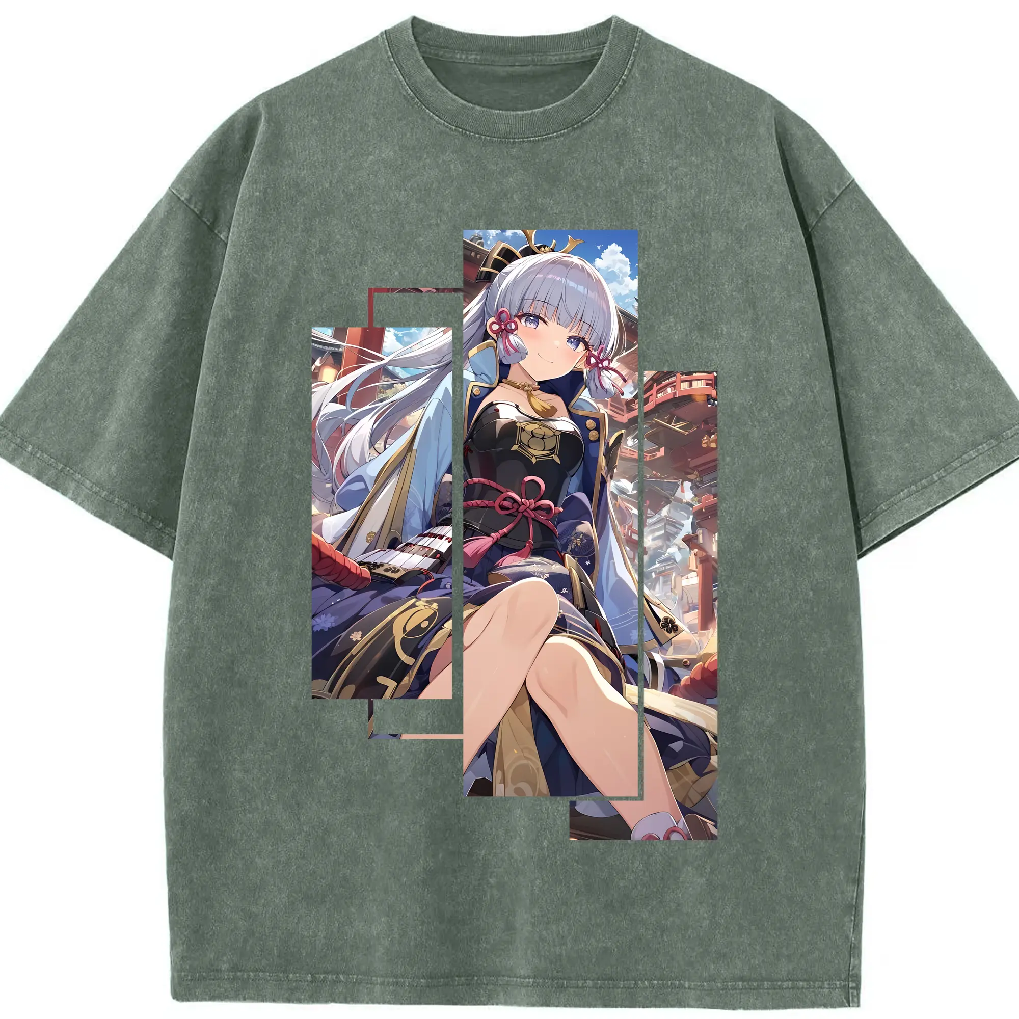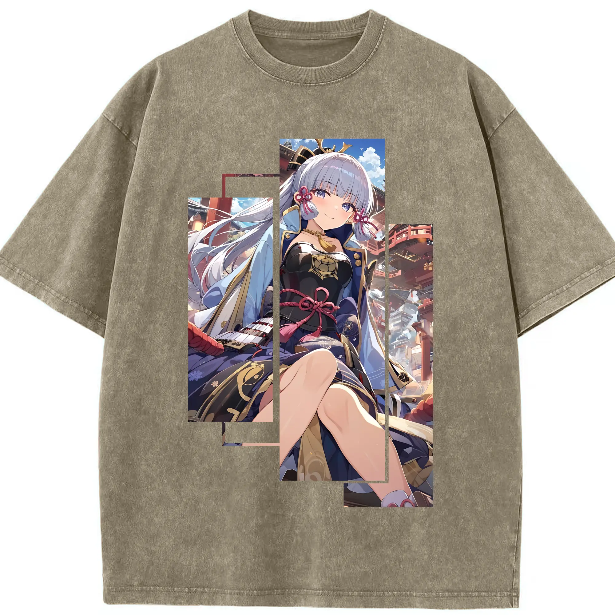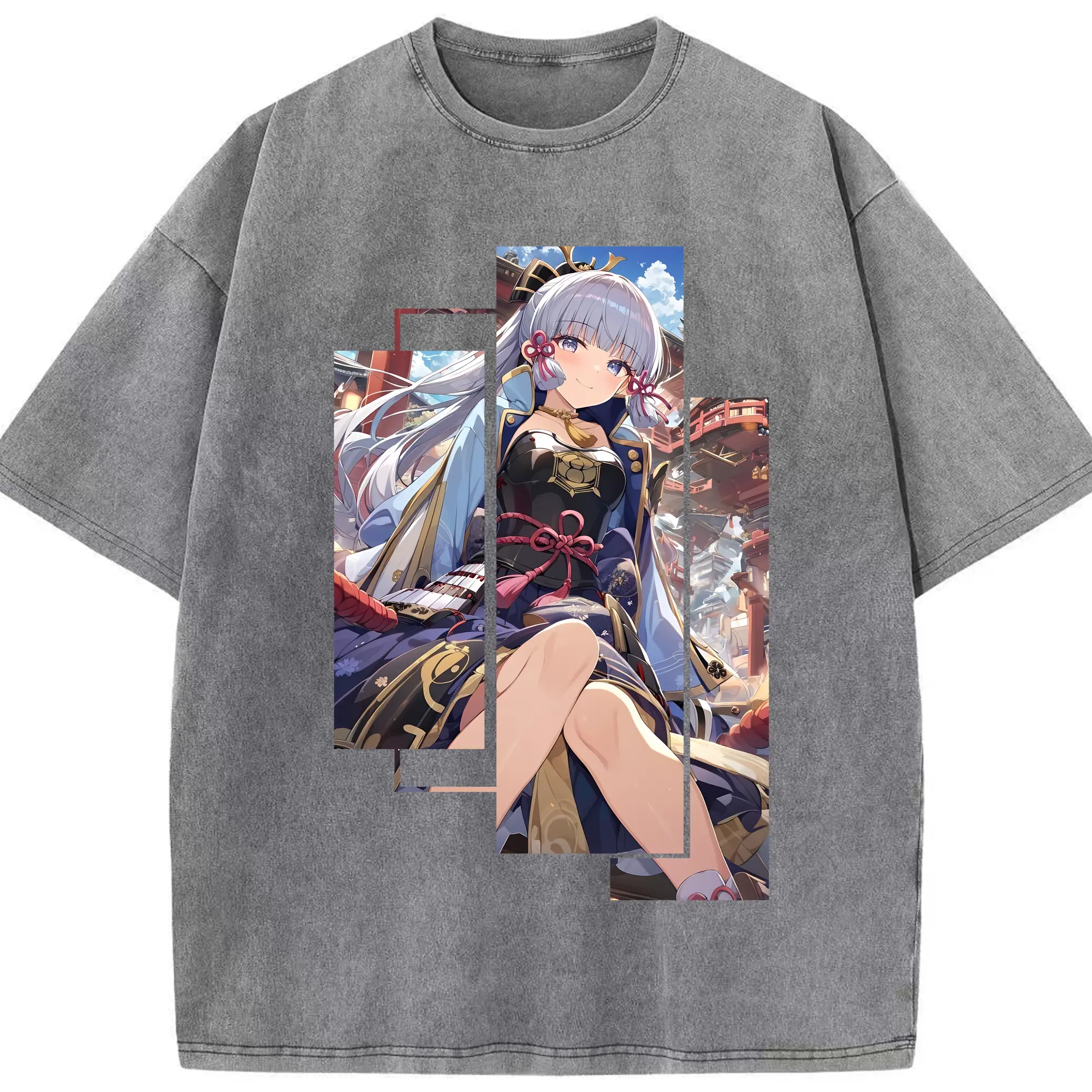原 神 グッズ 神里綾華 - 綿100% ヴィンテージ風 半袖Tシャツ ・ 背面プリント ・ 柔らか肌触り ・ 通気性 快適 ・ スポーツ カジュアル 外出用