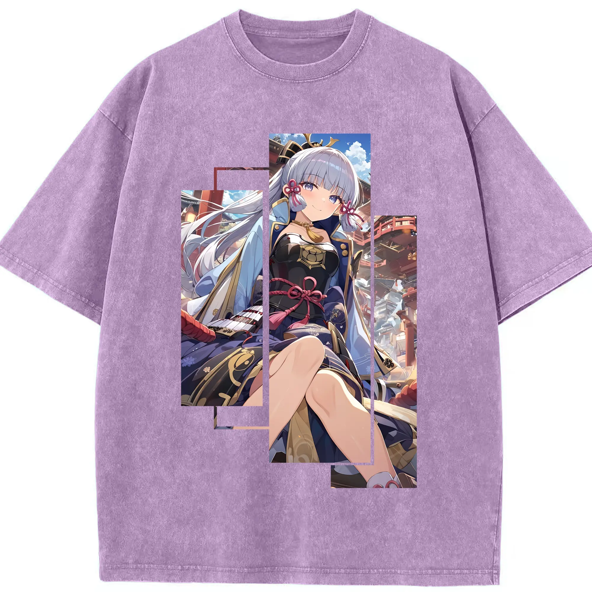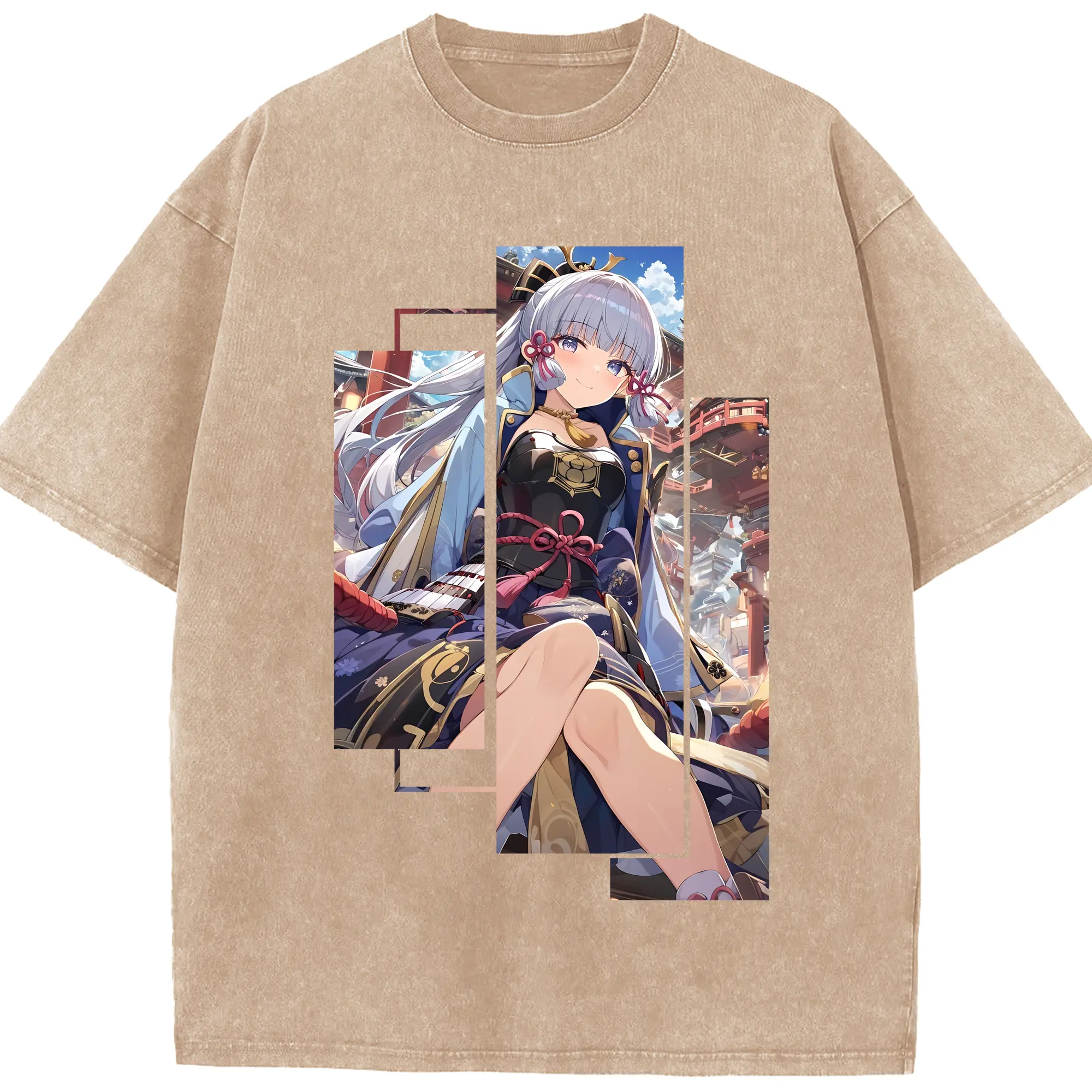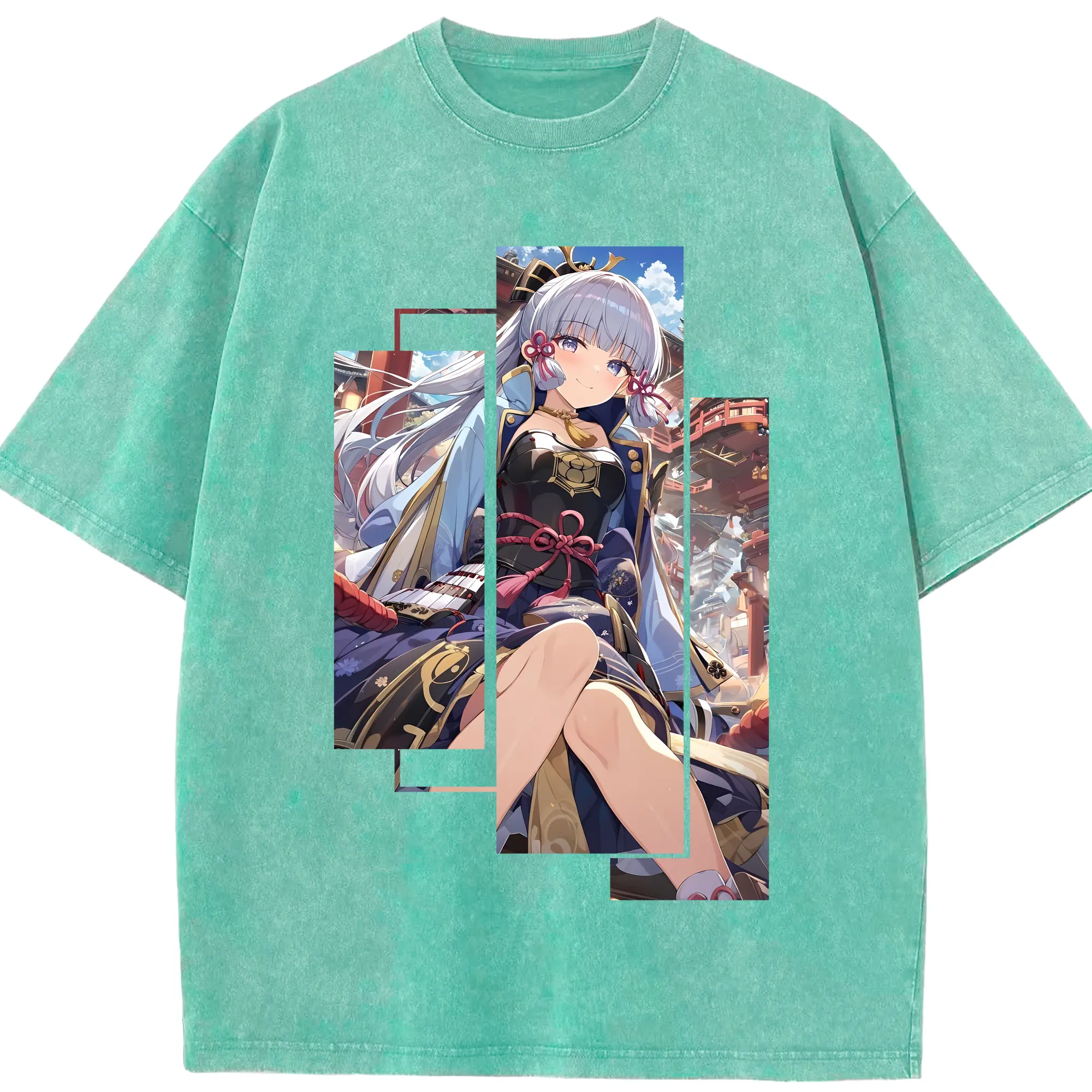 原 神 グッズ 神里綾華 - 綿100% ヴィンテージ風 半袖Tシャツ ・ 背面プリント ・ 柔らか肌触り ・ 通気性 快適 ・ スポーツ カジュアル 外出用