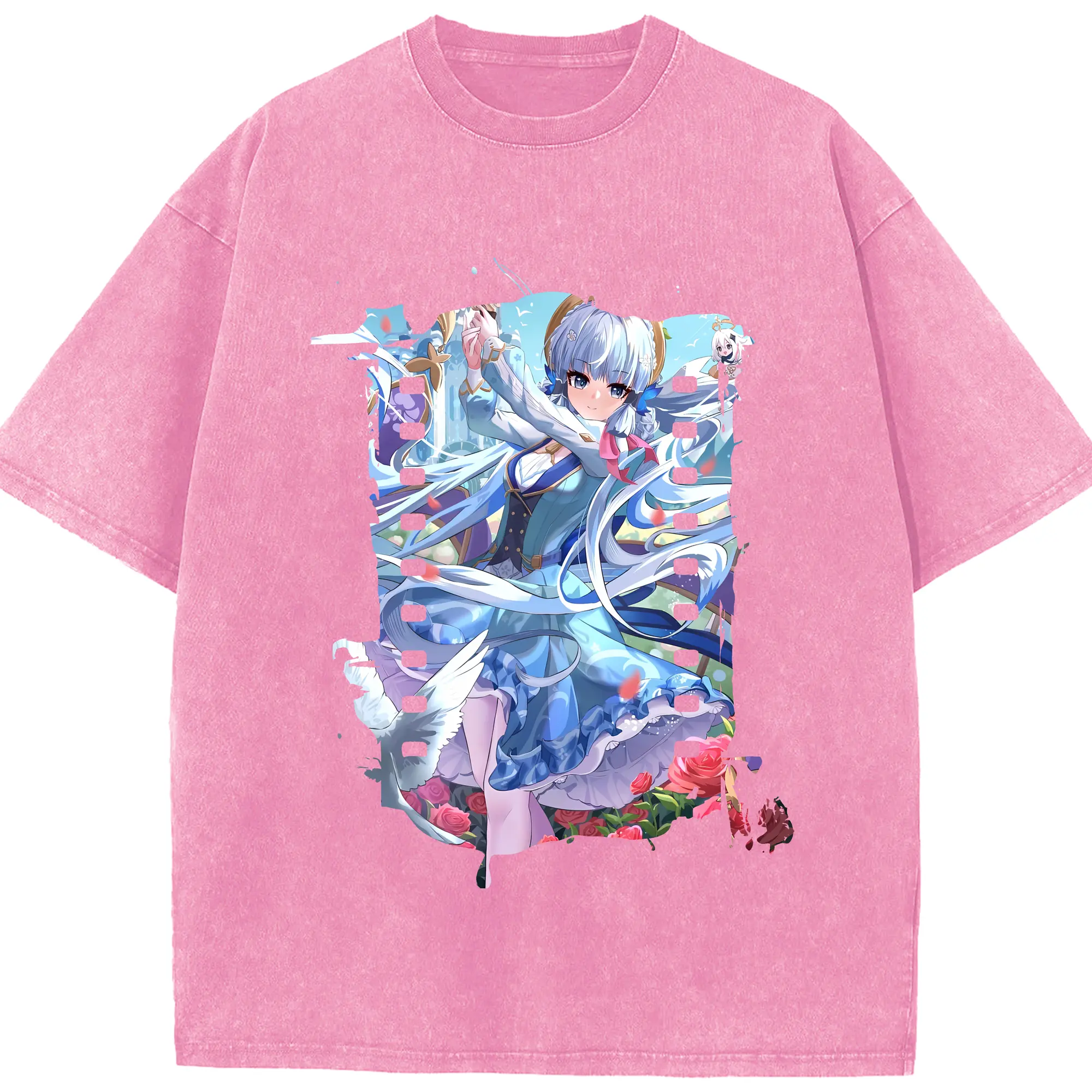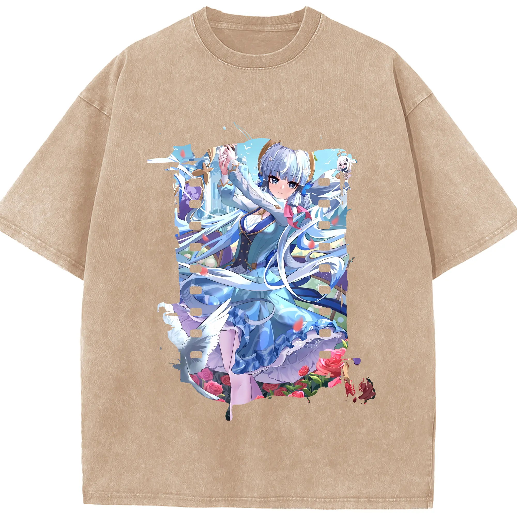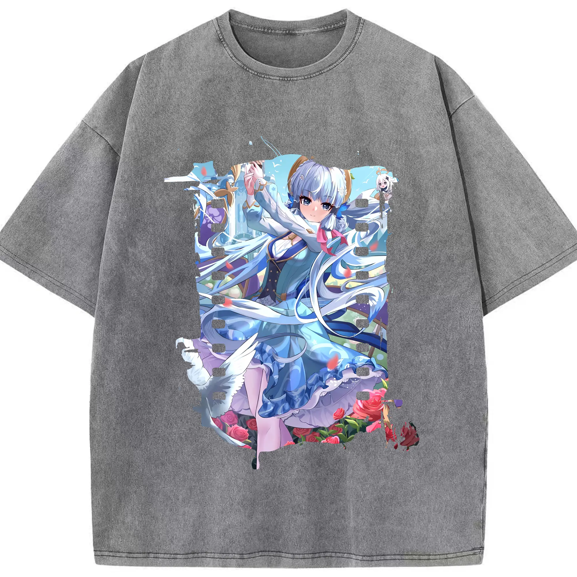 原 神 グッズ 神里綾華 - 綿100% ヴィンテージ風 半袖Tシャツ ・ 背面プリント ・ 柔らか肌触り ・ 通気性 快適 ・ スポーツ カジュアル 外出用