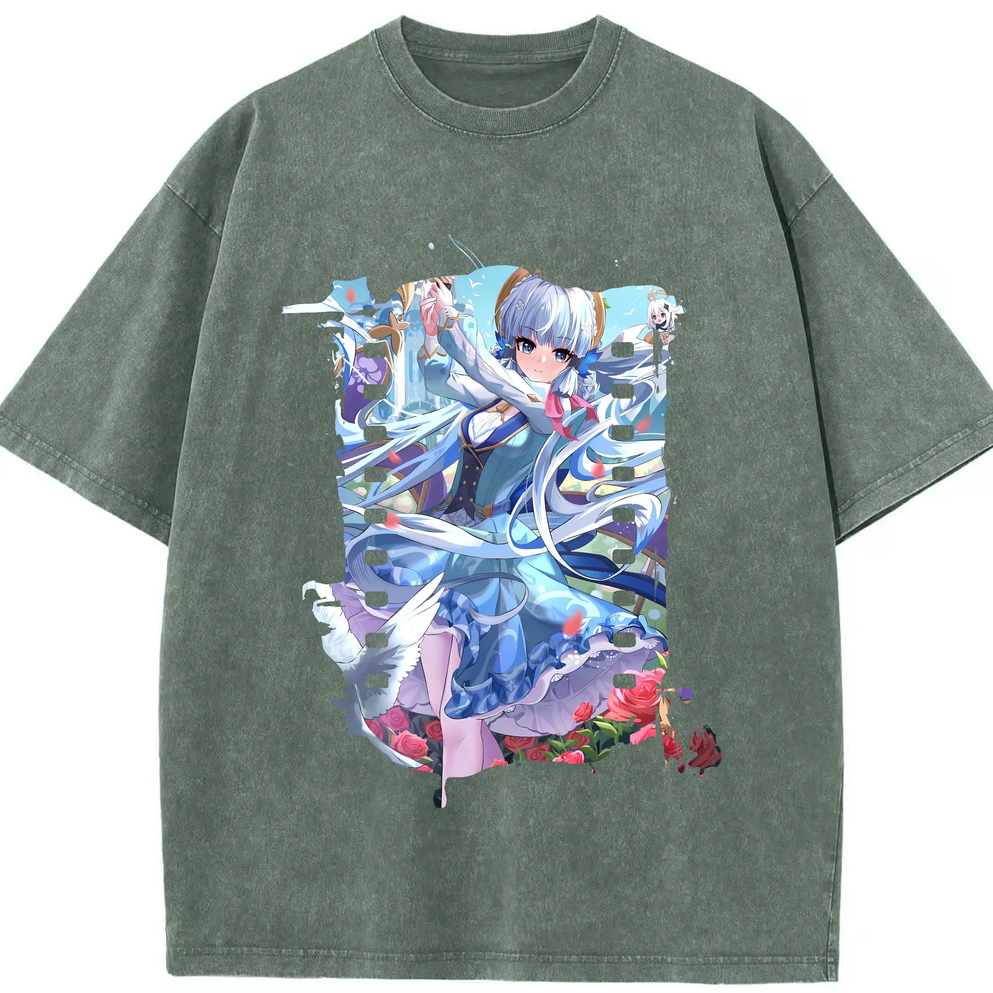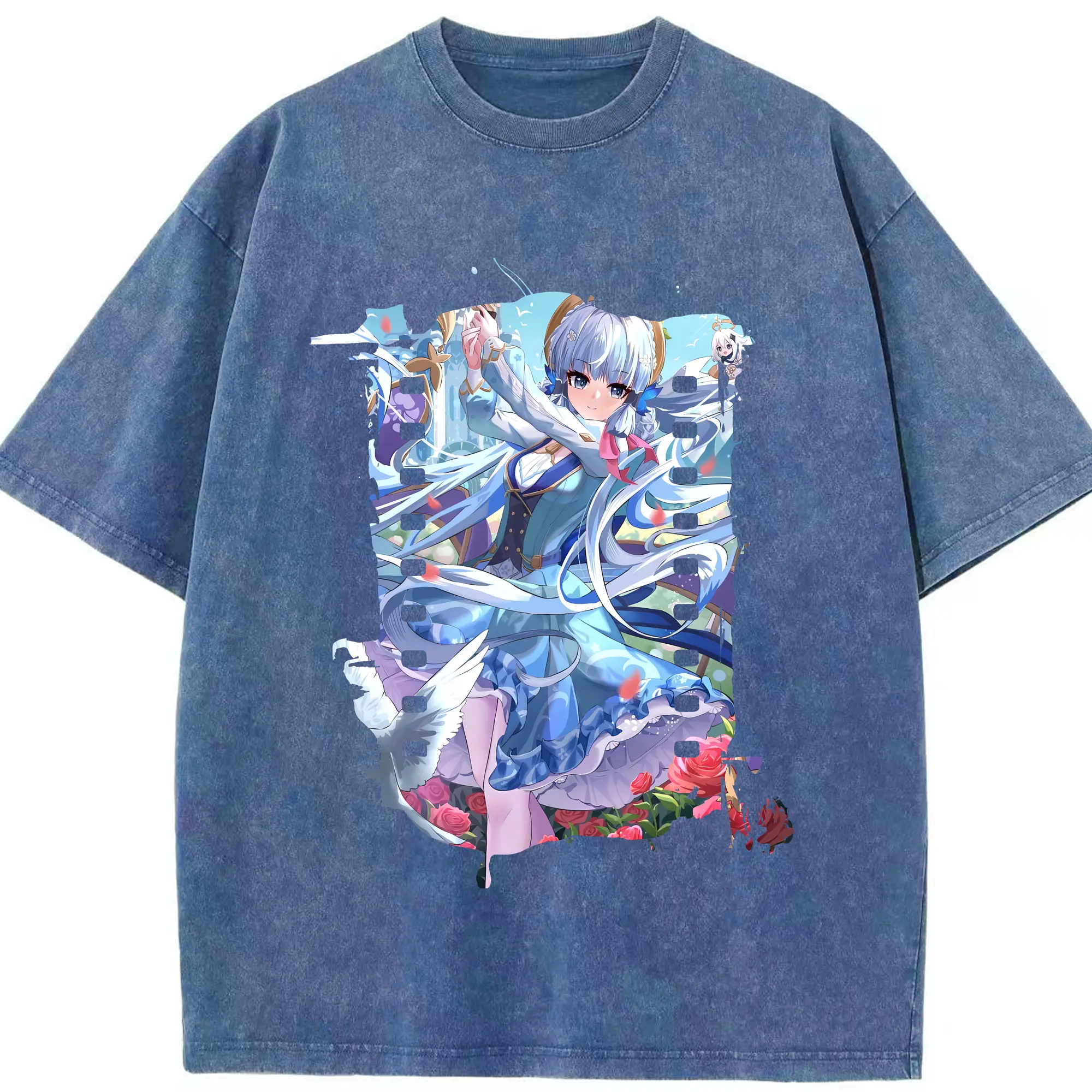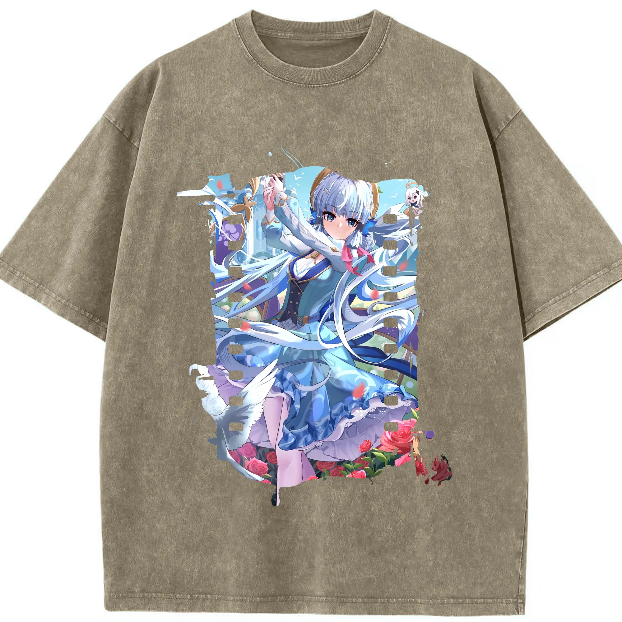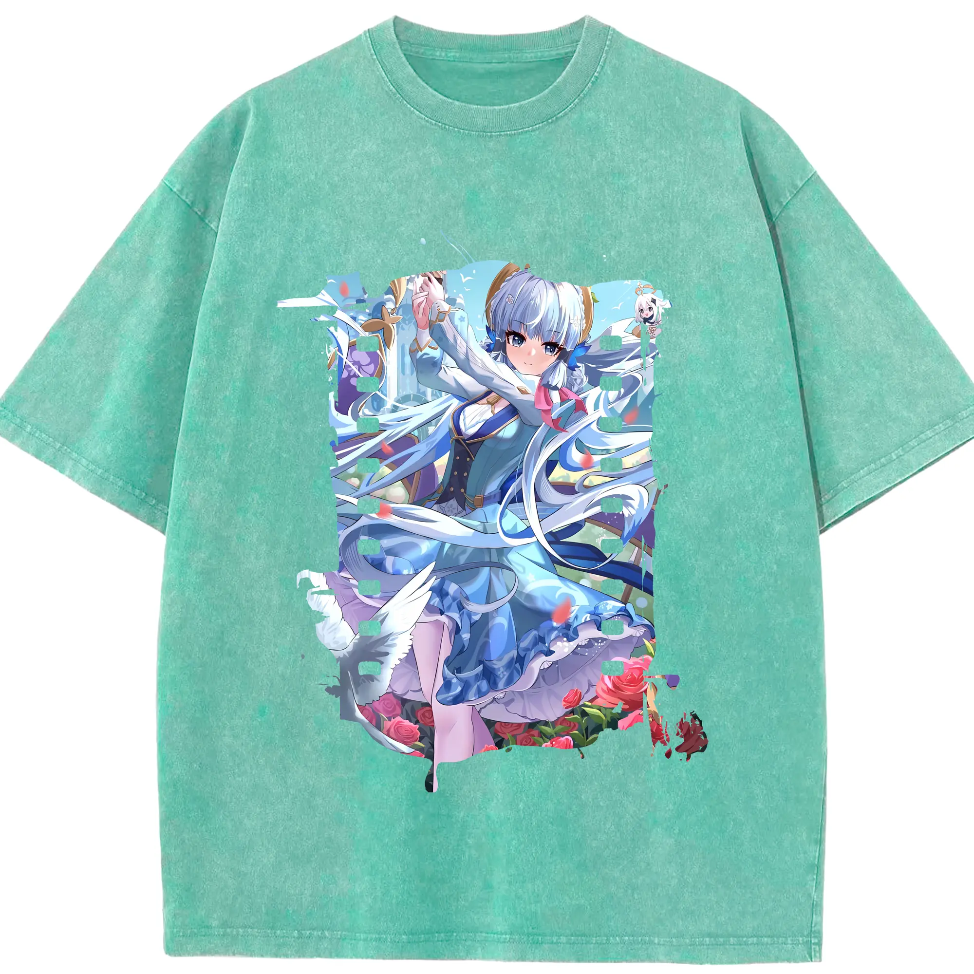 原 神 グッズ 神里綾華 - 綿100% ヴィンテージ風 半袖Tシャツ ・ 背面プリント ・ 柔らか肌触り ・ 通気性 快適 ・ スポーツ カジュアル 外出用