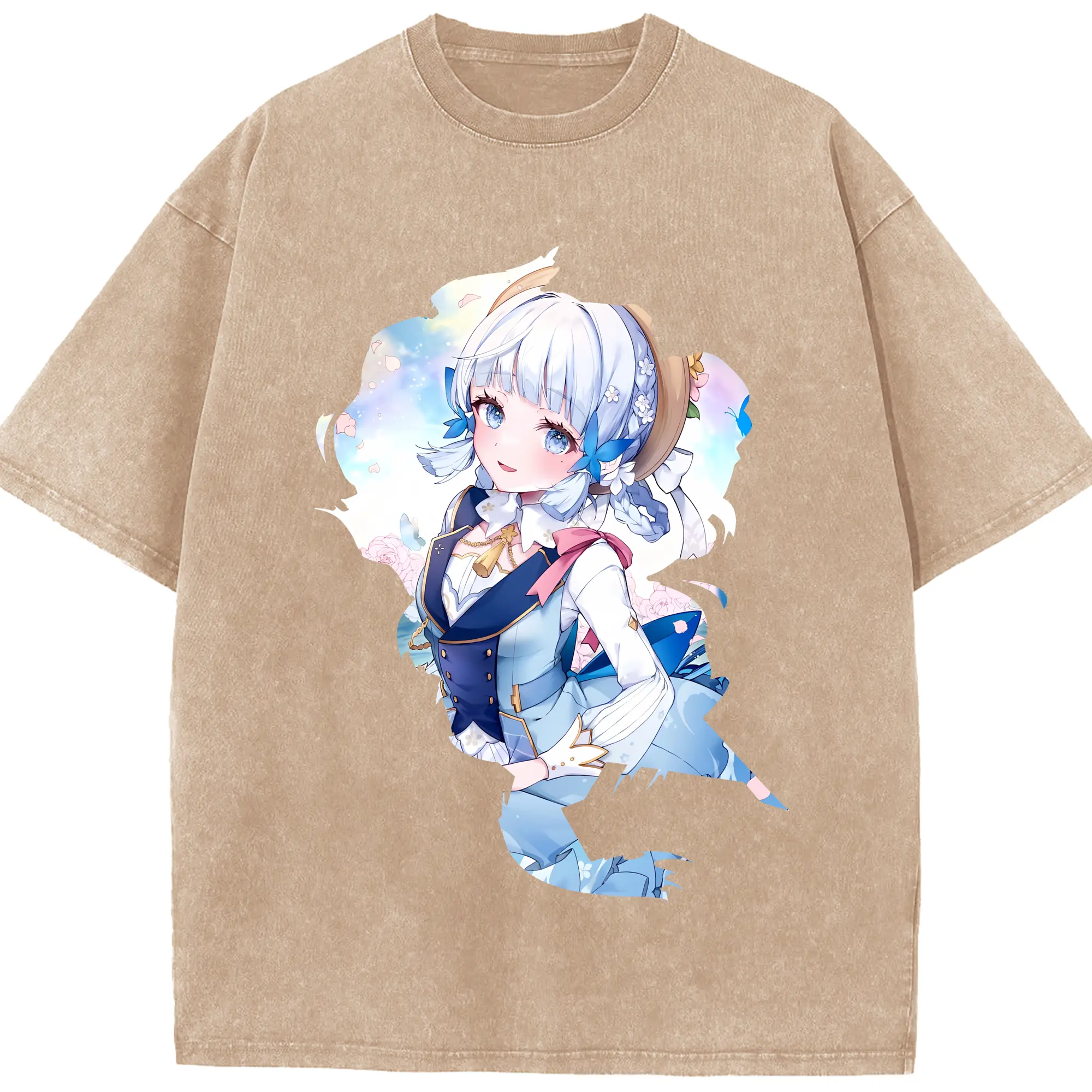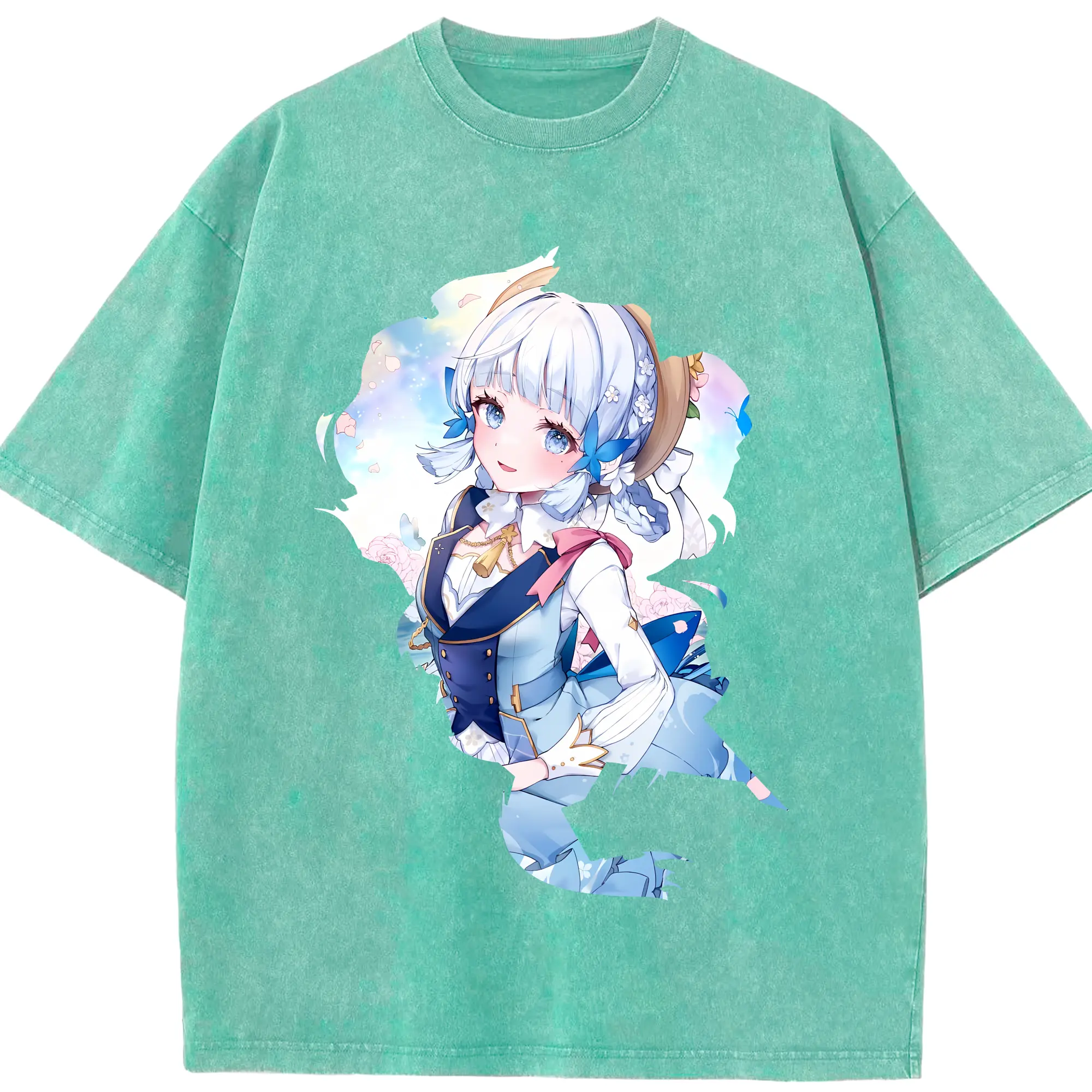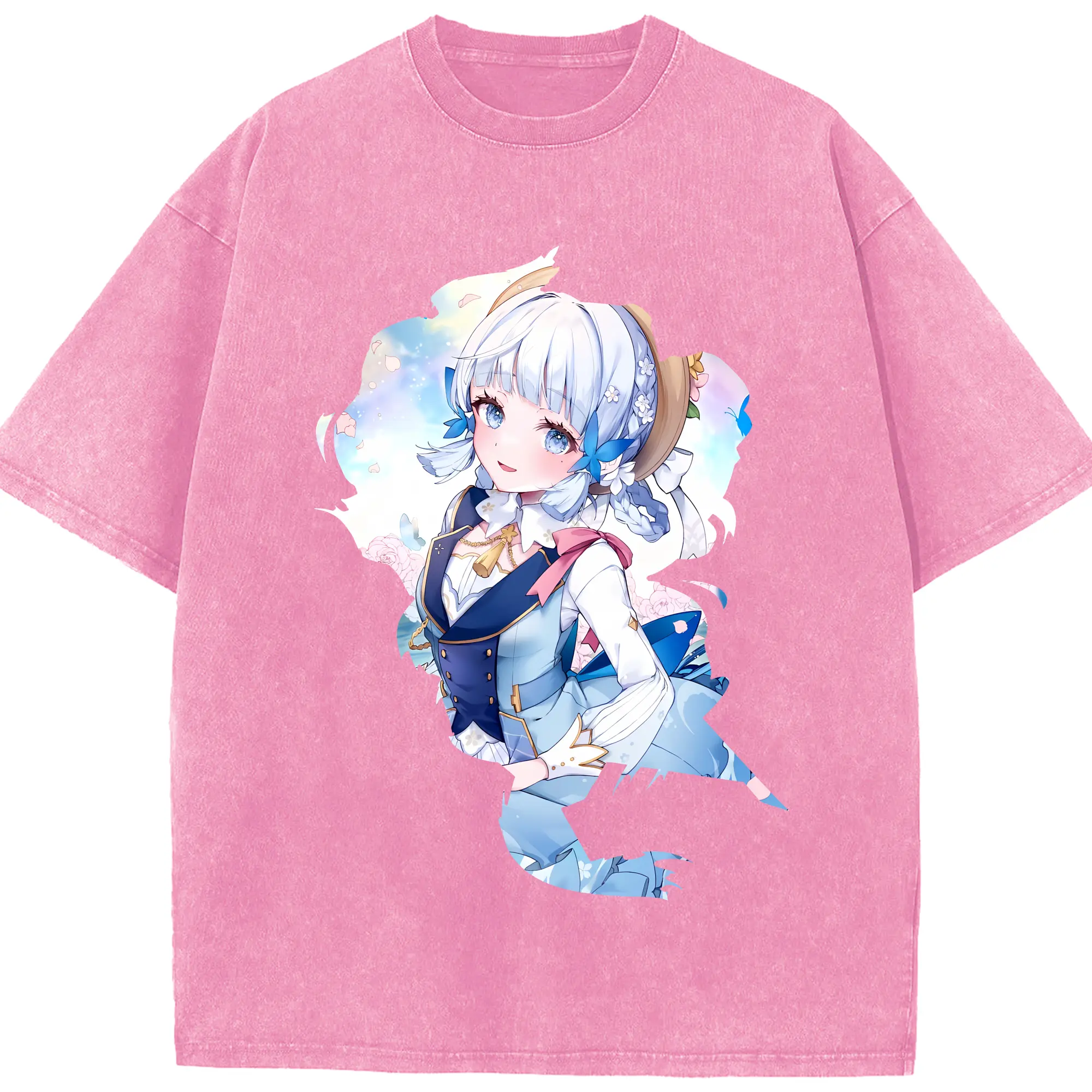 原 神 グッズ 神里綾華 - 綿100% ヴィンテージ風 半袖Tシャツ ・ 背面プリント ・ 柔らか肌触り ・ 通気性 快適 ・ スポーツ カジュアル 外出用