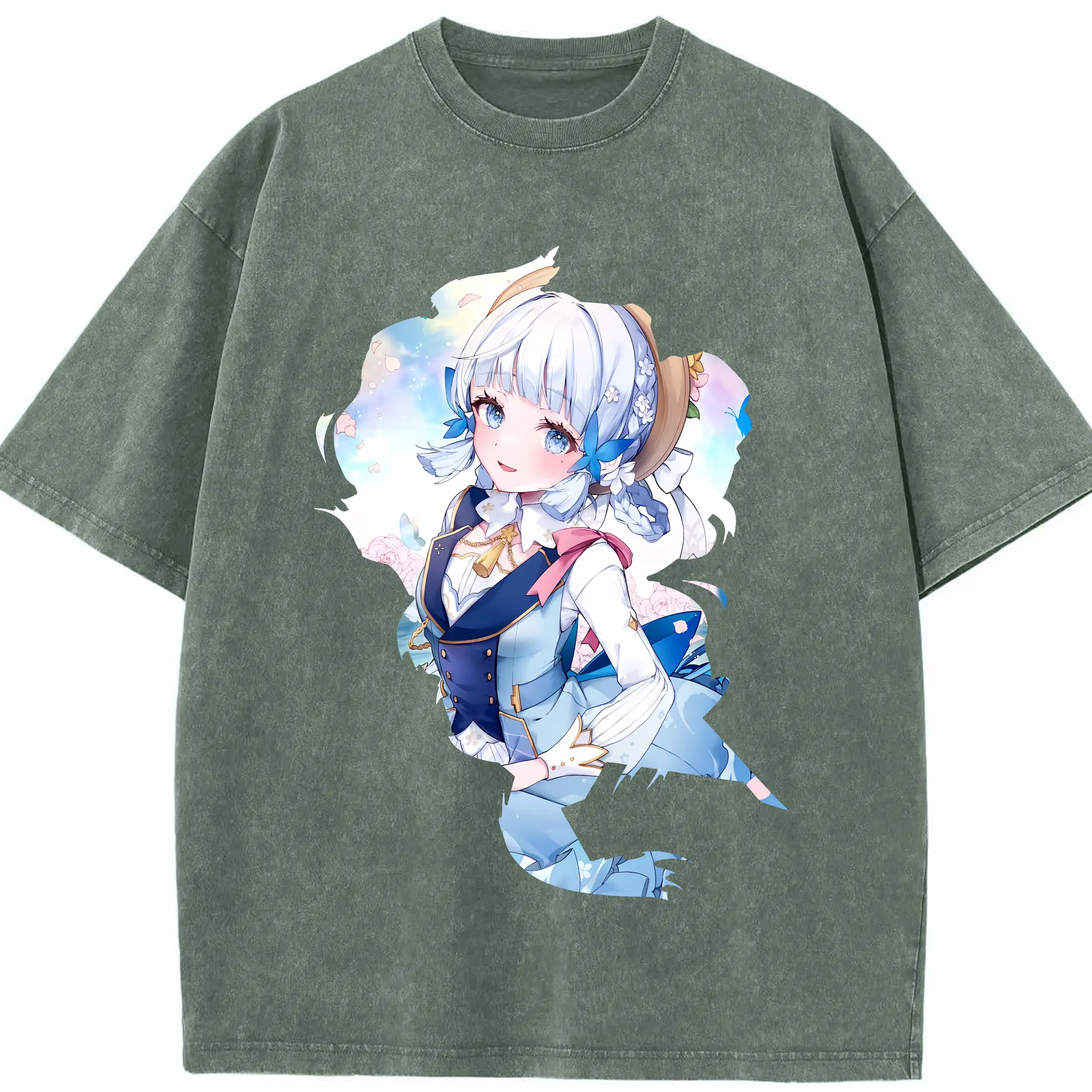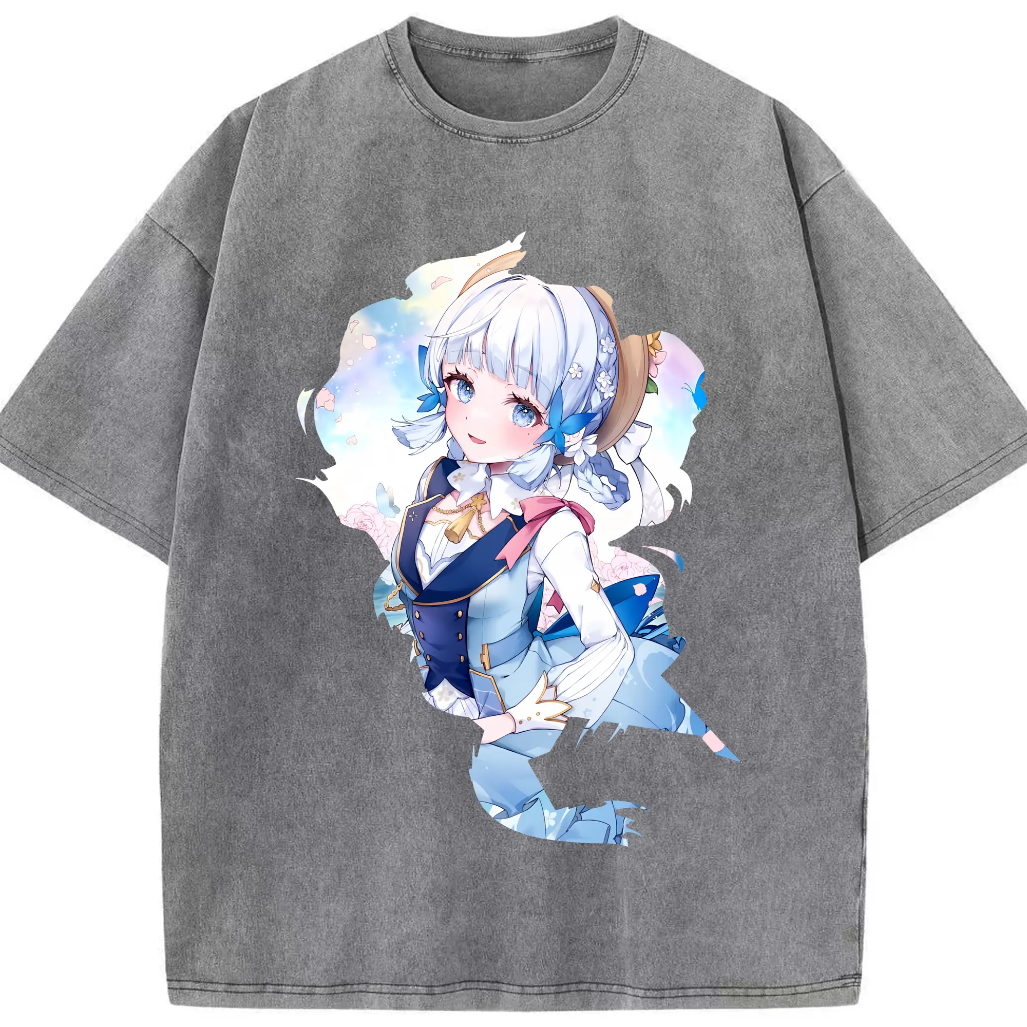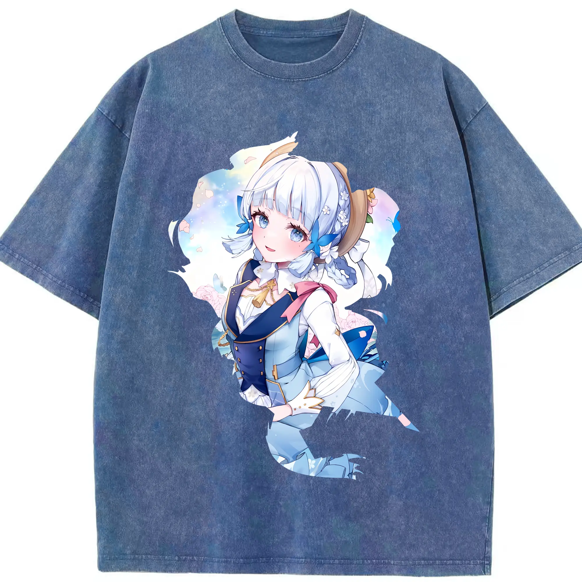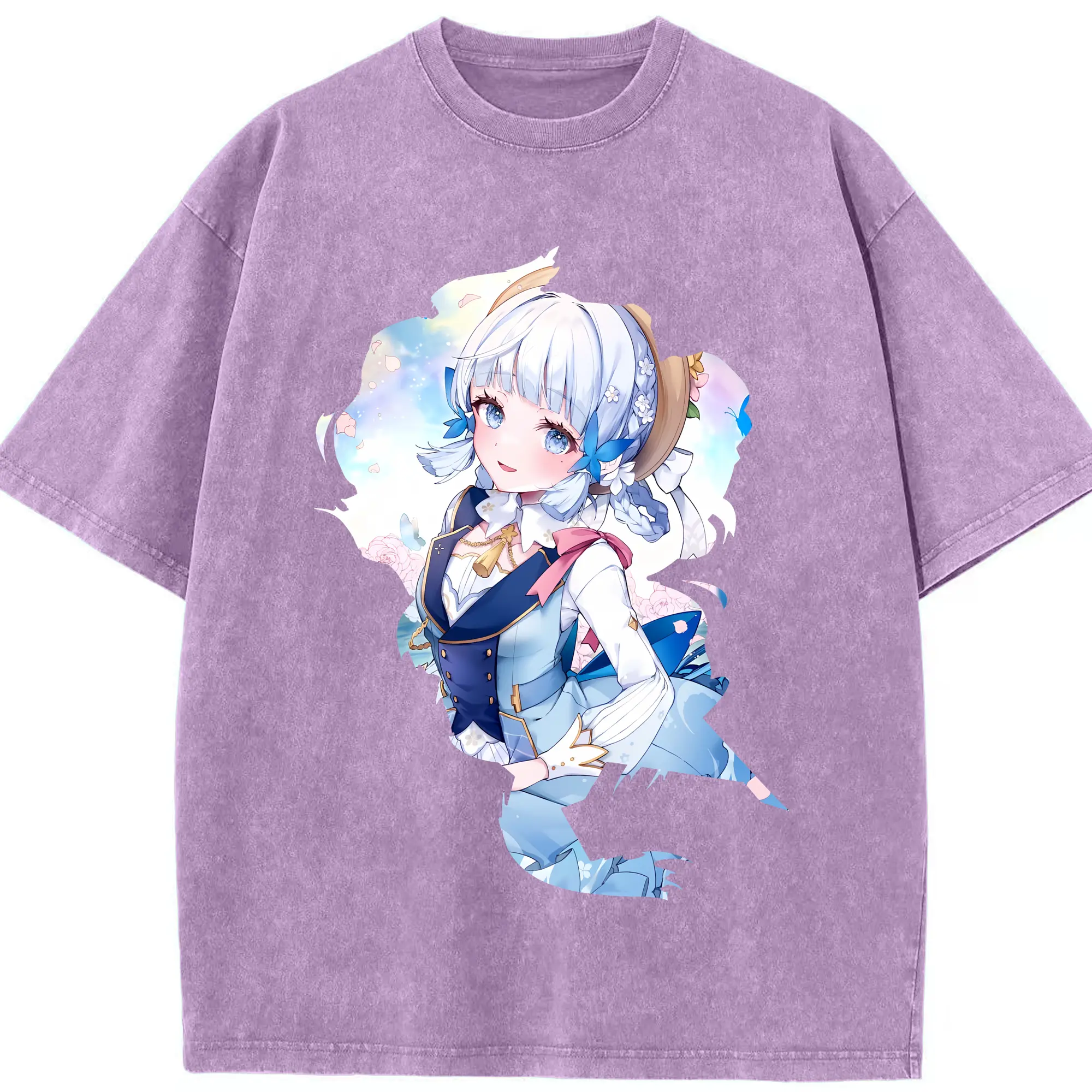 原 神 グッズ 神里綾華 - 綿100% ヴィンテージ風 半袖Tシャツ ・ 背面プリント ・ 柔らか肌触り ・ 通気性 快適 ・ スポーツ カジュアル 外出用