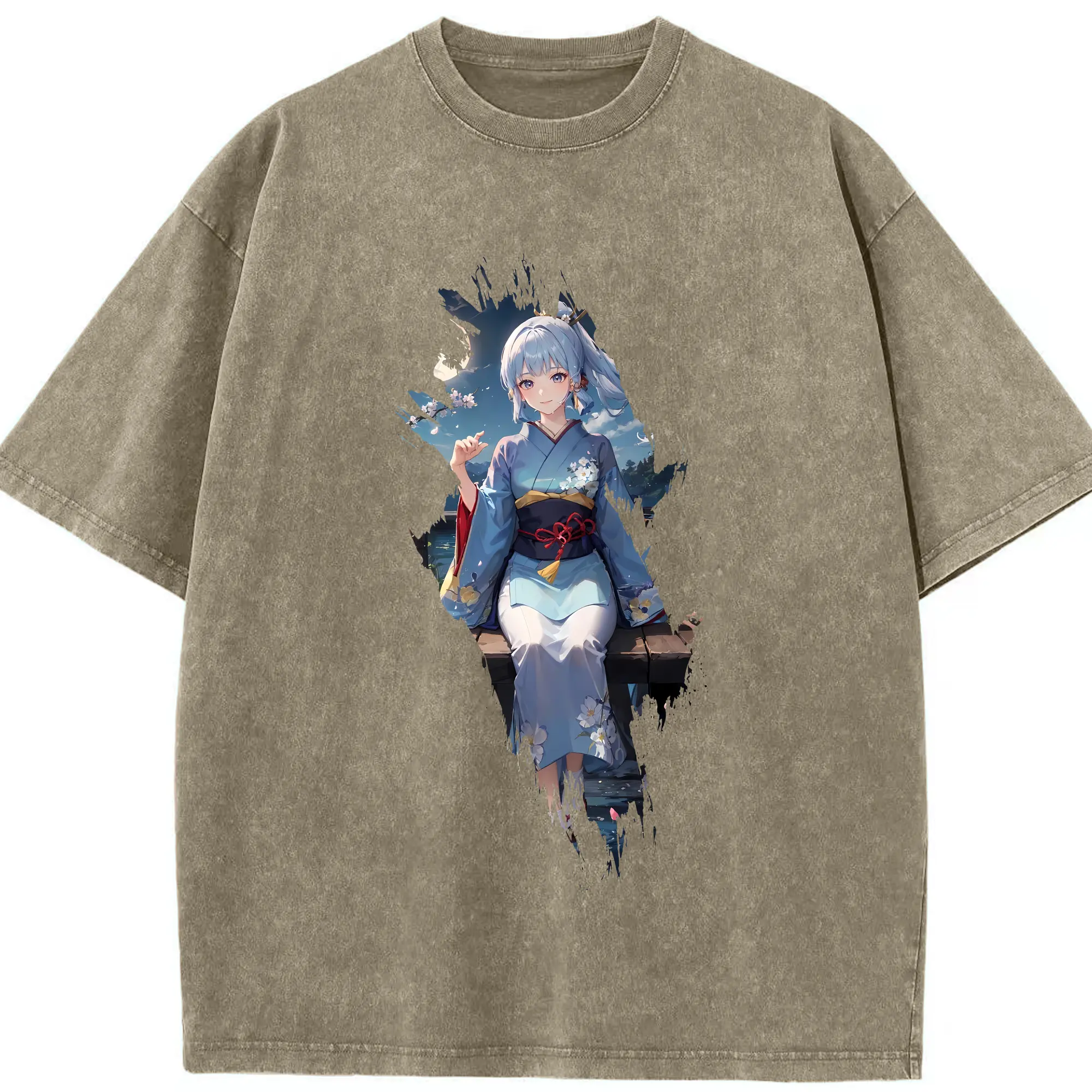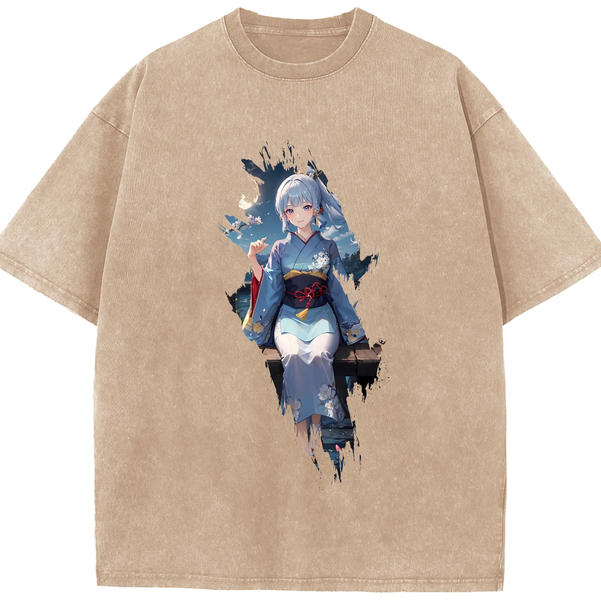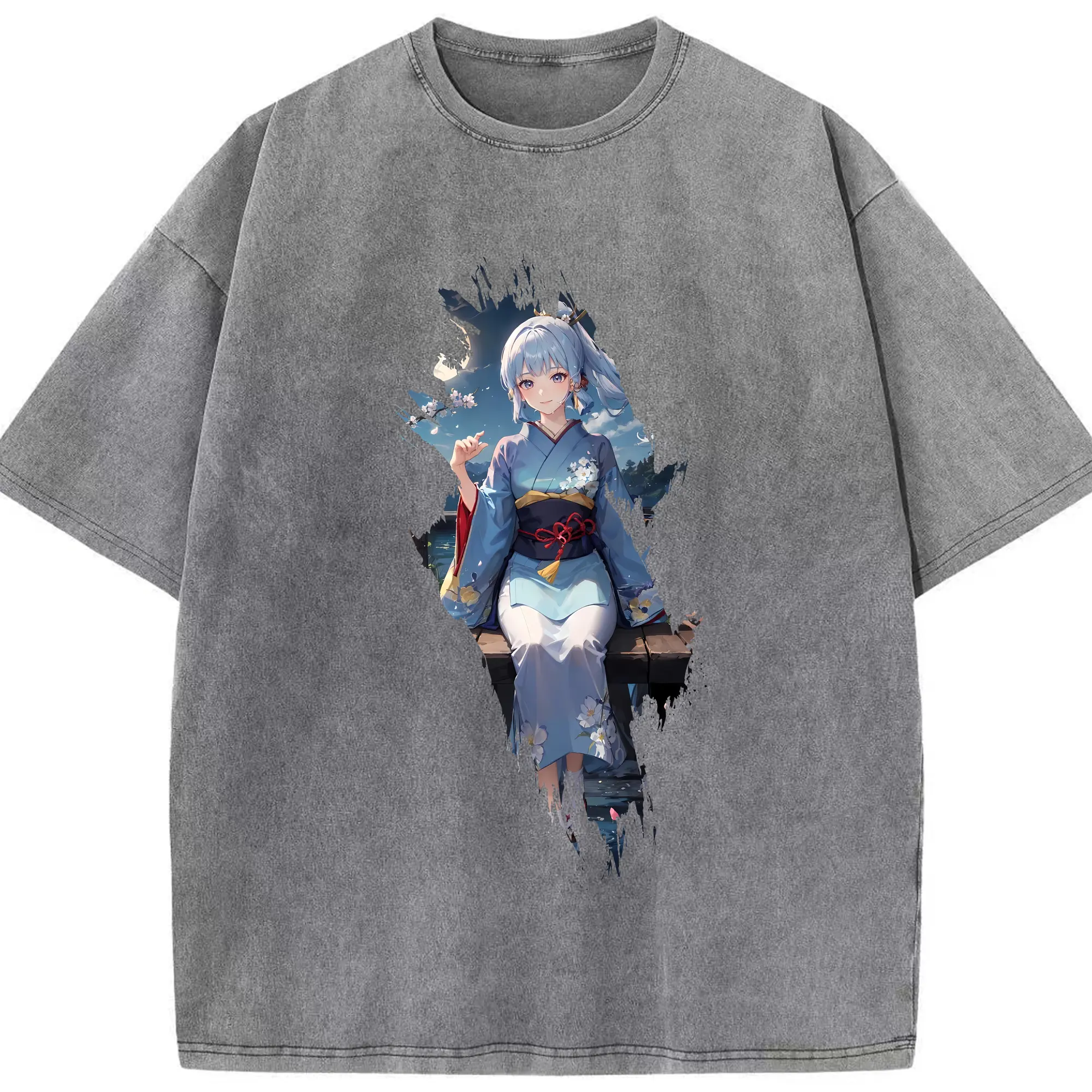 原 神 グッズ 神里綾華 - 綿100% ヴィンテージ風 半袖Tシャツ ・ 背面プリント ・ 柔らか肌触り ・ 通気性 快適 ・ スポーツ カジュアル 外出用