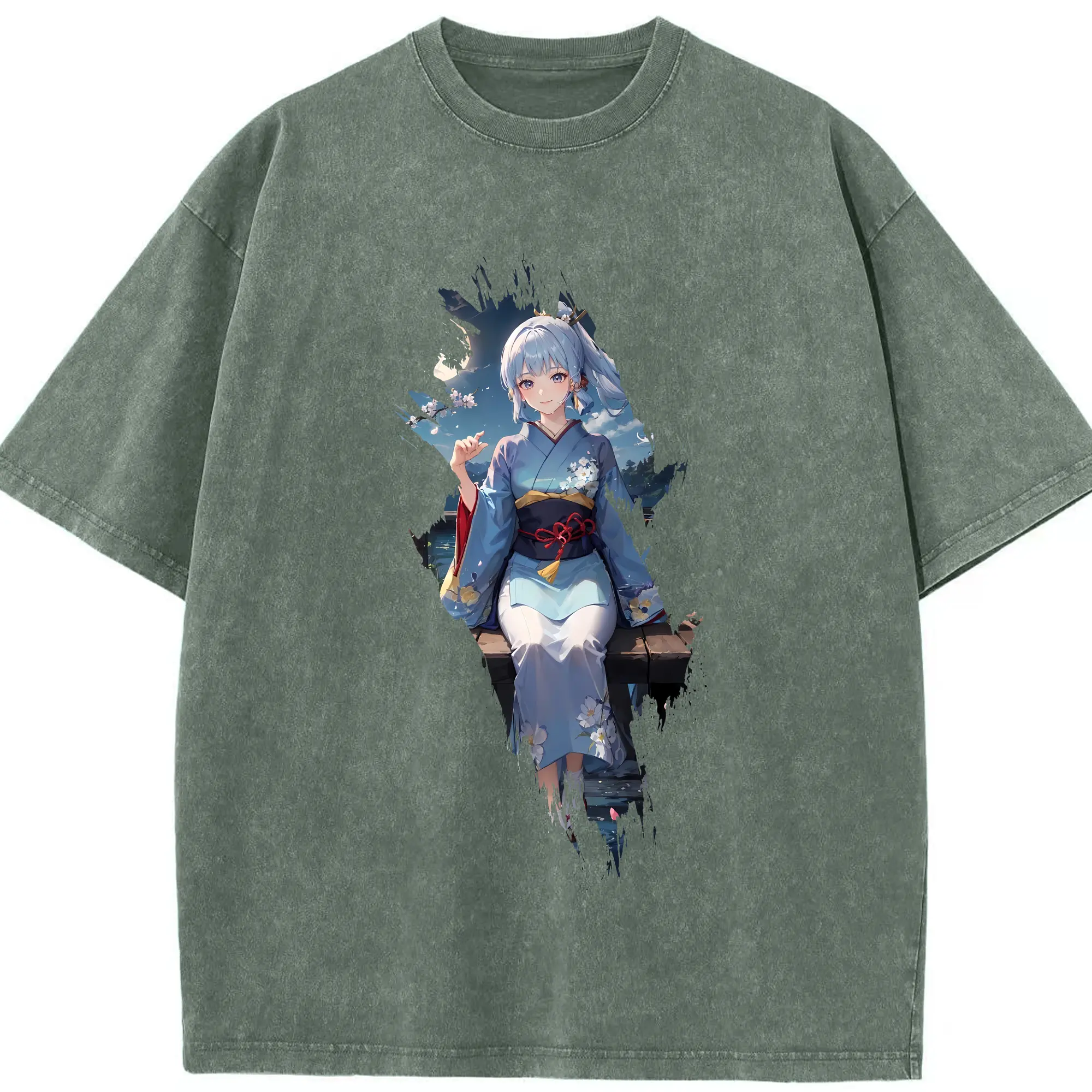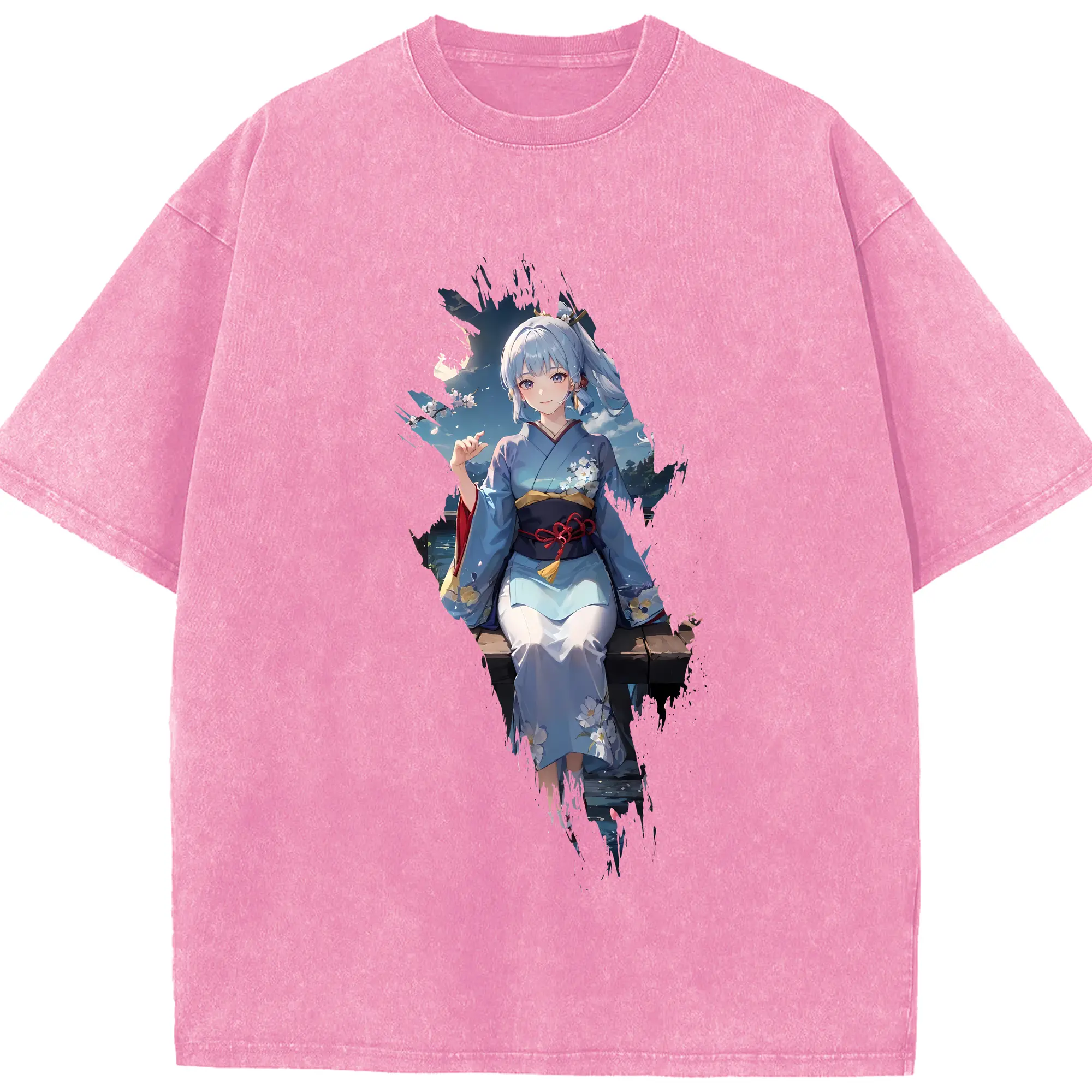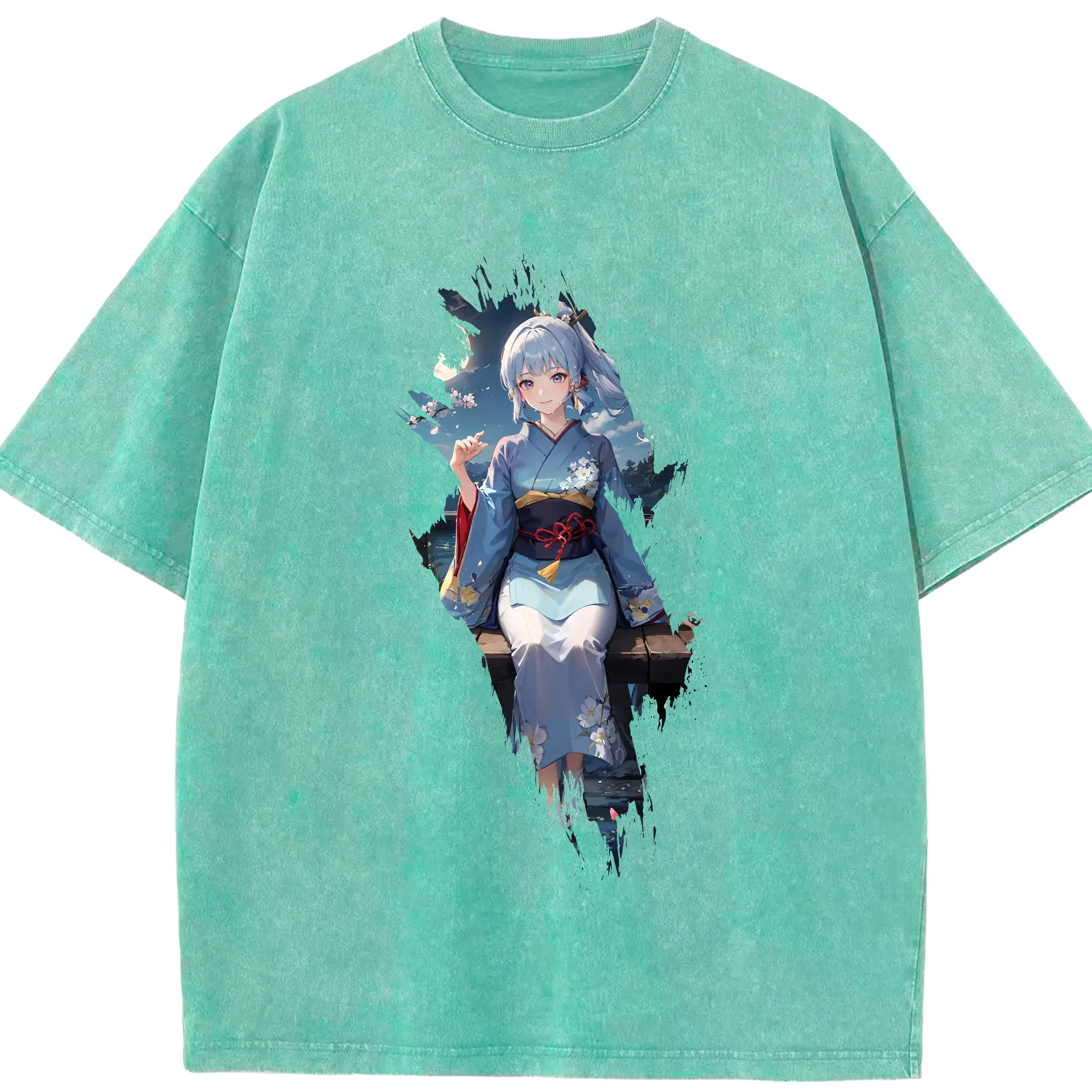 原 神 グッズ 神里綾華 - 綿100% ヴィンテージ風 半袖Tシャツ ・ 背面プリント ・ 柔らか肌触り ・ 通気性 快適 ・ スポーツ カジュアル 外出用