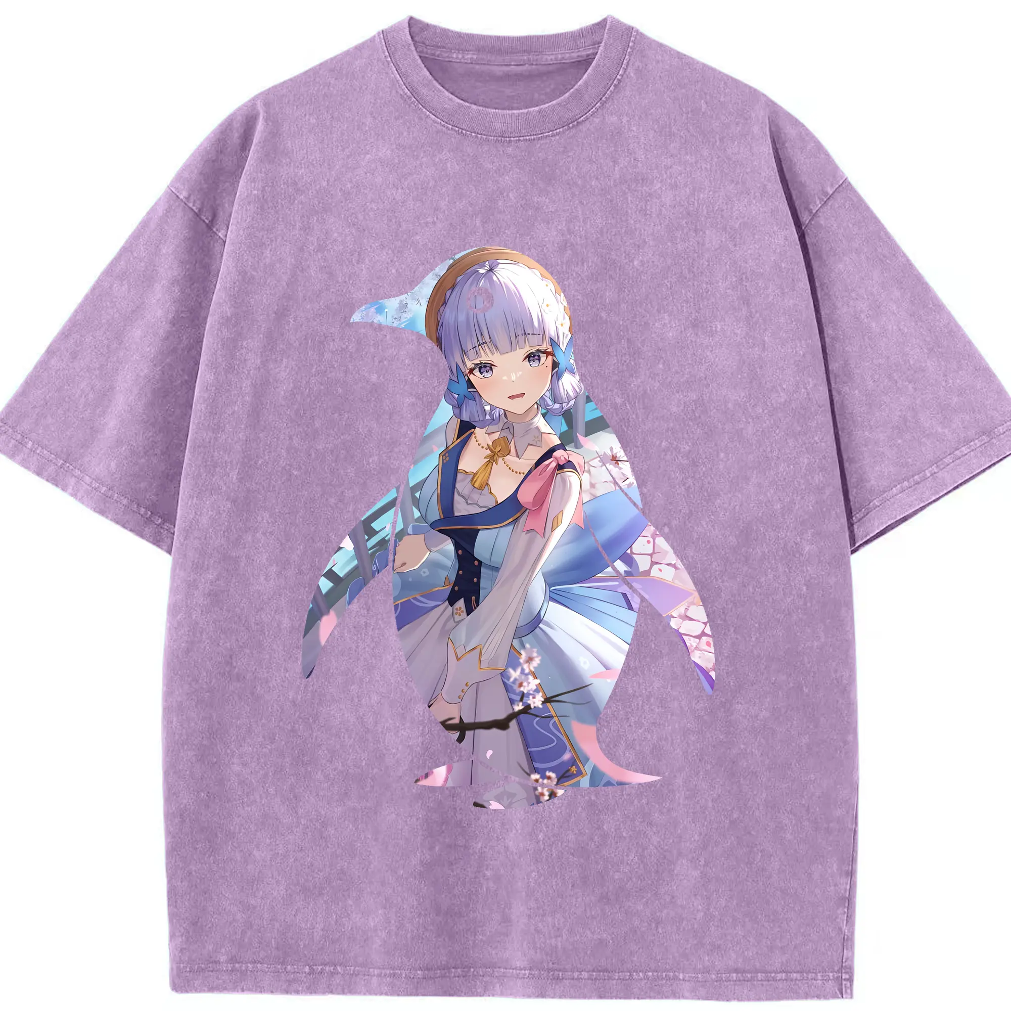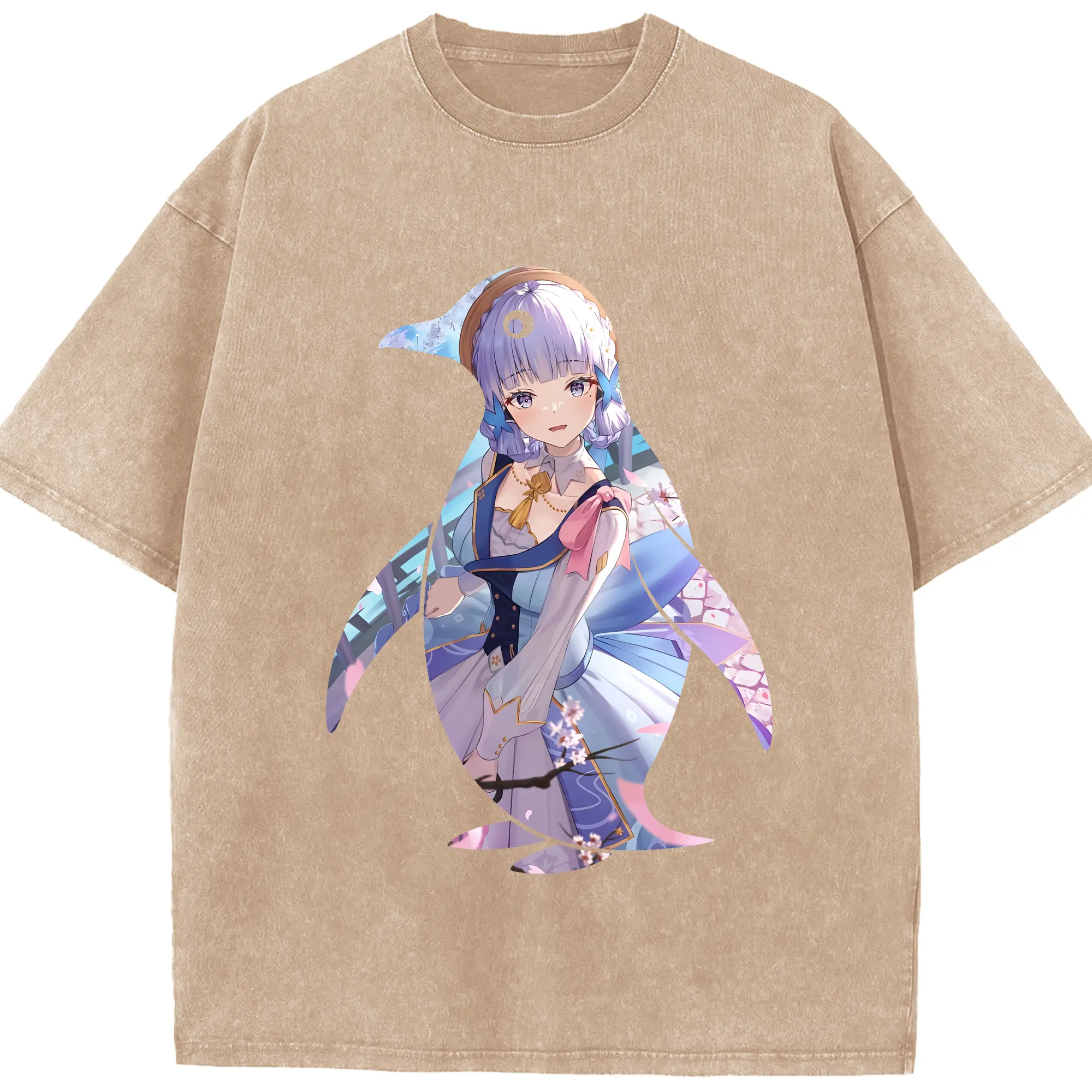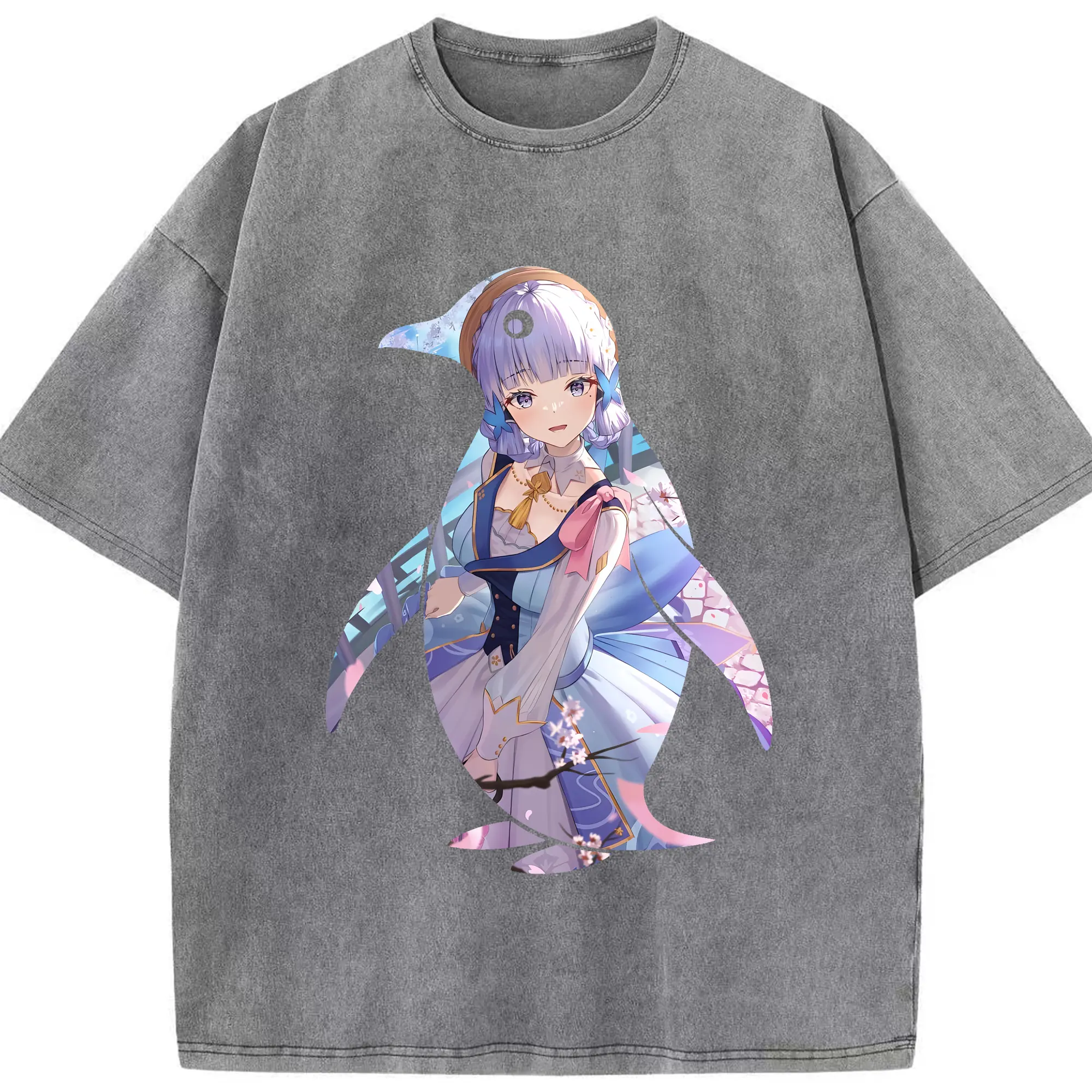 原 神 グッズ 神里綾華 - 綿100% ヴィンテージ風 半袖Tシャツ ・ 背面プリント ・ 柔らか肌触り ・ 通気性 快適 ・ スポーツ カジュアル 外出用