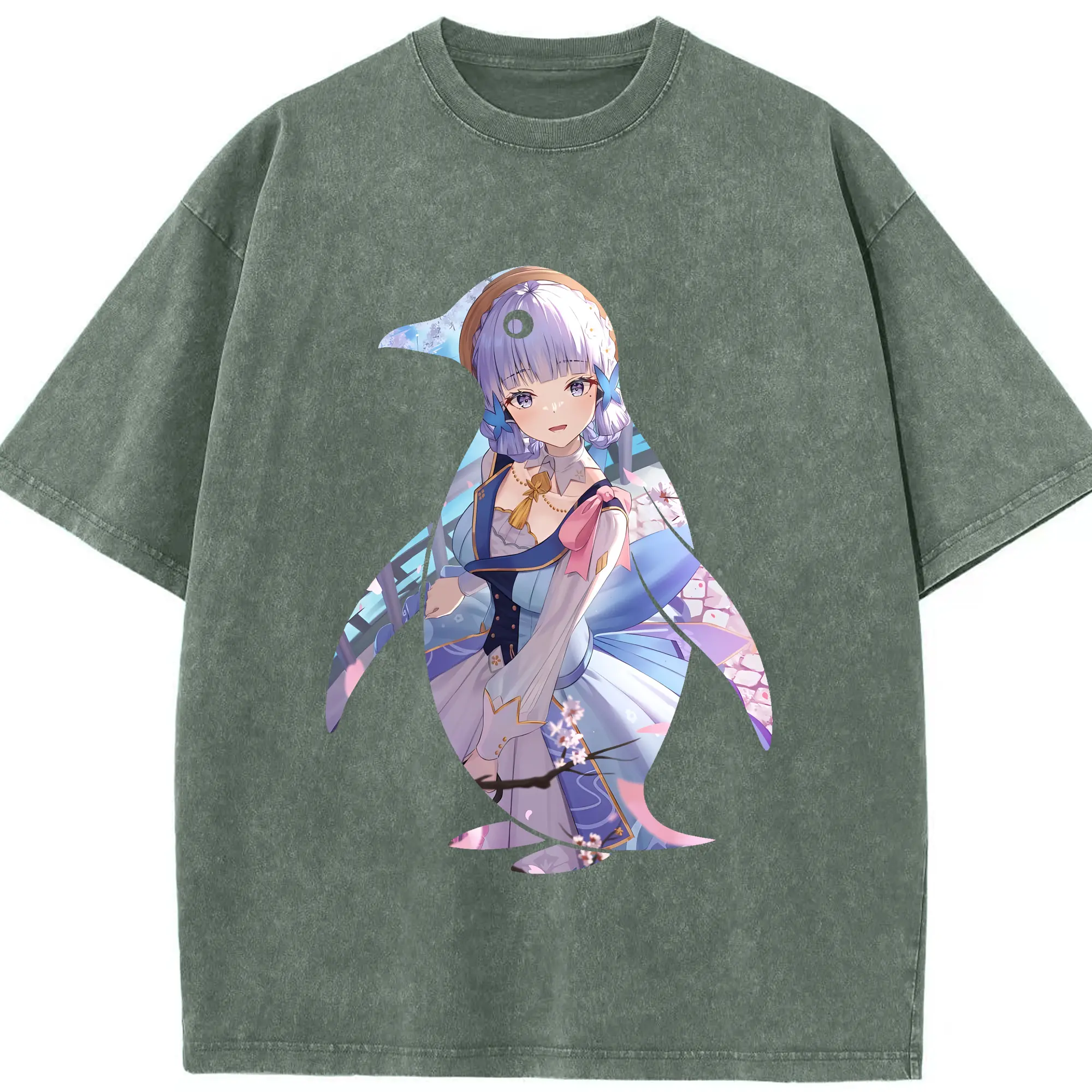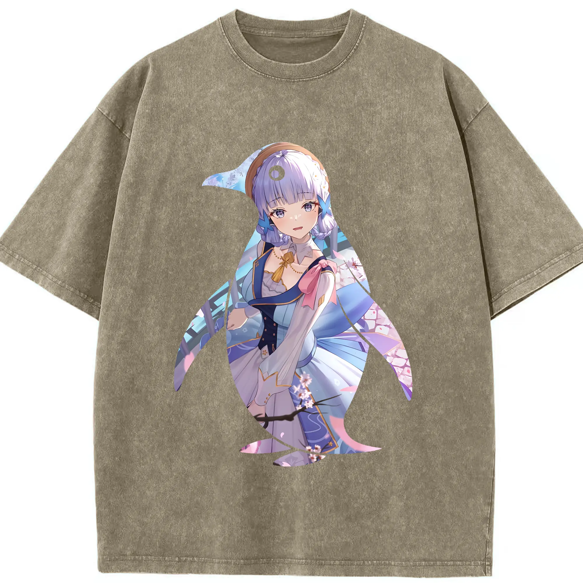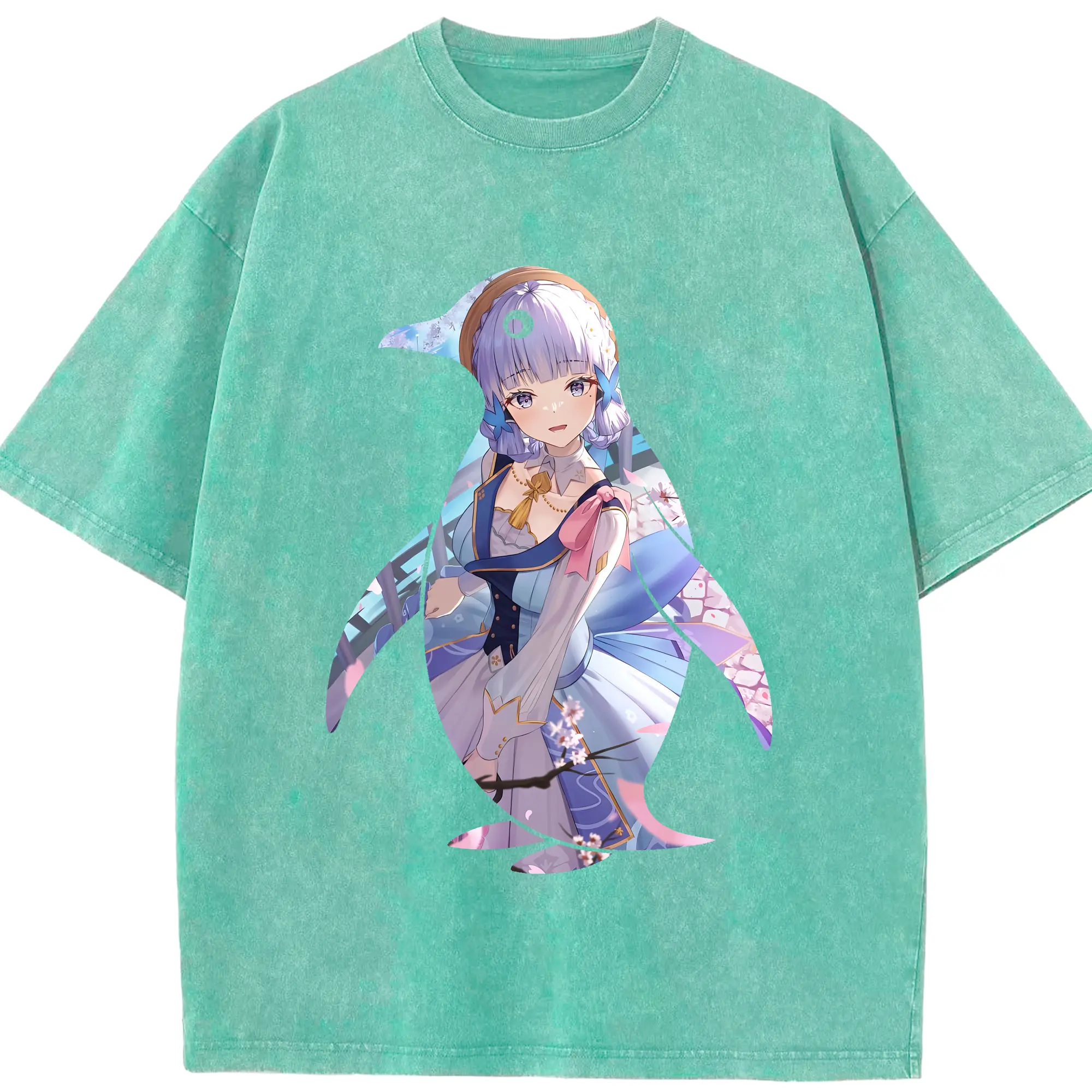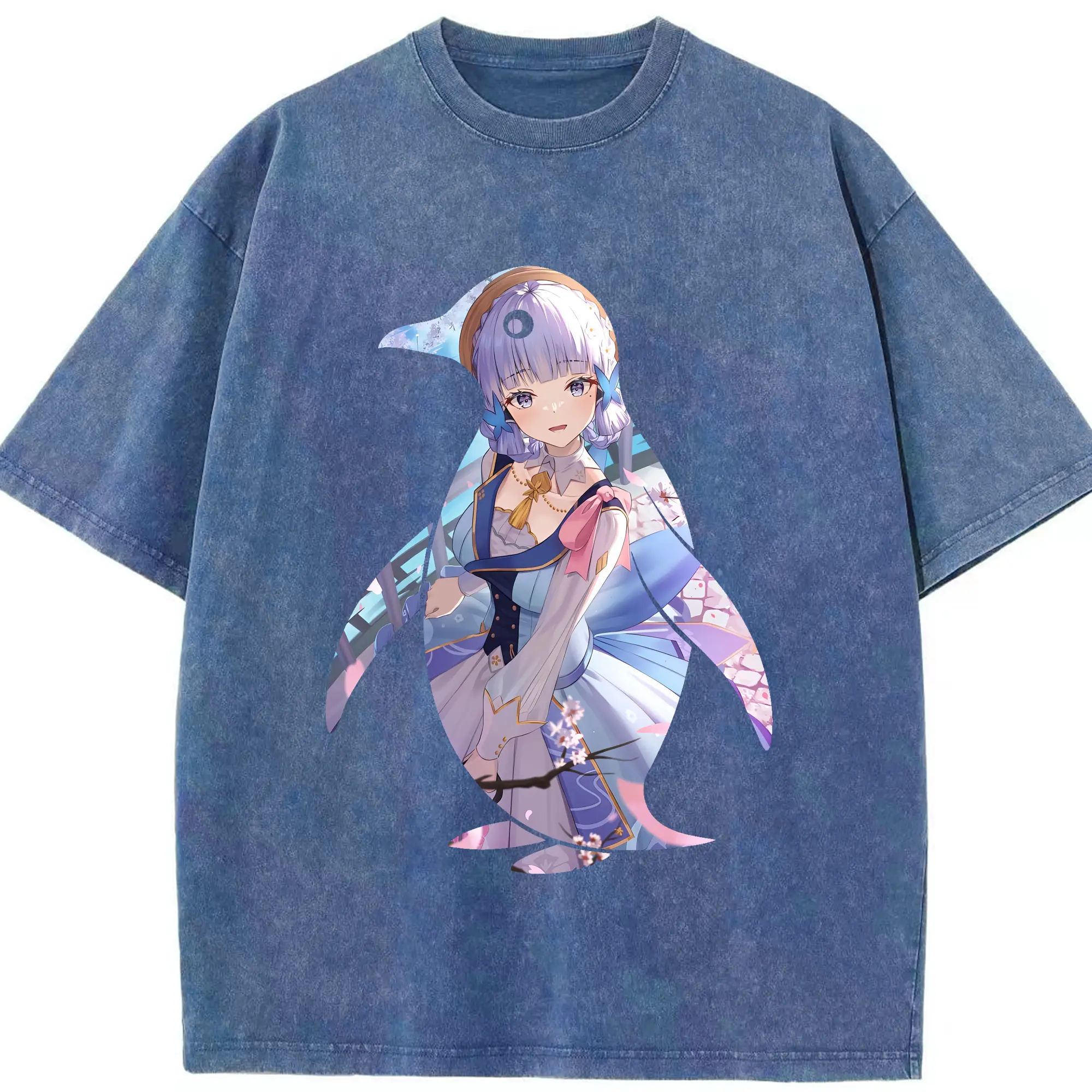 原 神 グッズ 神里綾華 - 綿100% ヴィンテージ風 半袖Tシャツ ・ 背面プリント ・ 柔らか肌触り ・ 通気性 快適 ・ スポーツ カジュアル 外出用
