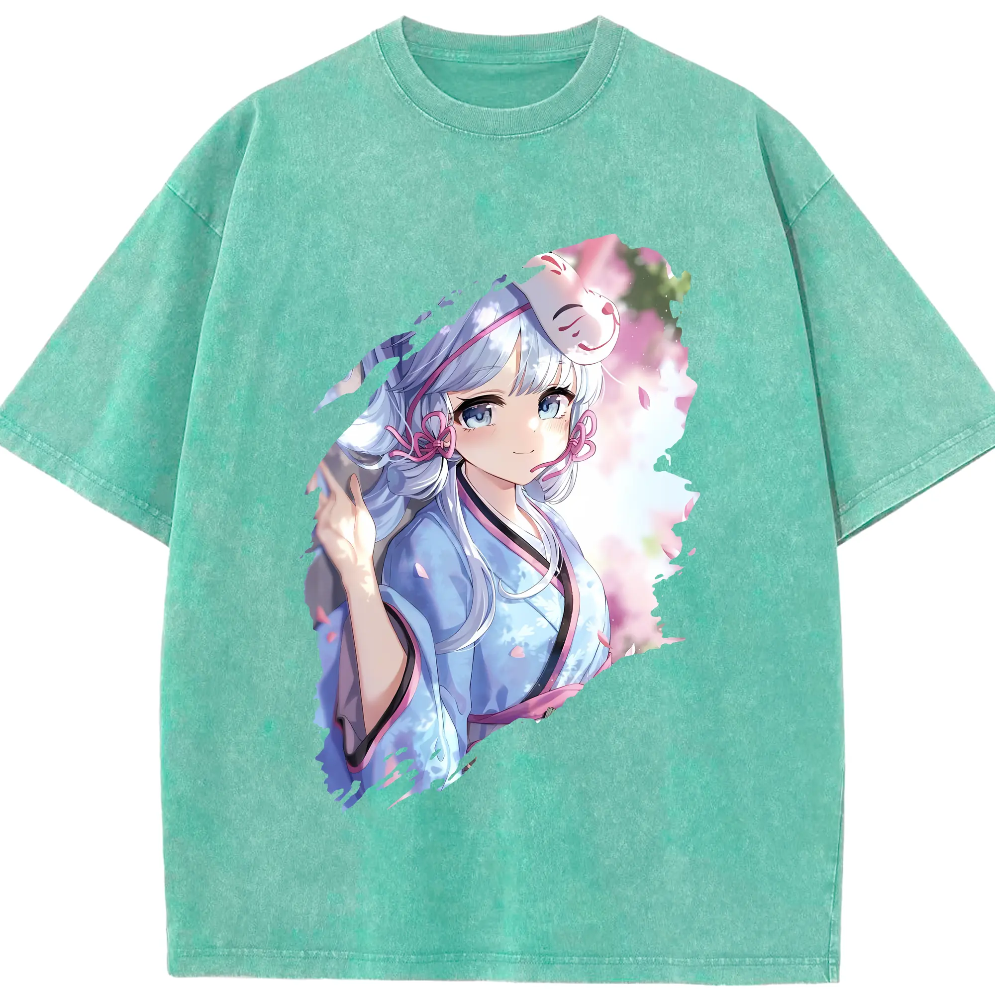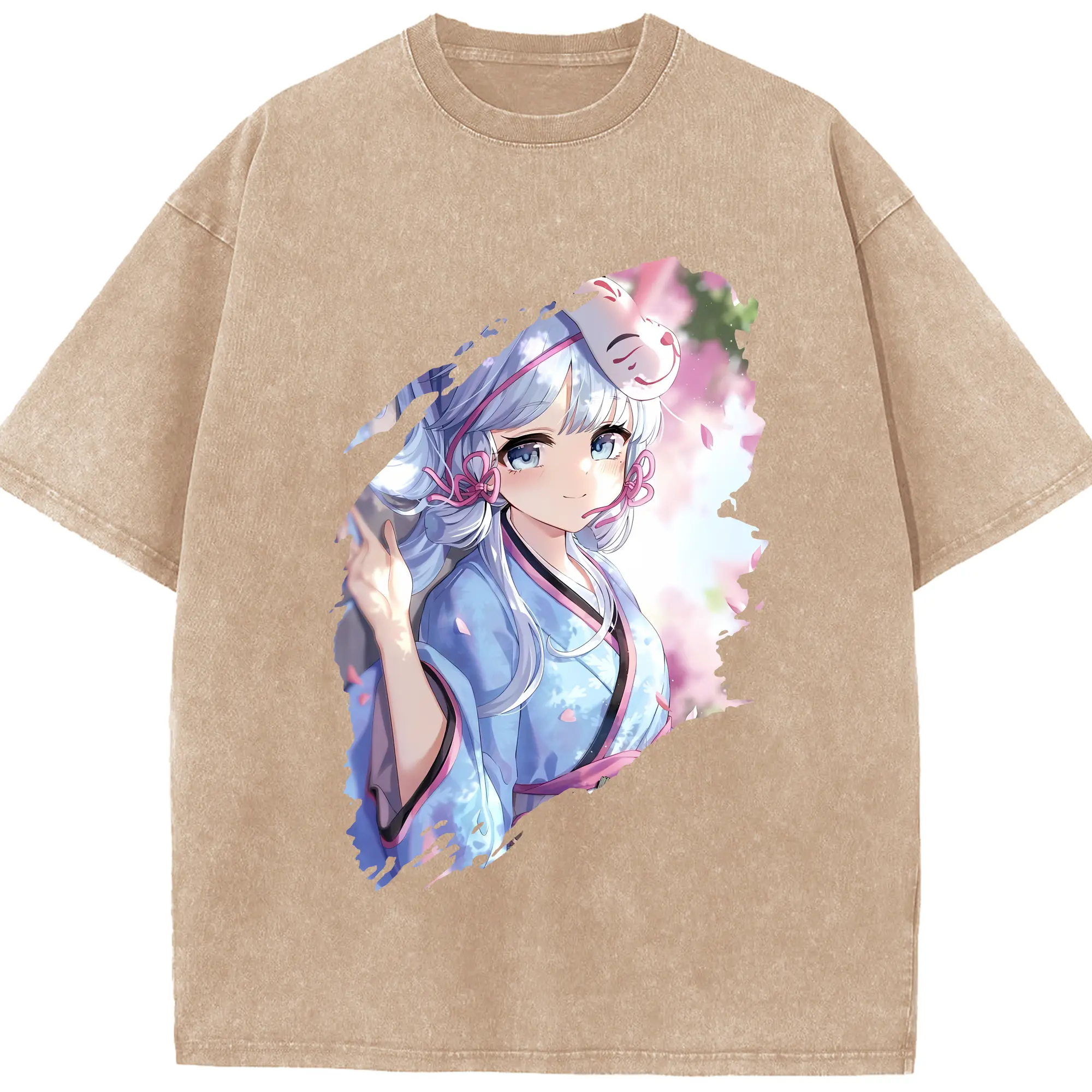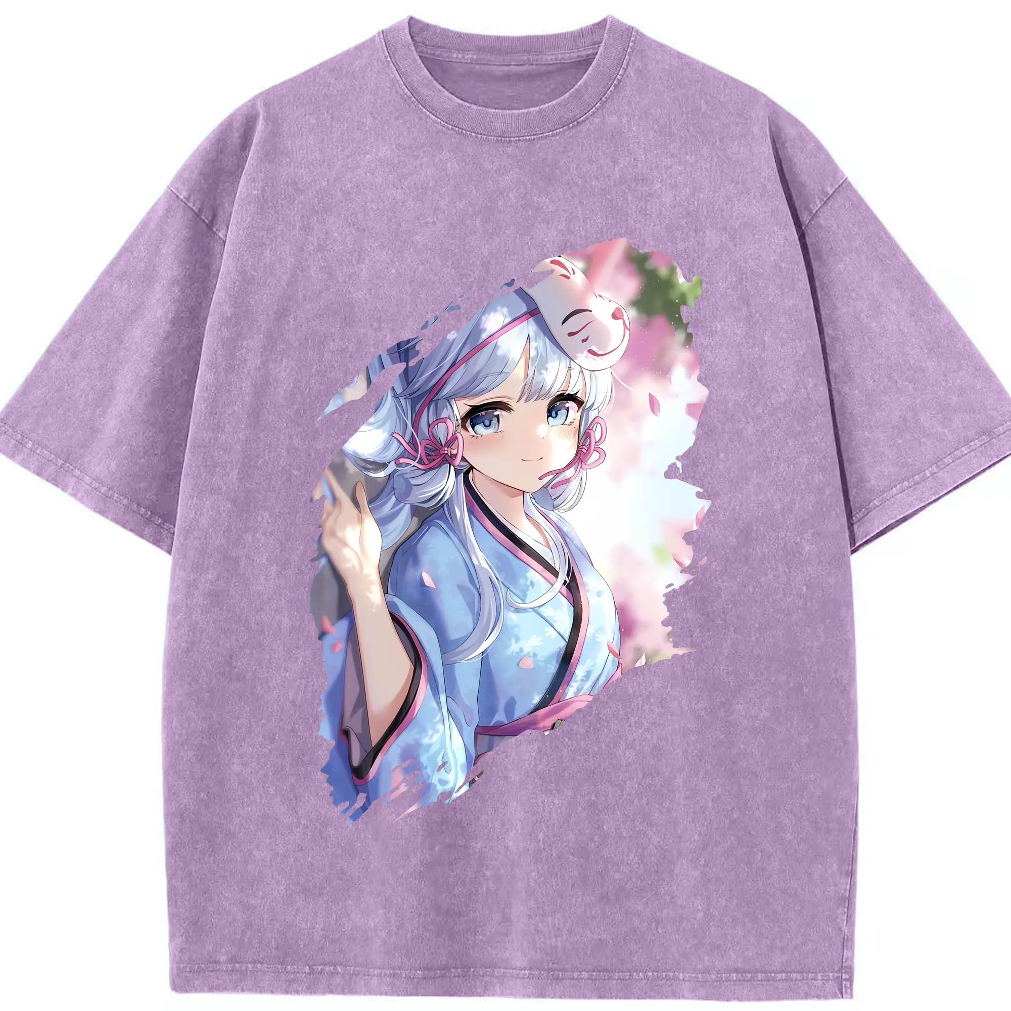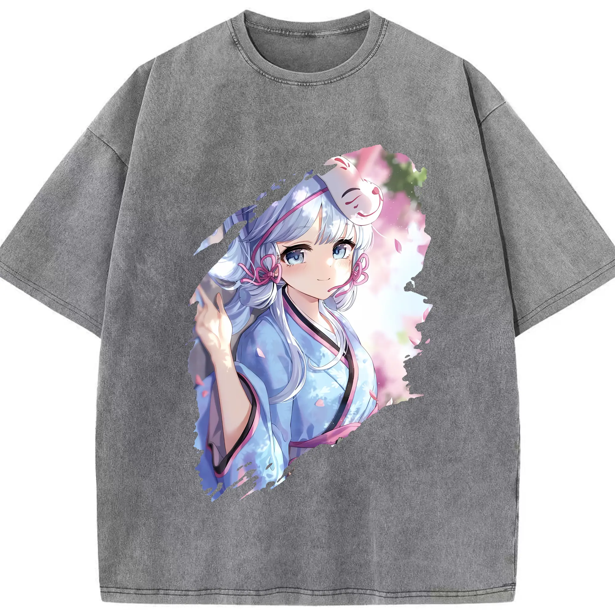 原 神 グッズ 神里綾華 - 綿100% ヴィンテージ風 半袖Tシャツ ・ 背面プリント ・ 柔らか肌触り ・ 通気性 快適 ・ スポーツ カジュアル 外出用