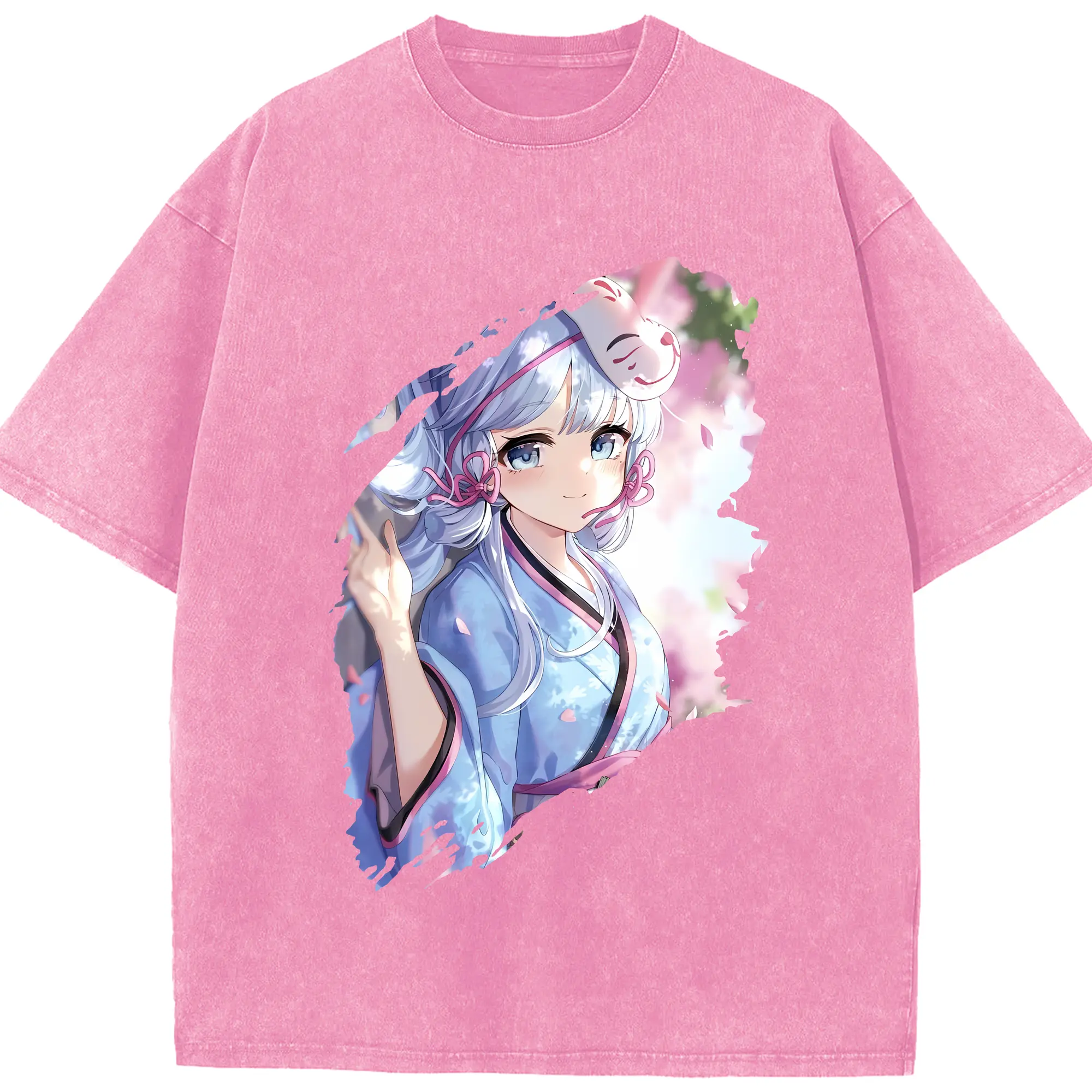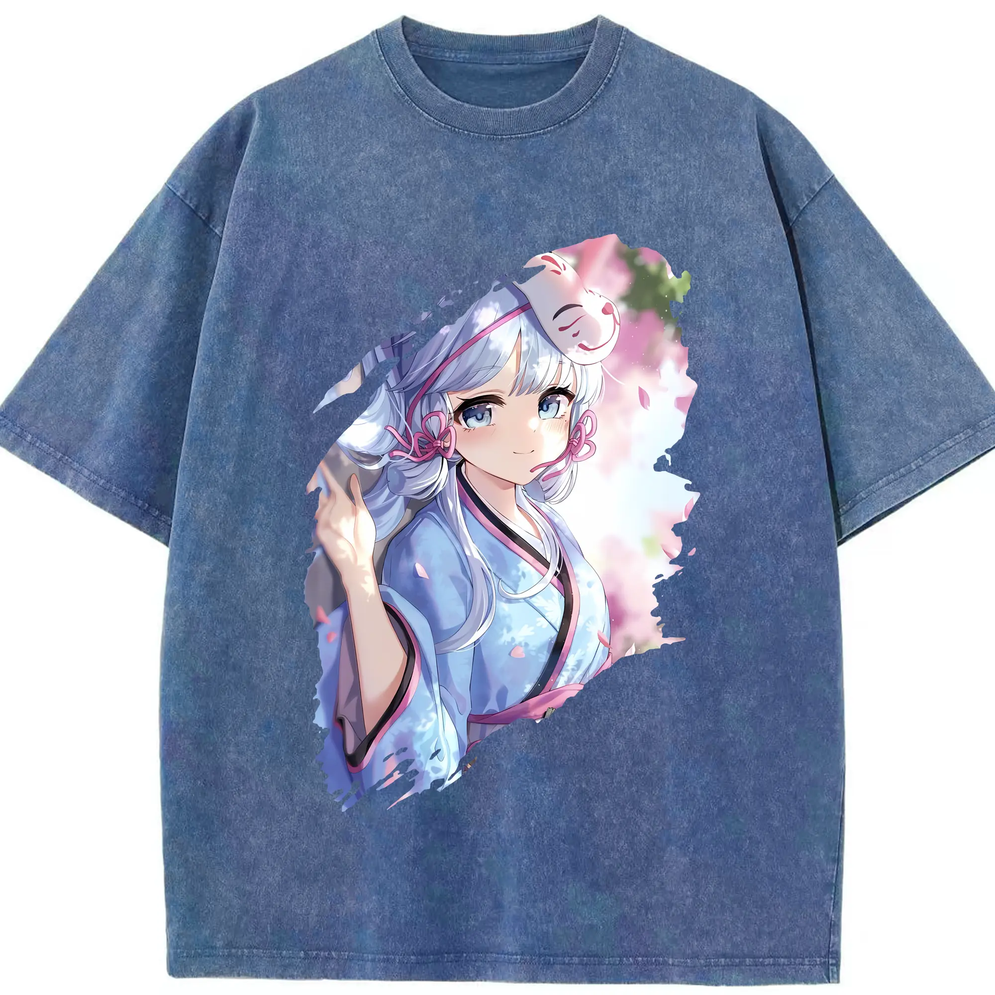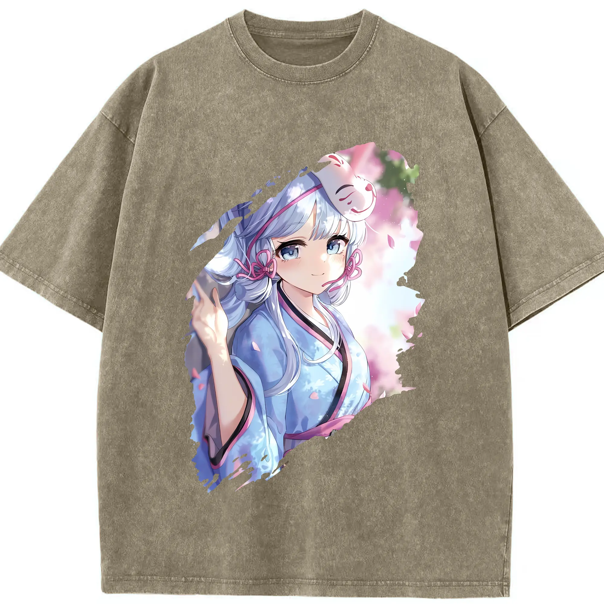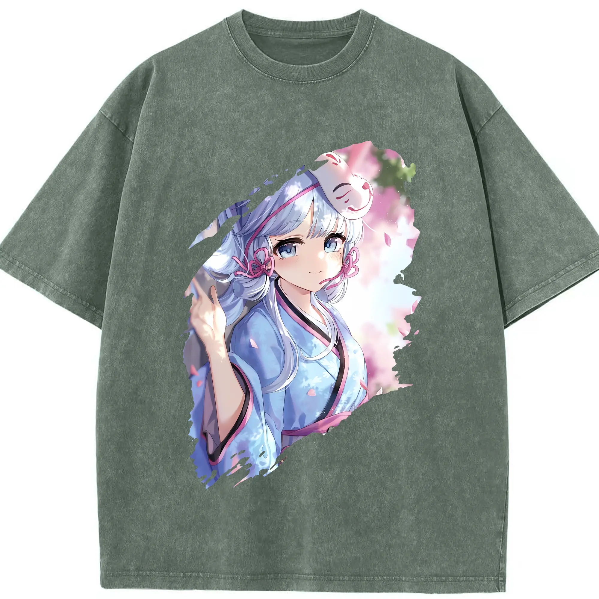 原 神 グッズ 神里綾華 - 綿100% ヴィンテージ風 半袖Tシャツ ・ 背面プリント ・ 柔らか肌触り ・ 通気性 快適 ・ スポーツ カジュアル 外出用