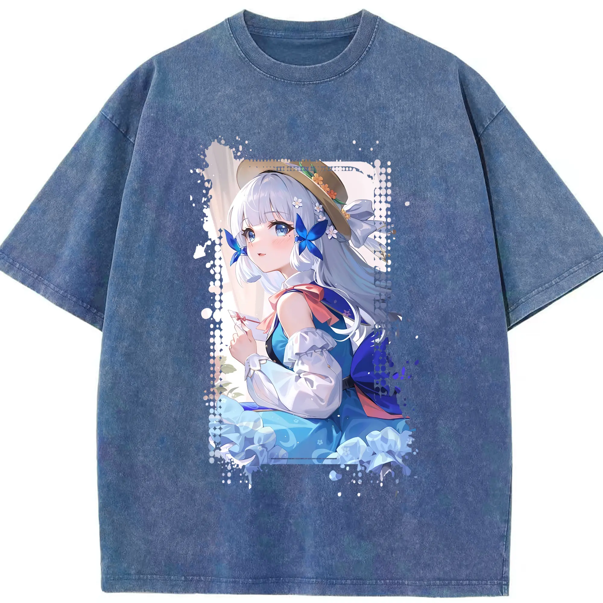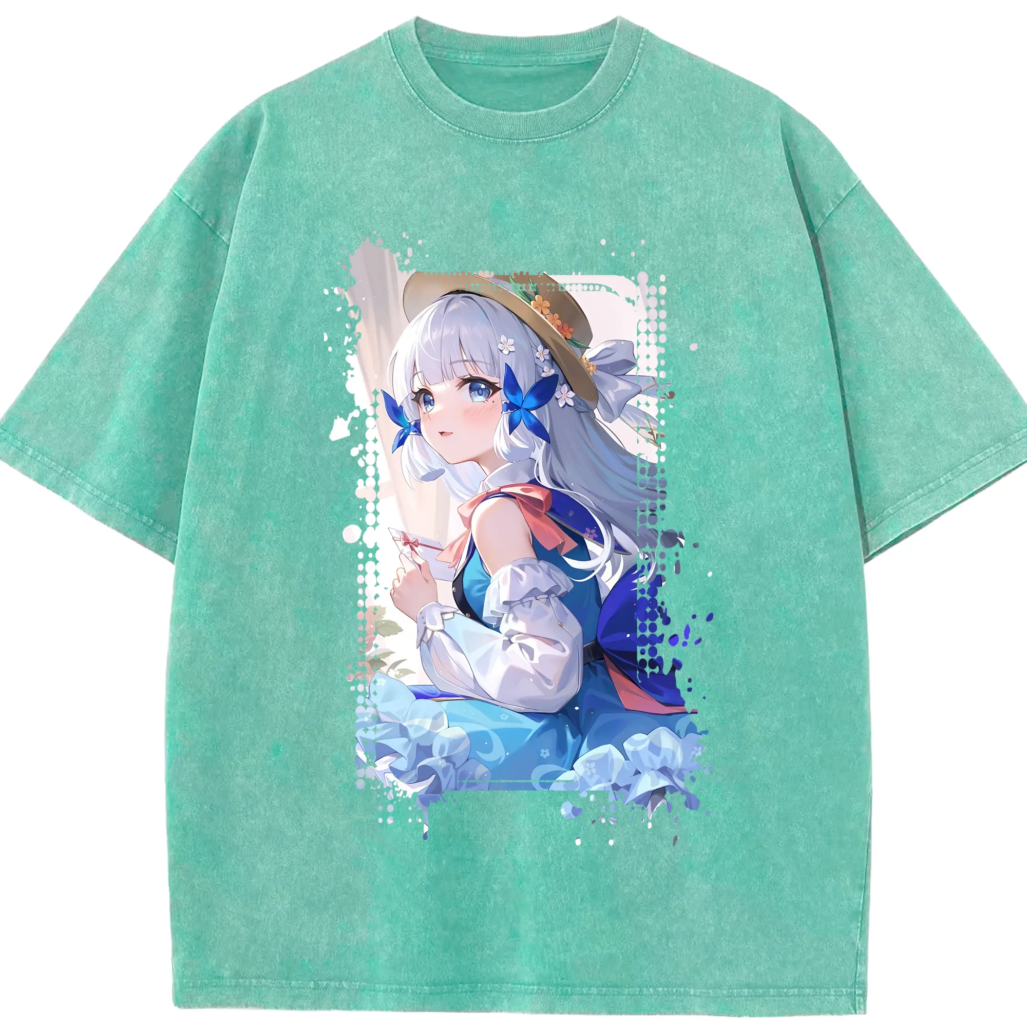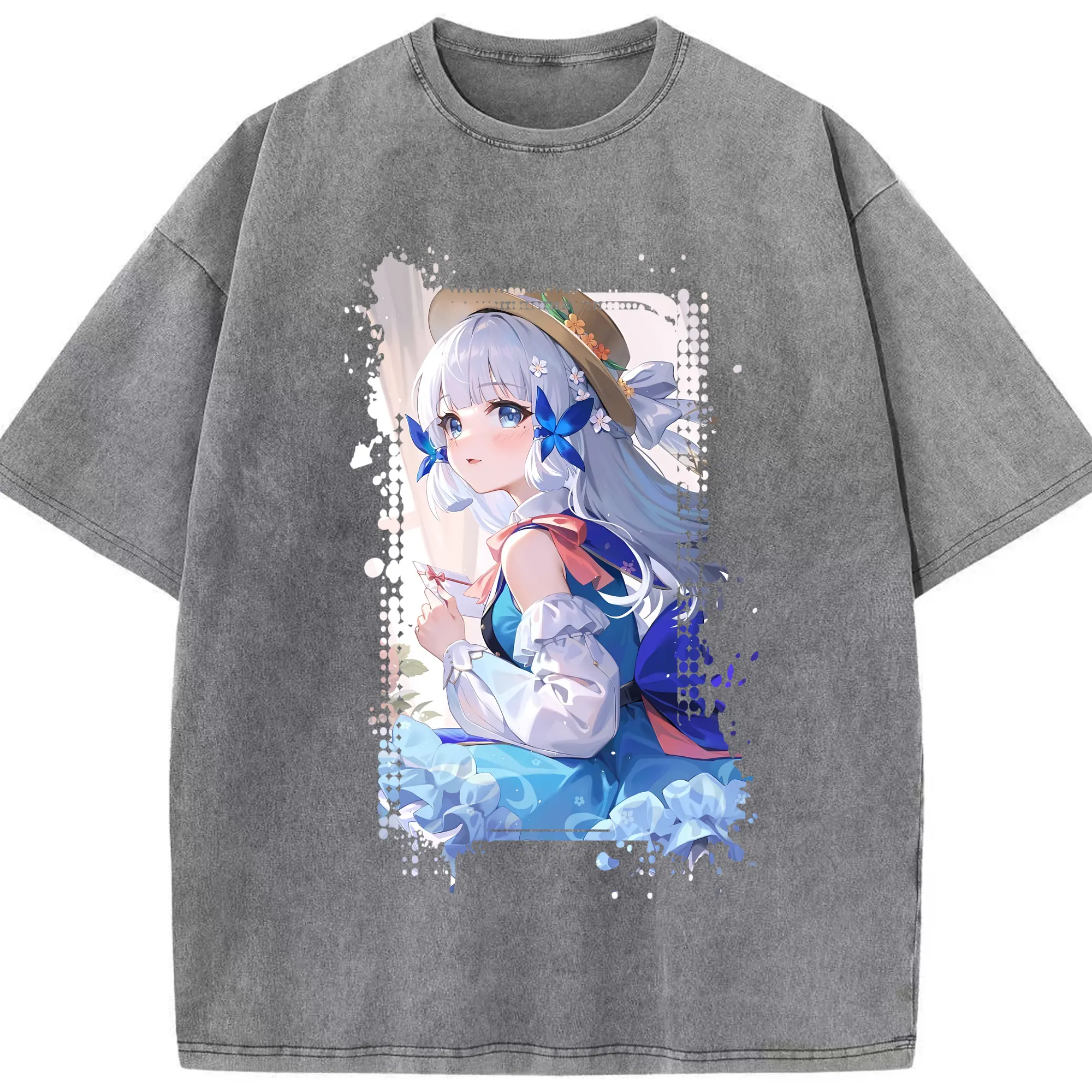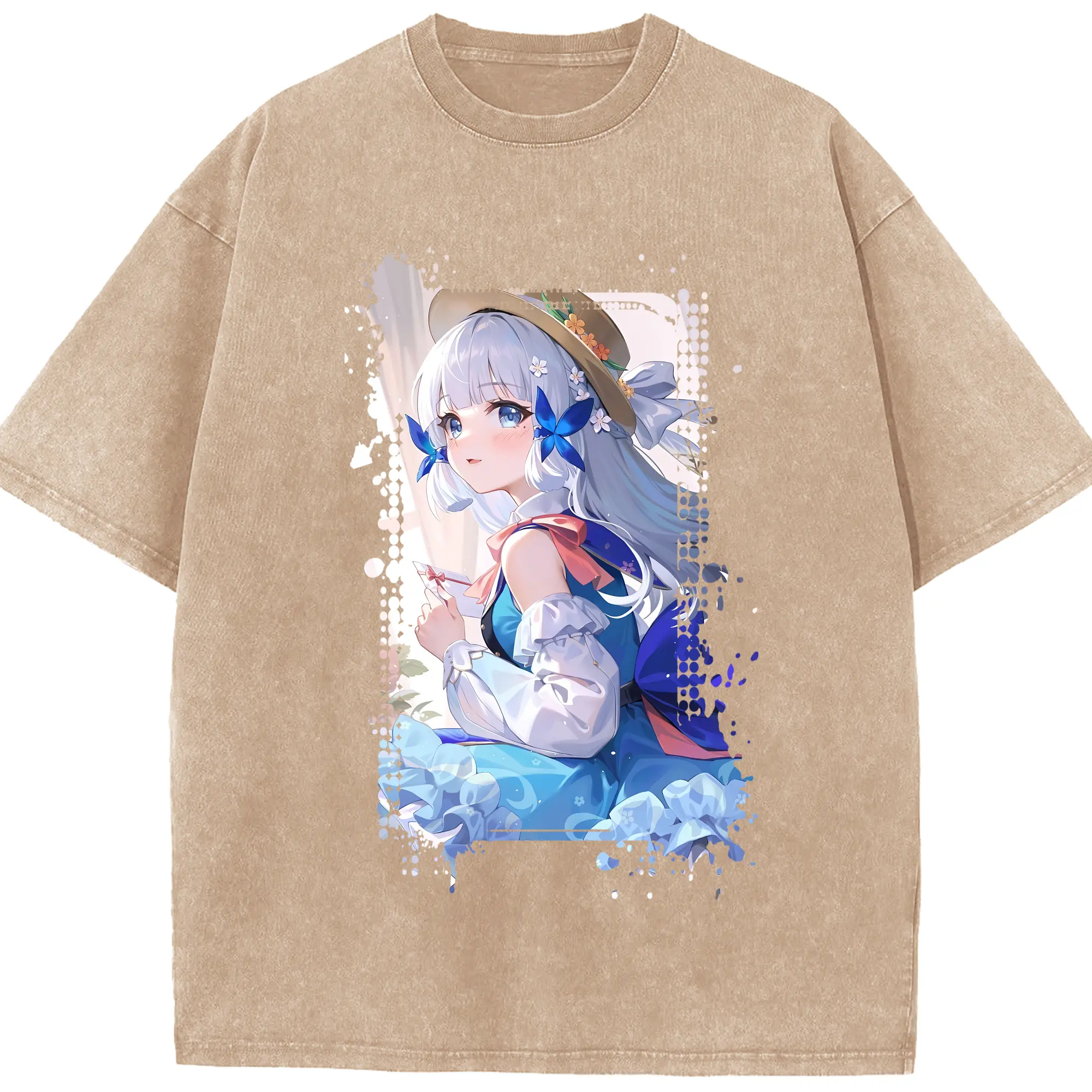 原 神 グッズ 神里綾華 - 綿100% ヴィンテージ風 半袖Tシャツ ・ 背面プリント ・ 柔らか肌触り ・ 通気性 快適 ・ スポーツ カジュアル 外出用
