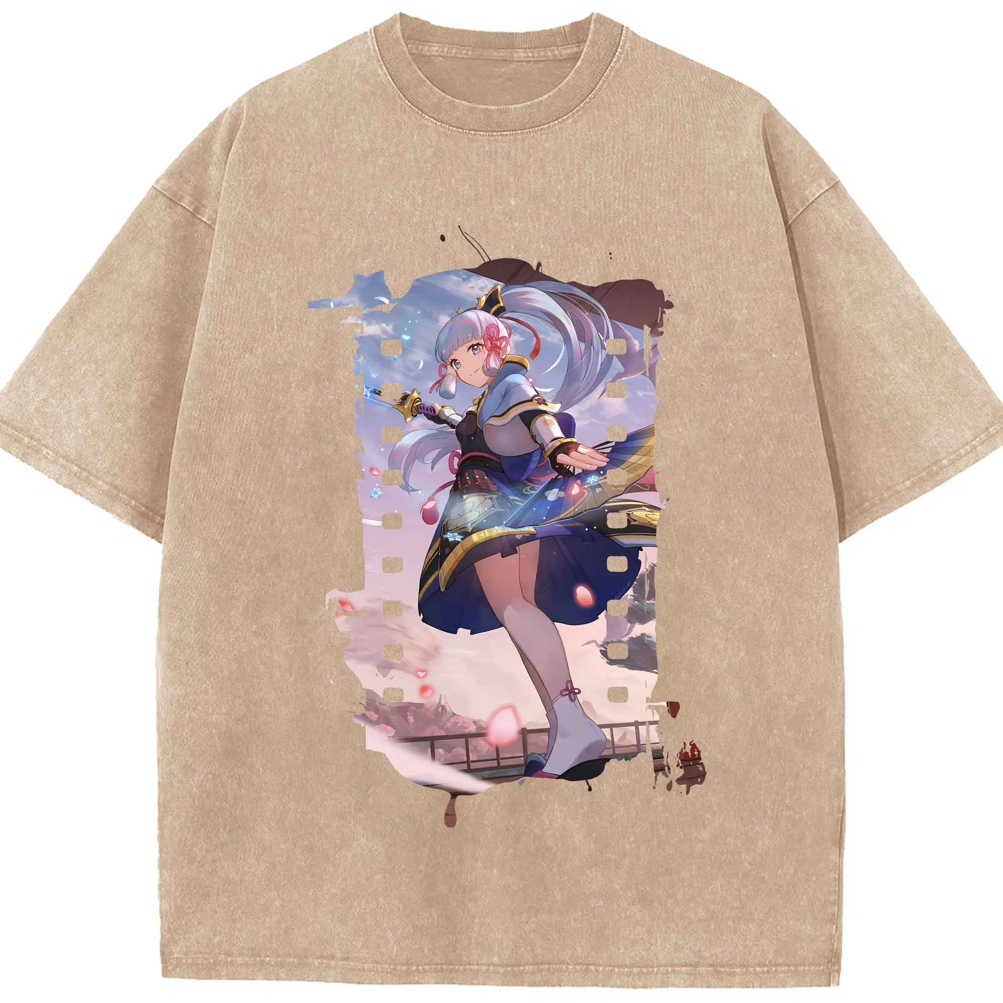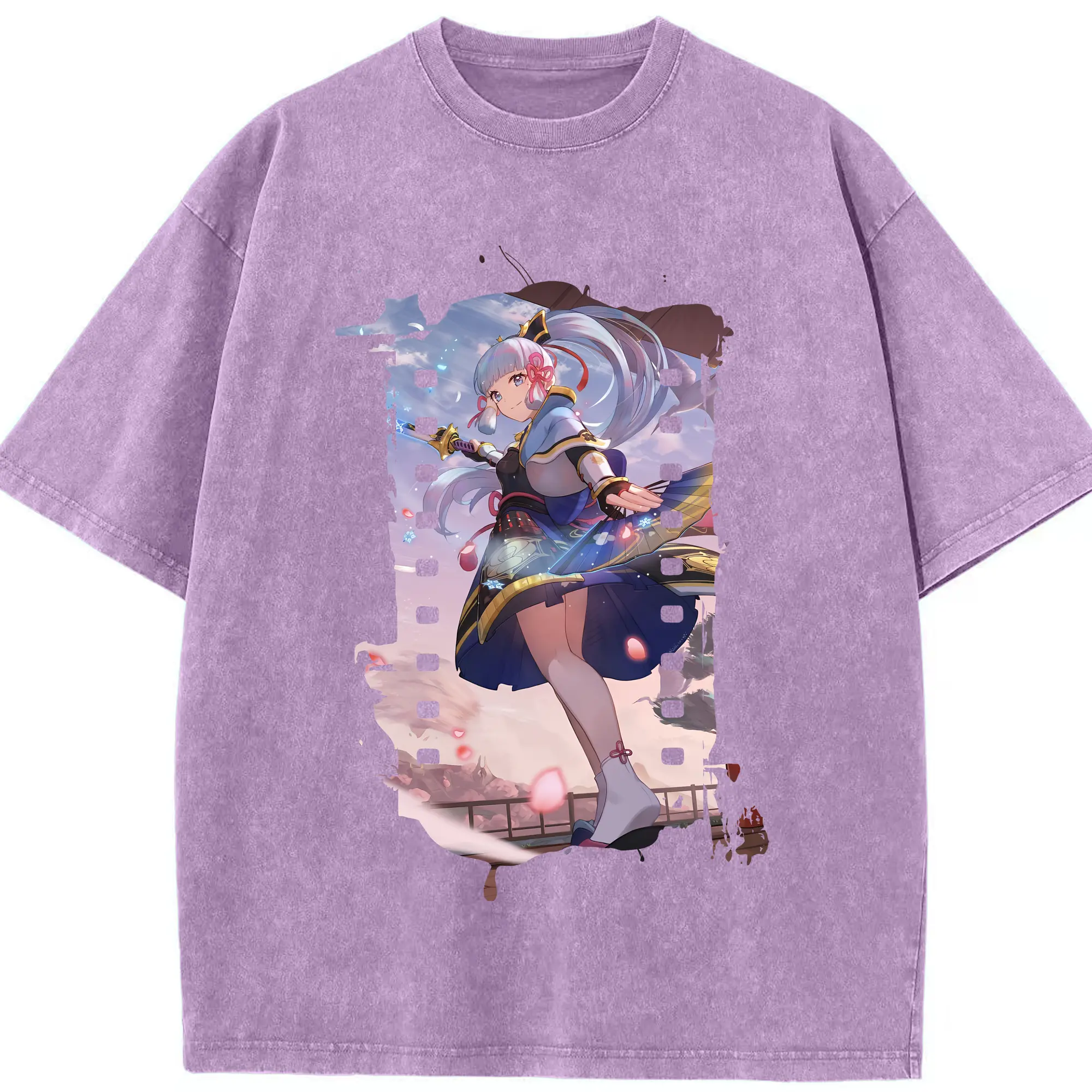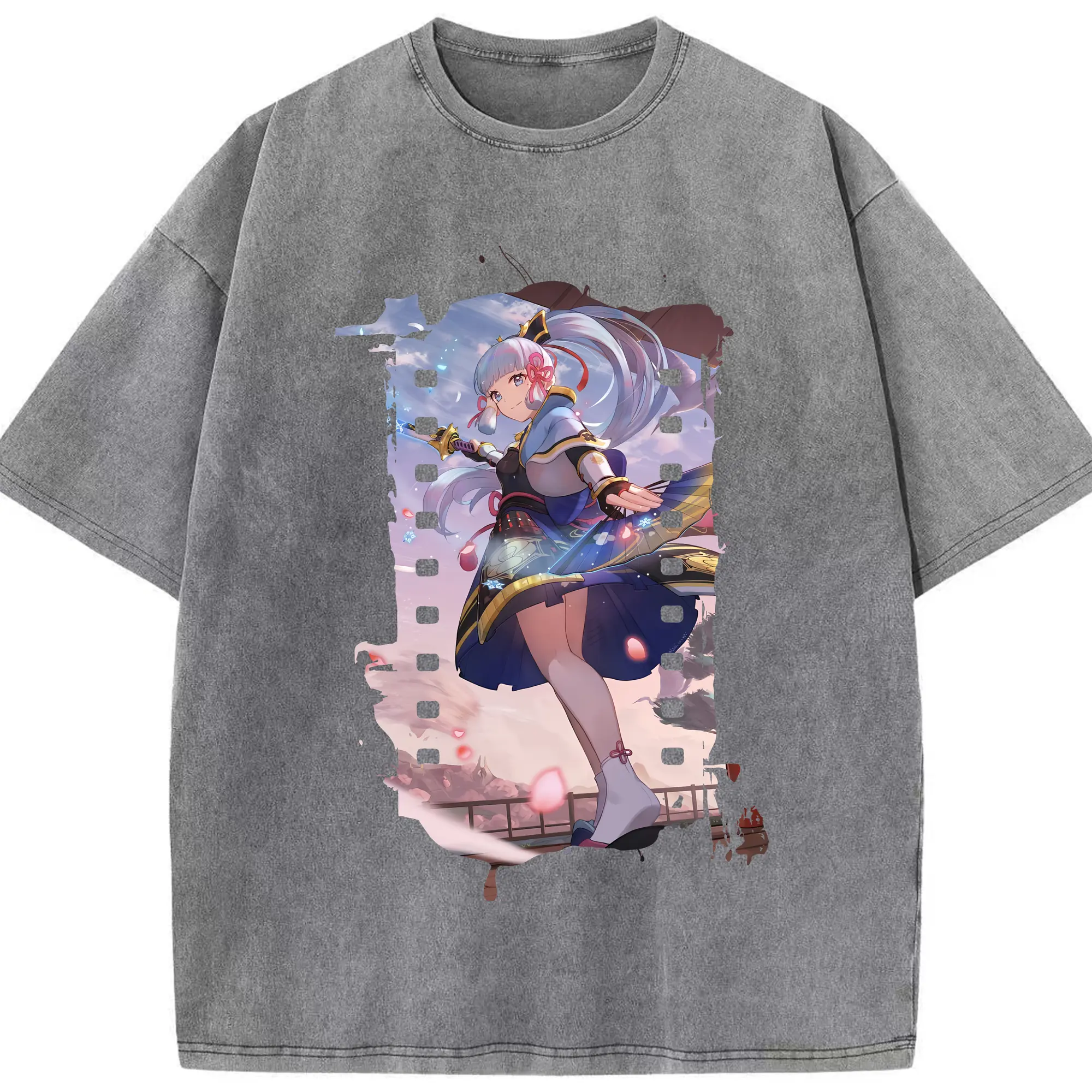 原 神 グッズ 神里綾華 - 綿100% ヴィンテージ風 半袖Tシャツ ・ 背面プリント ・ 柔らか肌触り ・ 通気性 快適 ・ スポーツ カジュアル 外出用