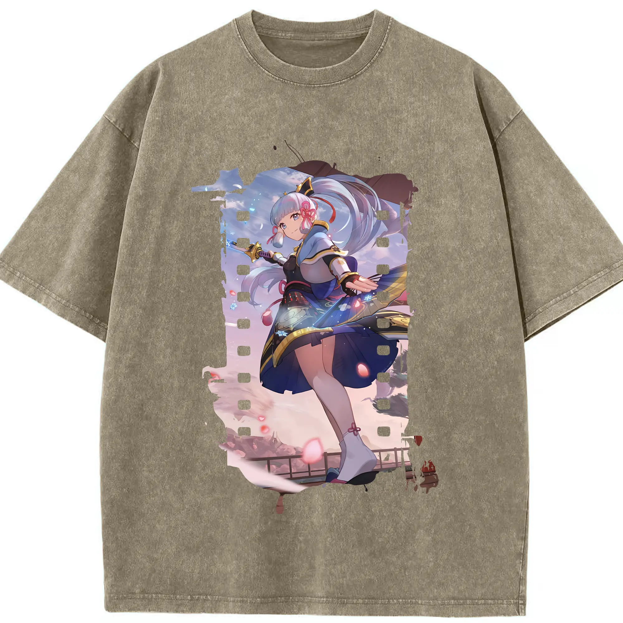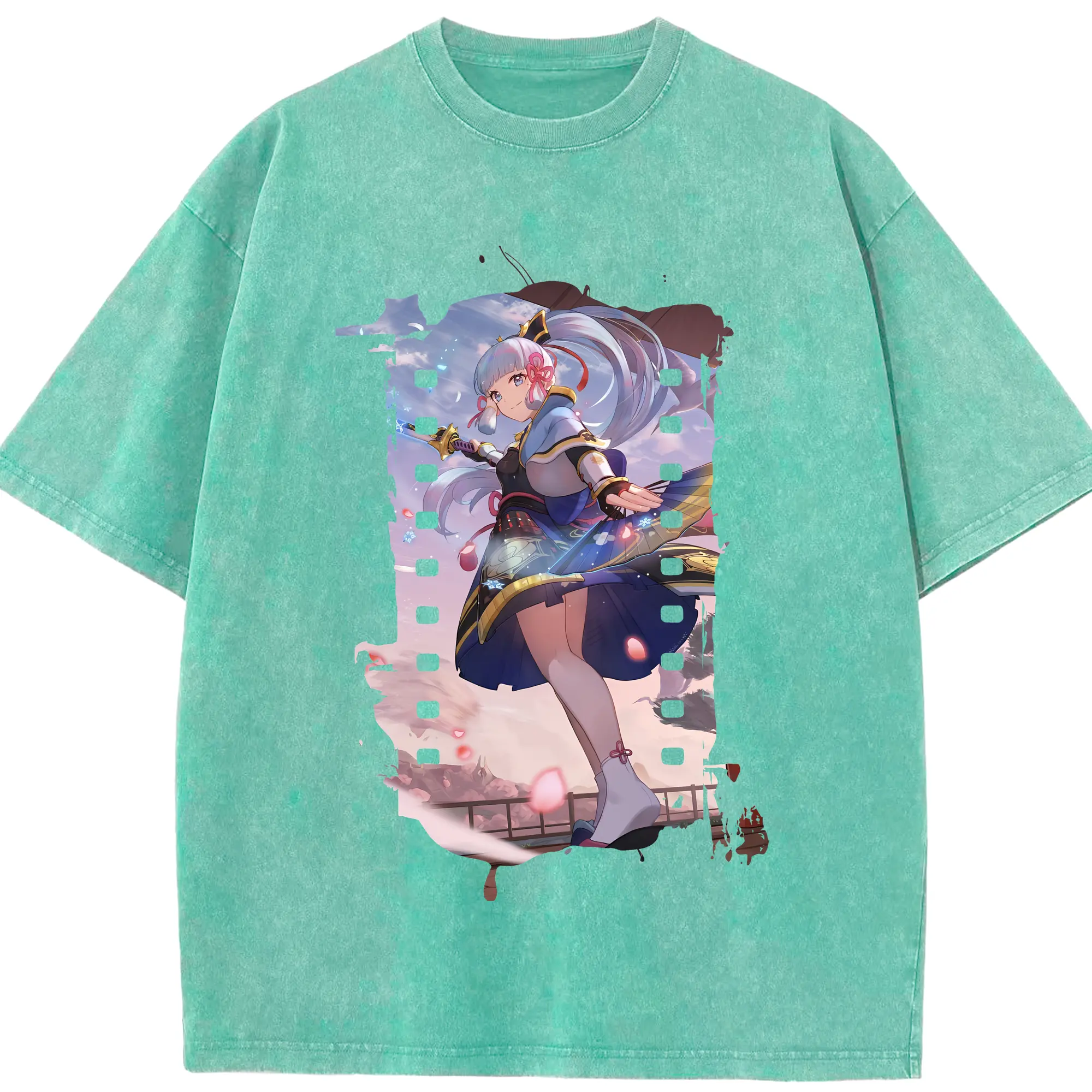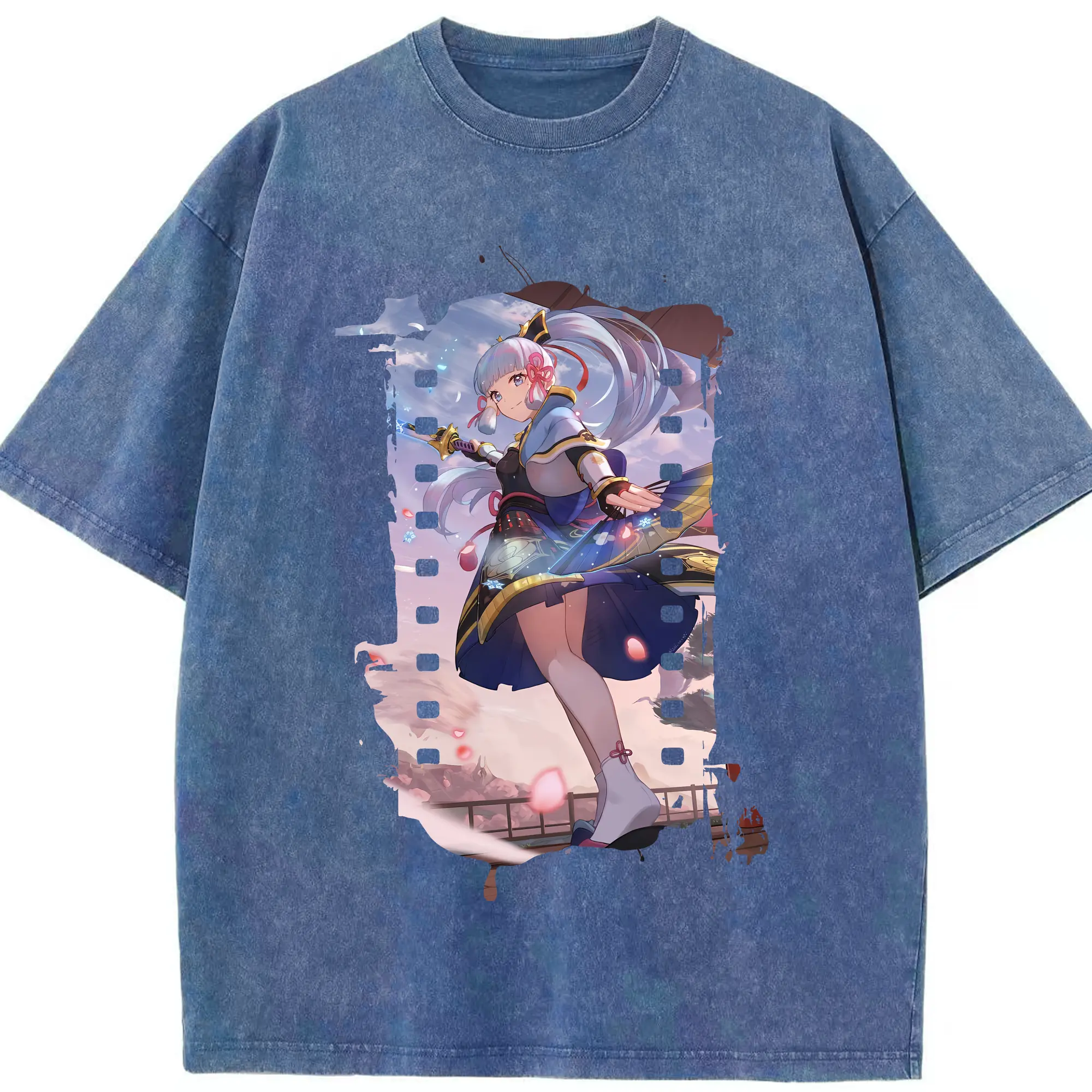原 神 グッズ 神里綾華 - 綿100% ヴィンテージ風 半袖Tシャツ ・ 背面プリント ・ 柔らか肌触り ・ 通気性 快適 ・ スポーツ カジュアル 外出用