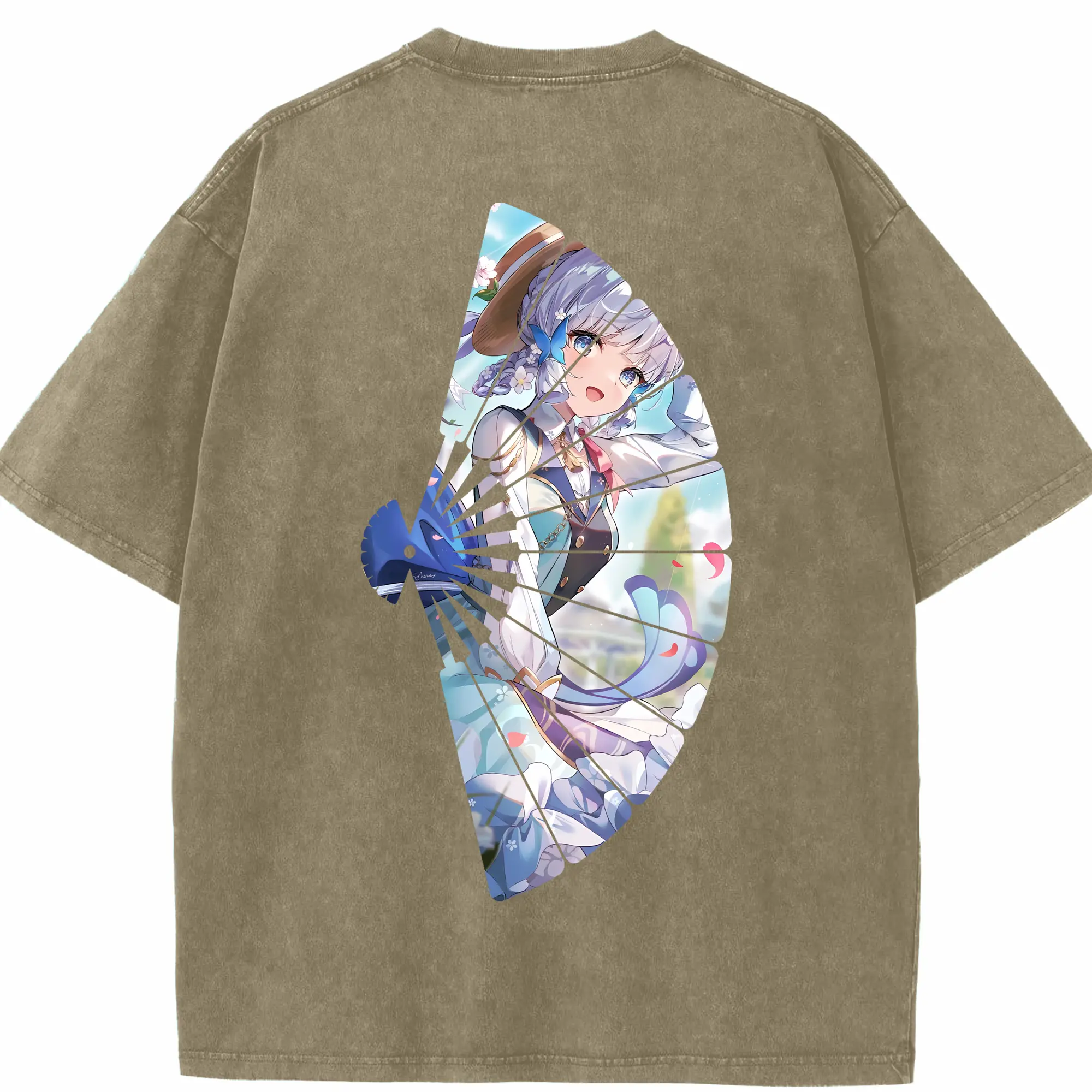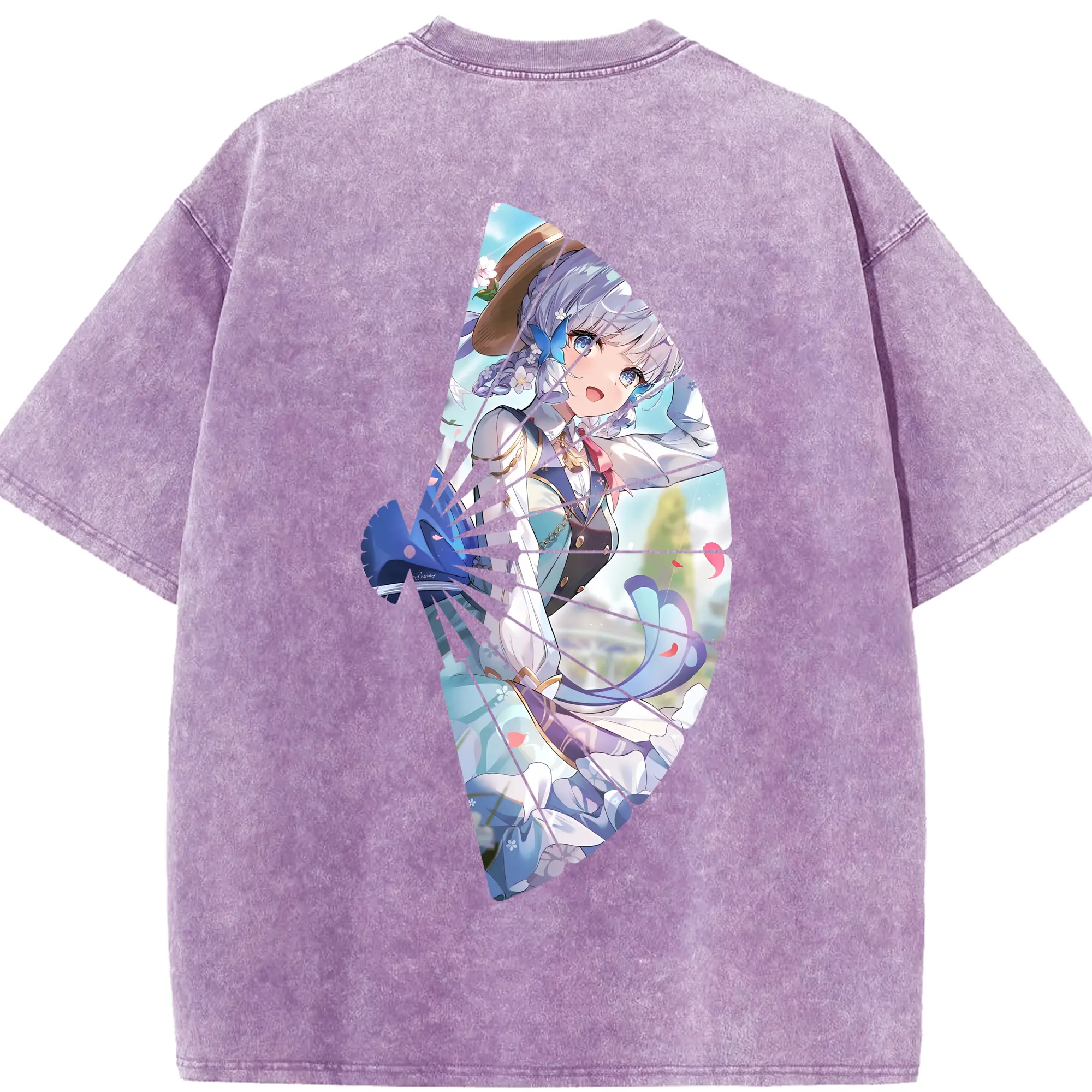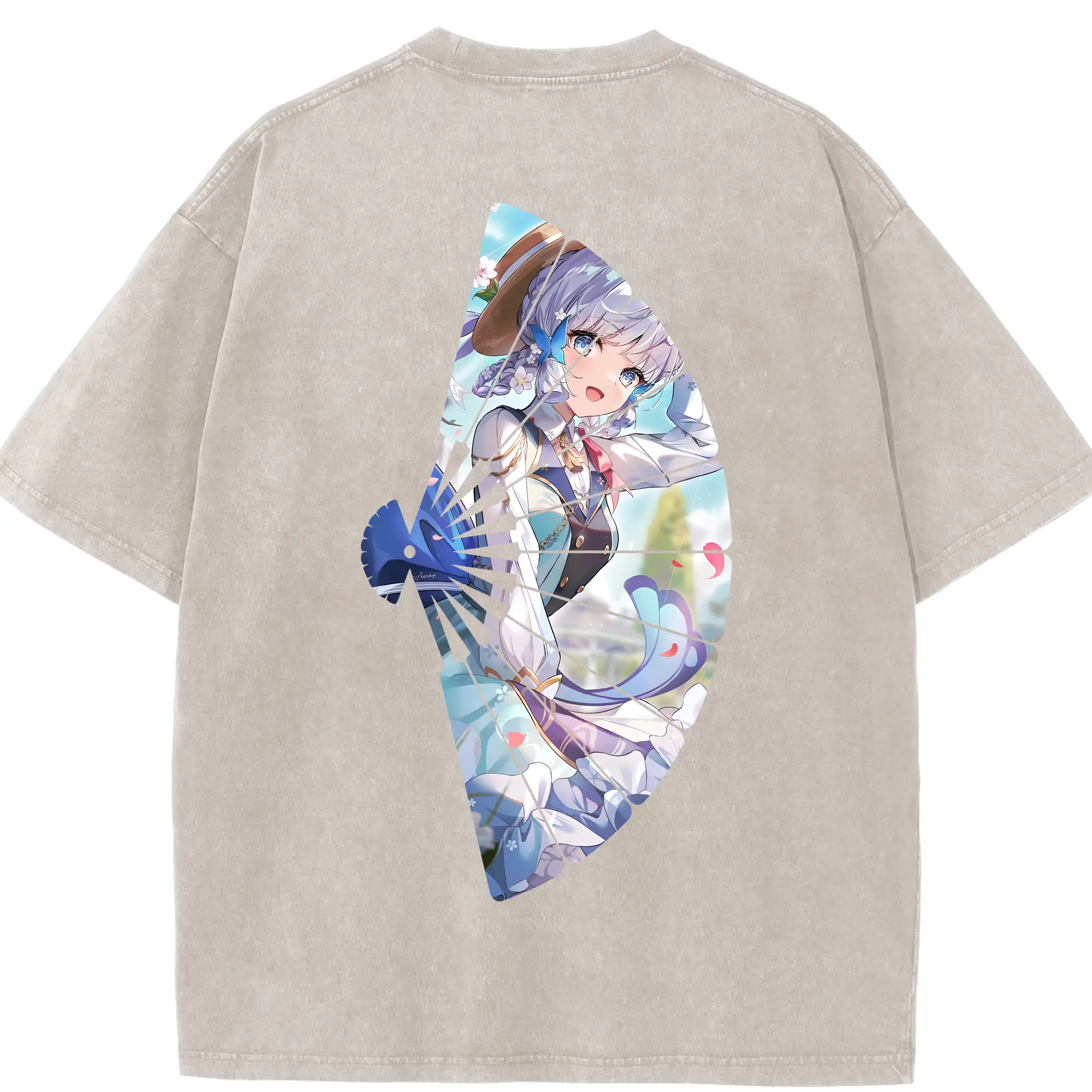 原 神 グッズ 神里綾華 - 綿100% ヴィンテージ風 半袖Tシャツ ・ フロントプリント ・ 柔らか肌触り ・ 通気性 快適 ・ スポーツ カジュアル 外出用