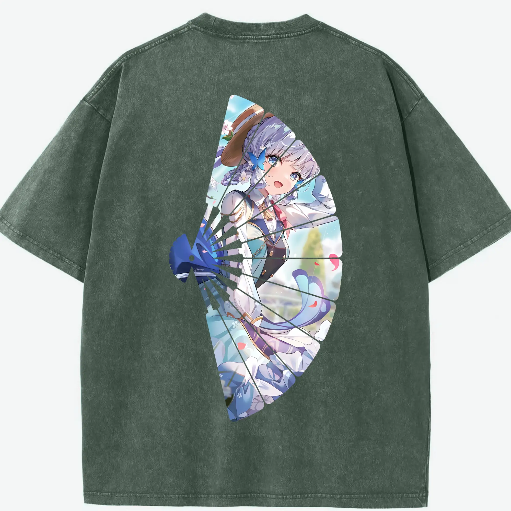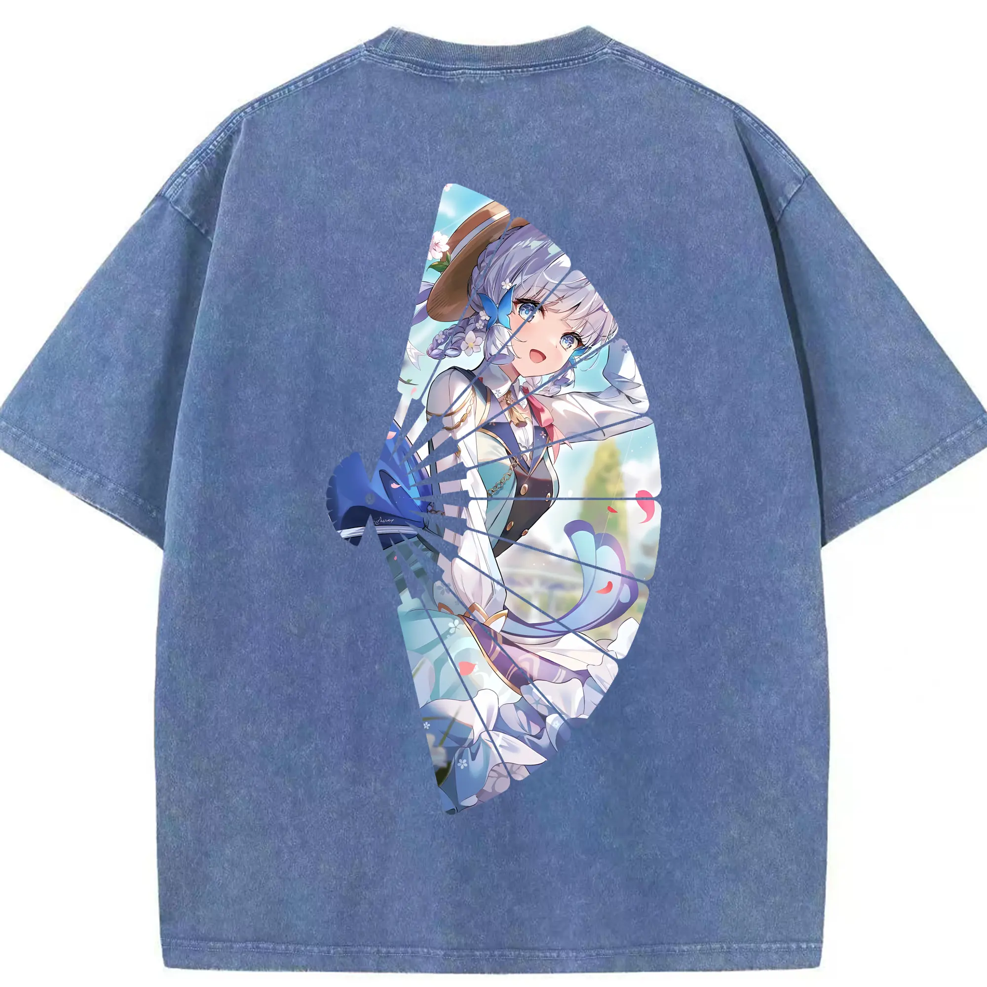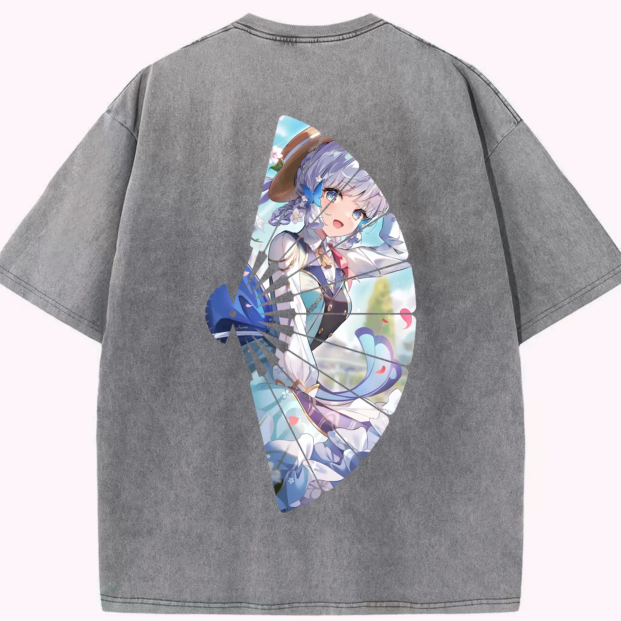 原 神 グッズ 神里綾華 - 綿100% ヴィンテージ風 半袖Tシャツ ・ フロントプリント ・ 柔らか肌触り ・ 通気性 快適 ・ スポーツ カジュアル 外出用